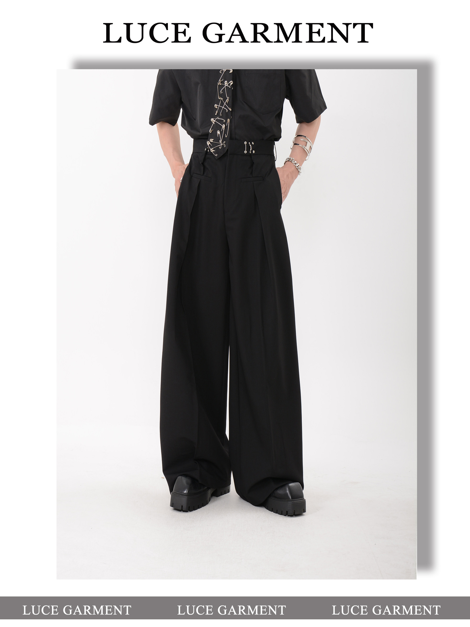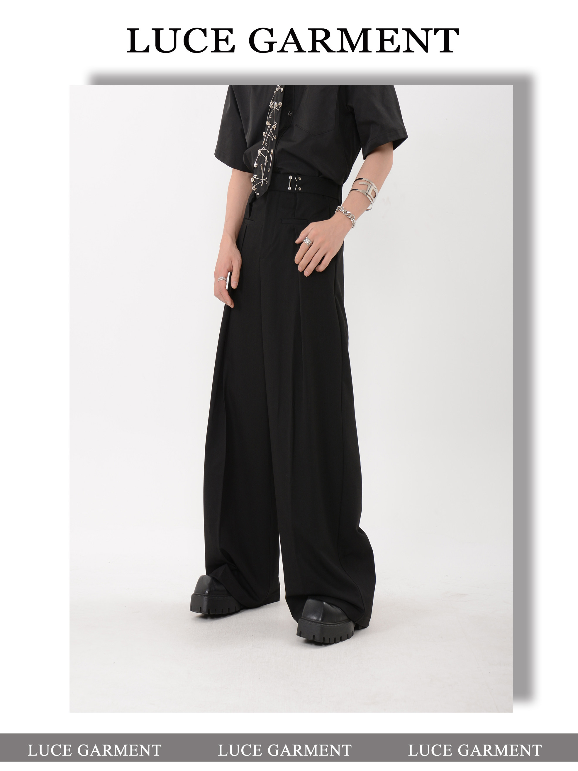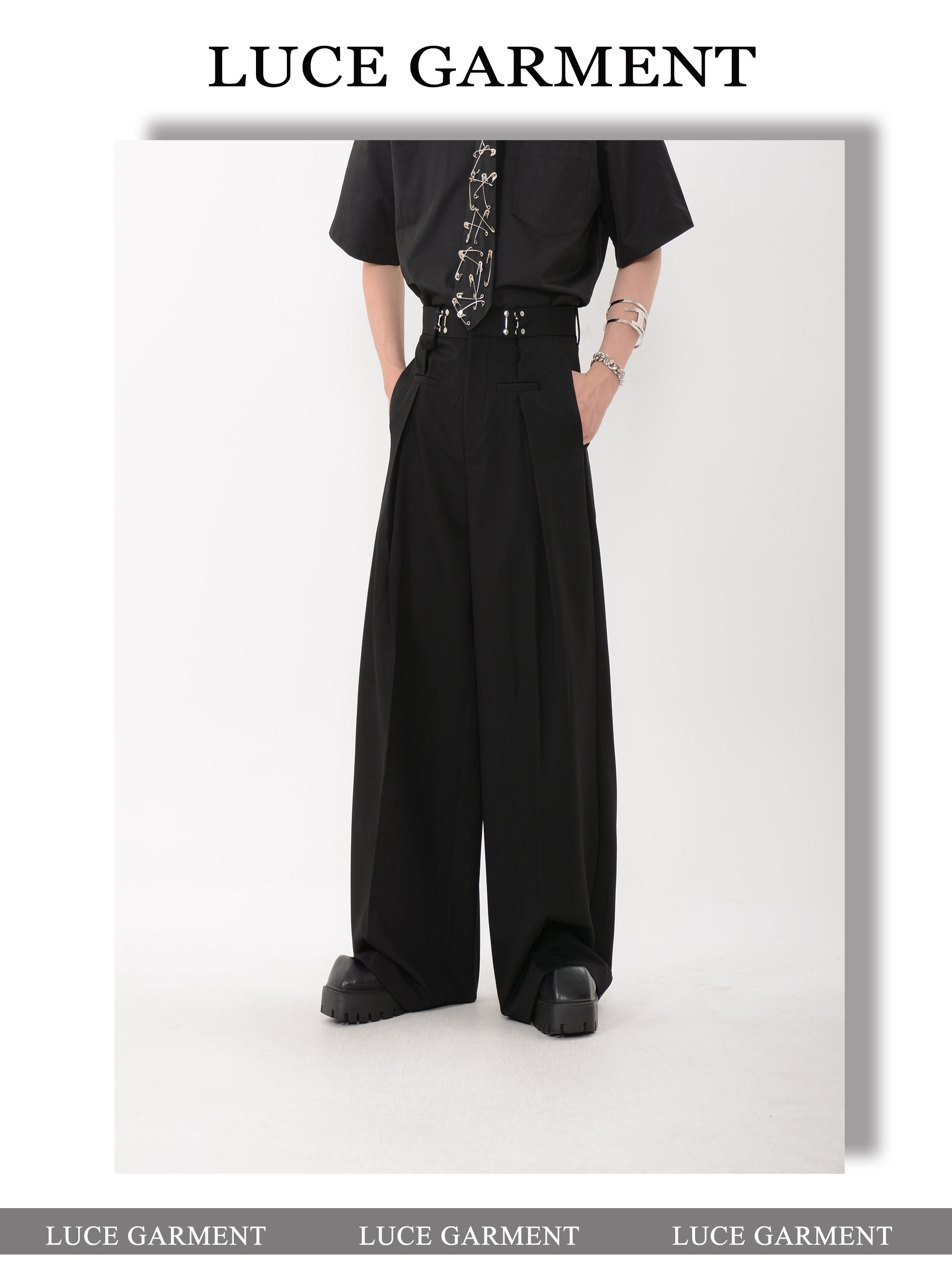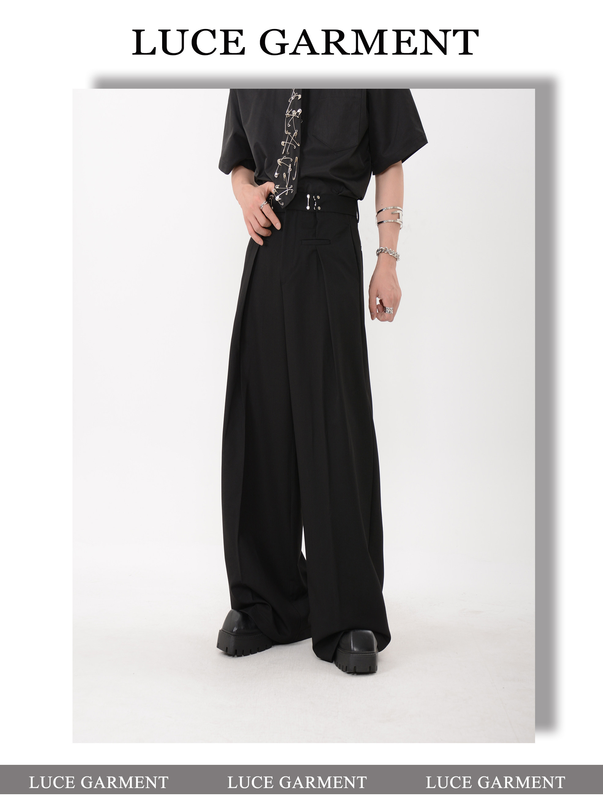 Luce Garment Niche Design Drapey Adjustable Waist Buckle Suit Pants Men's Loose Casual Wide-Leg Trousers