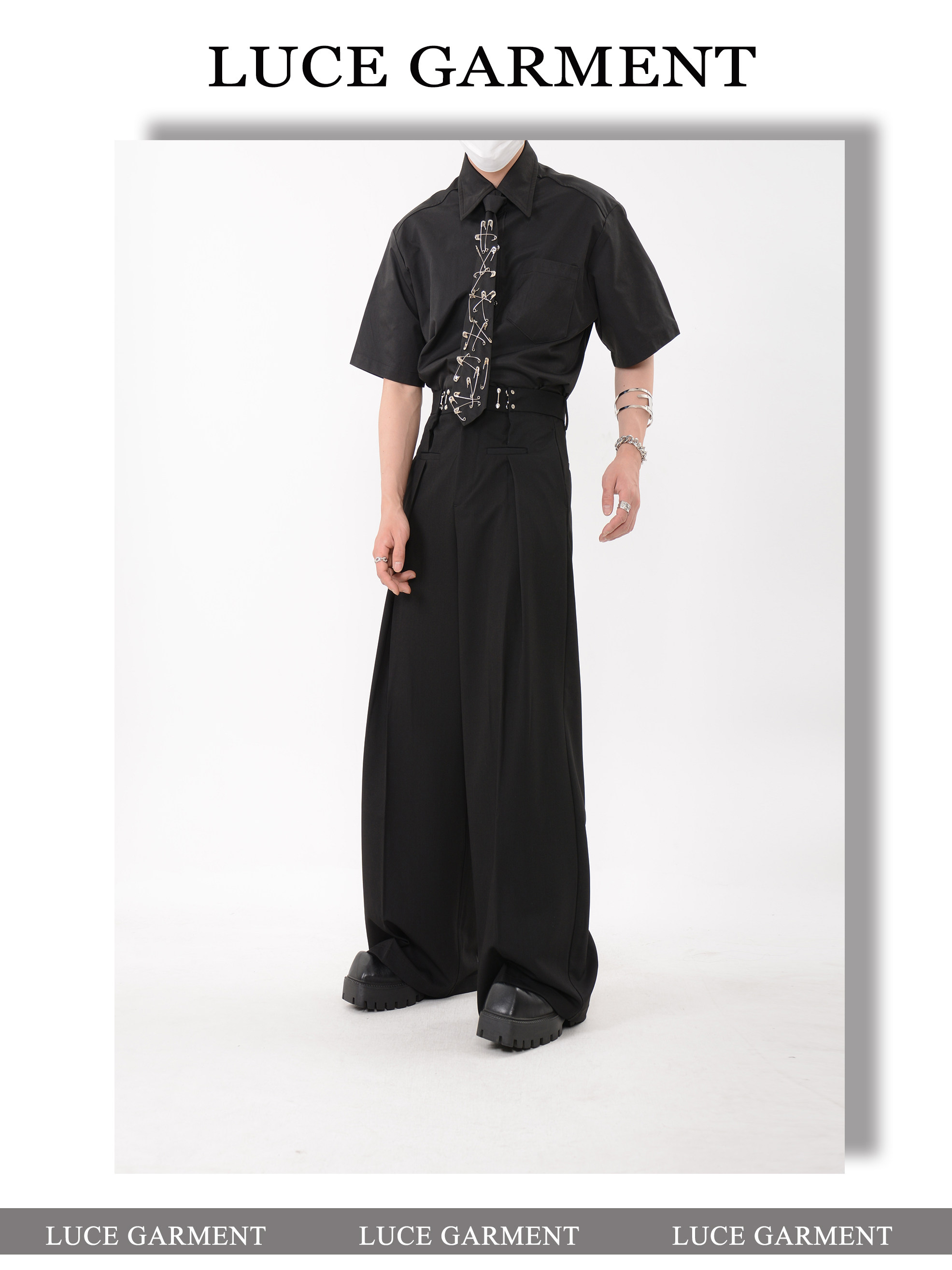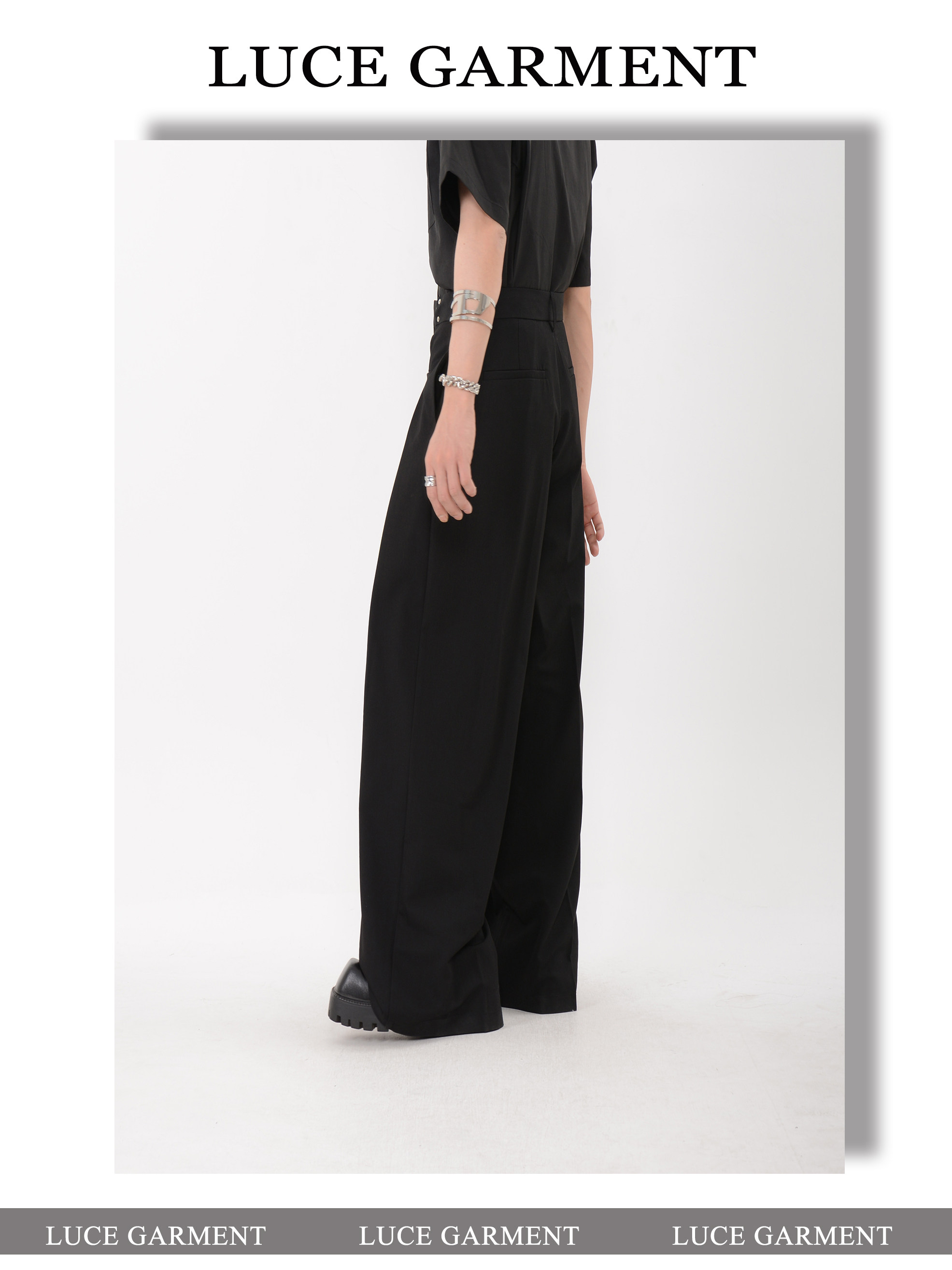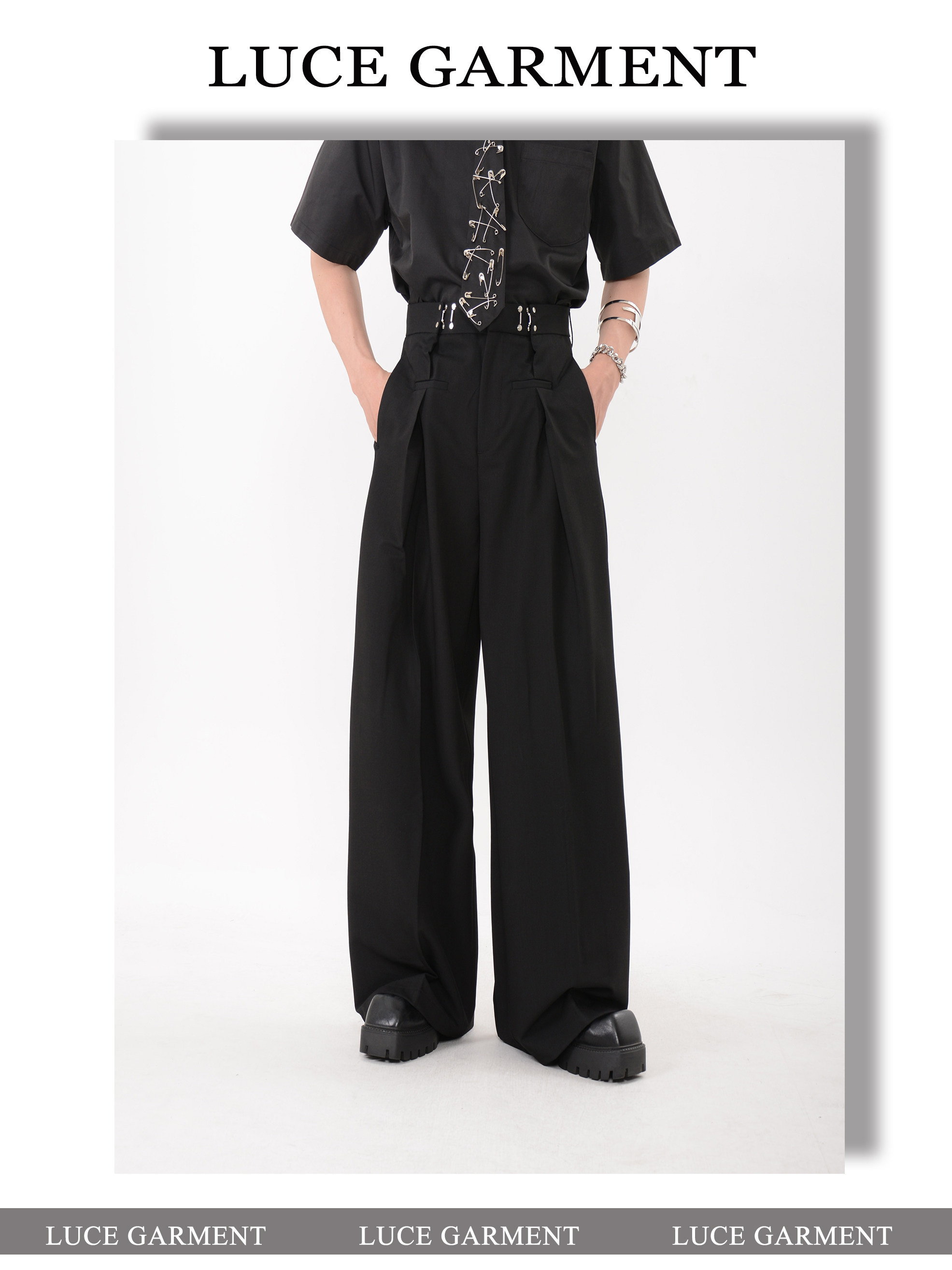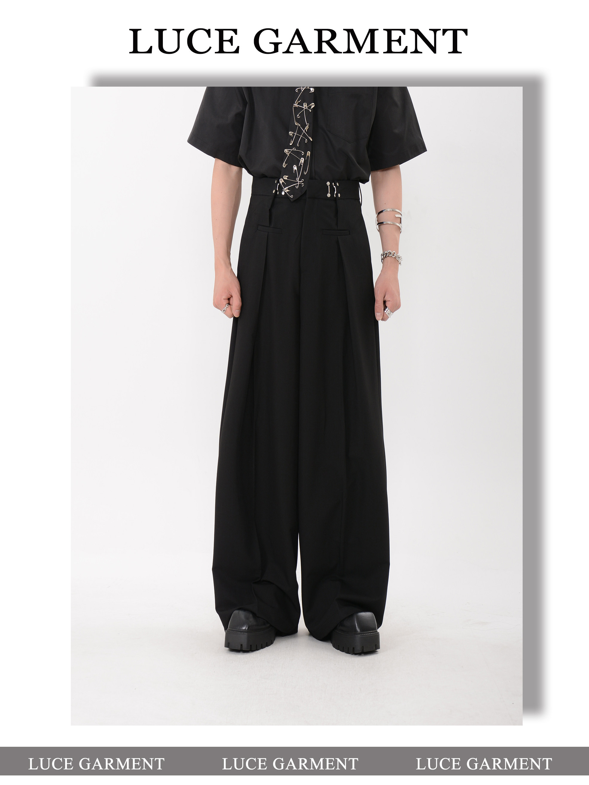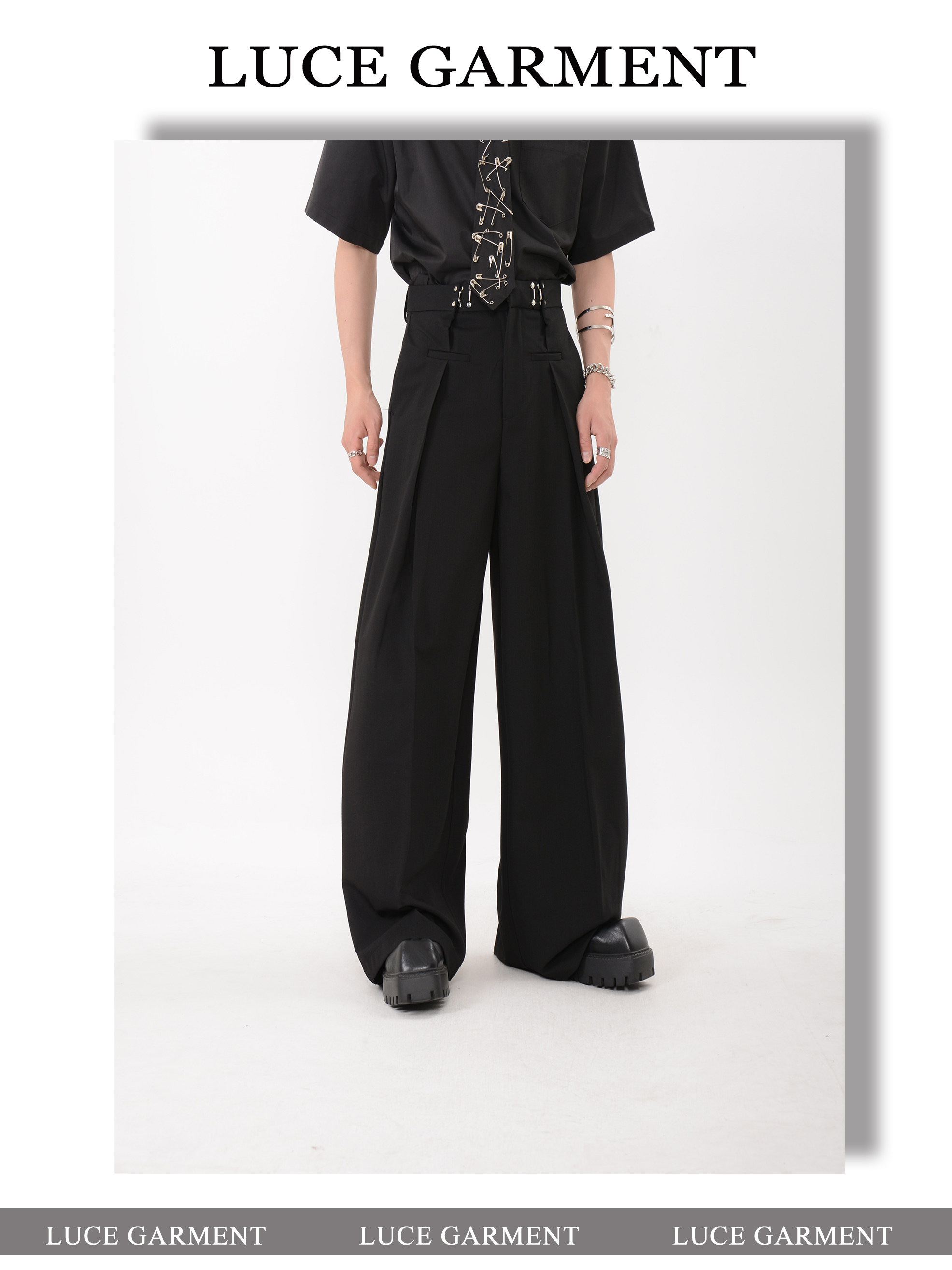 Luce Garment Niche Design Drapey Adjustable Waist Buckle Suit Pants Men's Loose Casual Wide-Leg Trousers