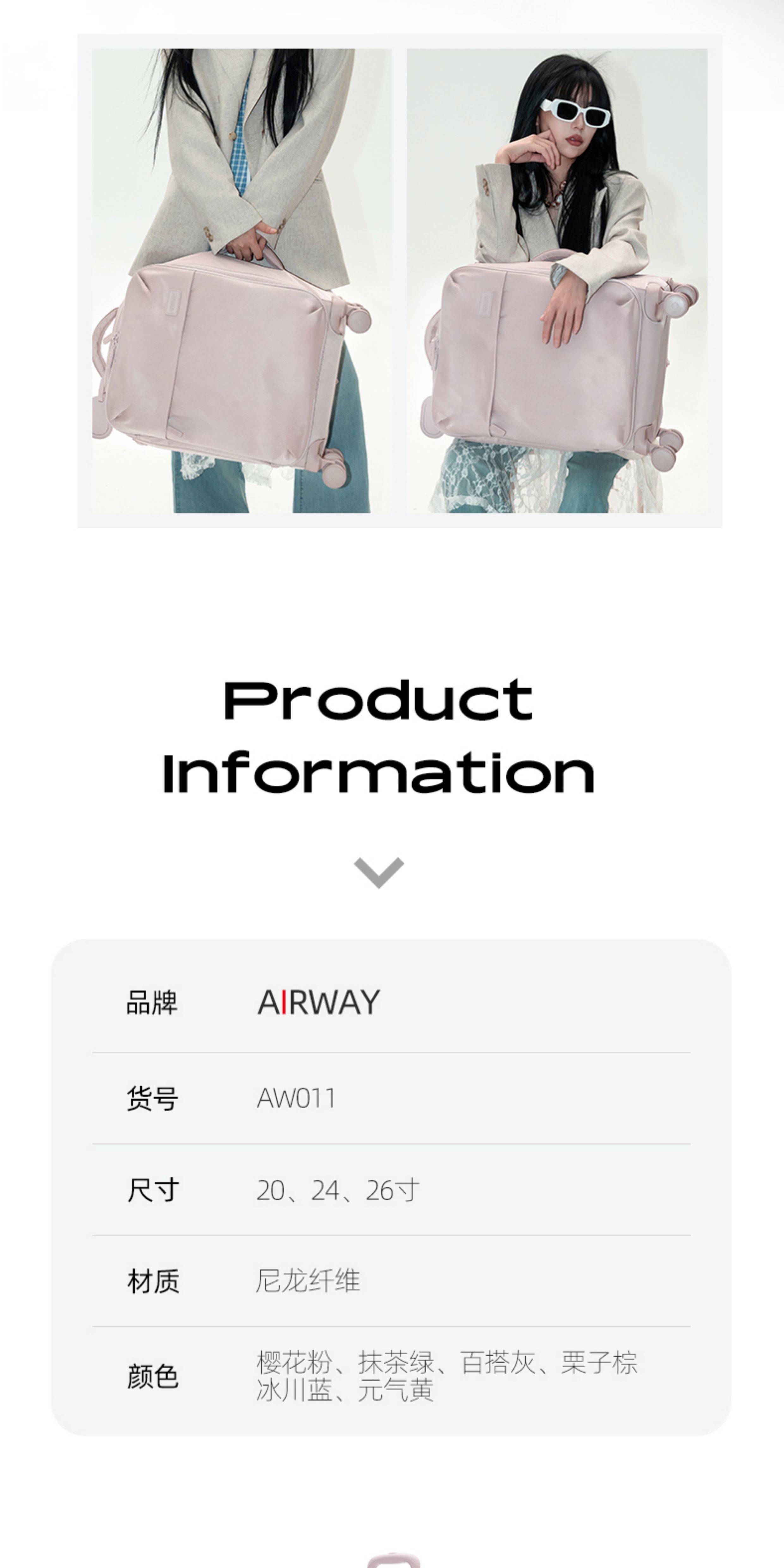 Airway New Luggage 20inch Large Capacity Trolley Suitcase Women's Carry-On Suitcase Password Box Travel Suitcase 24inch Cloth Suitcase