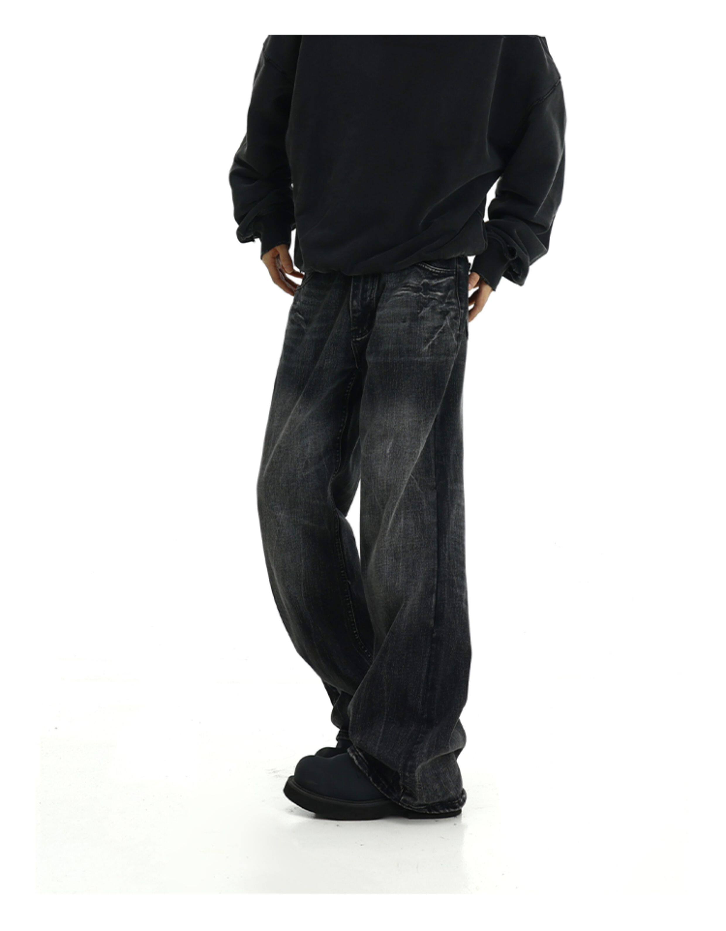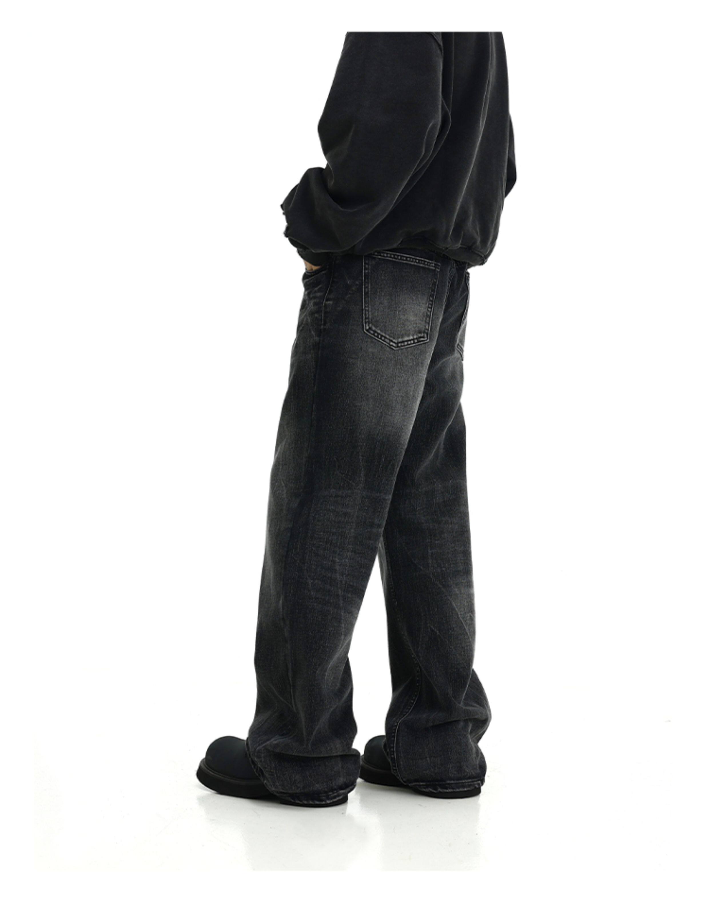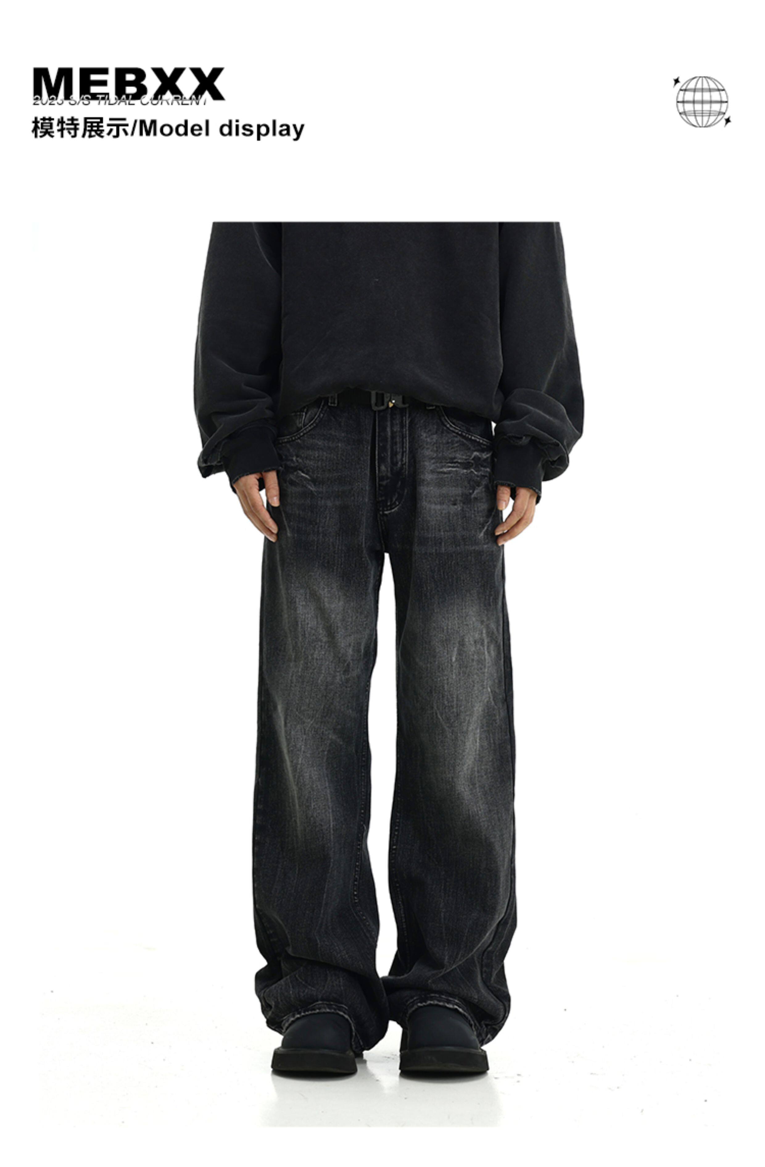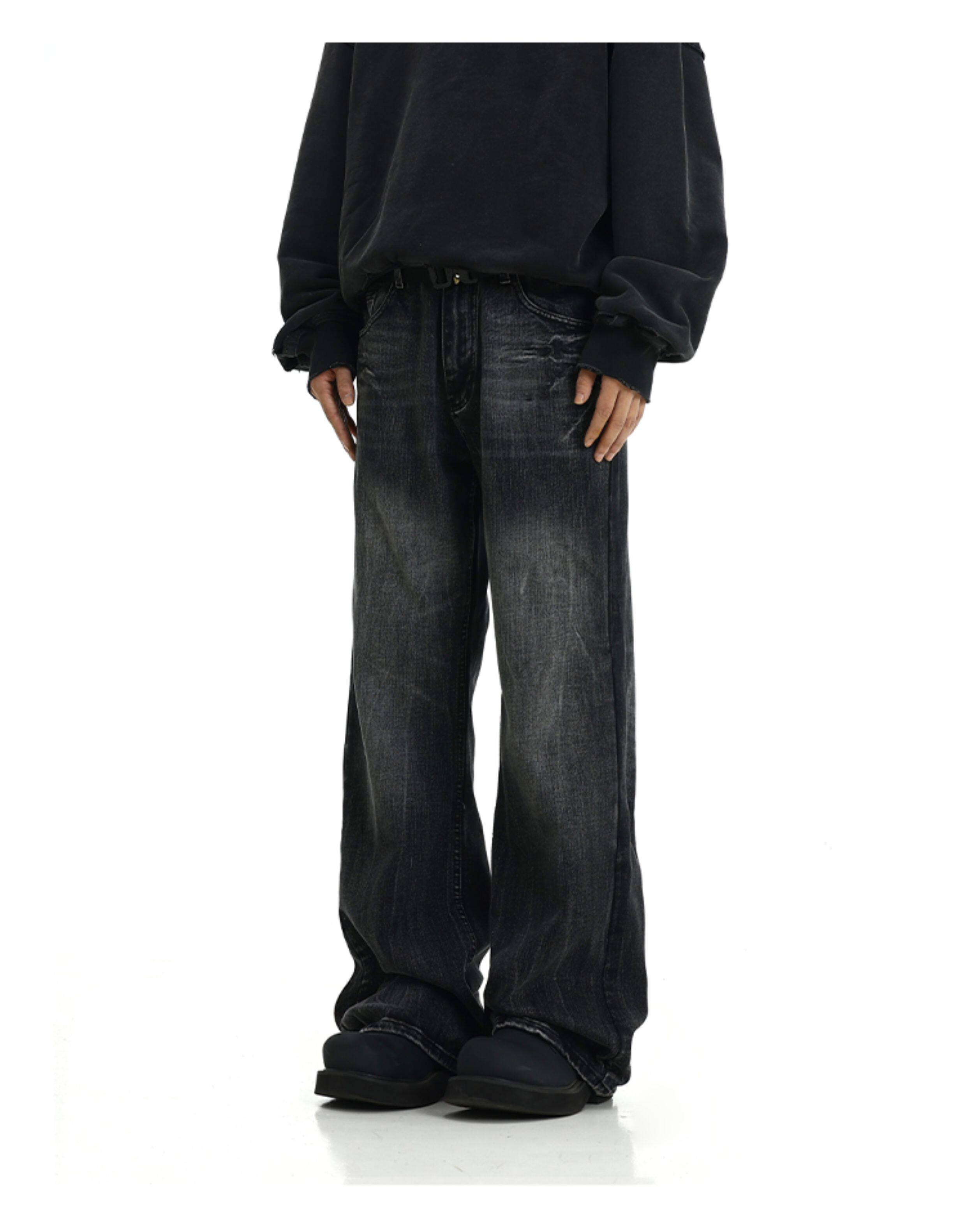 Retro Black Washed Straight-Leg Jeans for Men and Women, Spring & Fall High Street Design, Loose Straight-Leg Wide-Leg Long Pants