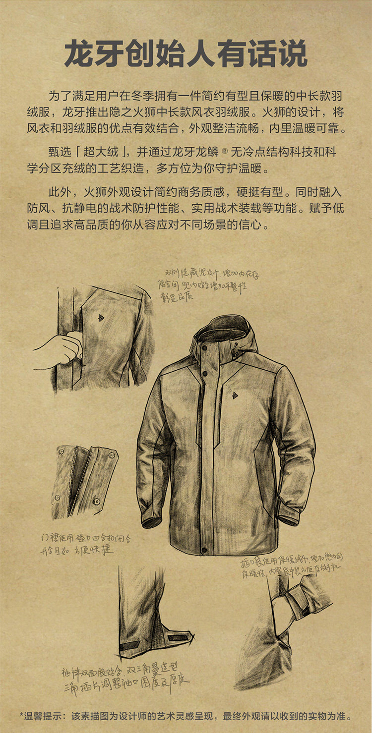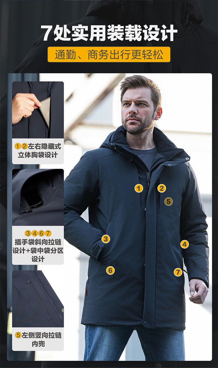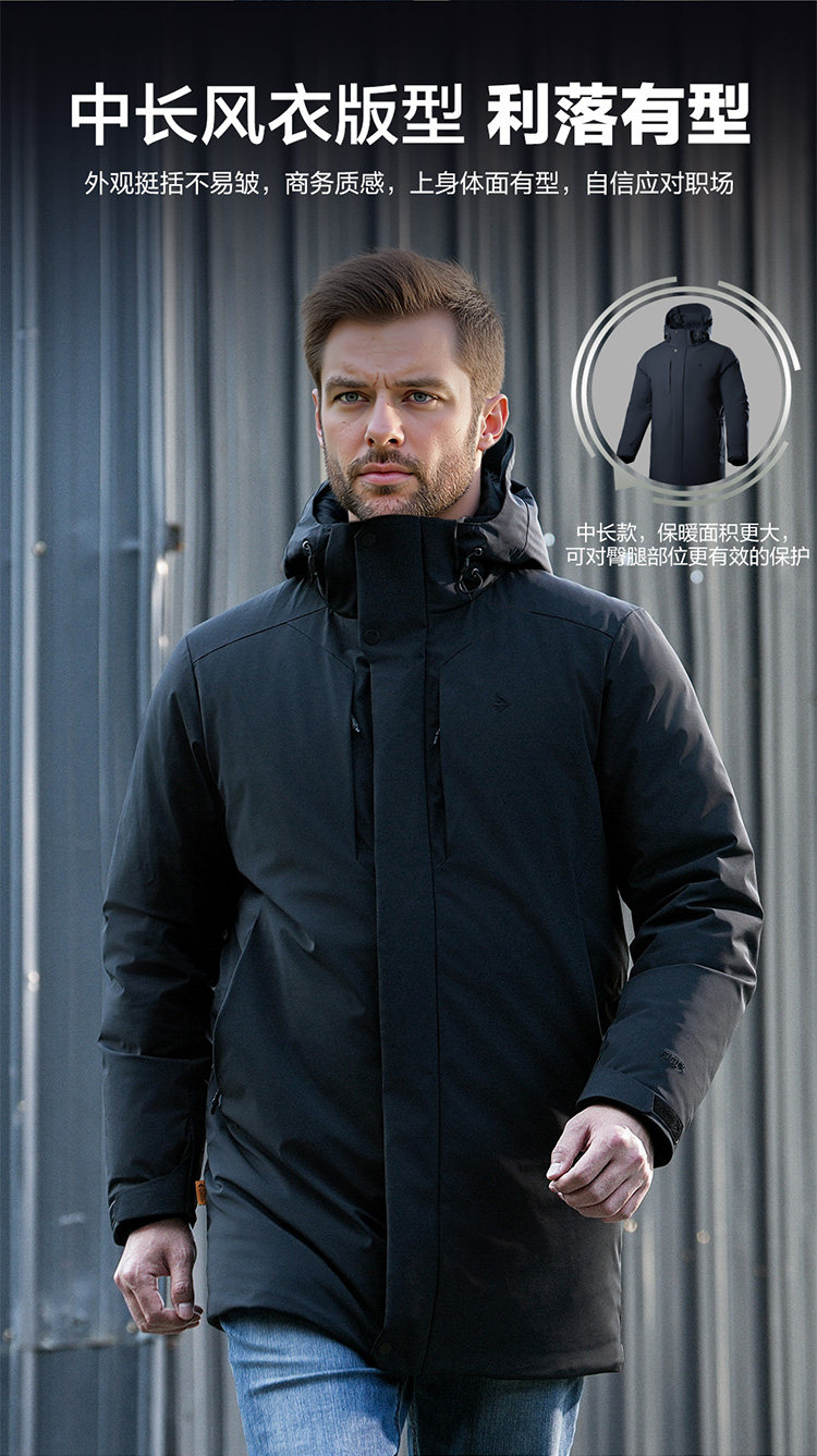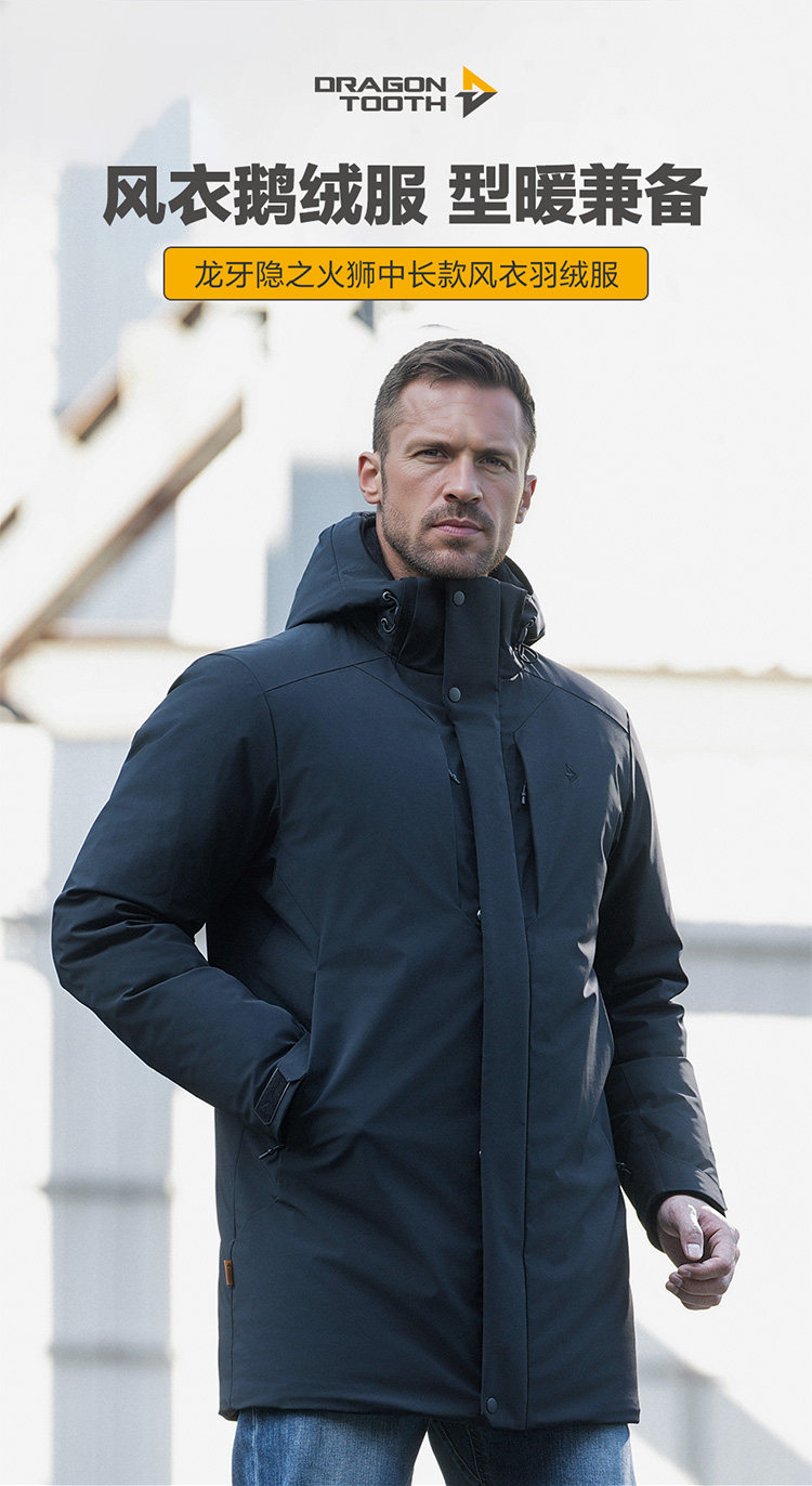 Dragon Tooth Hidden Fire Lion Mid-Length Trench Coat down Jacket Winter Hooded Goose down Ultra-Warm Commuter Coat