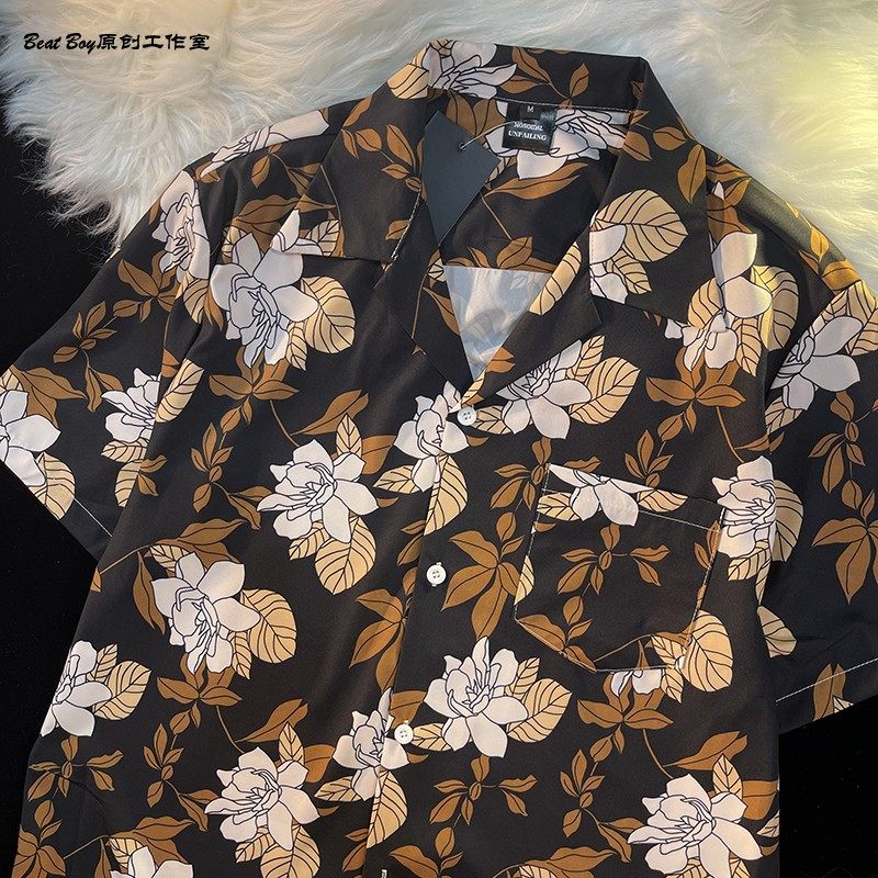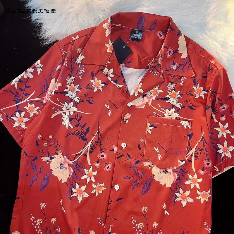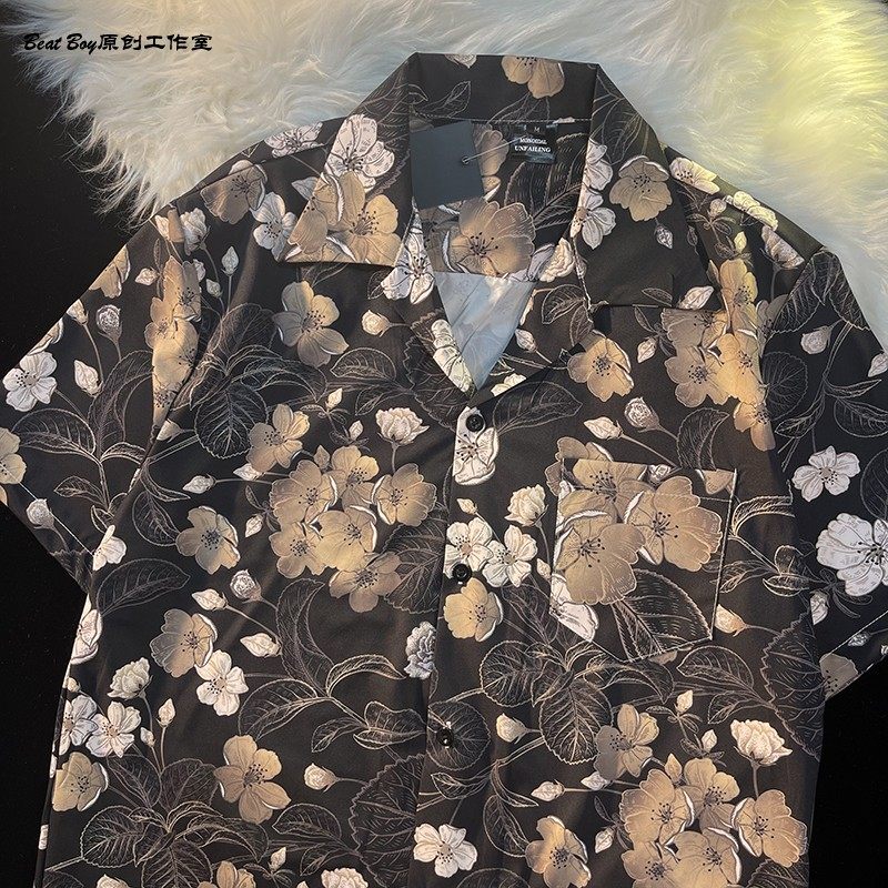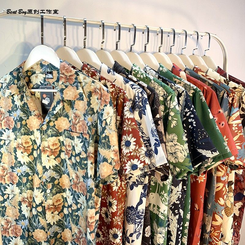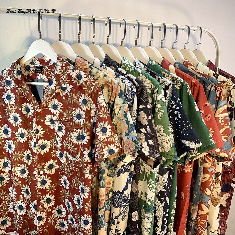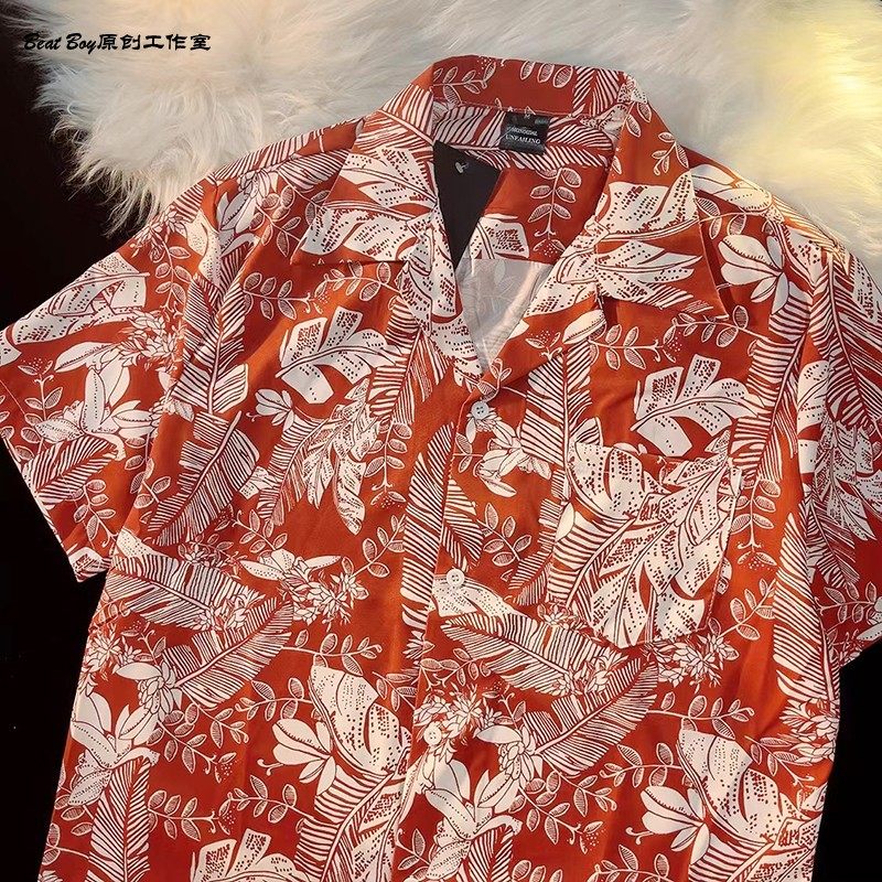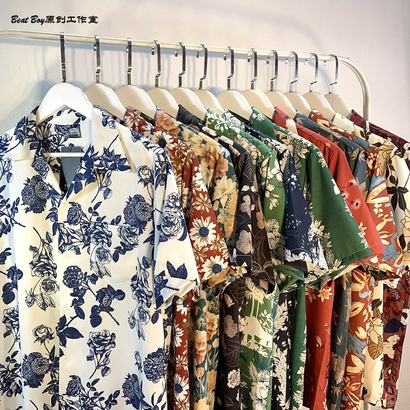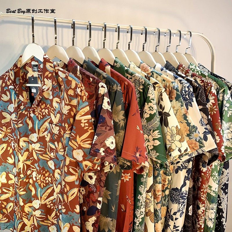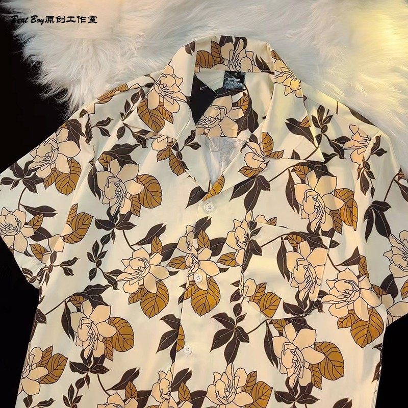 Hong Kong Style Retro Hawaiian All-Over Print Short-Sleeved Vintage Floral Shirt for Men and Women Thai-Style Yuppie Couple Beach Shirt
