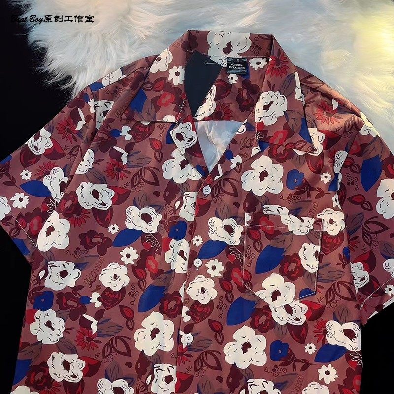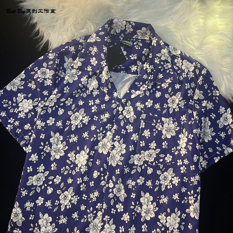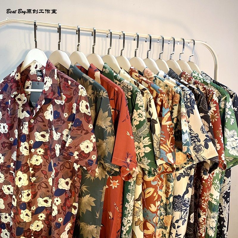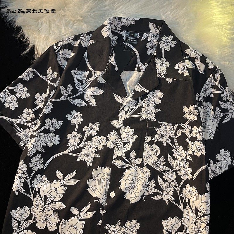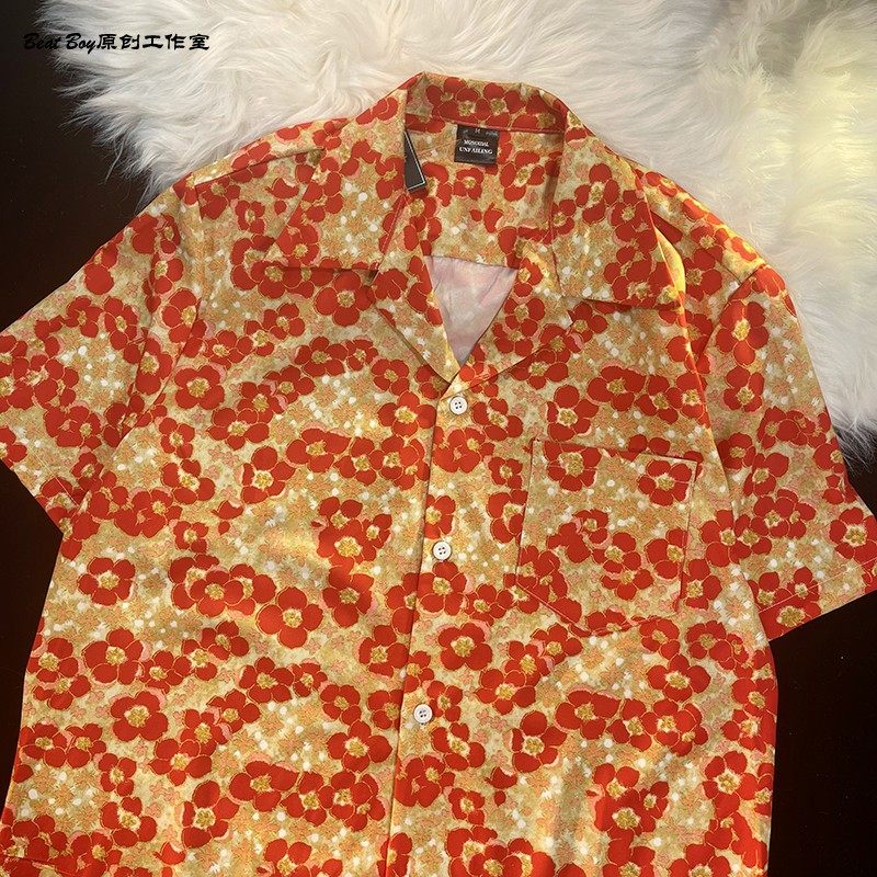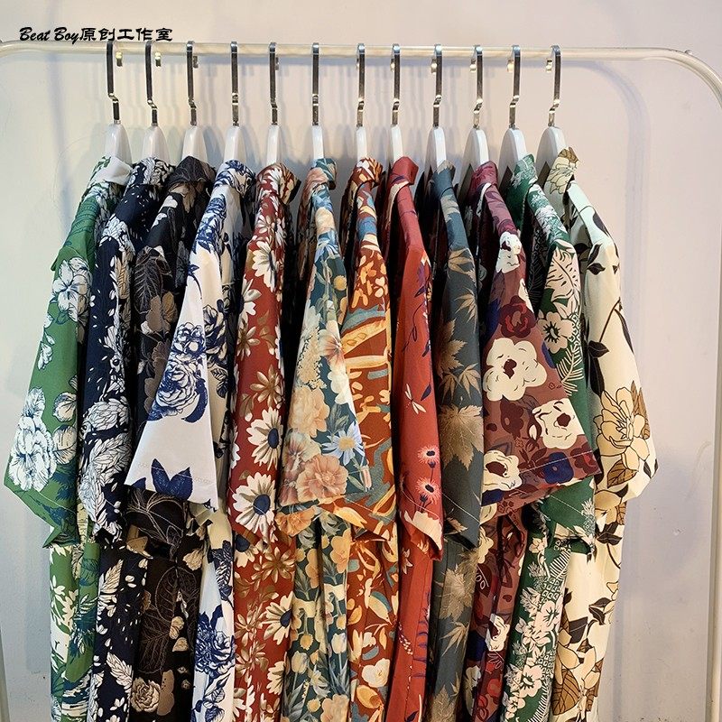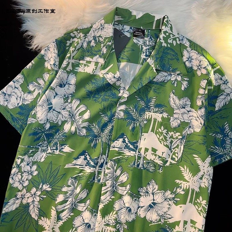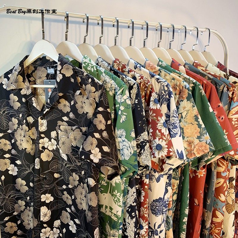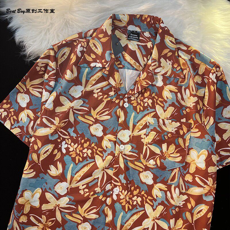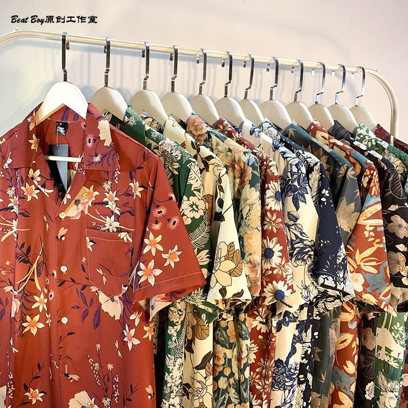 Hong Kong Style Retro Hawaiian All-Over Print Short-Sleeved Vintage Floral Shirt for Men and Women Thai-Style Yuppie Couple Beach Shirt