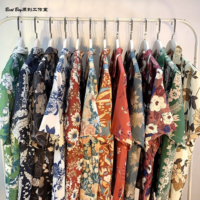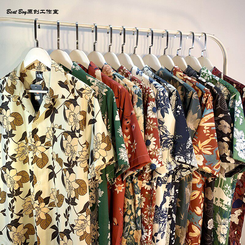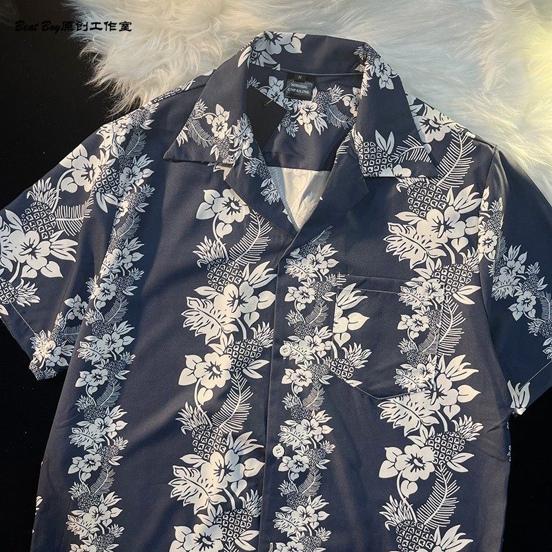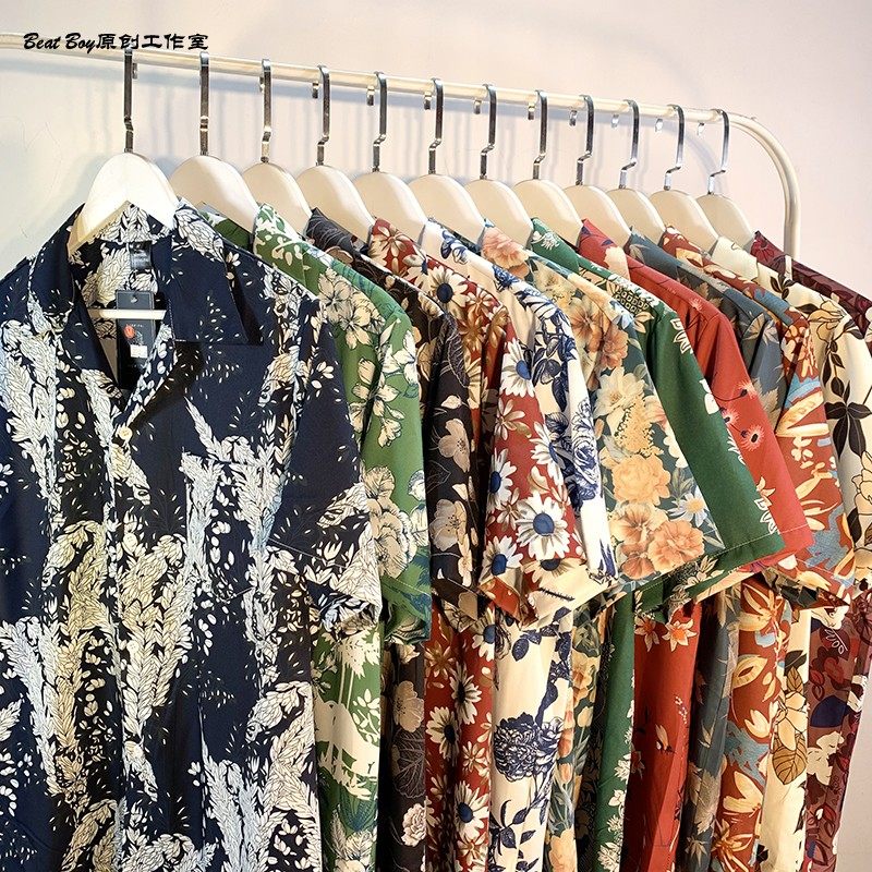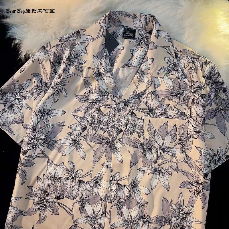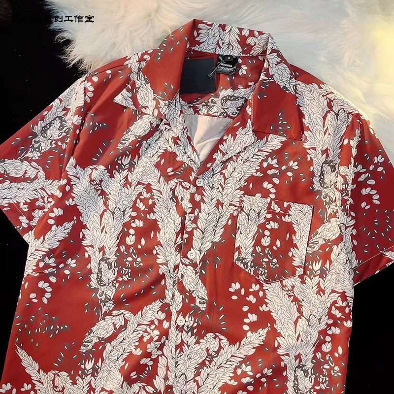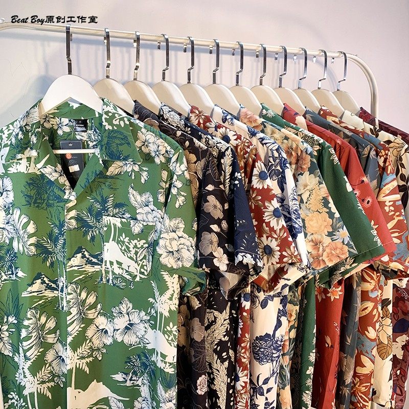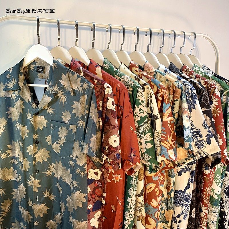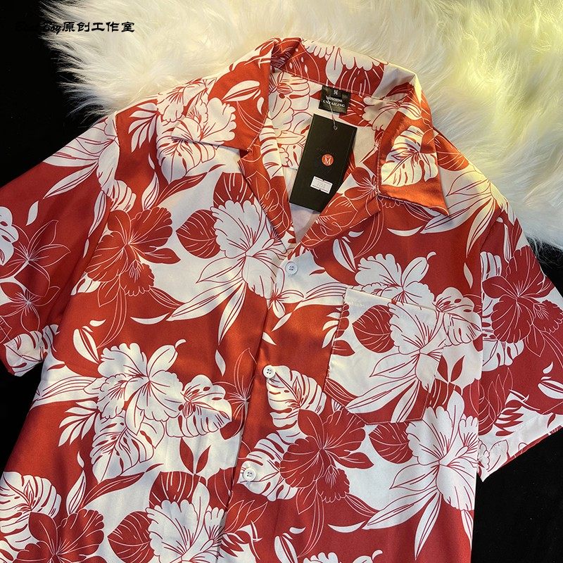 Hong Kong Style Retro Hawaiian All-Over Print Short-Sleeved Vintage Floral Shirt for Men and Women Thai-Style Yuppie Couple Beach Shirt