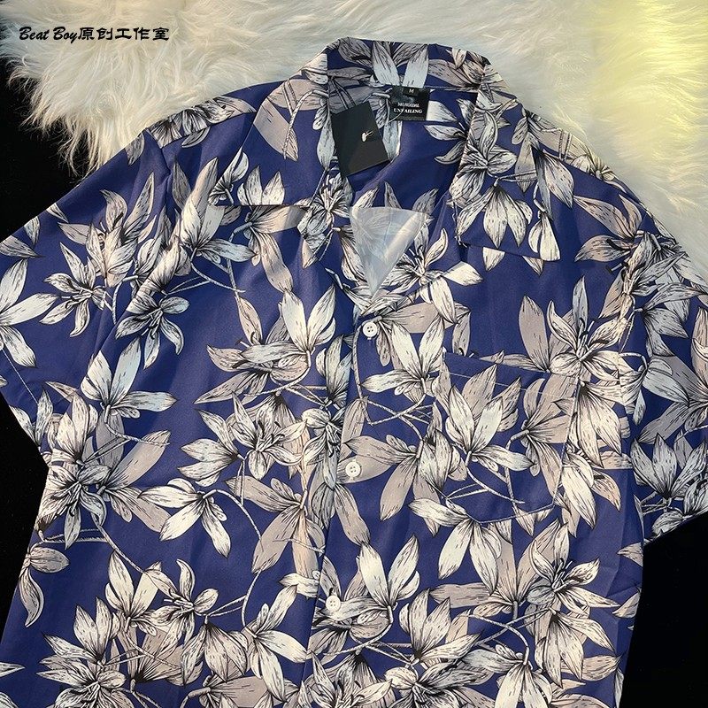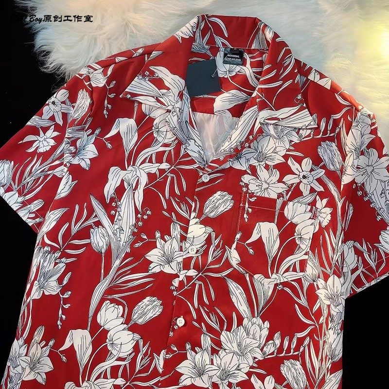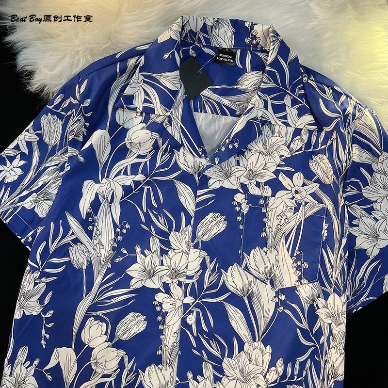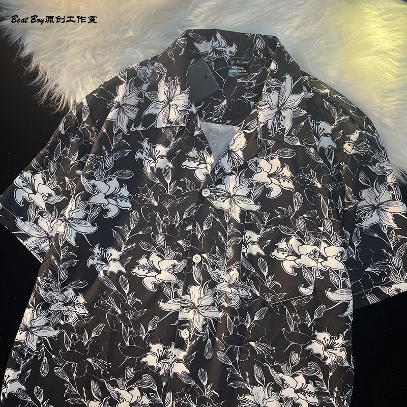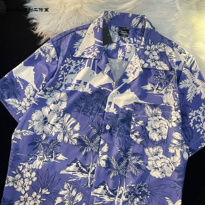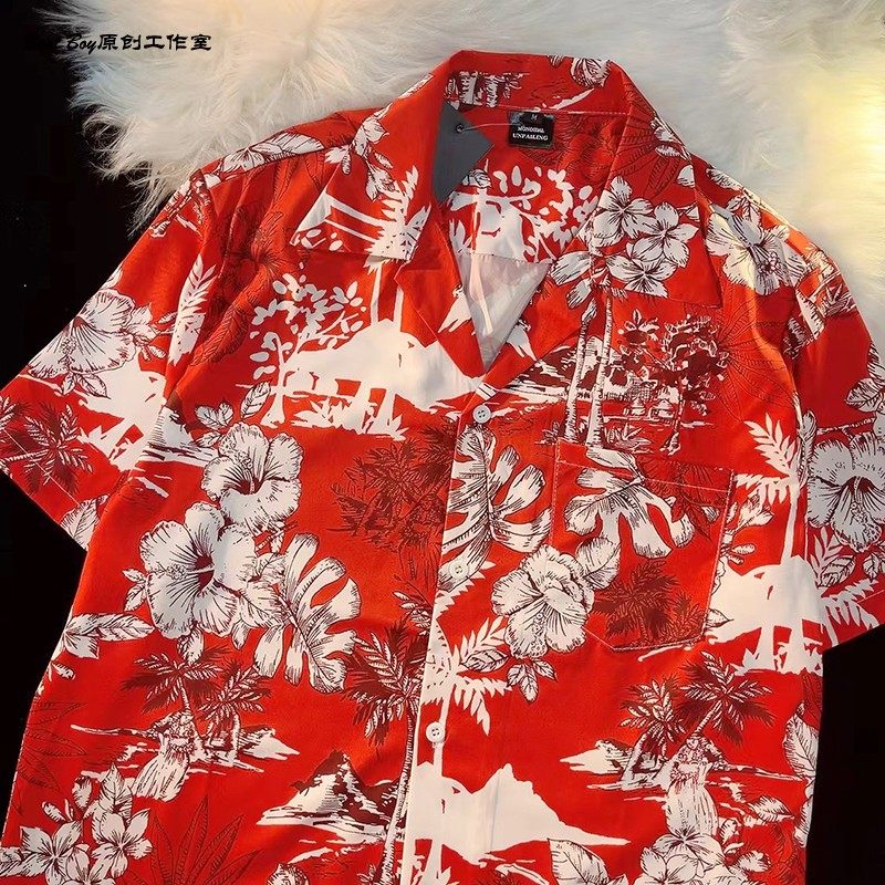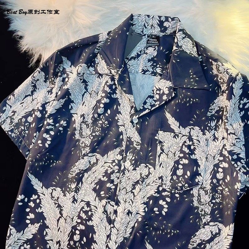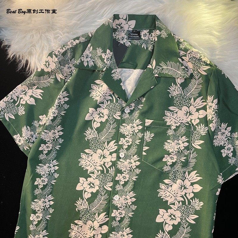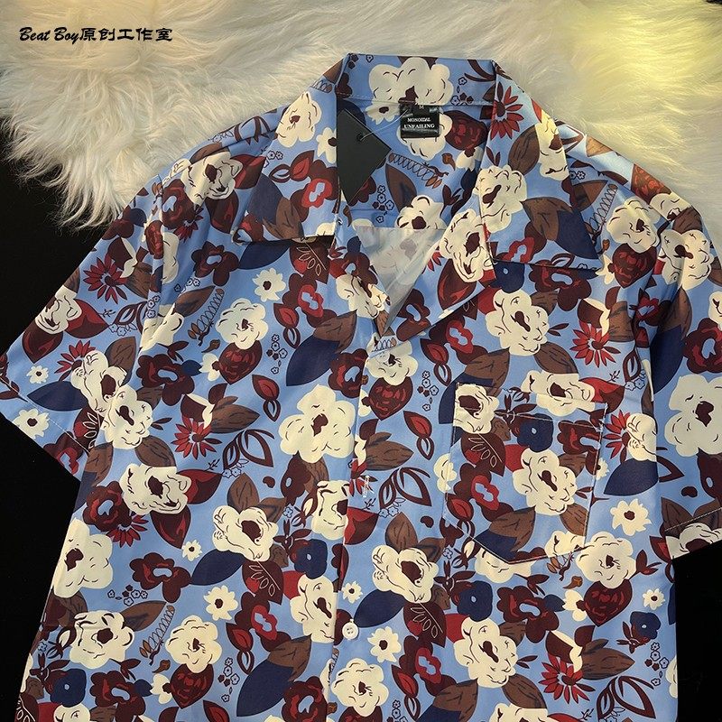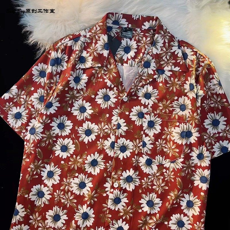 Hong Kong Style Retro Hawaiian All-Over Print Short-Sleeved Vintage Floral Shirt for Men and Women Thai-Style Yuppie Couple Beach Shirt