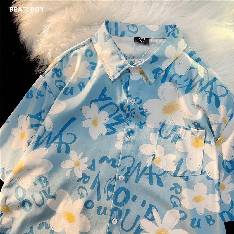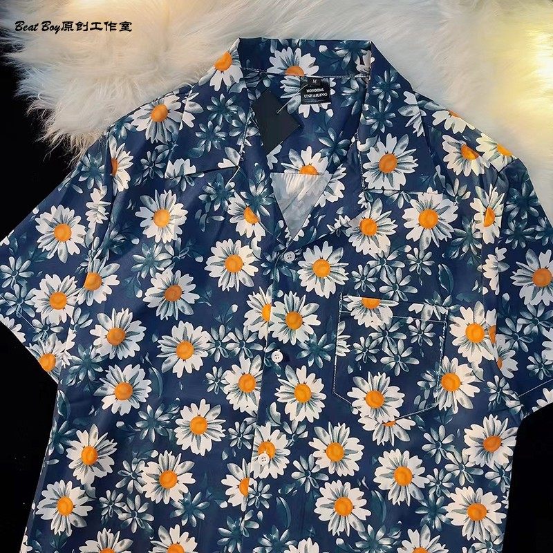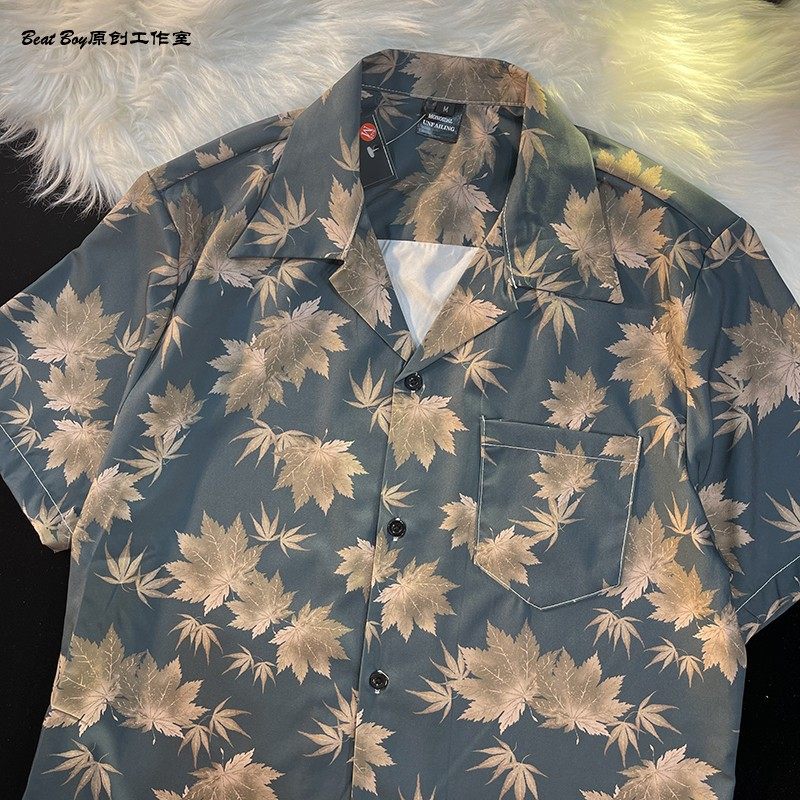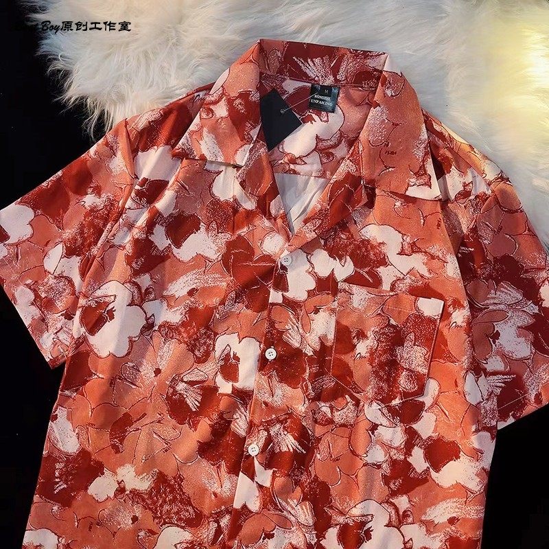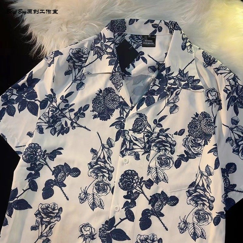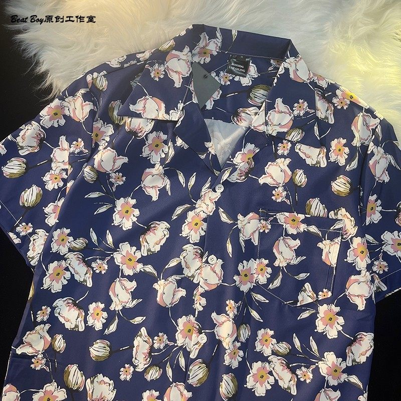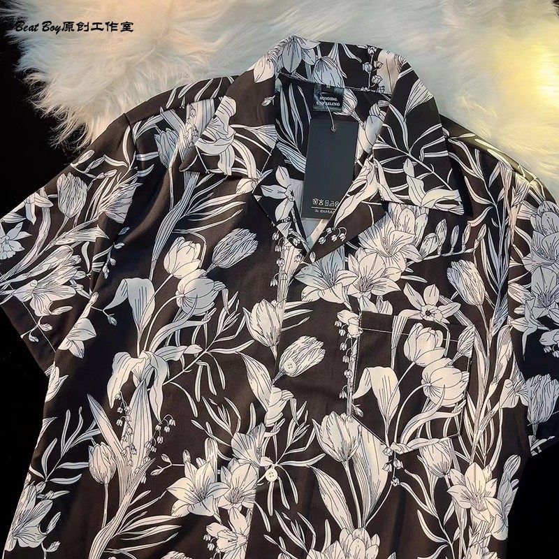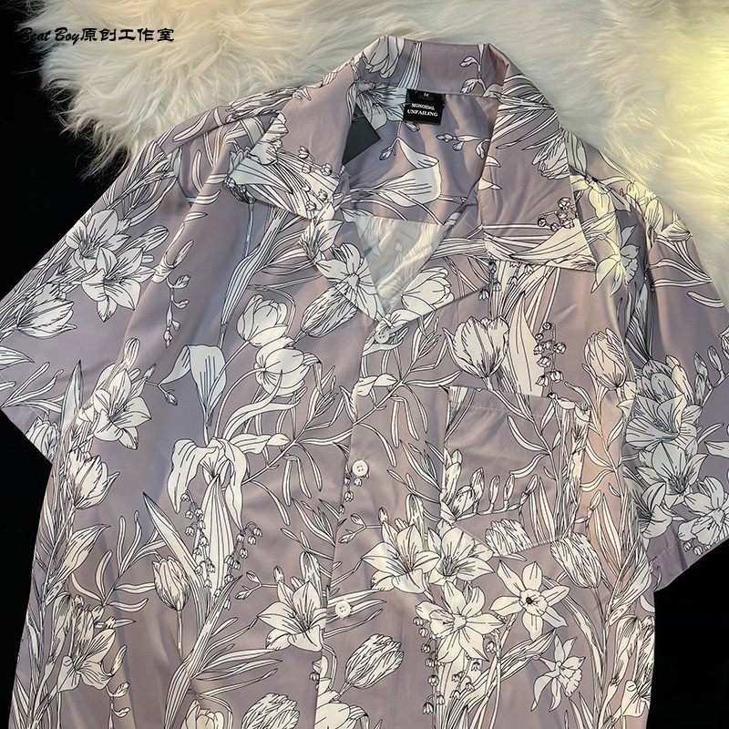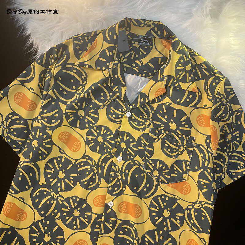 Hong Kong Style Retro Hawaiian All-Over Print Short-Sleeved Vintage Floral Shirt for Men and Women Thai-Style Yuppie Couple Beach Shirt