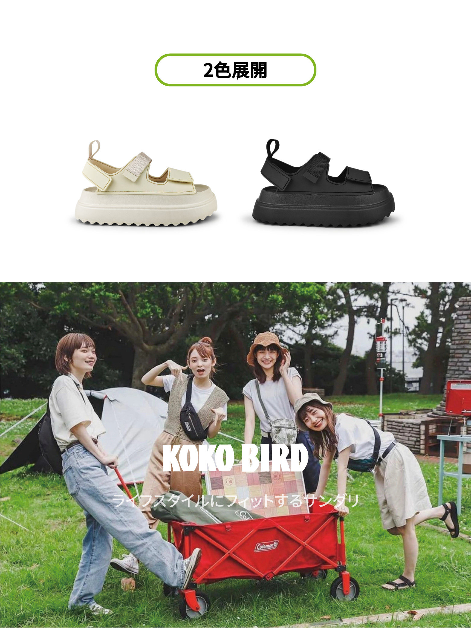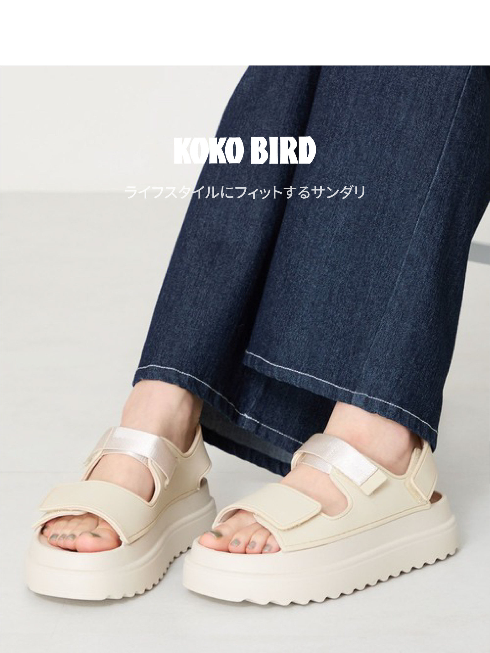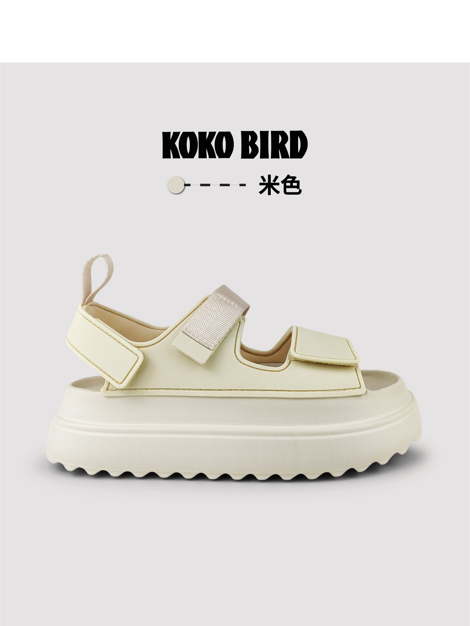 Japanese Kokobidrd Thick-Soled Sandals for Women, Ultra-Light Casual Heightening Soft-Soled Velcro Adjustable Beach Shoes