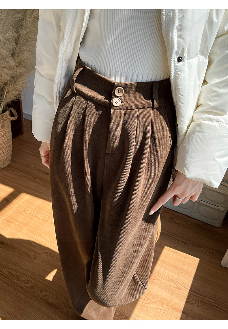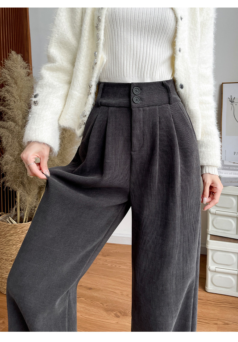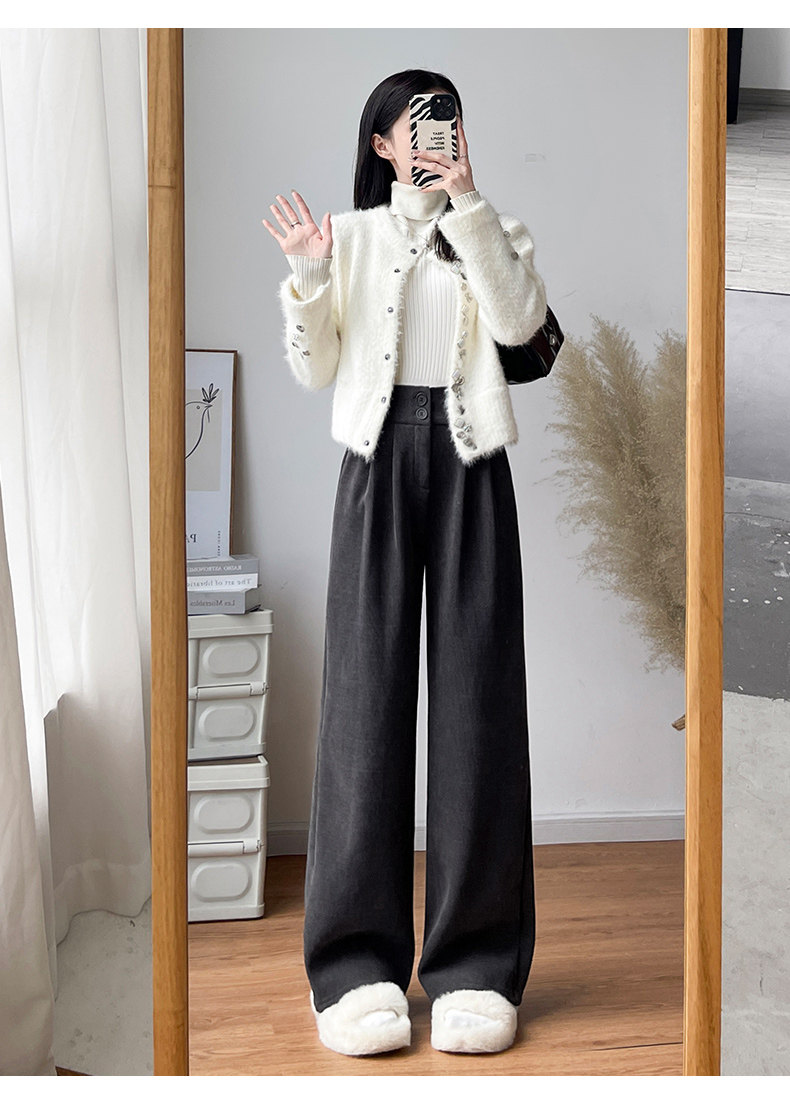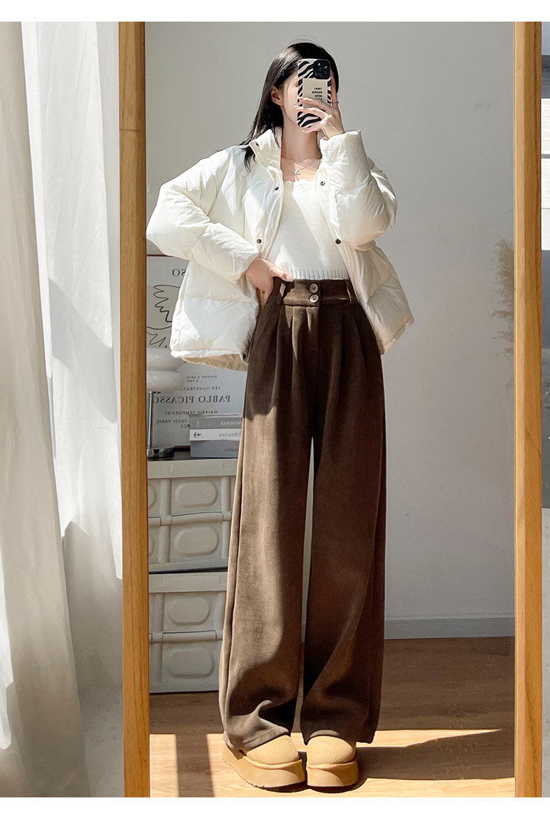White Suit Pants for Women in Autumn and Winter 2025 New Velvet Draped Straight Pants for Small People Corduroy Wide Leg Pants