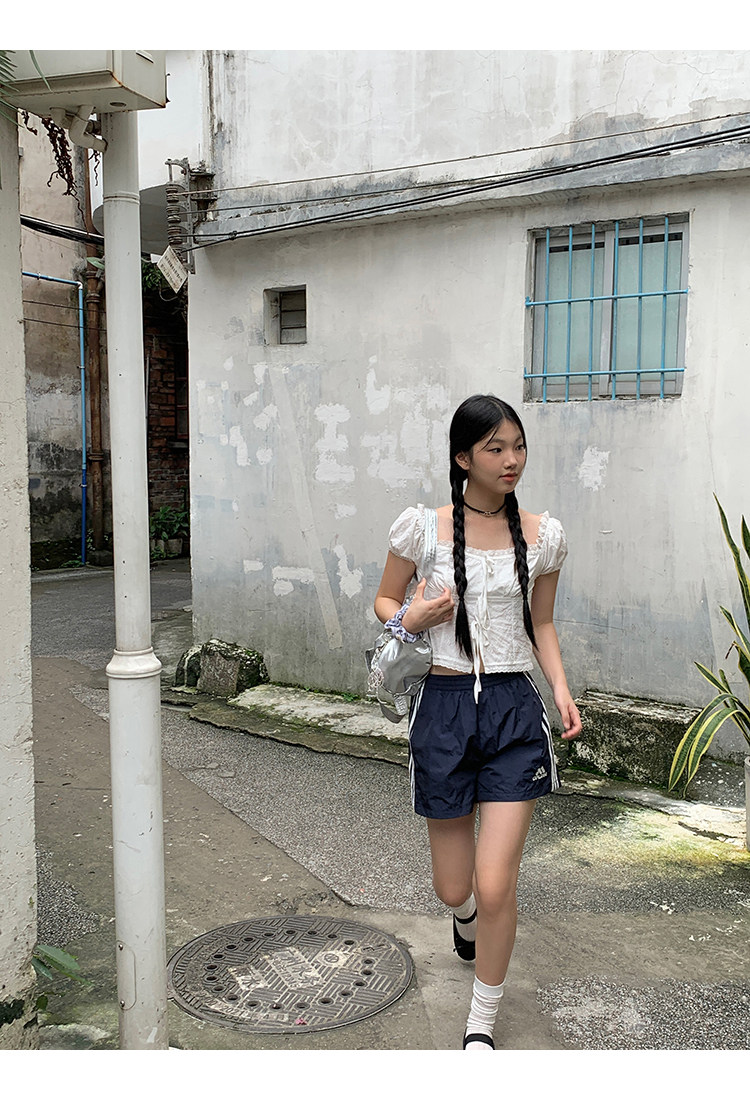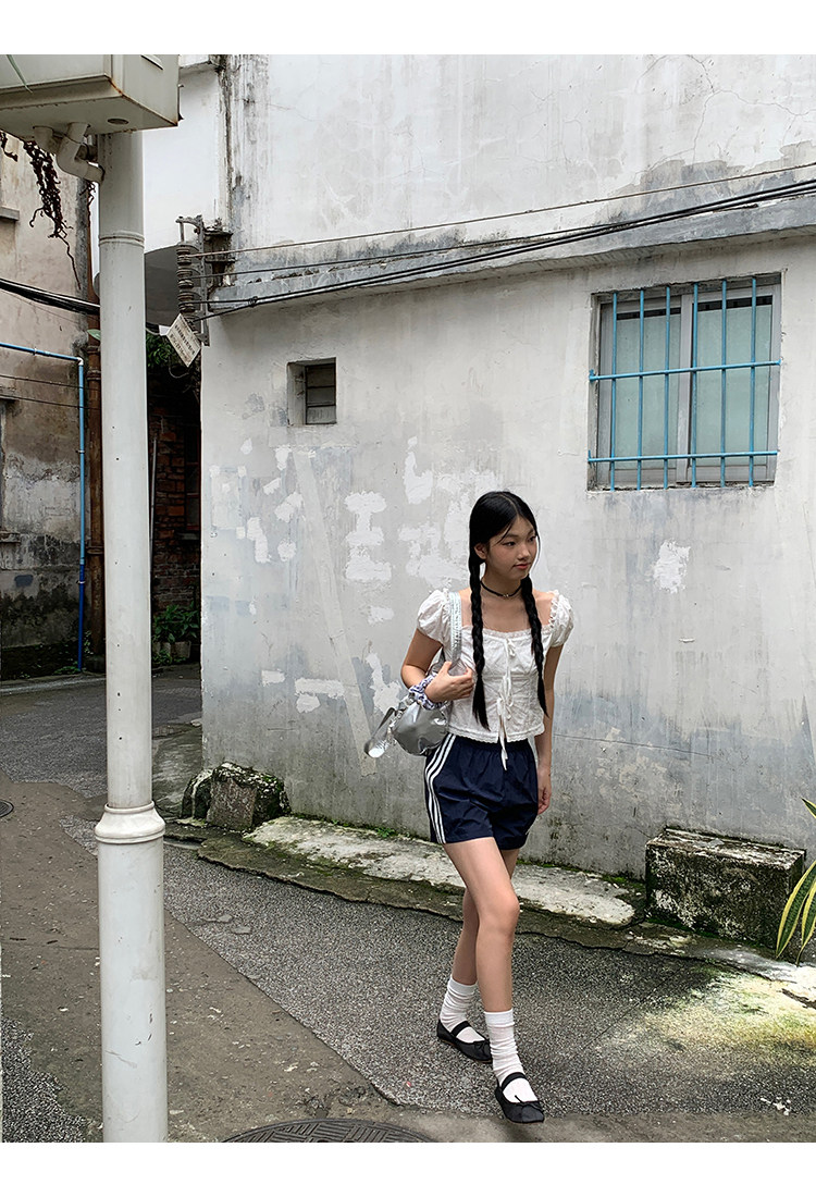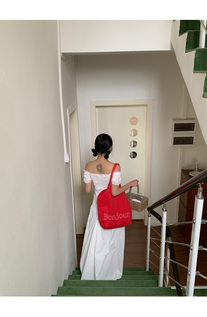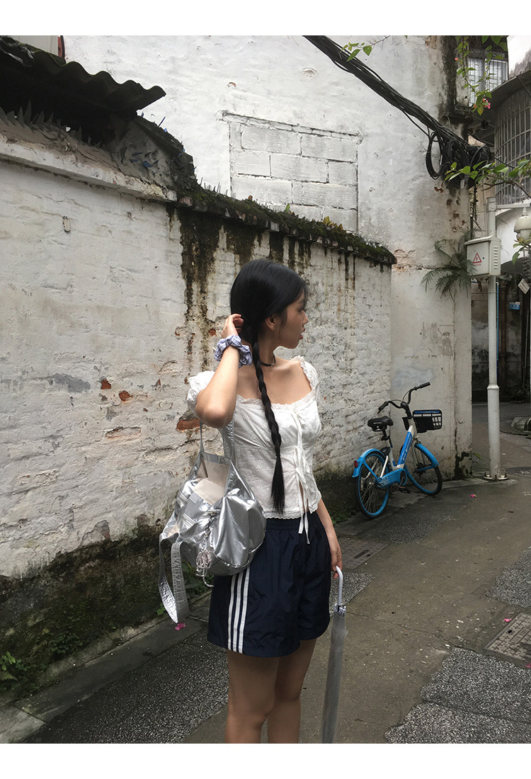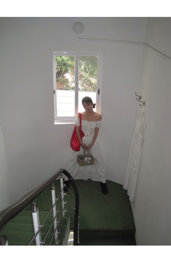 领口的松紧带设计,露肩穿也不会担心往下掉