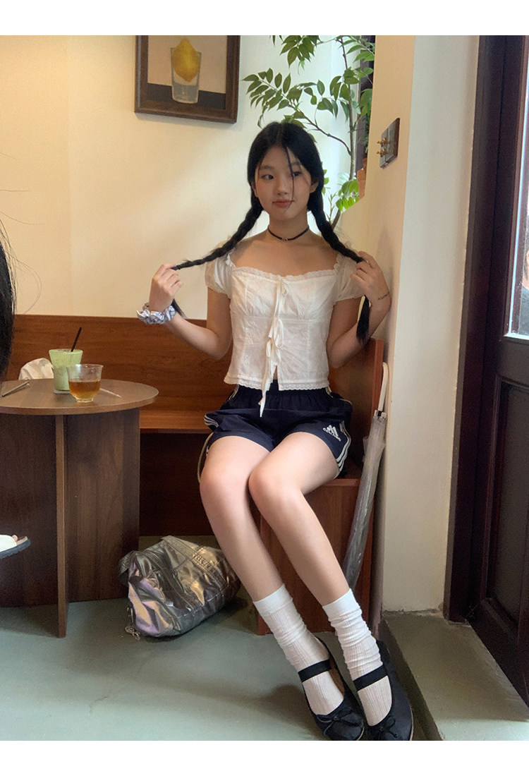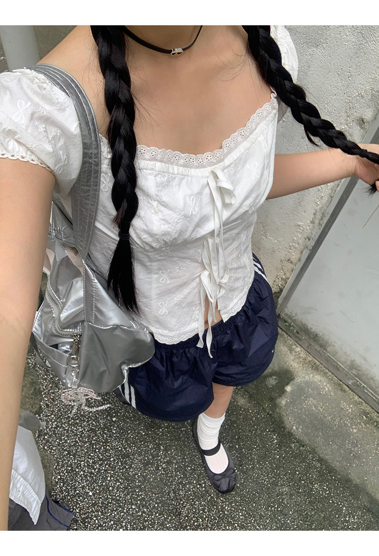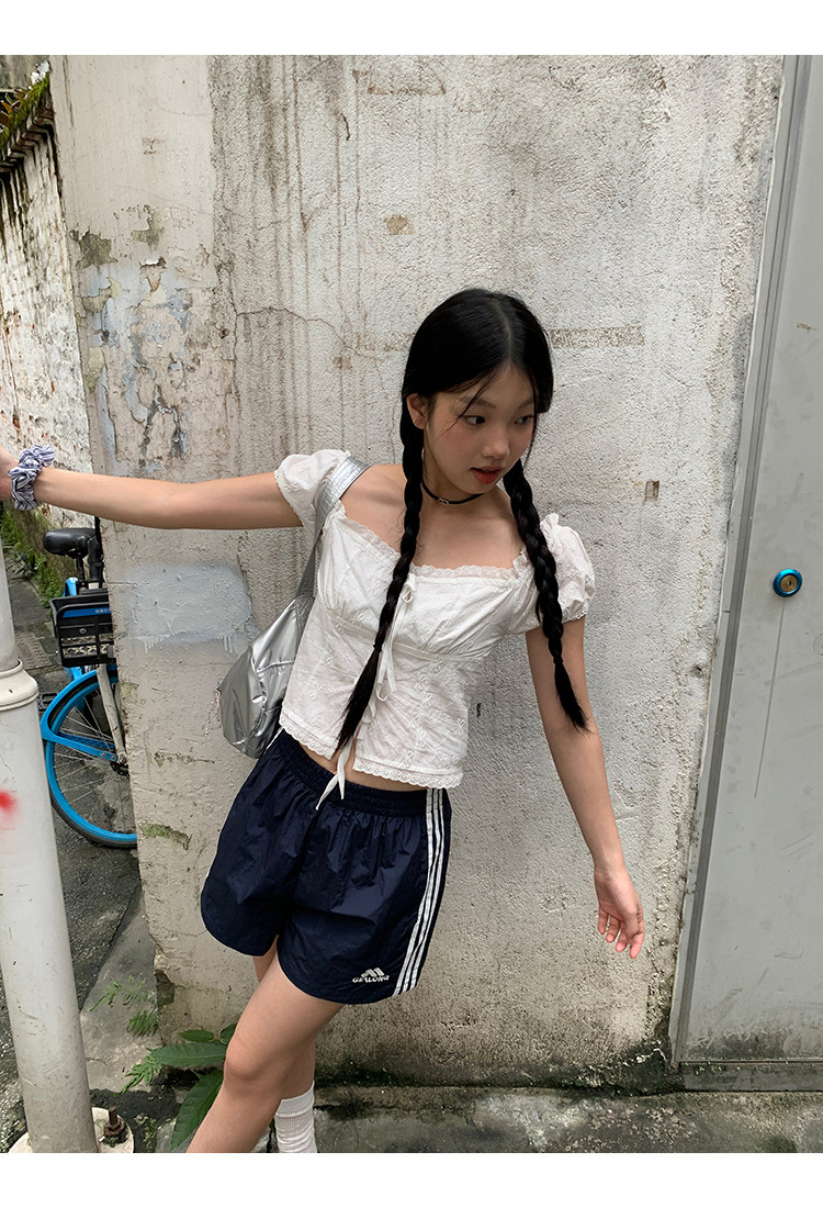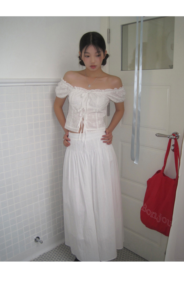 领口的松紧带设计,露肩穿也不会担心往下掉