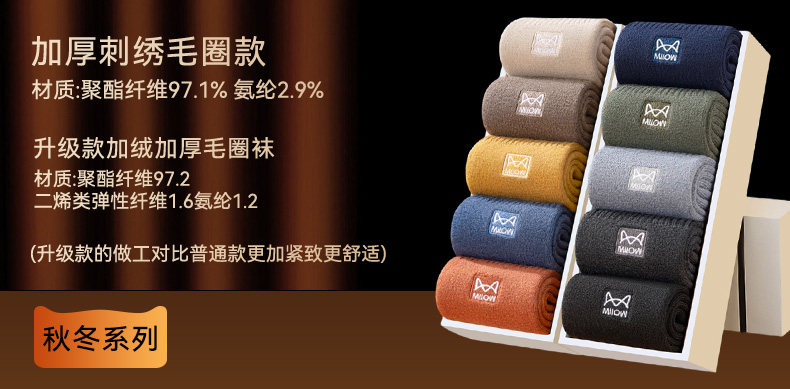 【10A Antibacterial】Catman Men's Socks Autumn and Winter 100% Genuine Pure Cotton Mid-Calf Deodorant Sweat-Absorbing Sports Long Socks