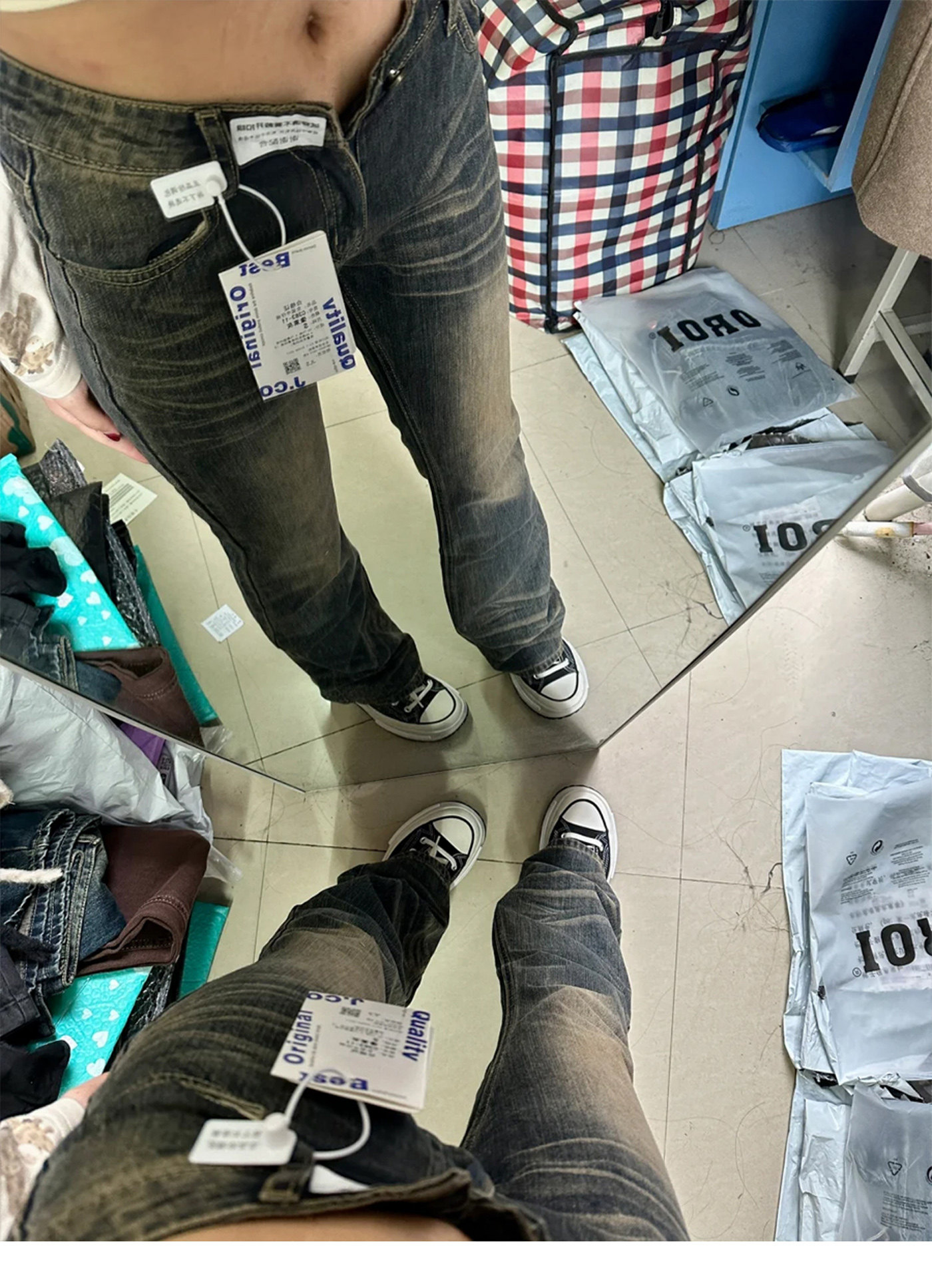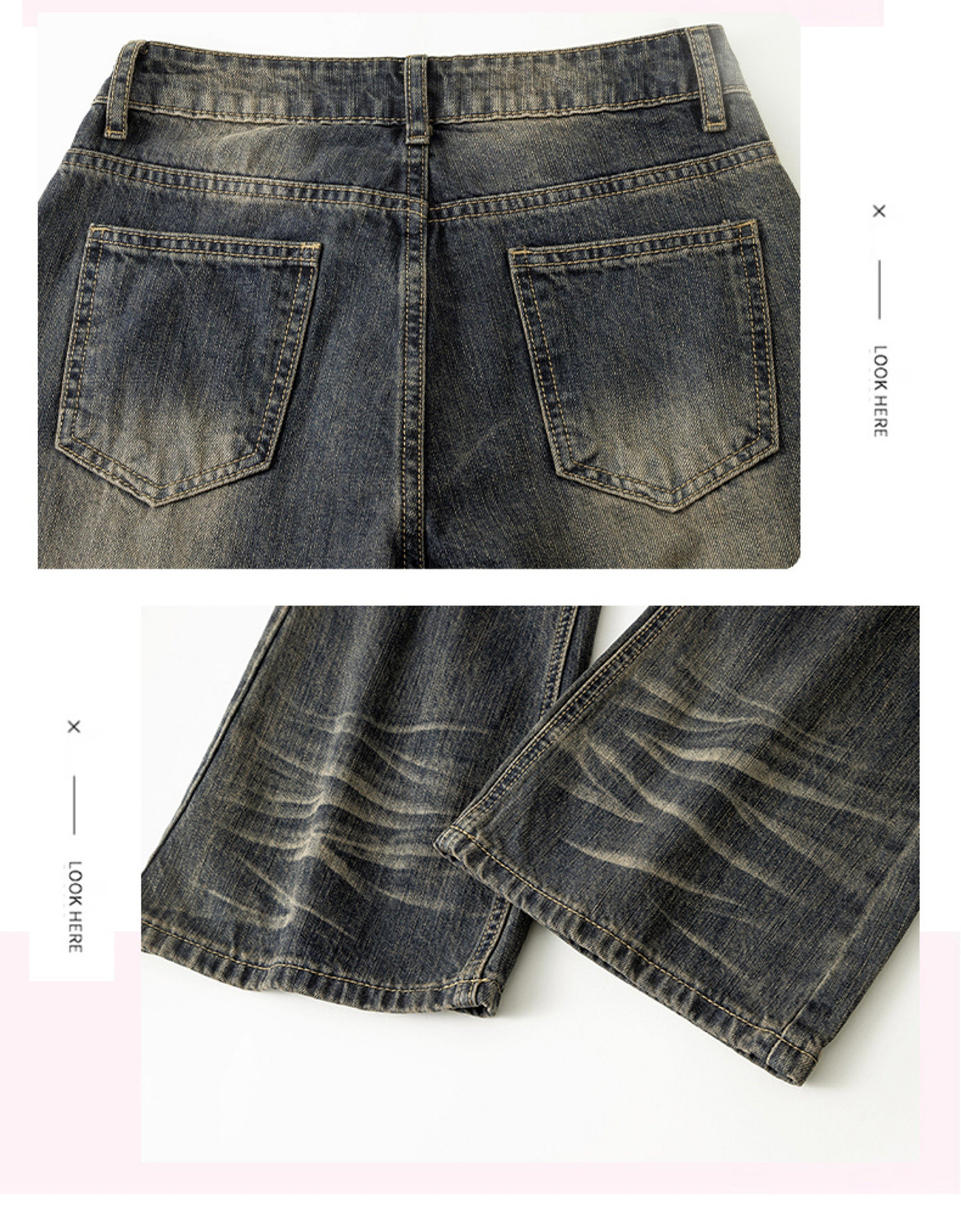 American-Style Flared Jeans for Women, 2025 New Low-Waist Slimming Wide-Leg Loose Straight-Leg Floor-Length Bootcut Pants