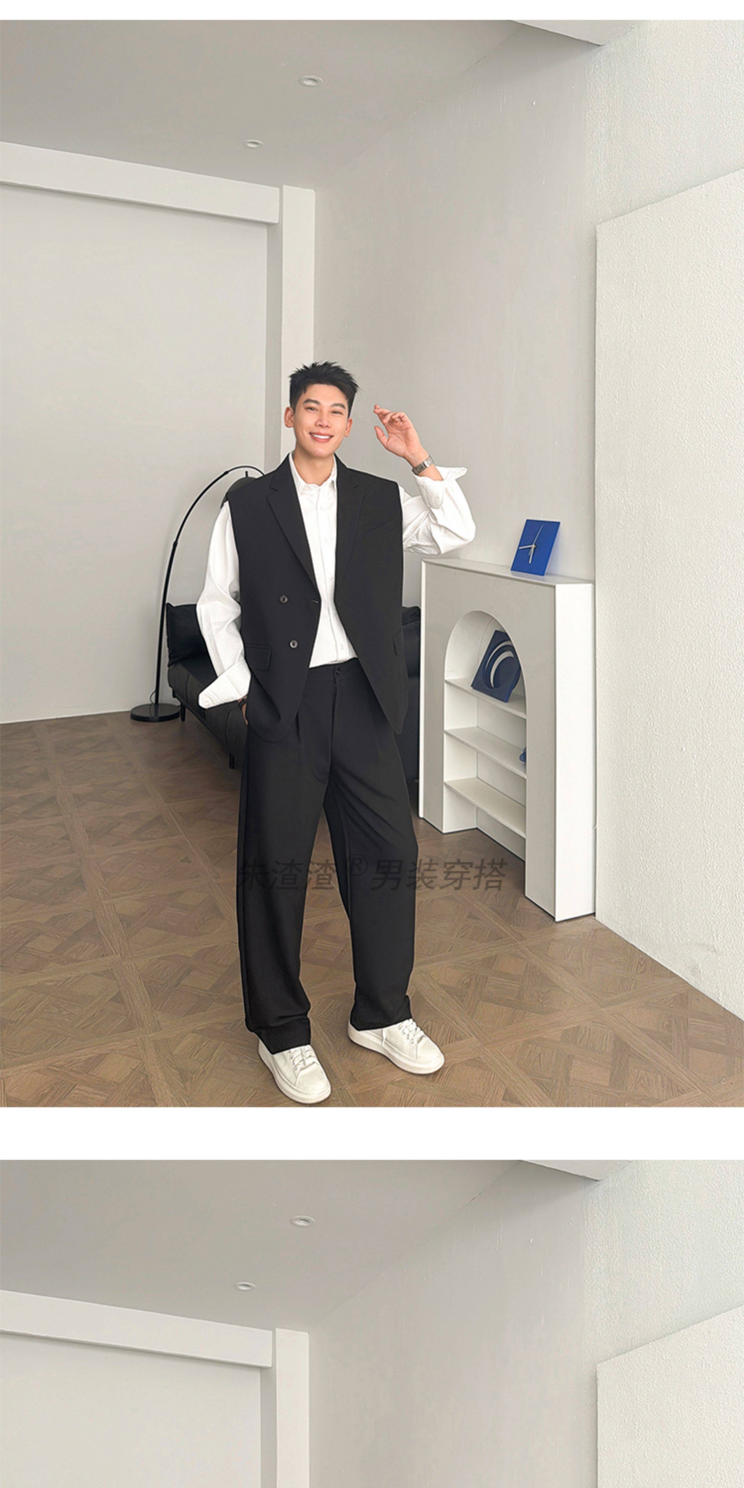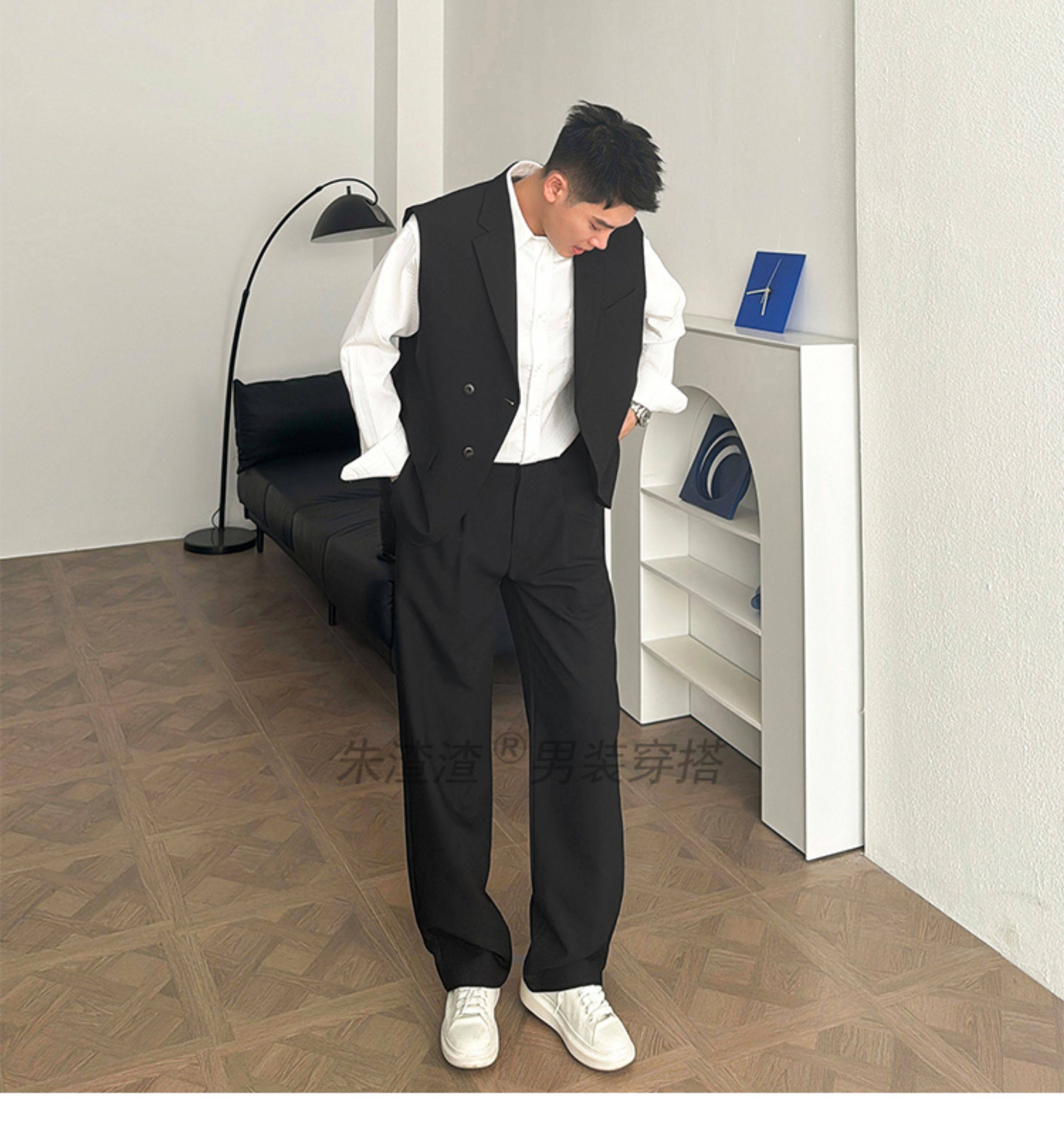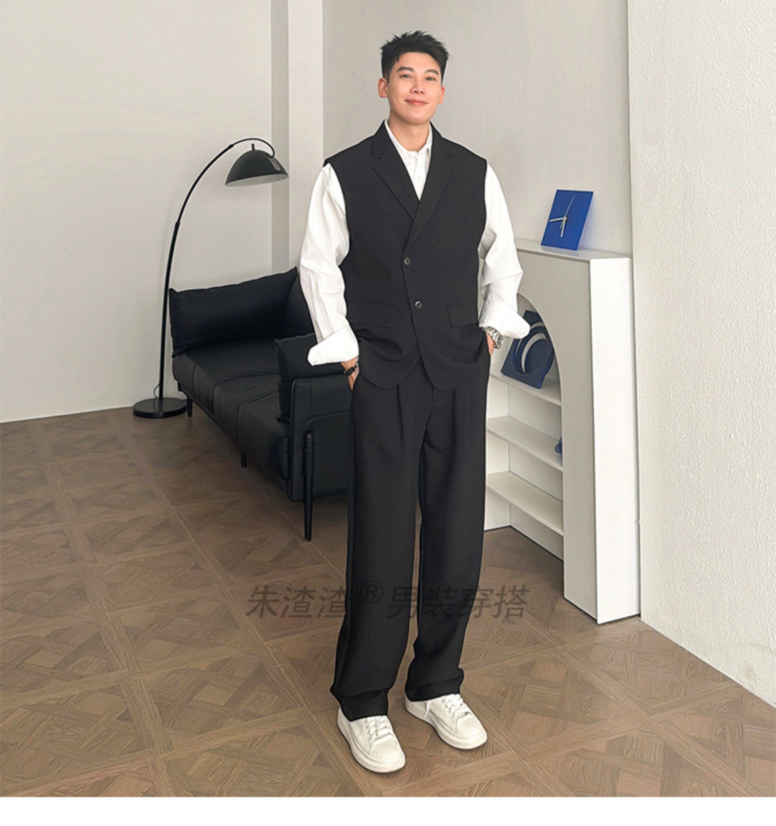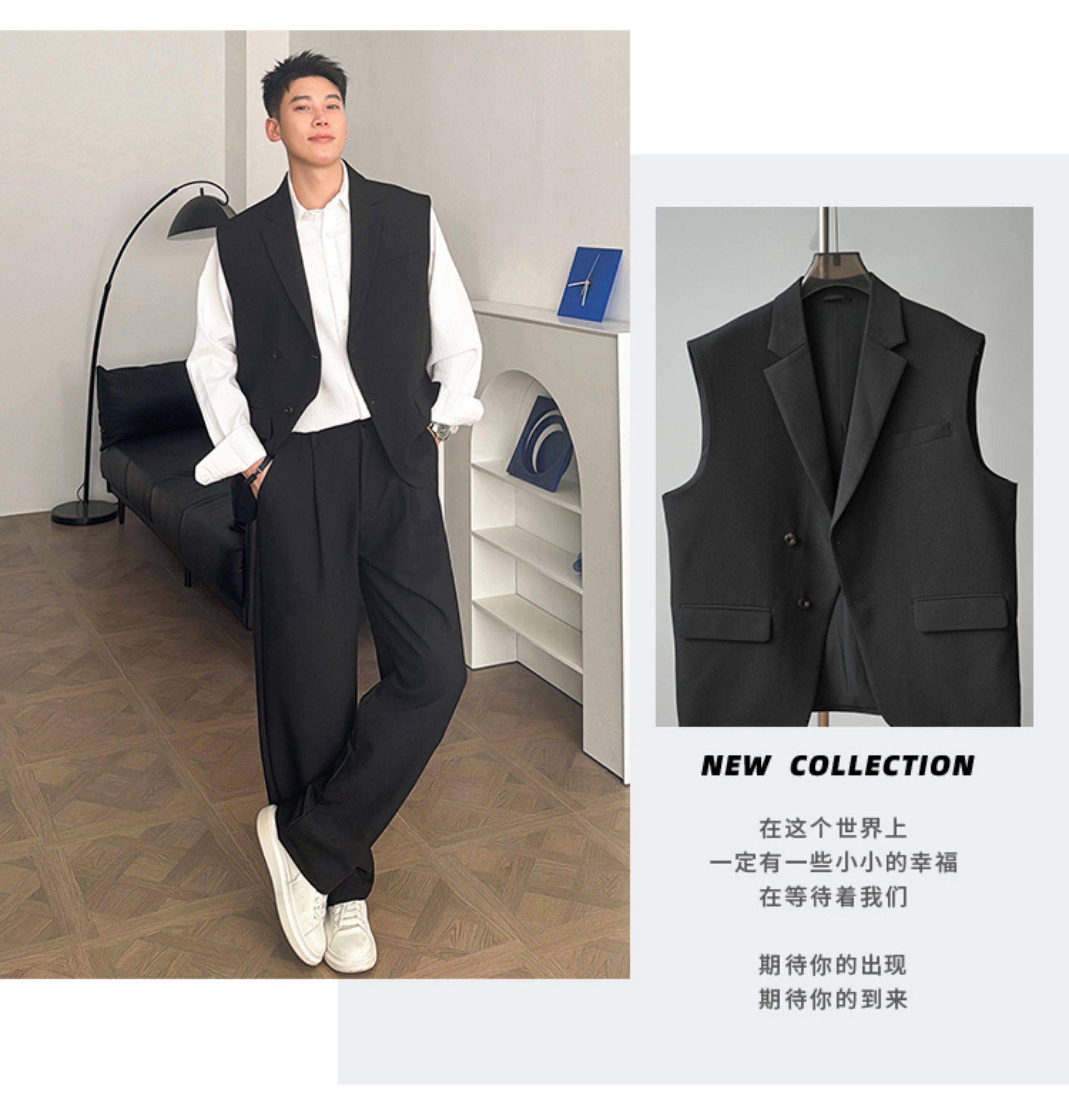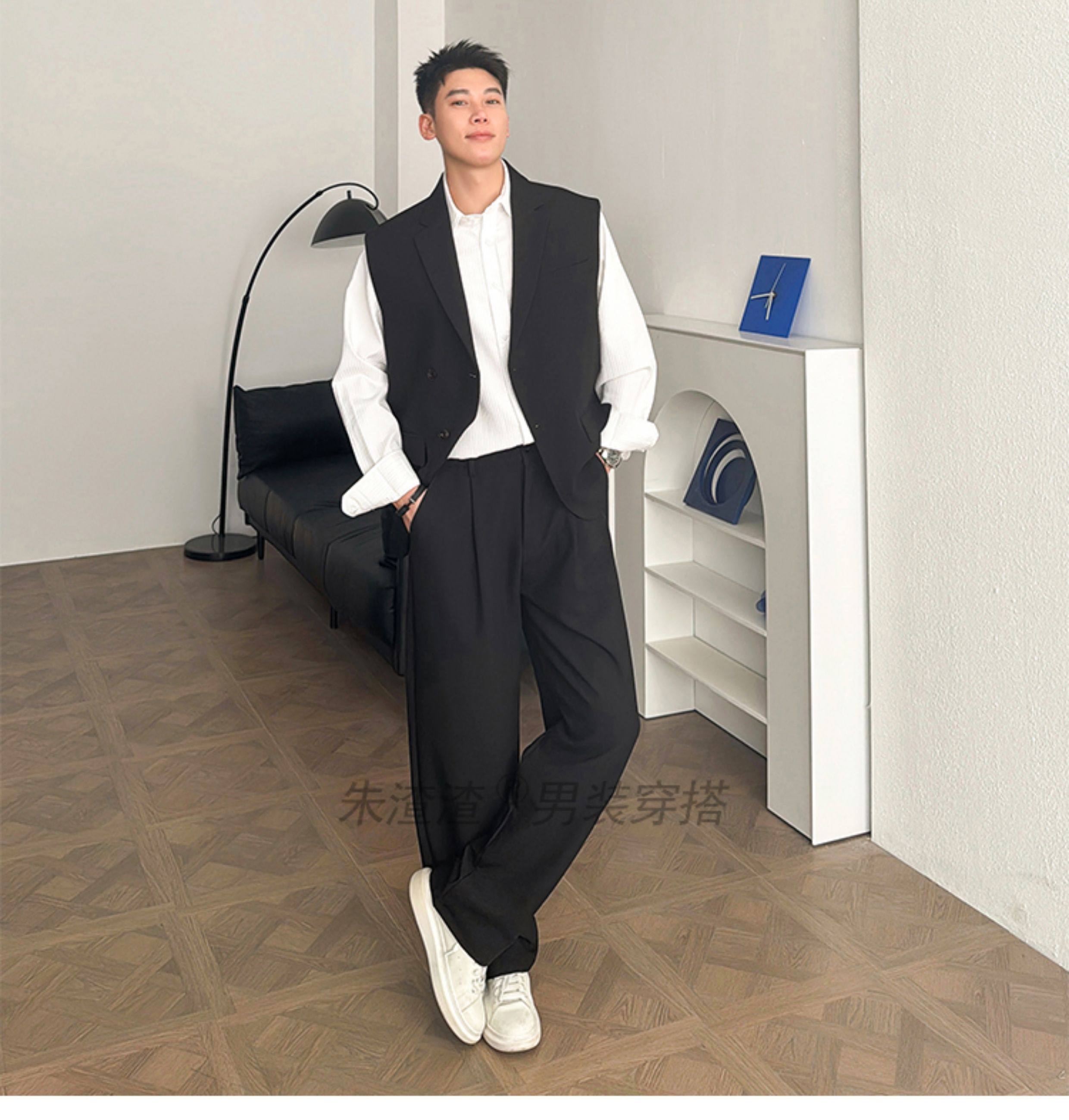 Chic Korean-Style Trendy Sleeveless Suit Vest Two-Piece Set for Men, Groomsmen Casual Suit Pants