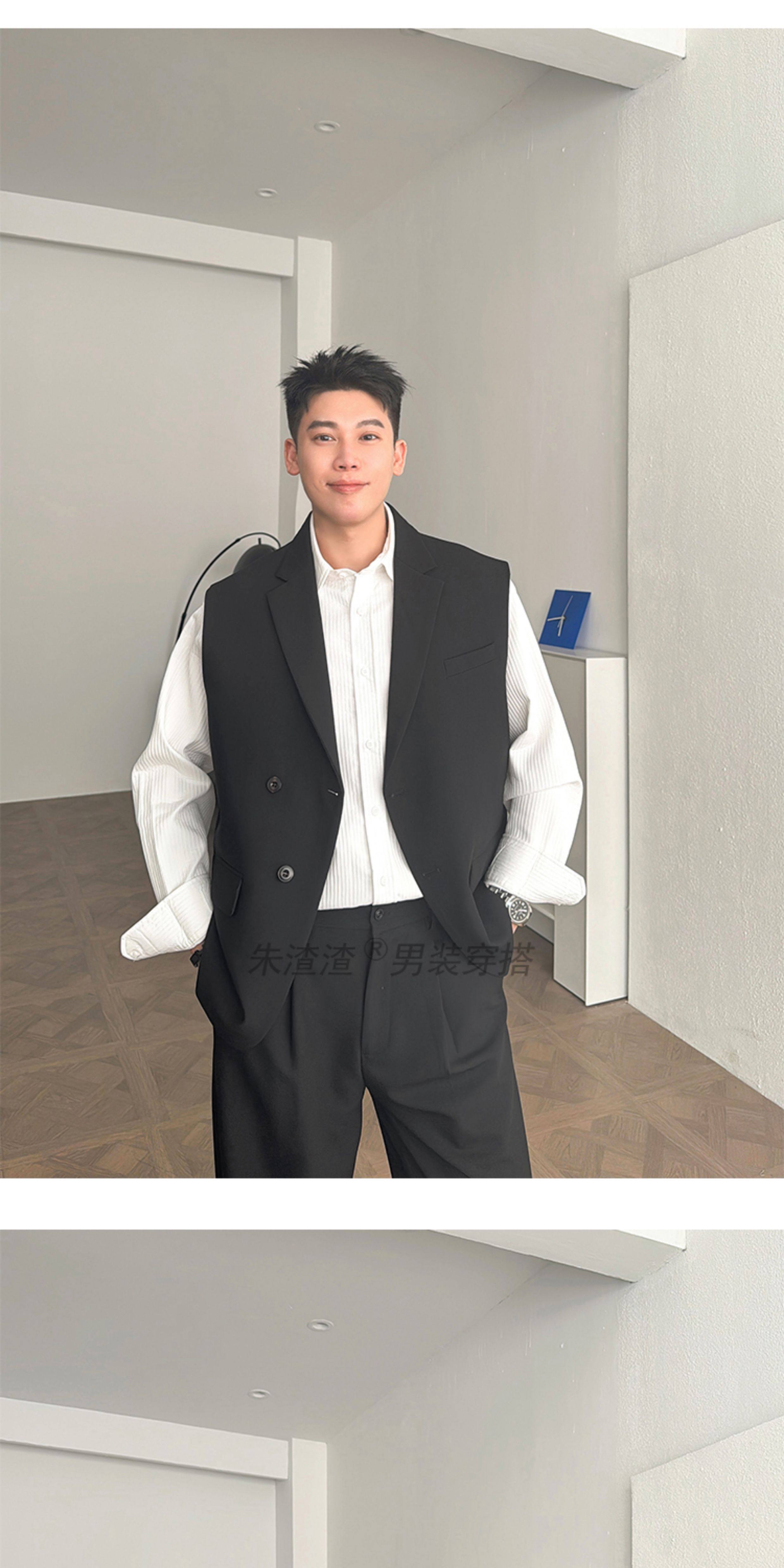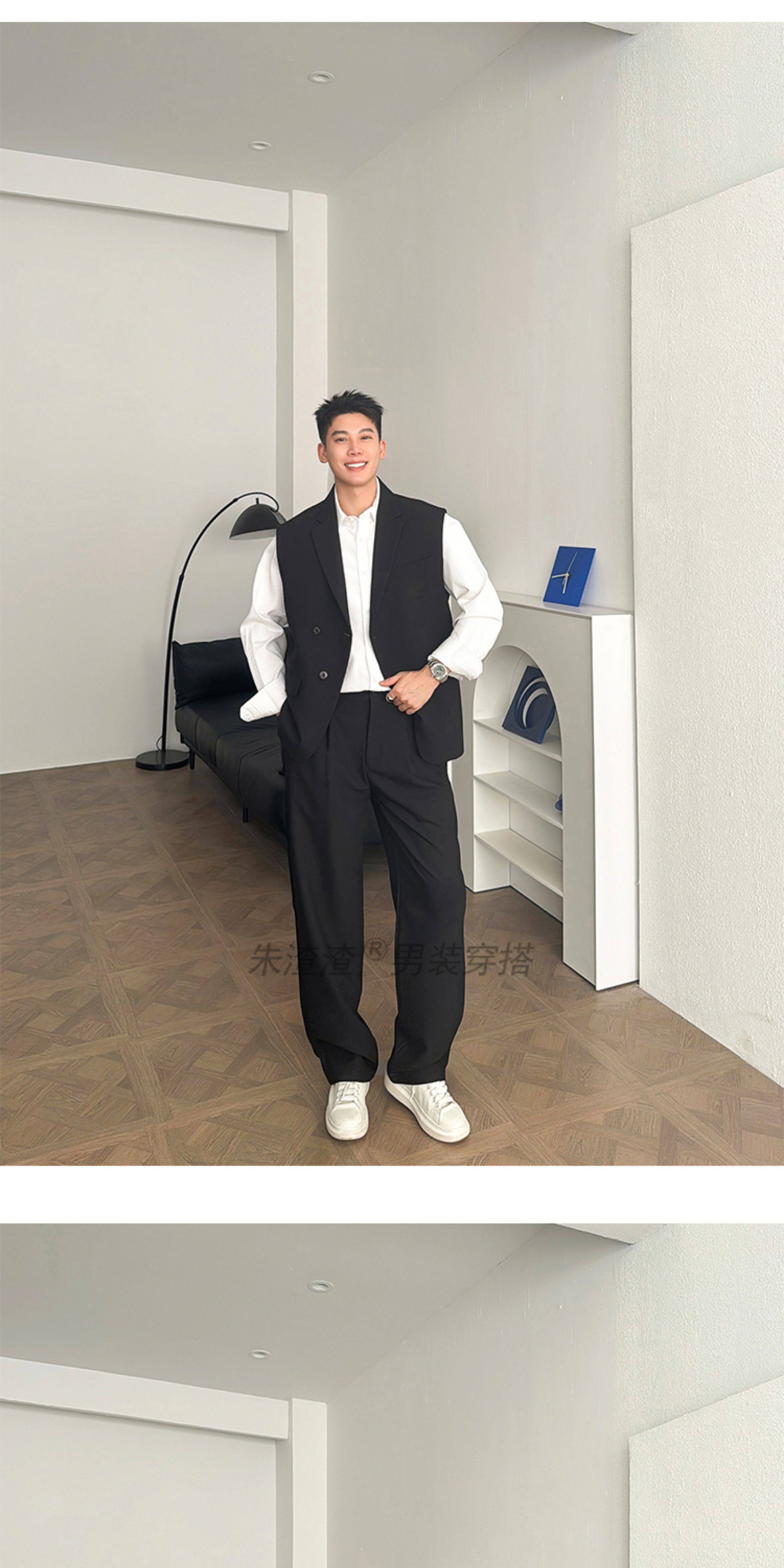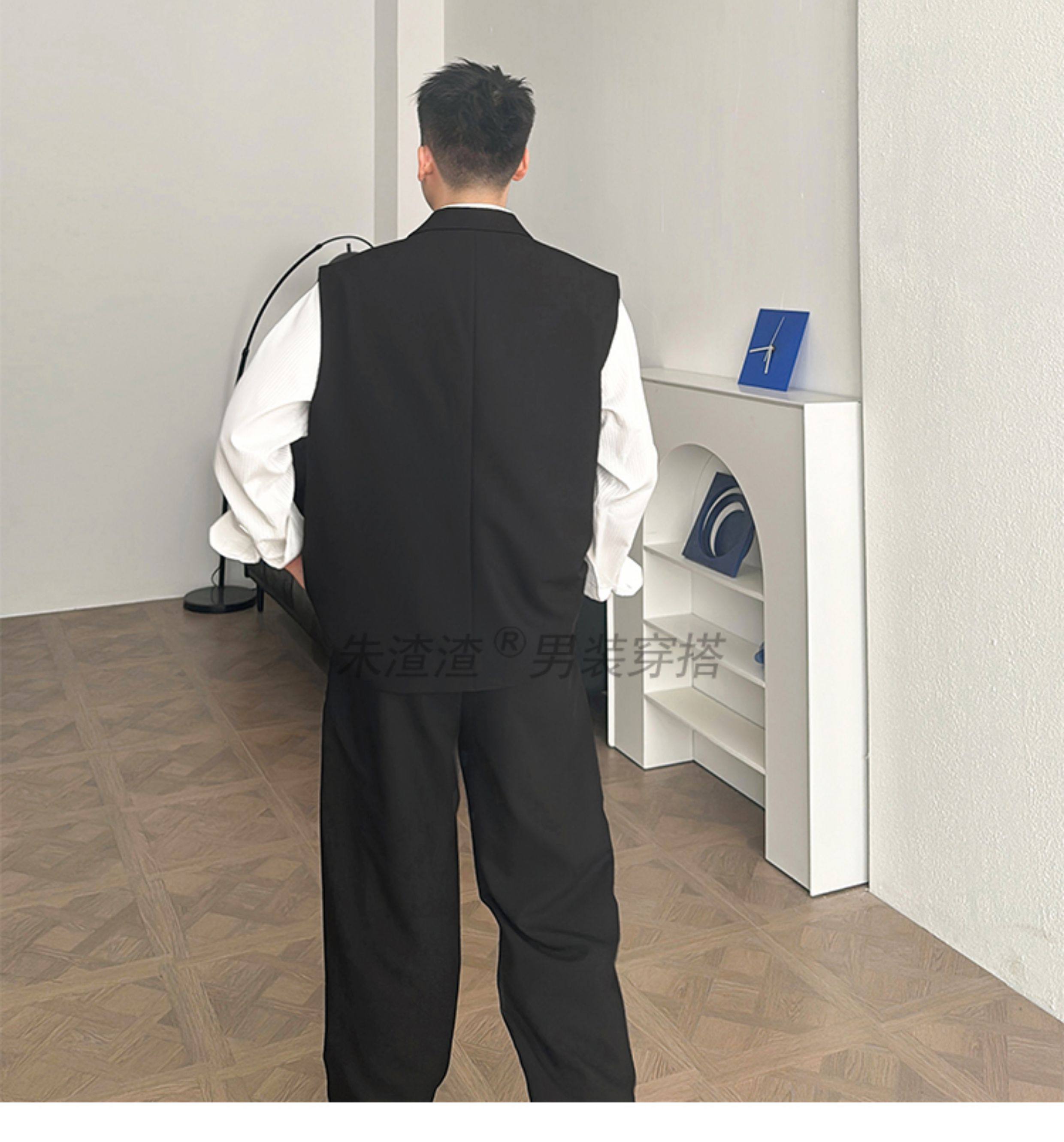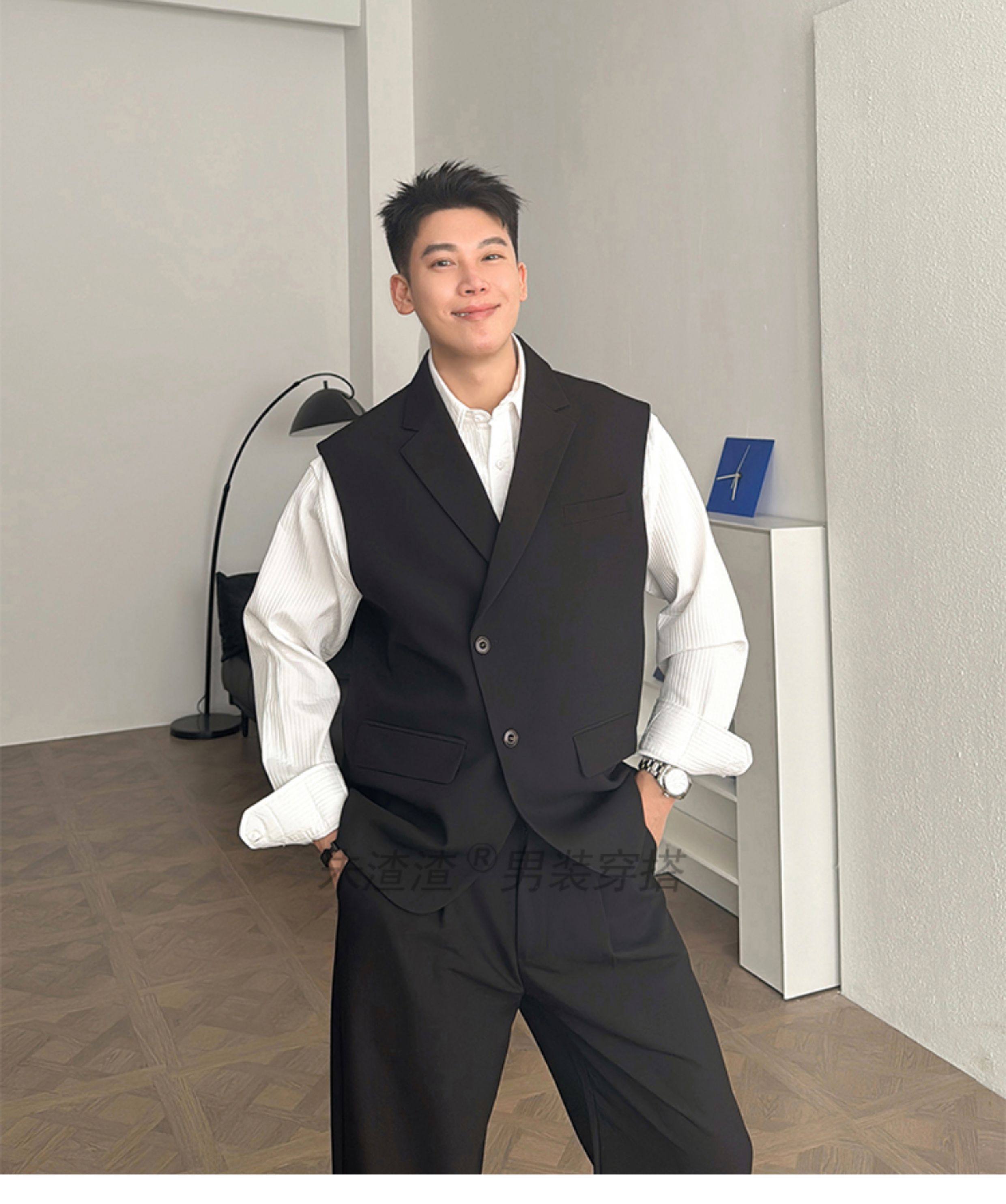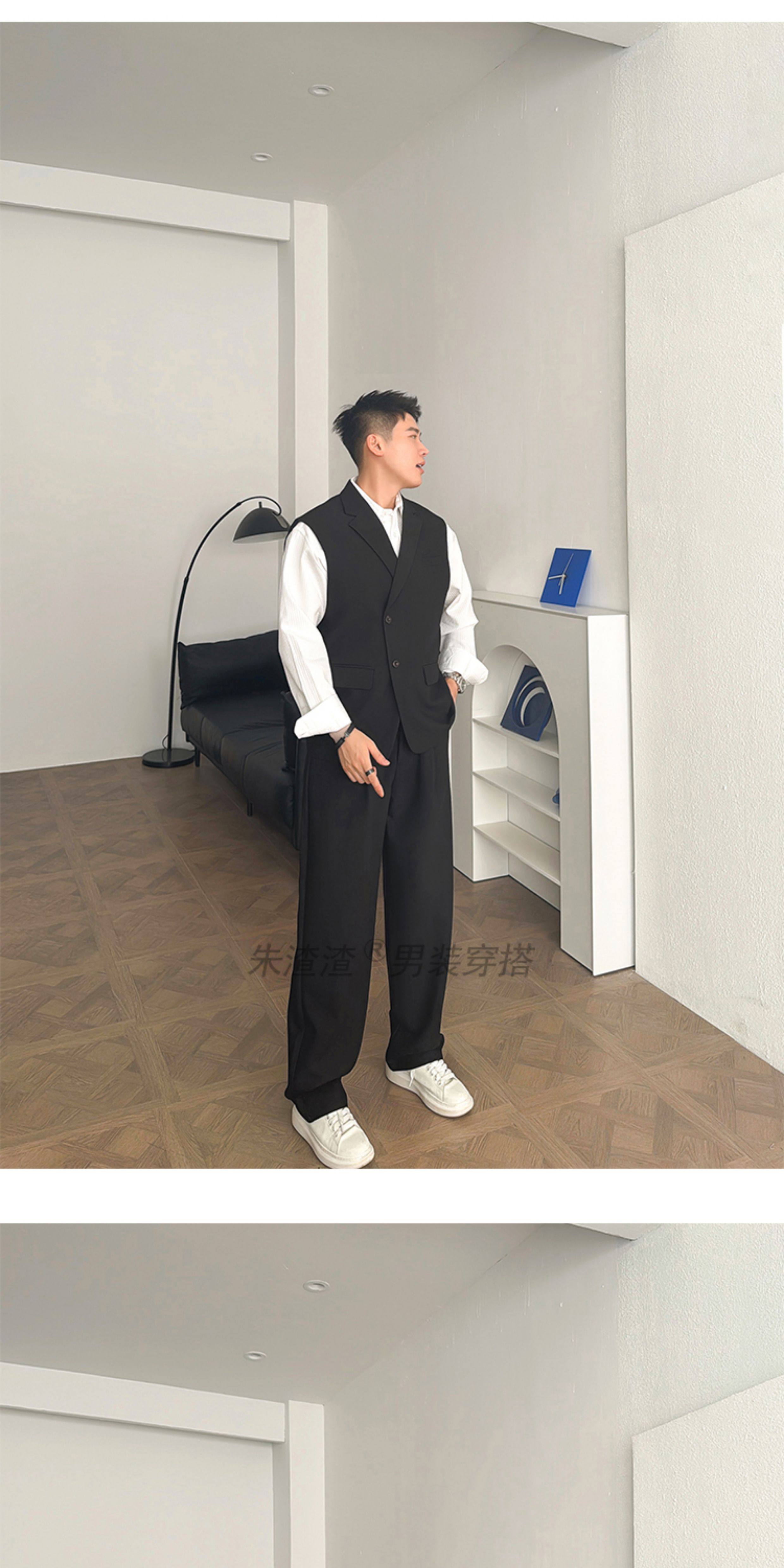 Chic Korean-Style Trendy Sleeveless Suit Vest Two-Piece Set for Men, Groomsmen Casual Suit Pants