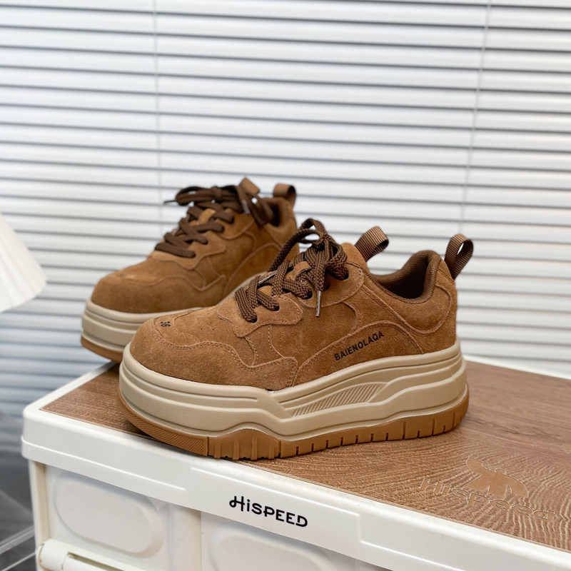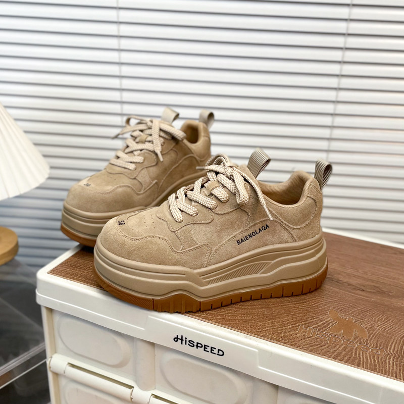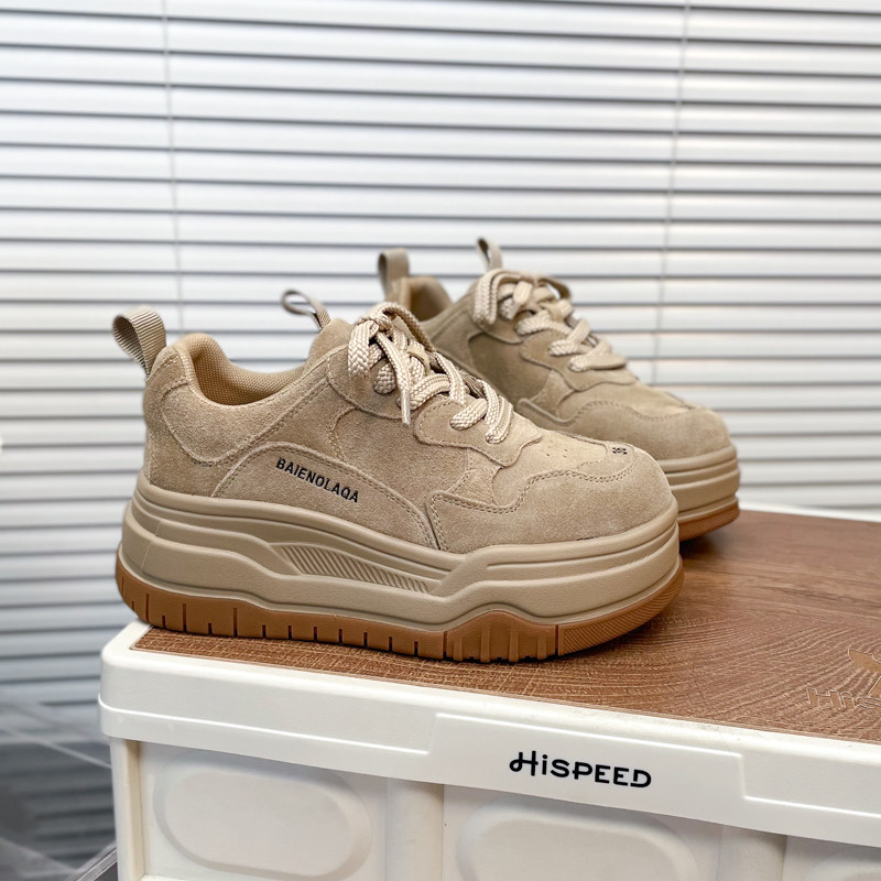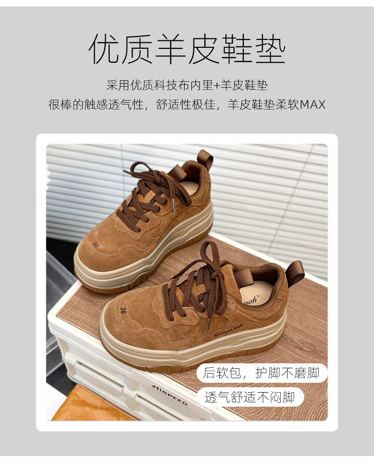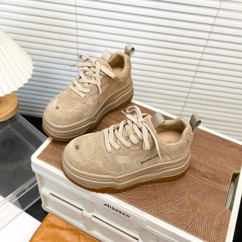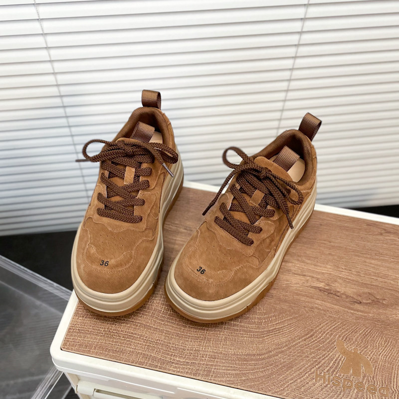 Hong Kong Matte Genuine Leather Thick-Soled Height-Increasing Casual Sneakers for Women 2025 Autumn Fashion Versatile Lace-Up Melard Platform Shoes