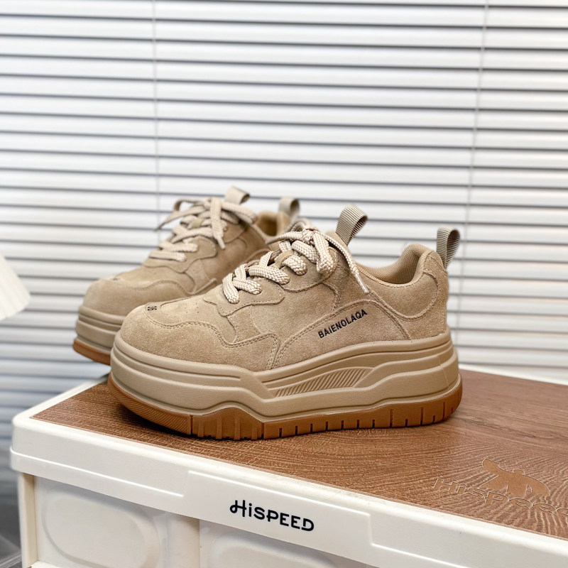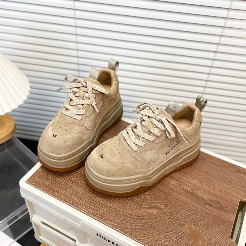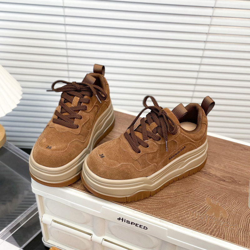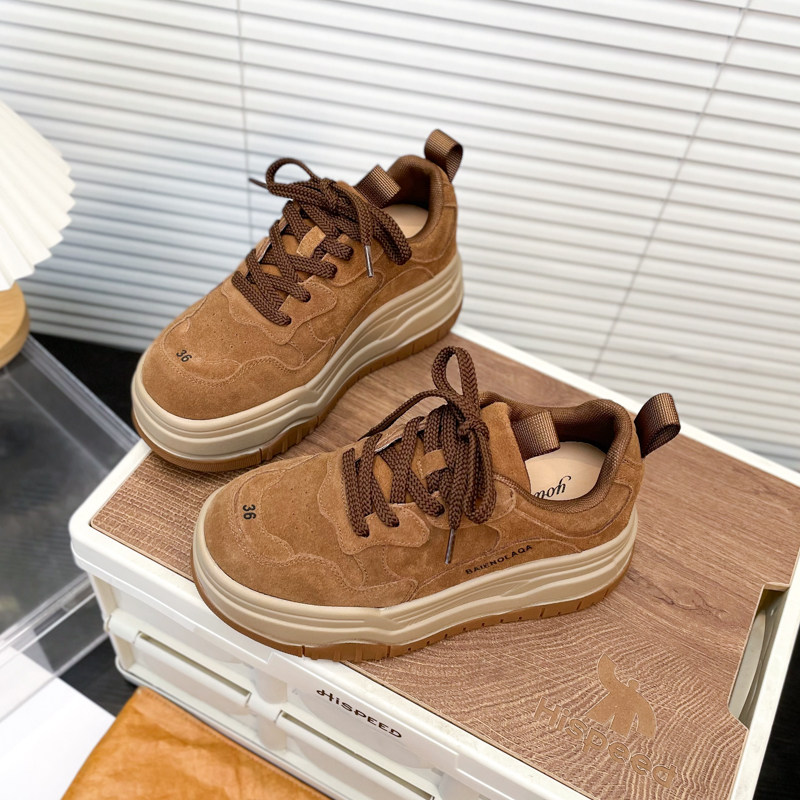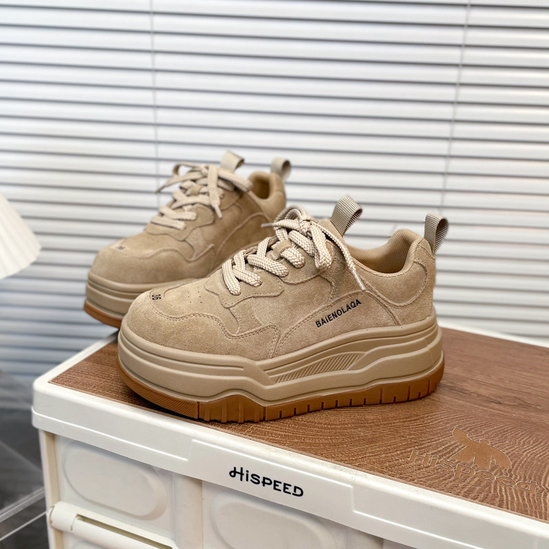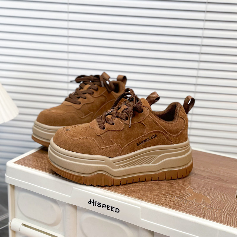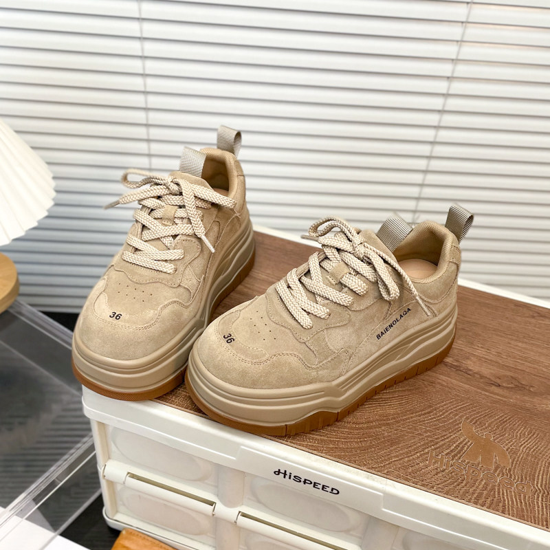 Hong Kong Matte Genuine Leather Thick-Soled Height-Increasing Casual Sneakers for Women 2025 Autumn Fashion Versatile Lace-Up Melard Platform Shoes