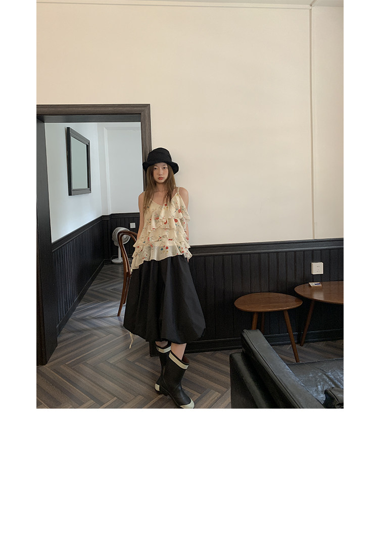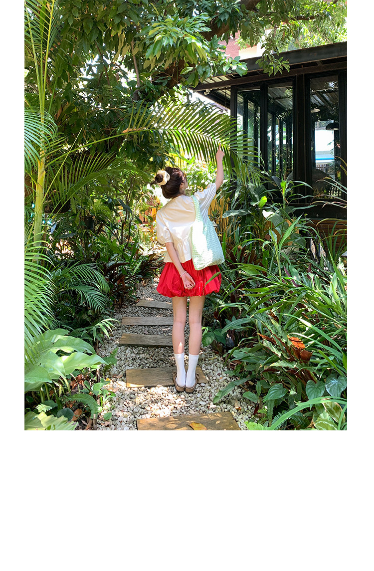 Xinbangbang LAOSHU Cloud-Like Puffy High-Waisted A-Line Ruffle Pleated Skirt for Women 2025 New Lantern Short Skirt