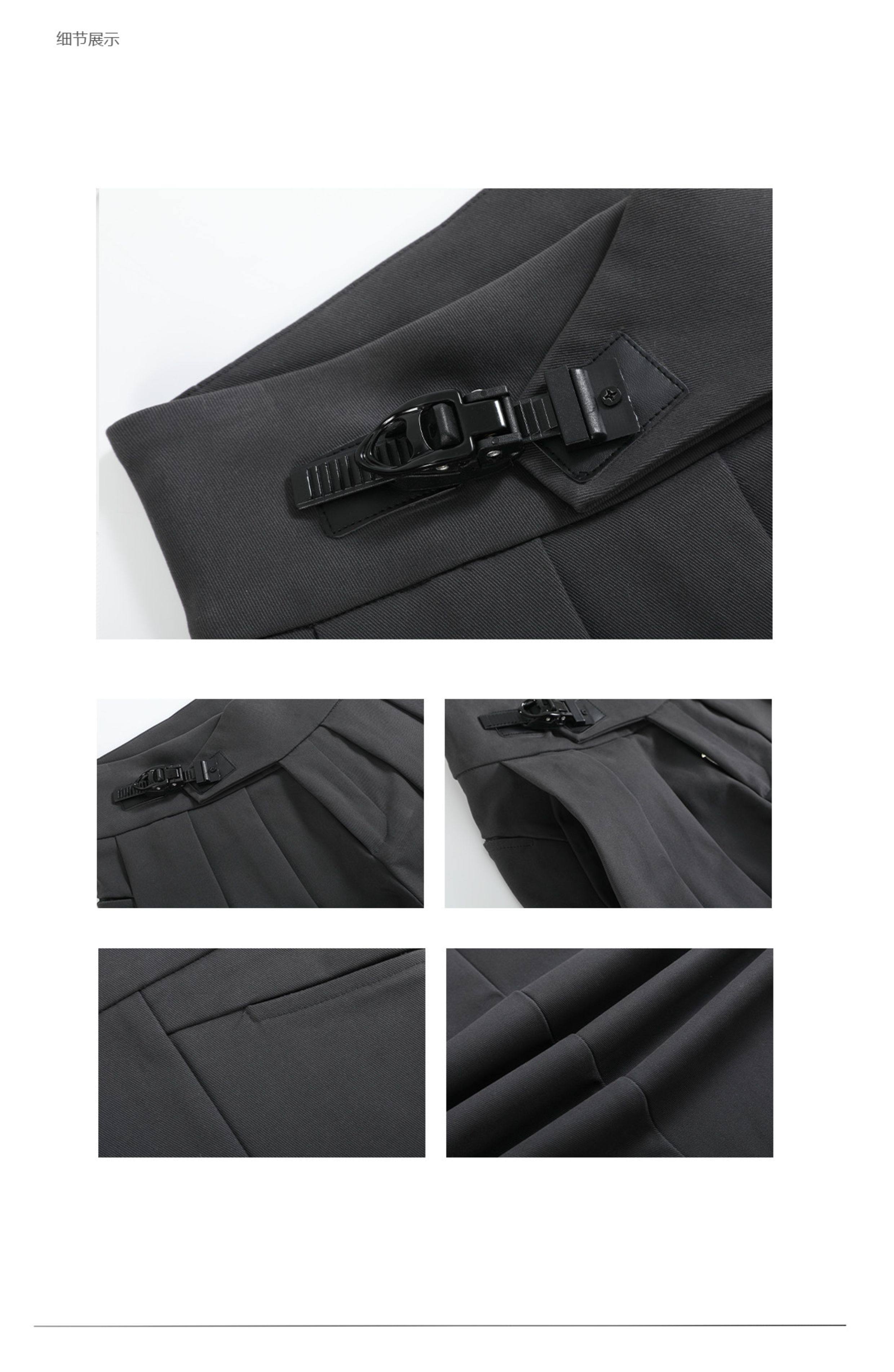 Bevan up | Slide Buckle* Gray Gauze Waist-Cinching Slide Buckle Silhouette Pleated Wide-Leg Trousers