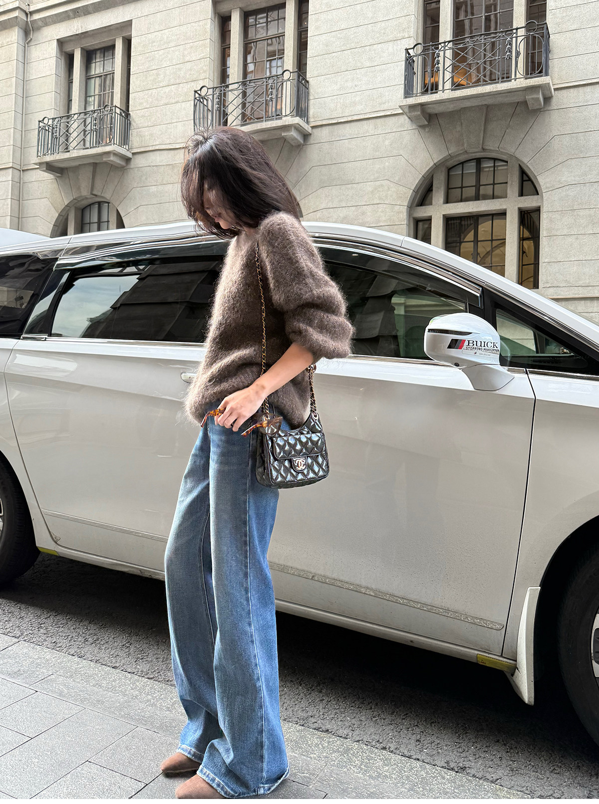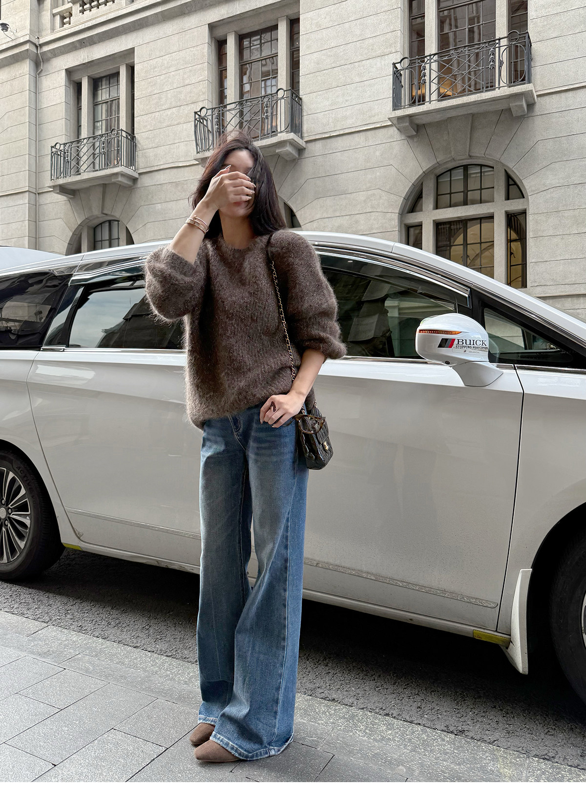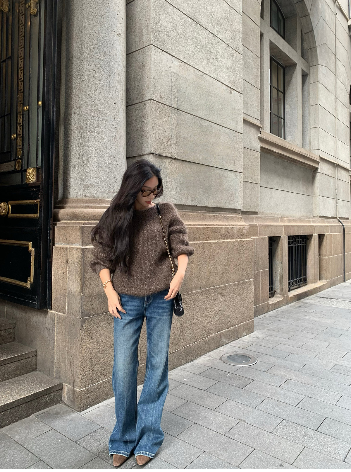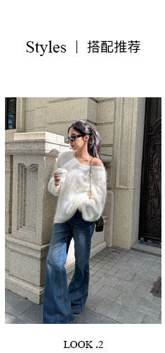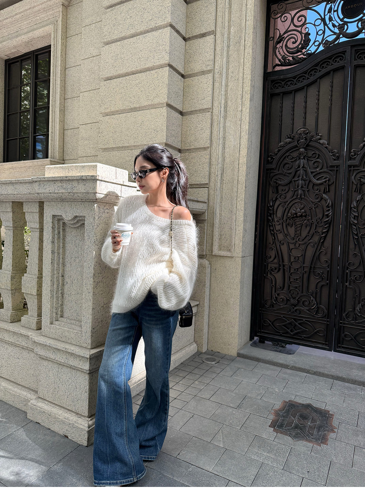 Shi Wei Liang Slimming Magic Tool Y*L Classic Style Handmade Whiskered Washed Floor-Length Flared Jeans