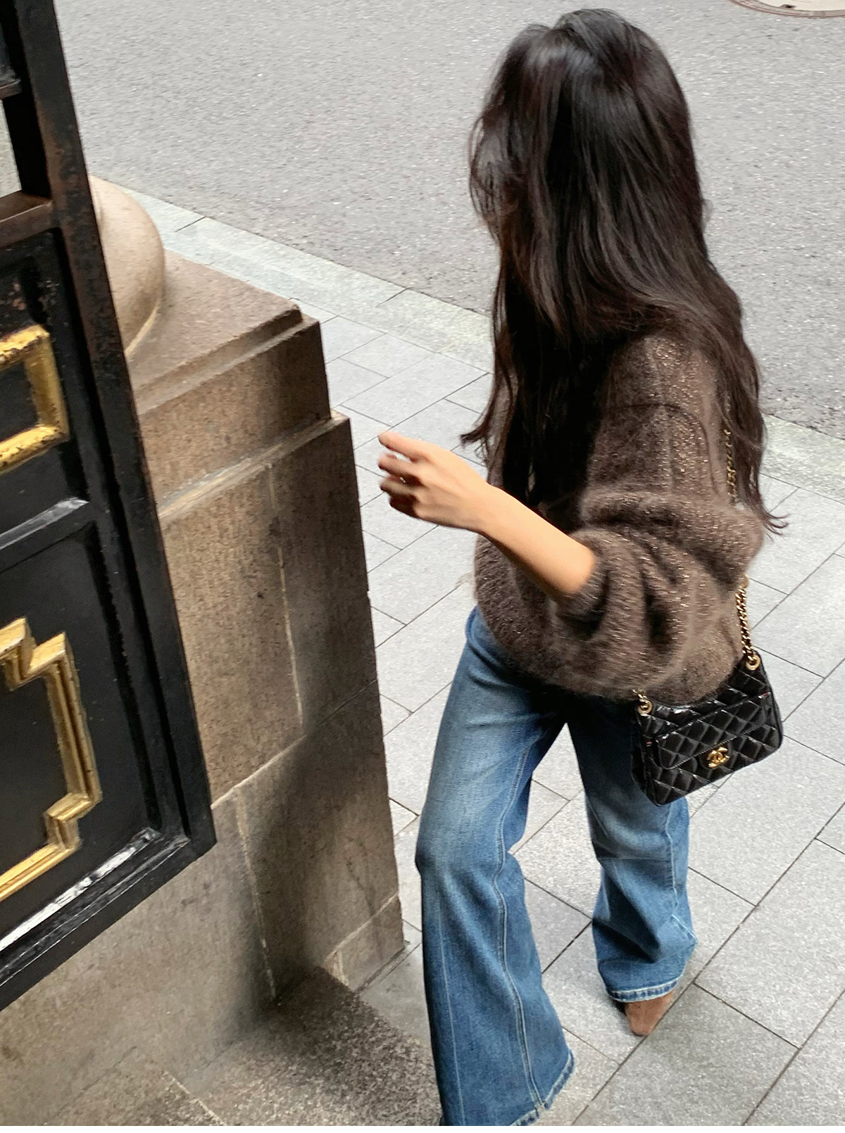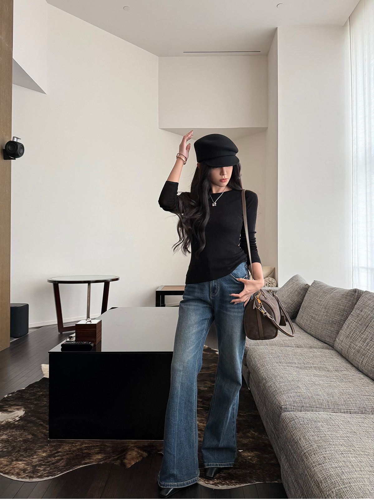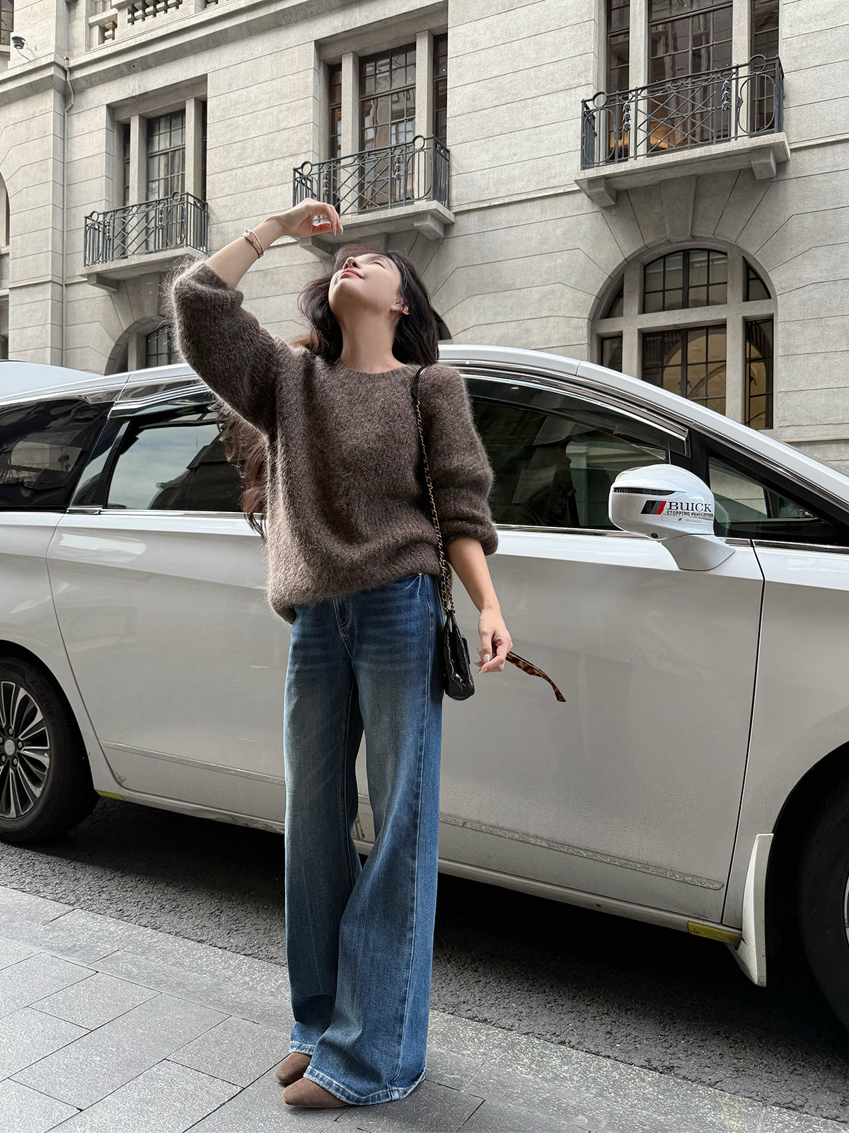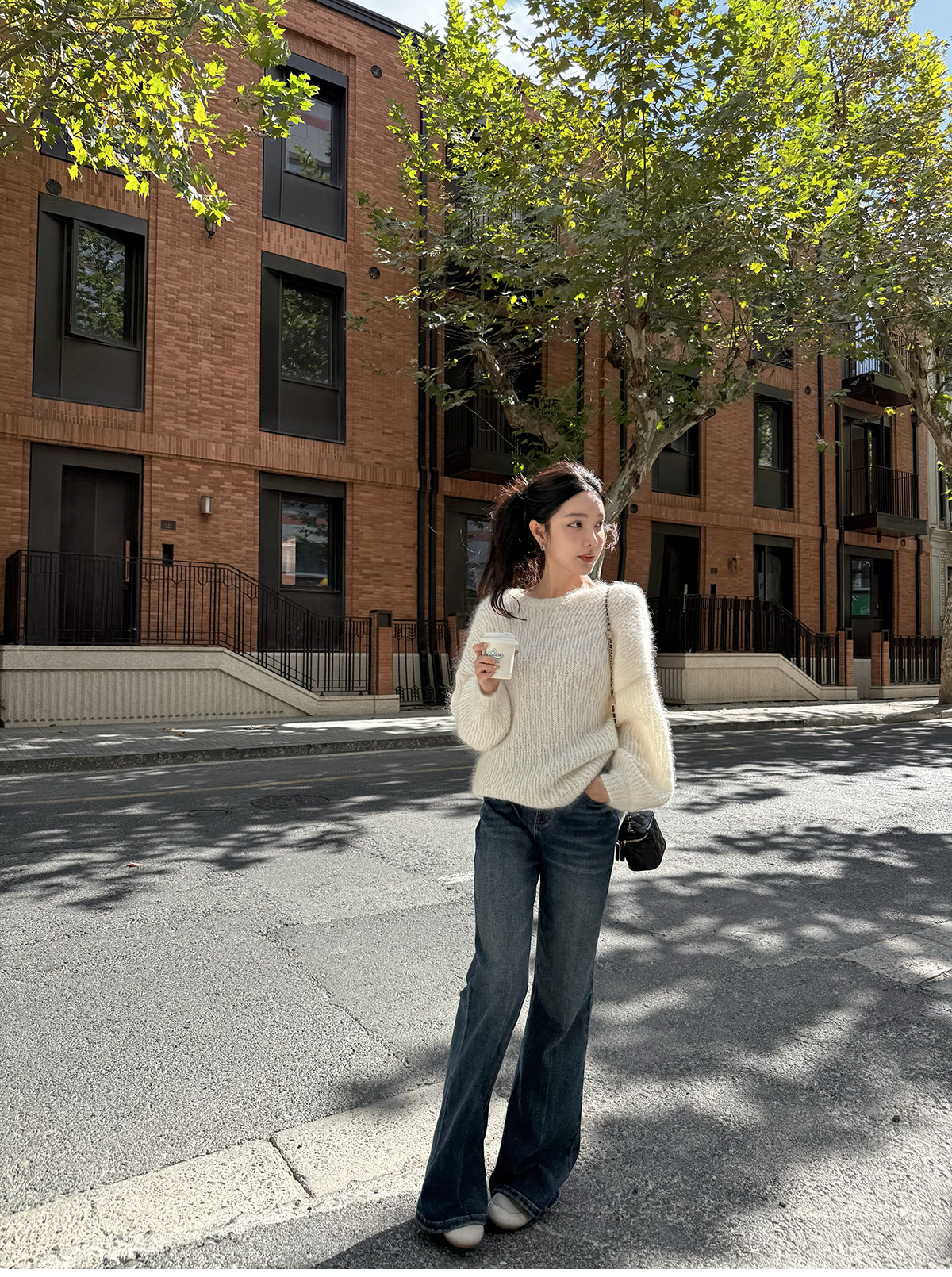 Shi Wei Liang Slimming Magic Tool Y*L Classic Style Handmade Whiskered Washed Floor-Length Flared Jeans