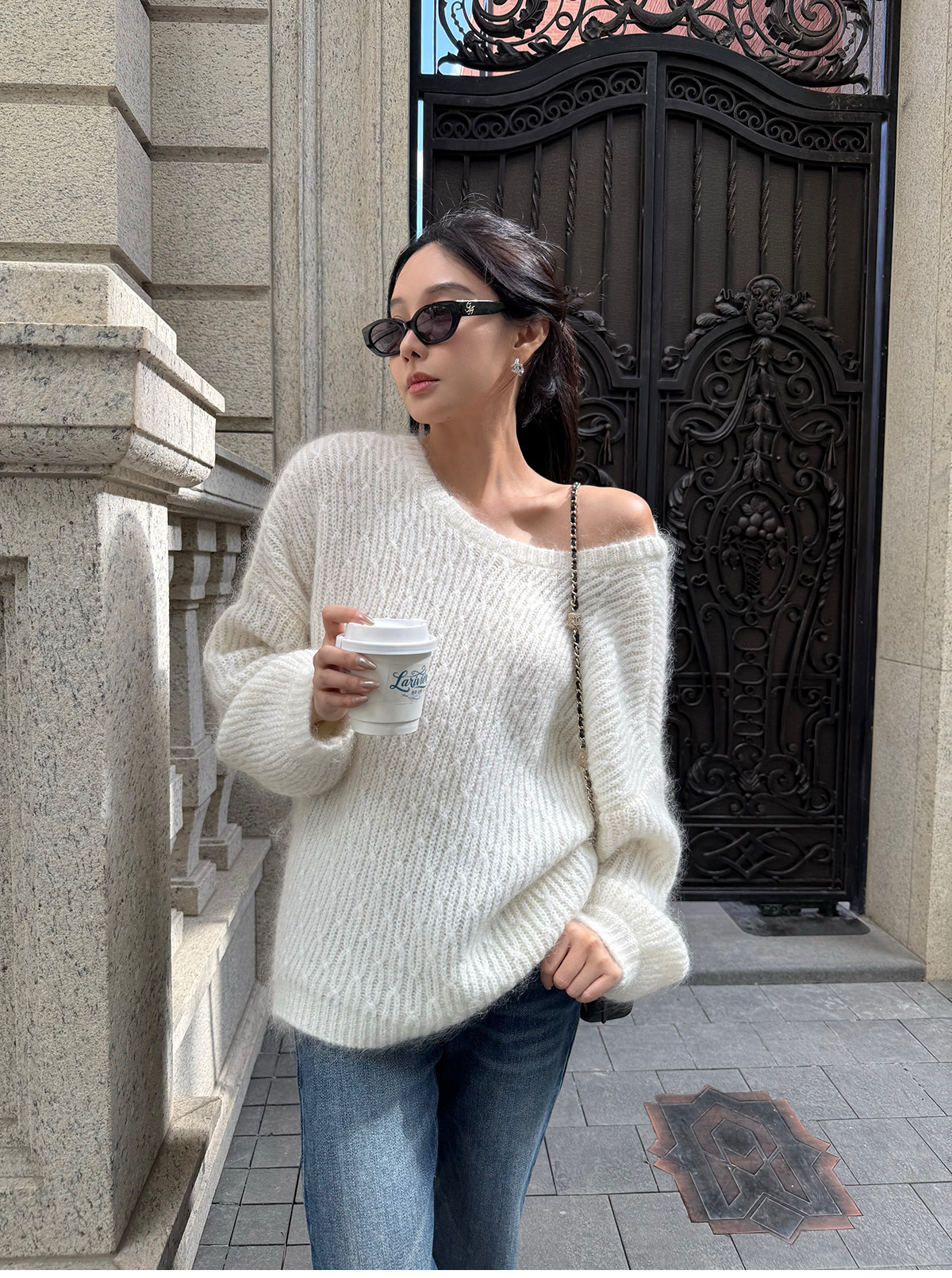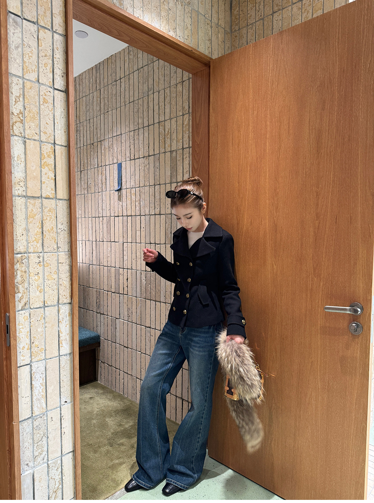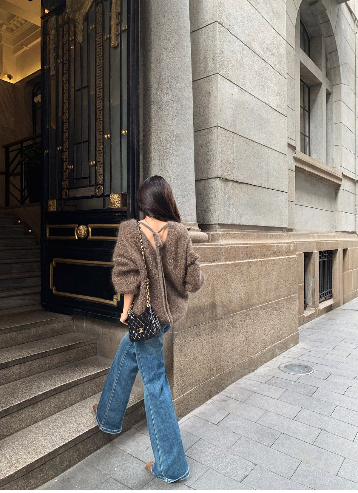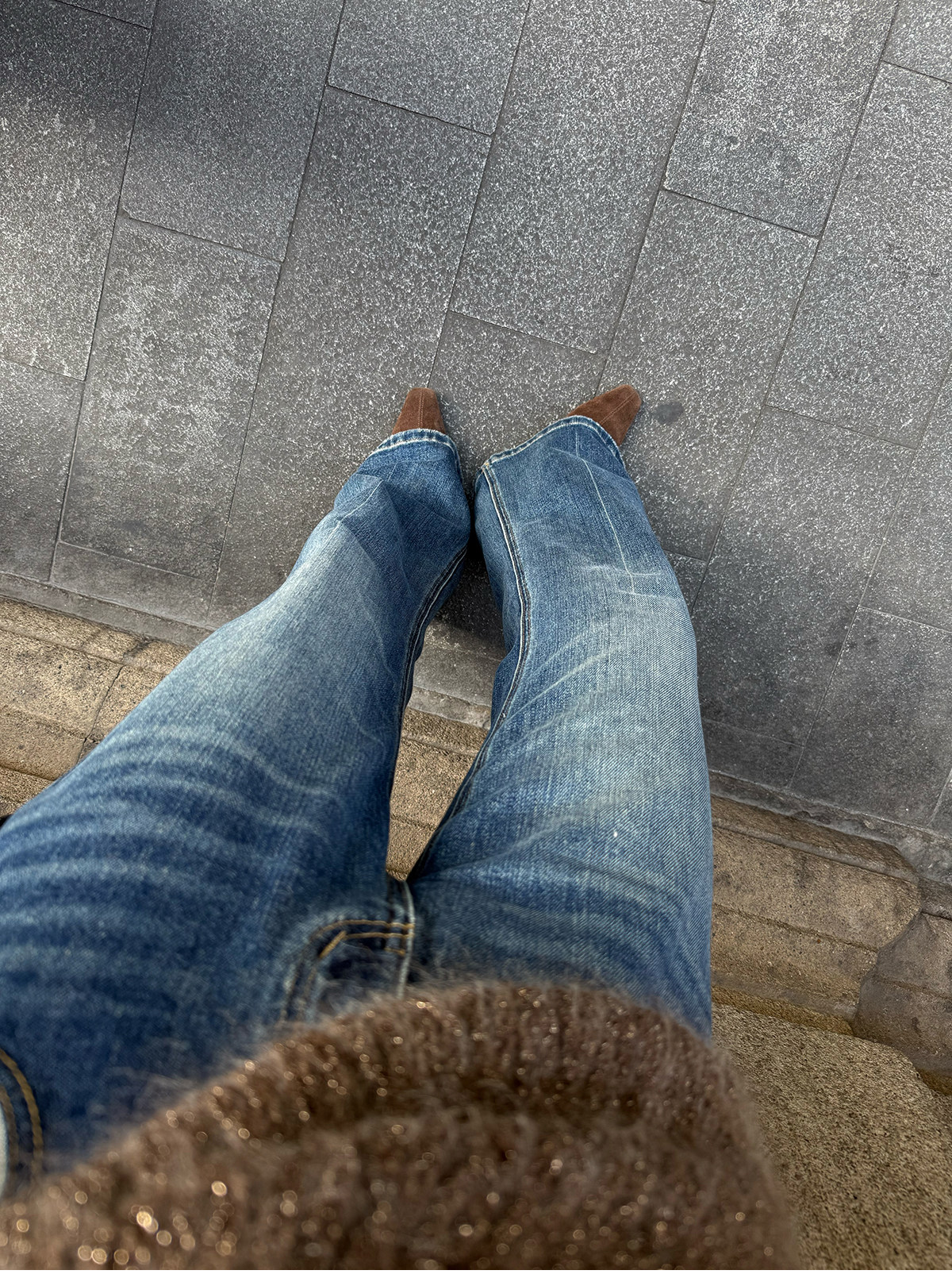 Shi Wei Liang Slimming Magic Tool Y*L Classic Style Handmade Whiskered Washed Floor-Length Flared Jeans