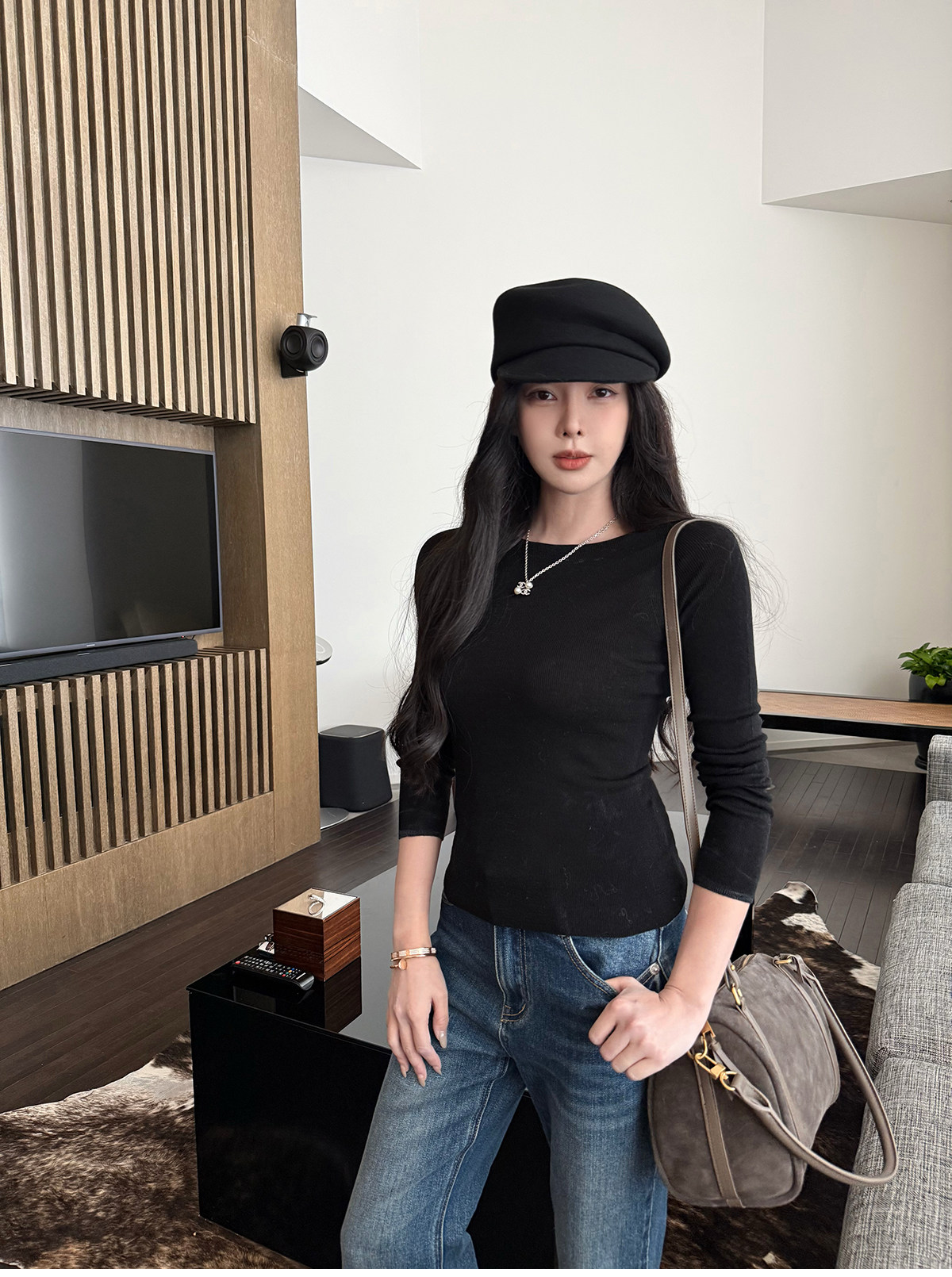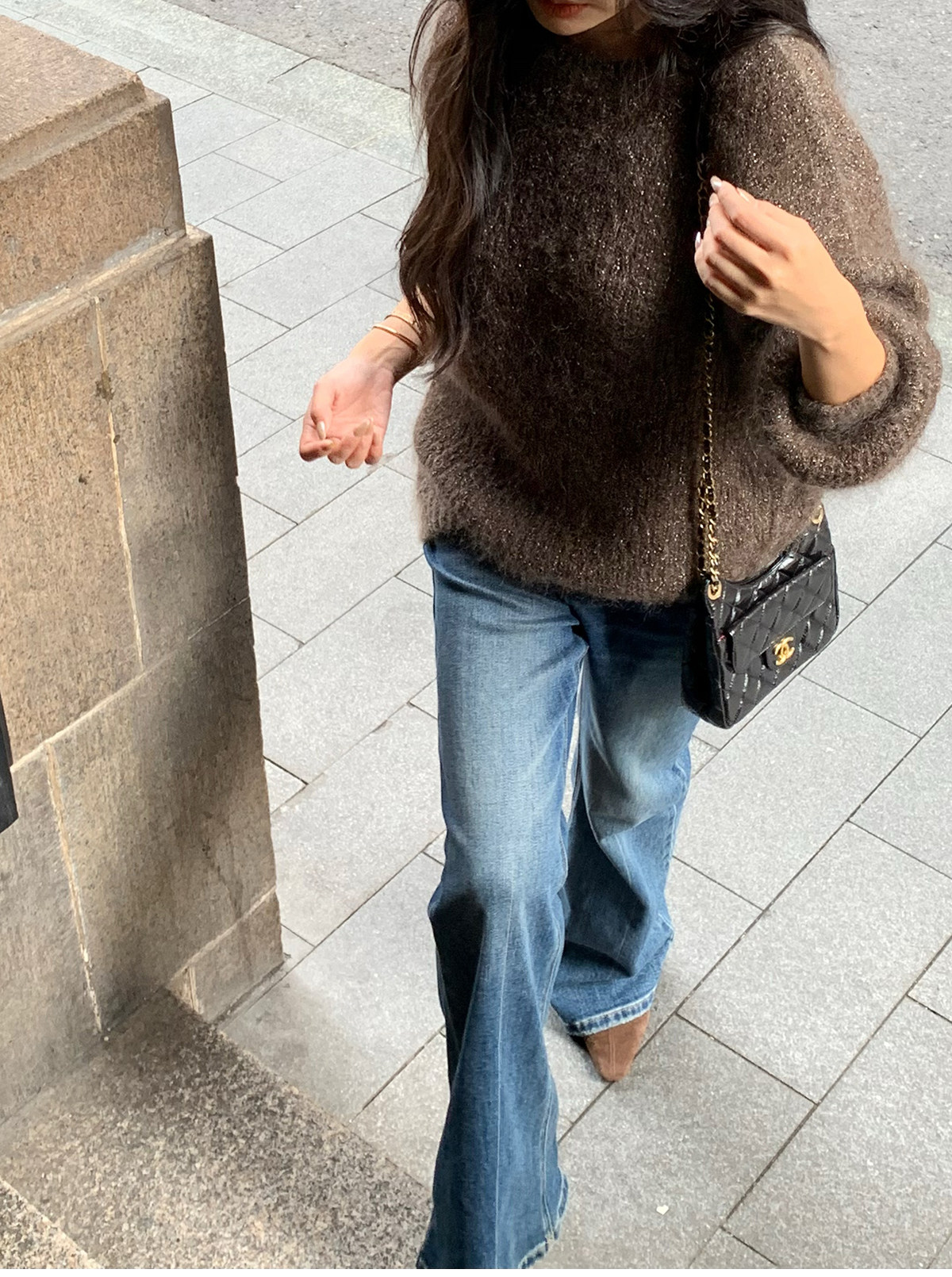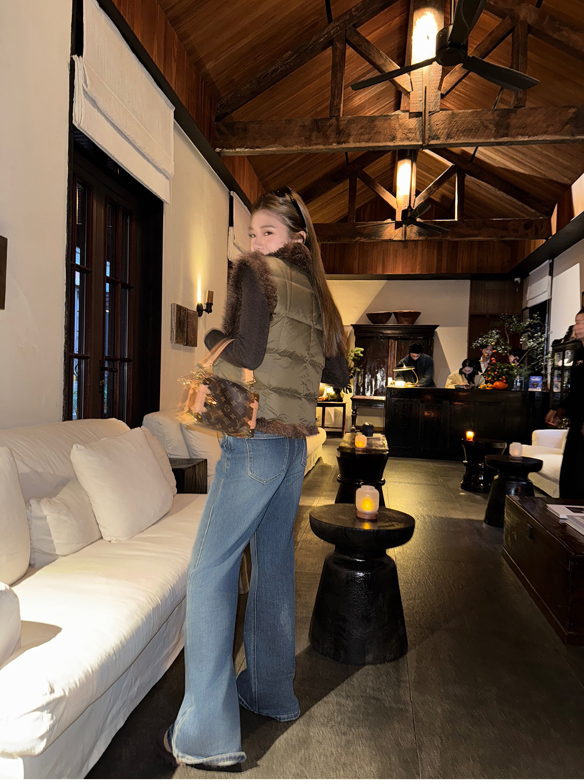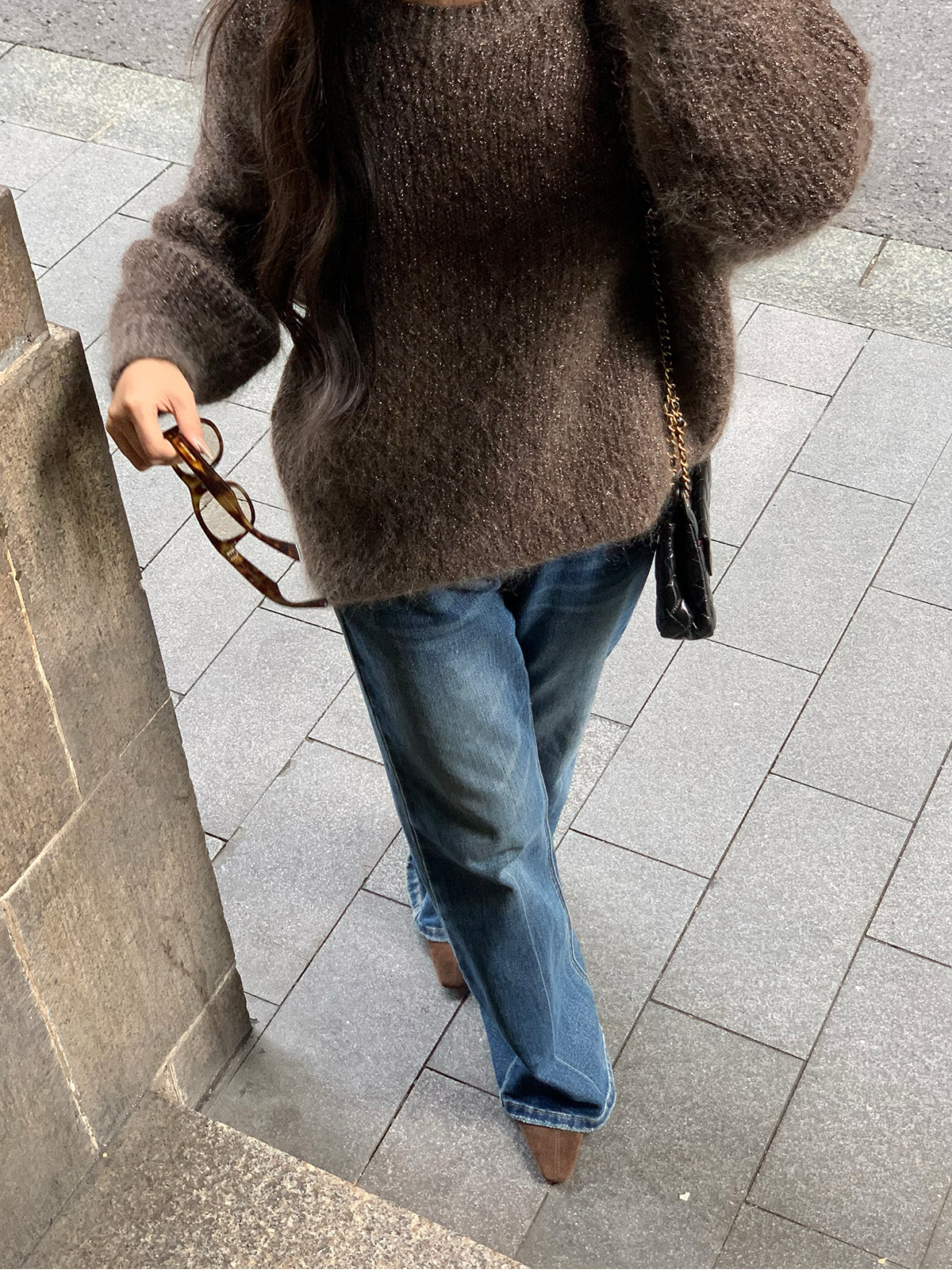 Shi Wei Liang Slimming Magic Tool Y*L Classic Style Handmade Whiskered Washed Floor-Length Flared Jeans