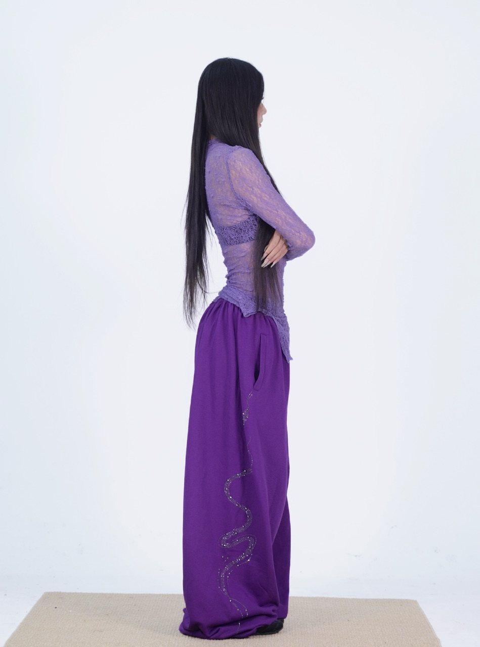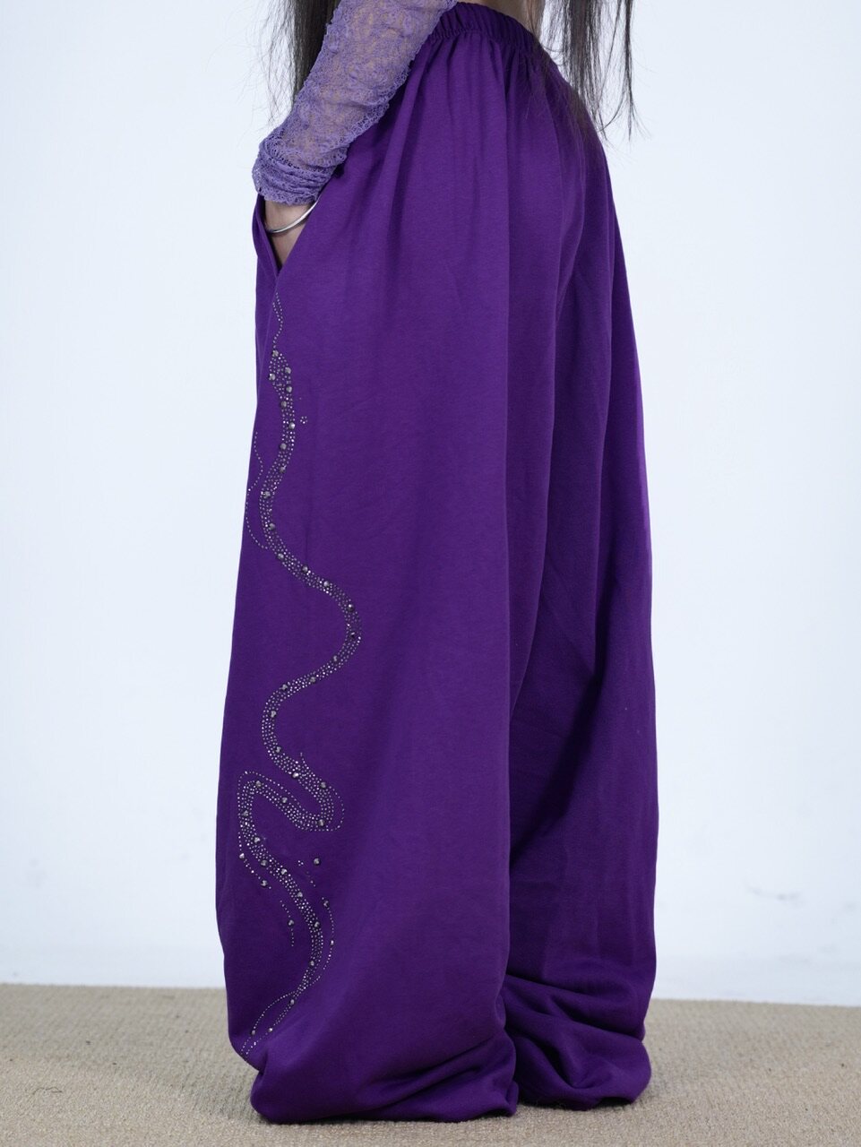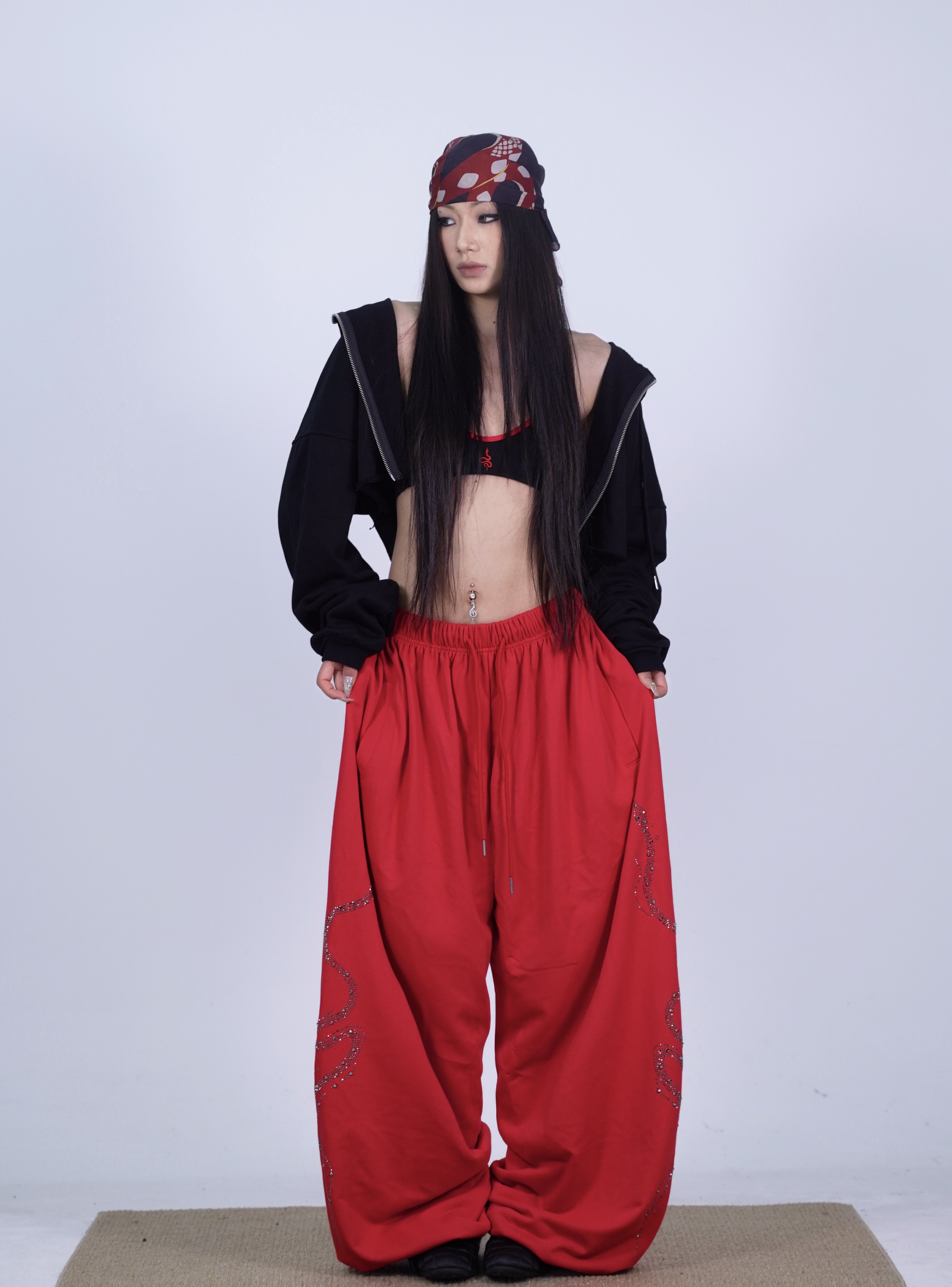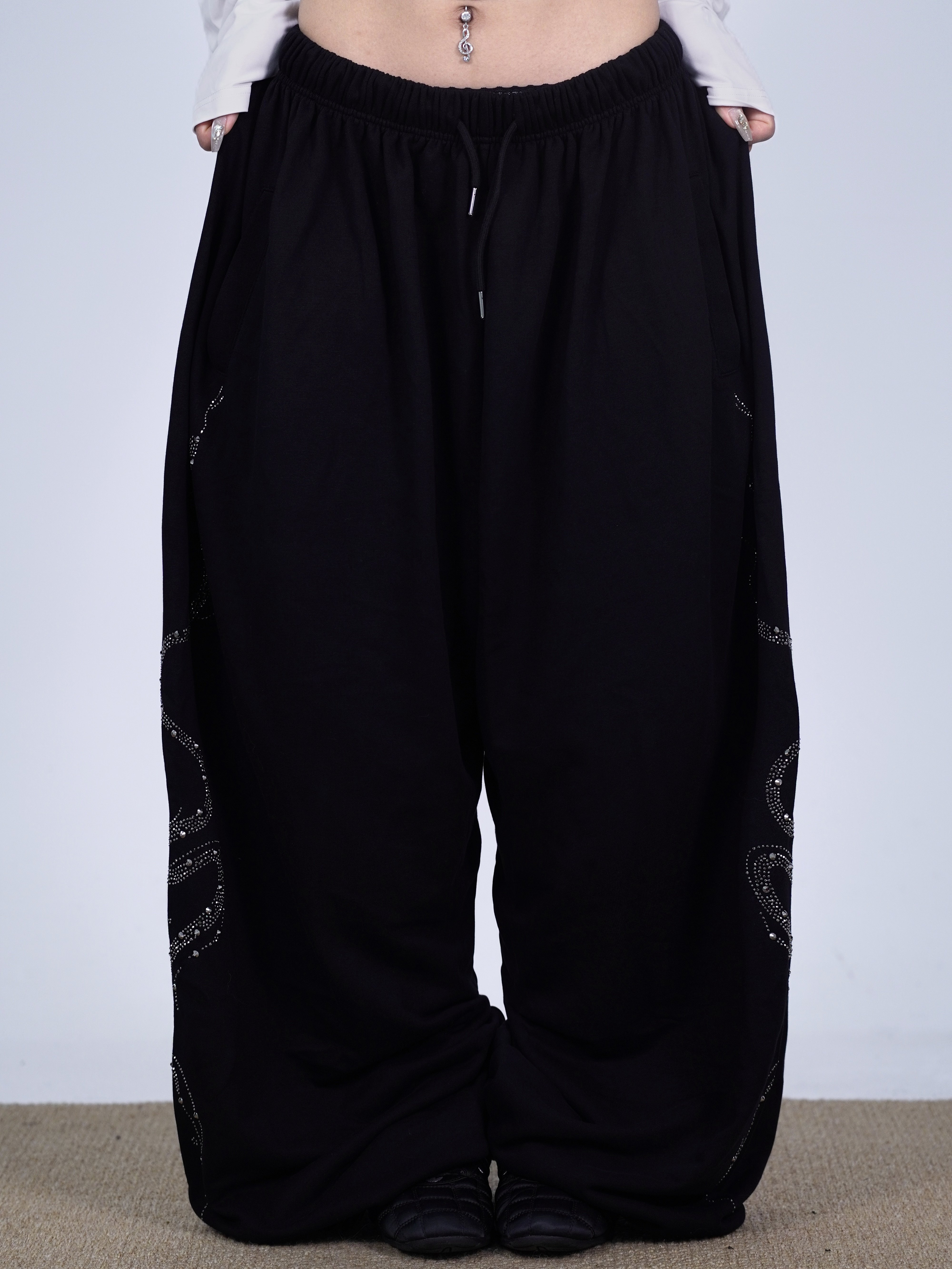 Suans Original Fashion Sparkling Diamond Branch Snake Sweatpants Versatile Casual Jazz Wide-Leg Fashion Sports