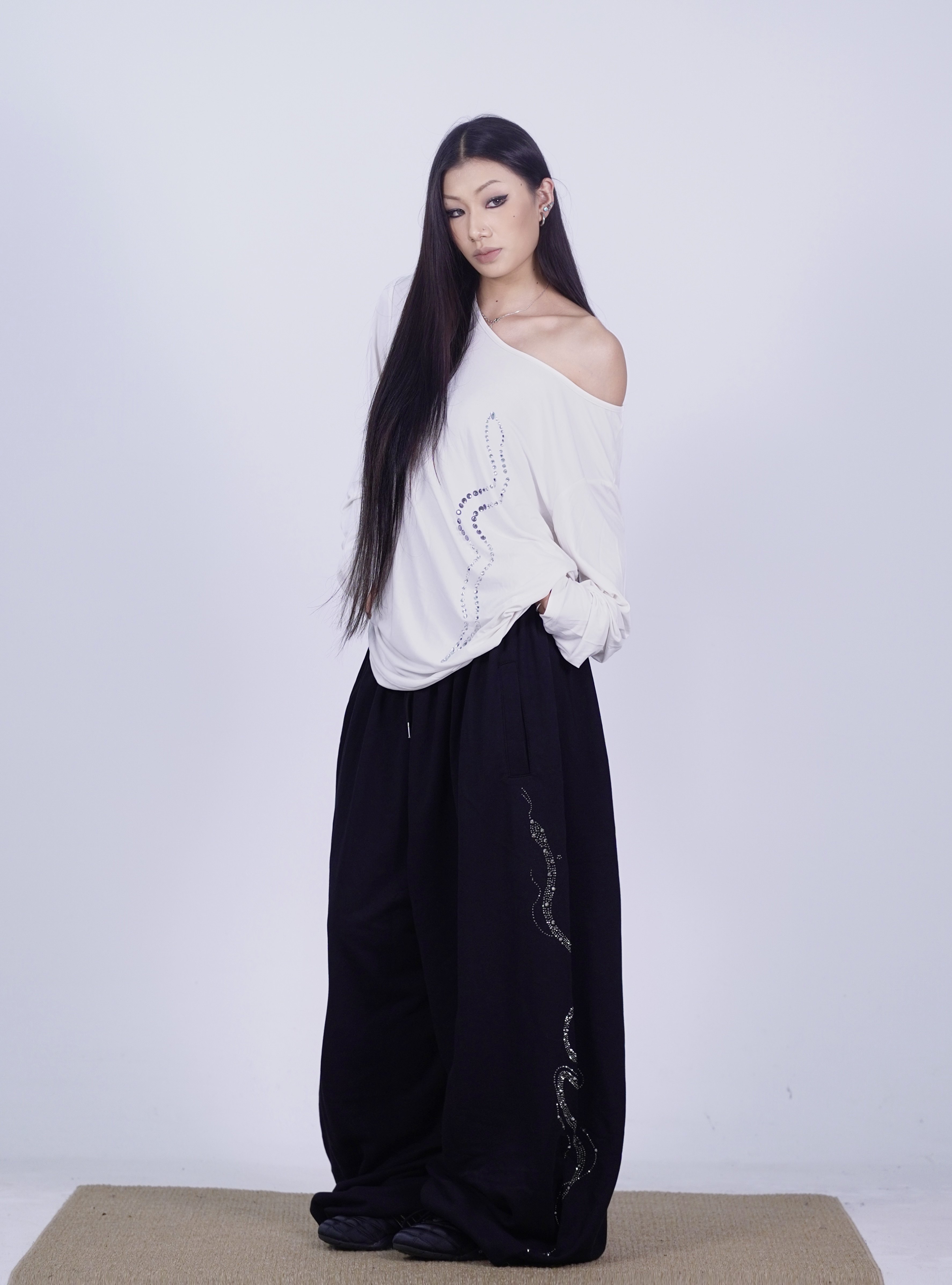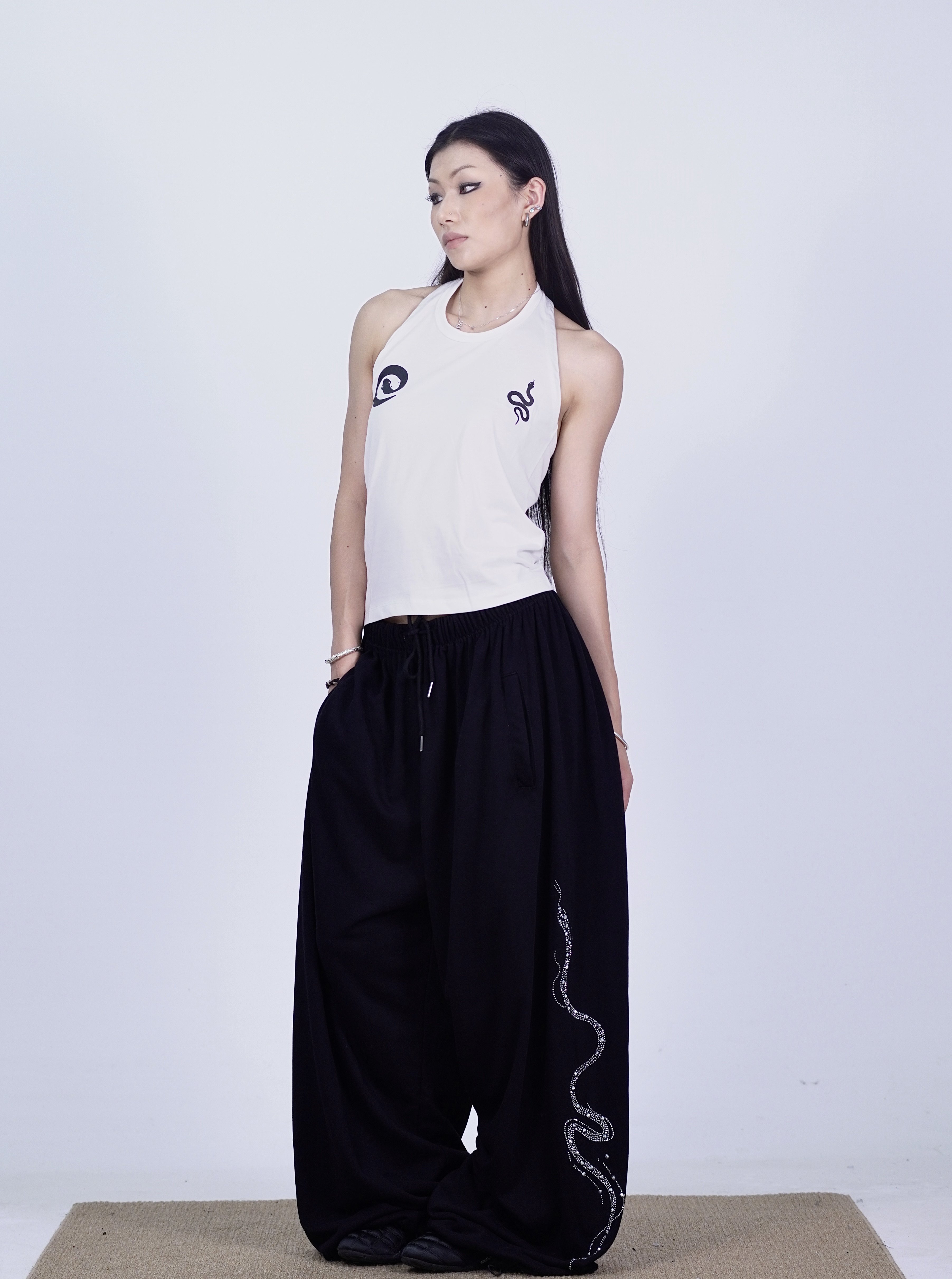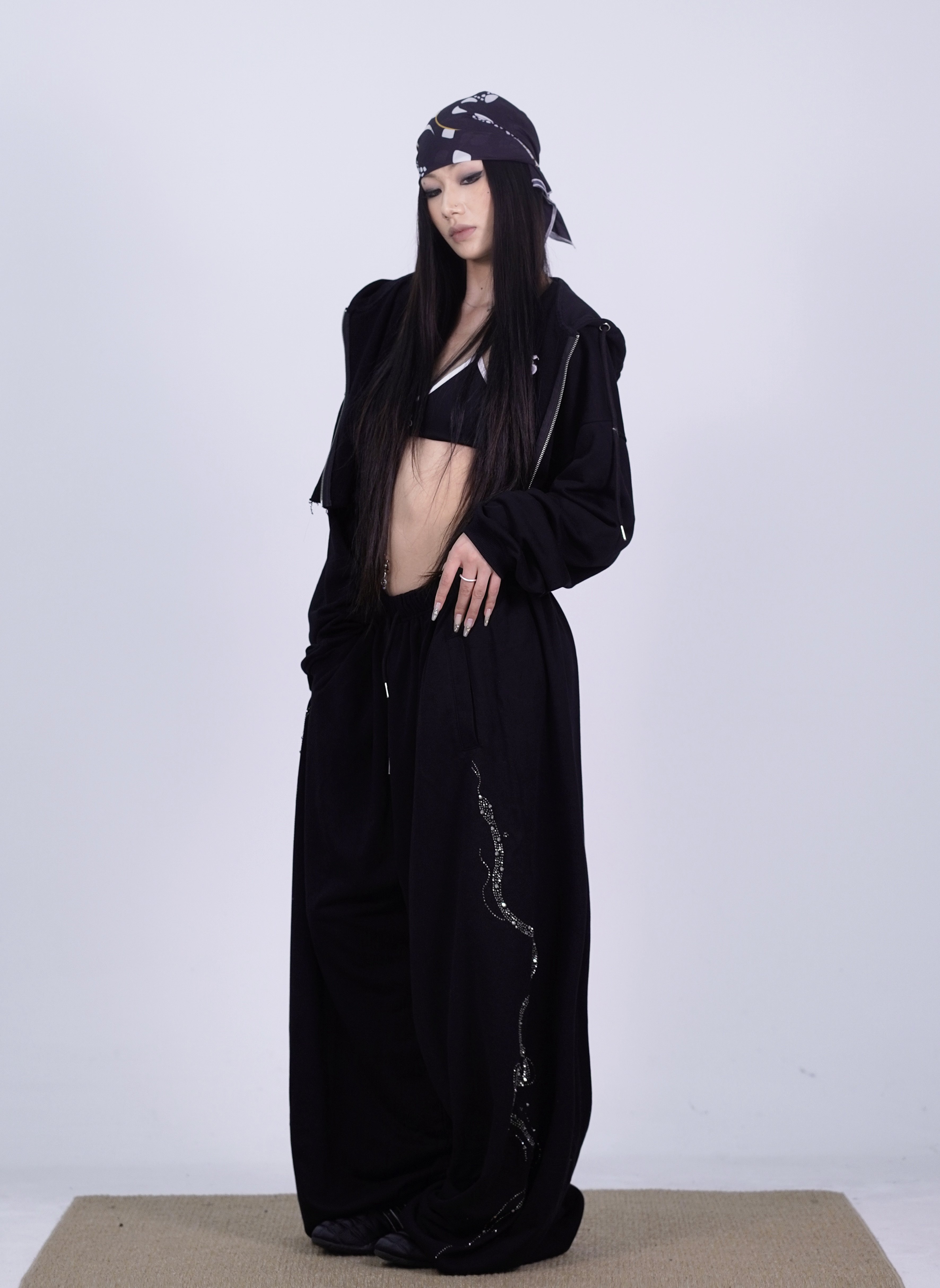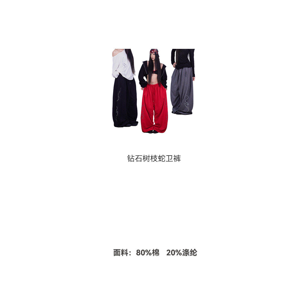Suans Original Fashion Sparkling Diamond Branch Snake Sweatpants Versatile Casual Jazz Wide-Leg Fashion Sports