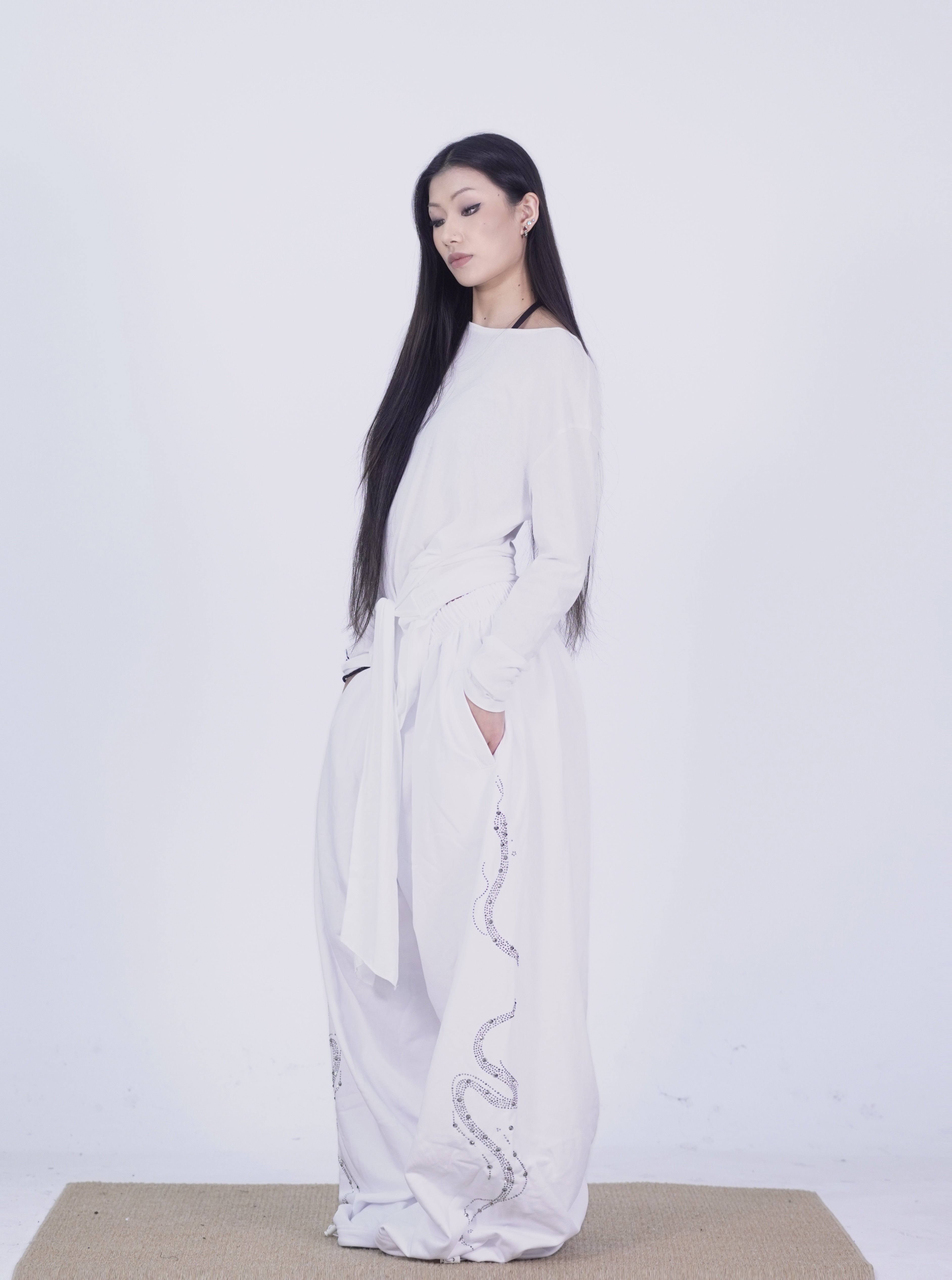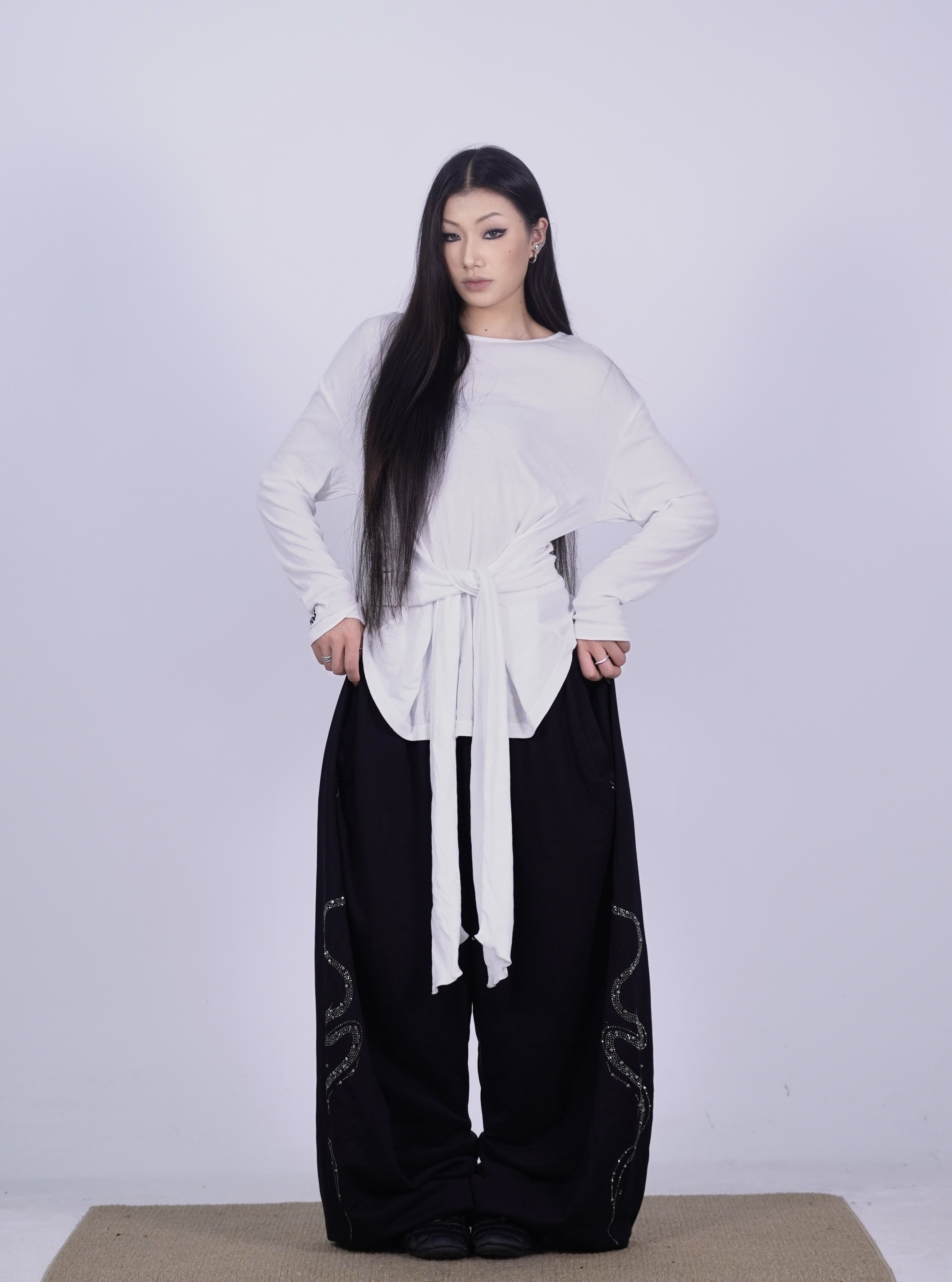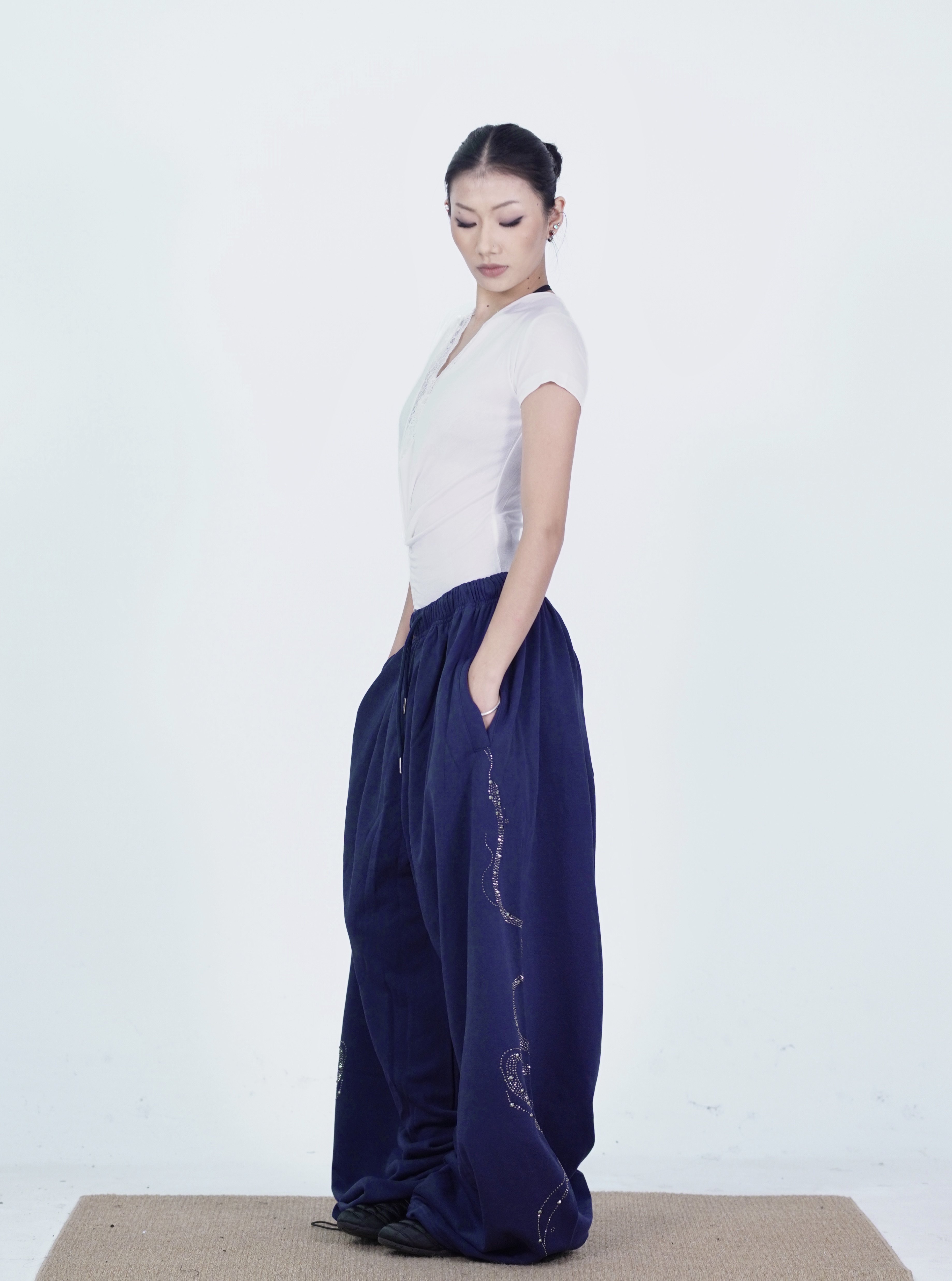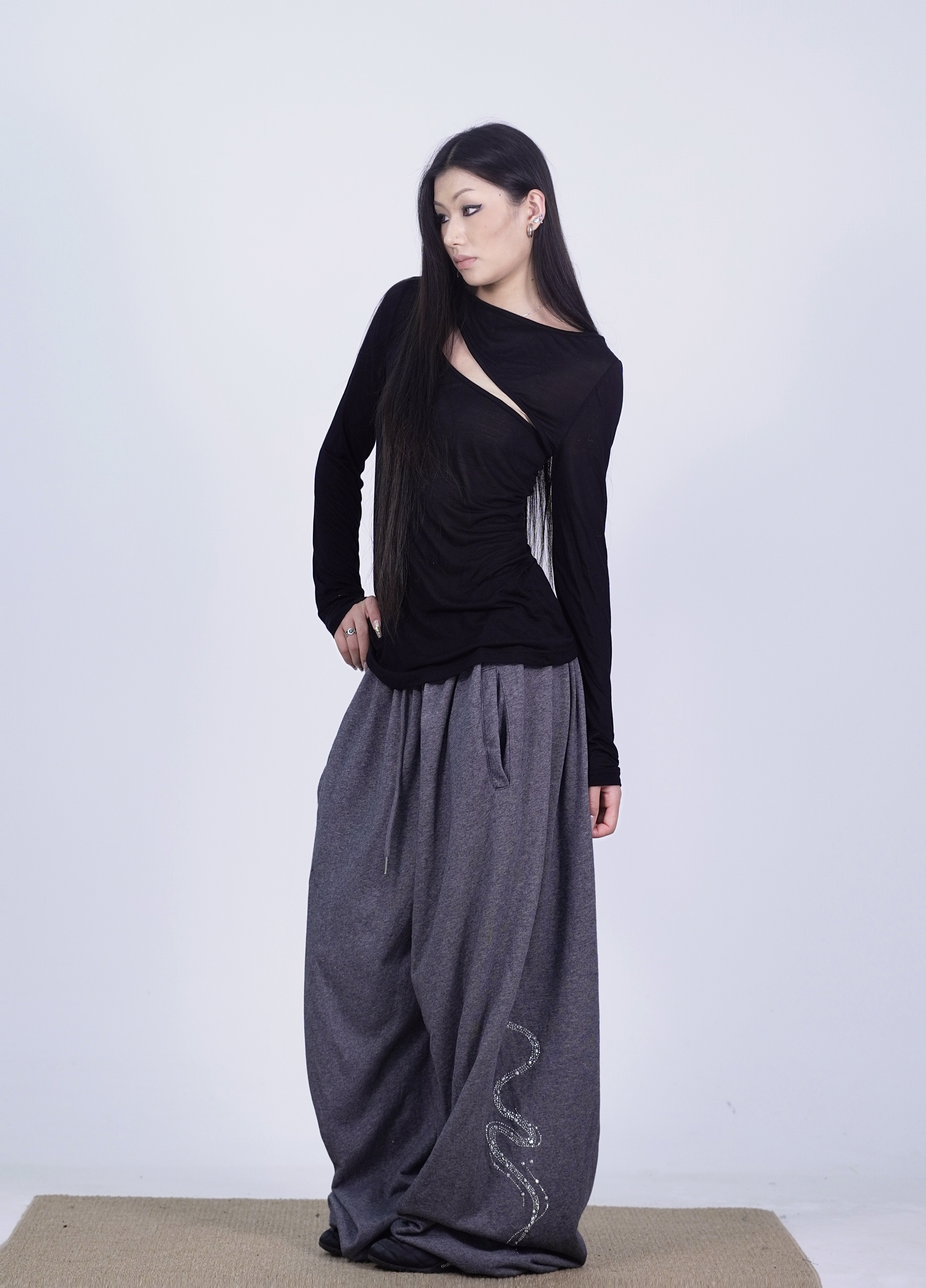 Suans Original Fashion Sparkling Diamond Branch Snake Sweatpants Versatile Casual Jazz Wide-Leg Fashion Sports