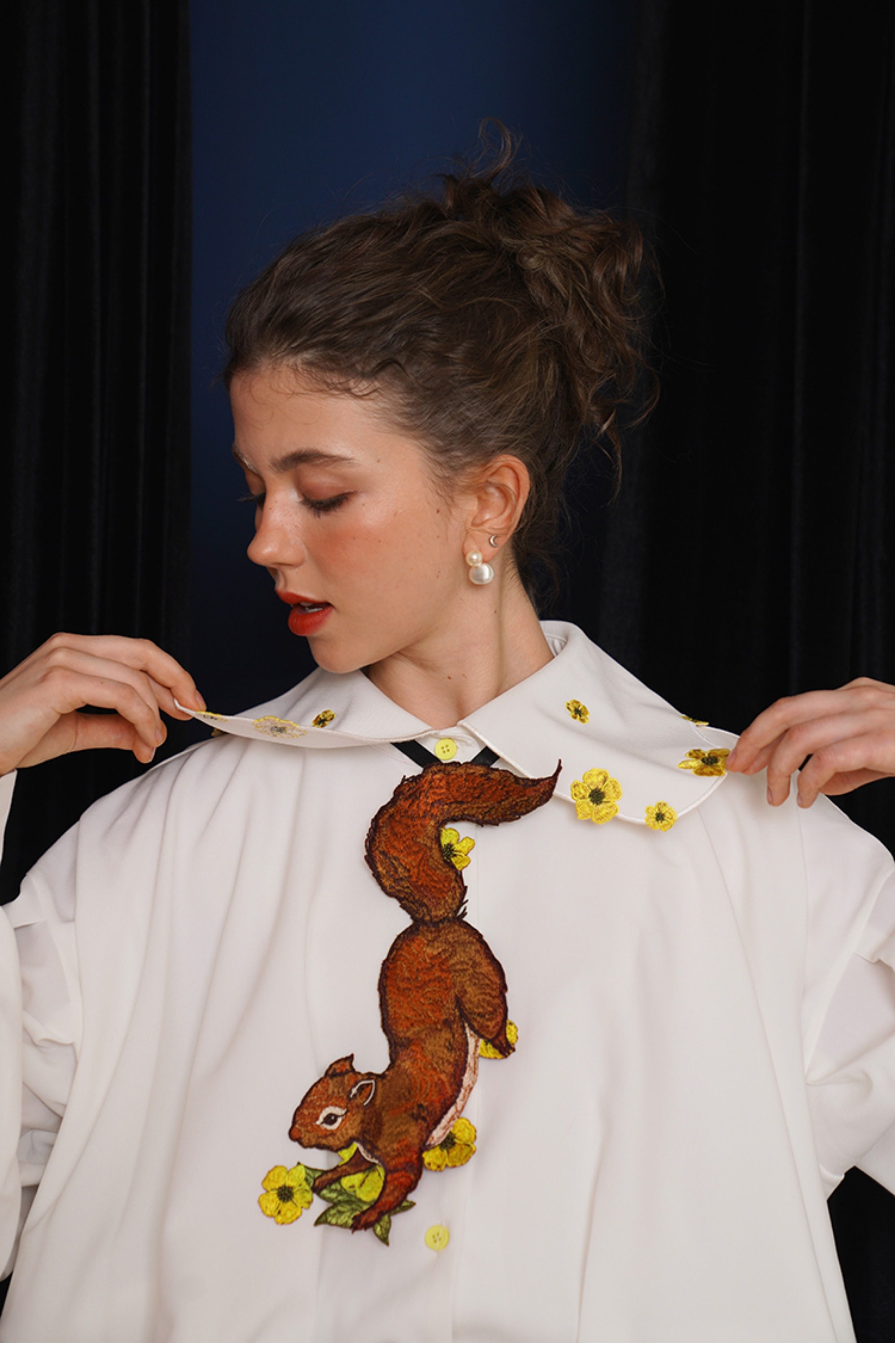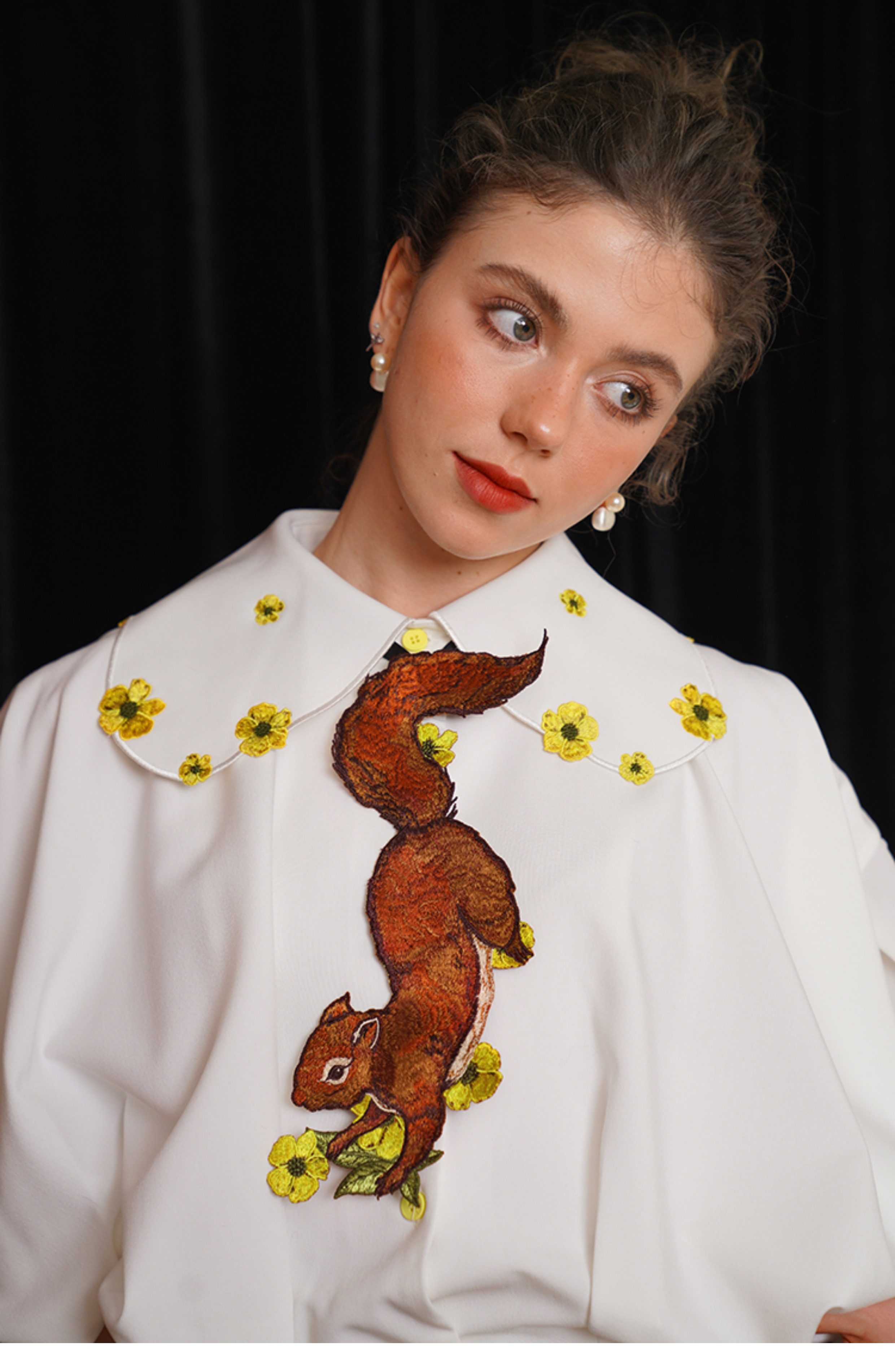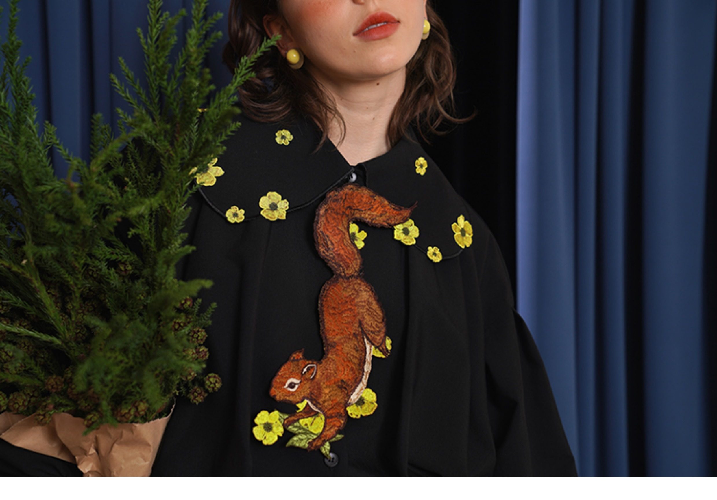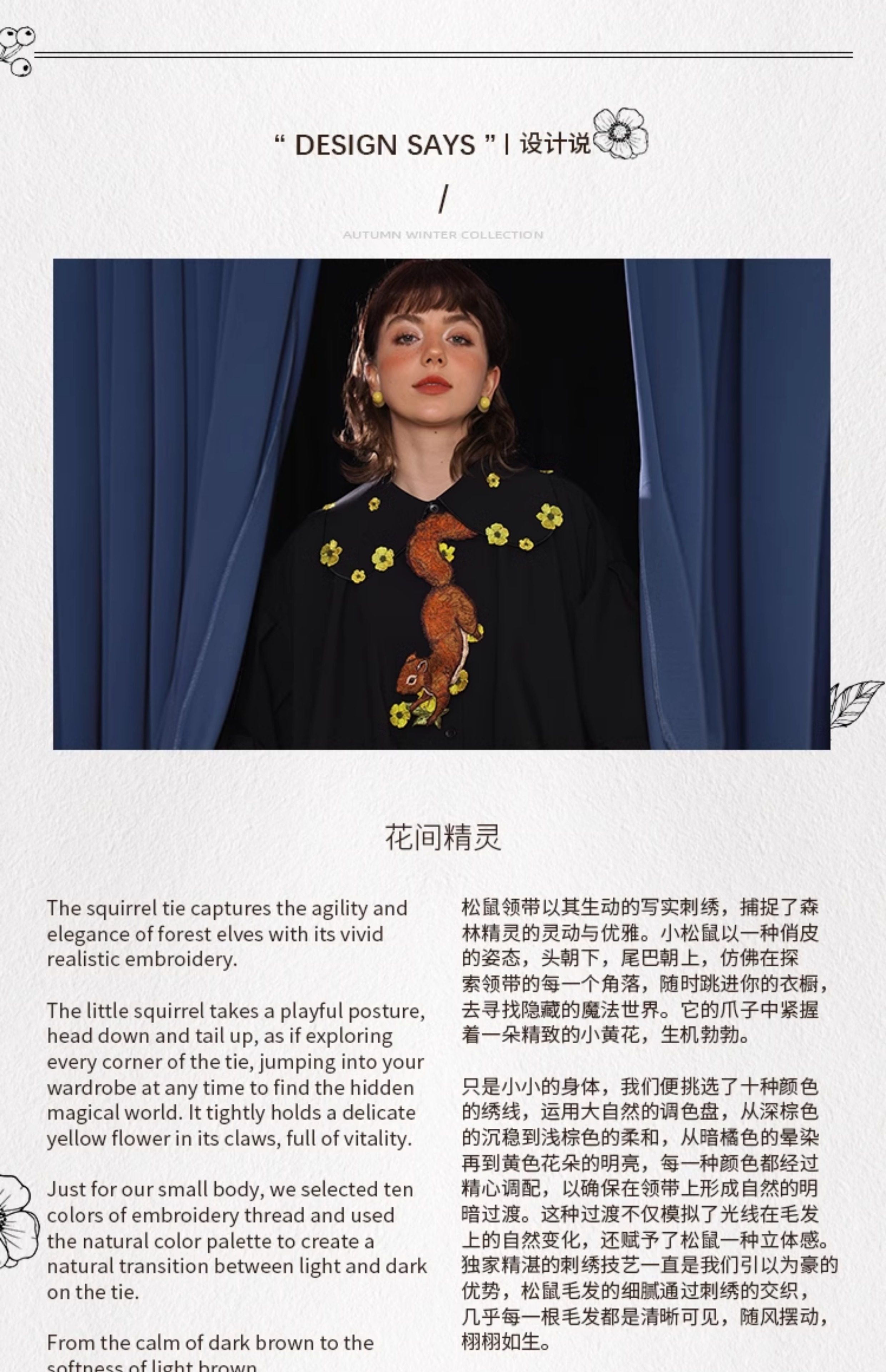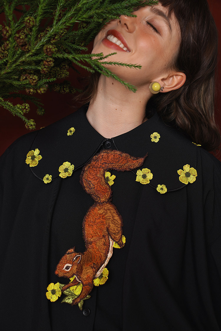 Kamo Original Vintage Embroidered No-Knot Tie with Squirrel and Flower Accessories, Floral Fairy Niche Bow Tie Gift