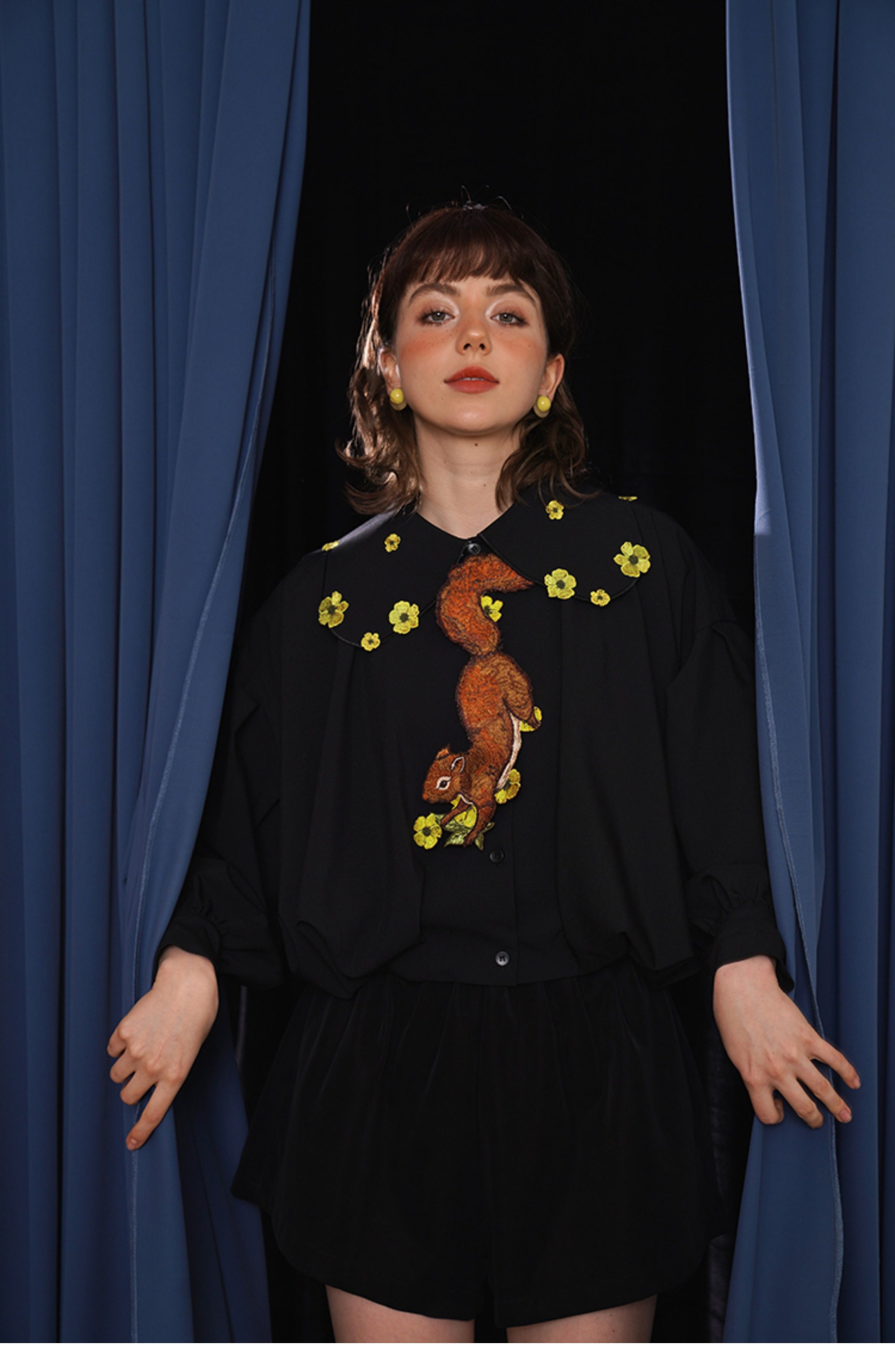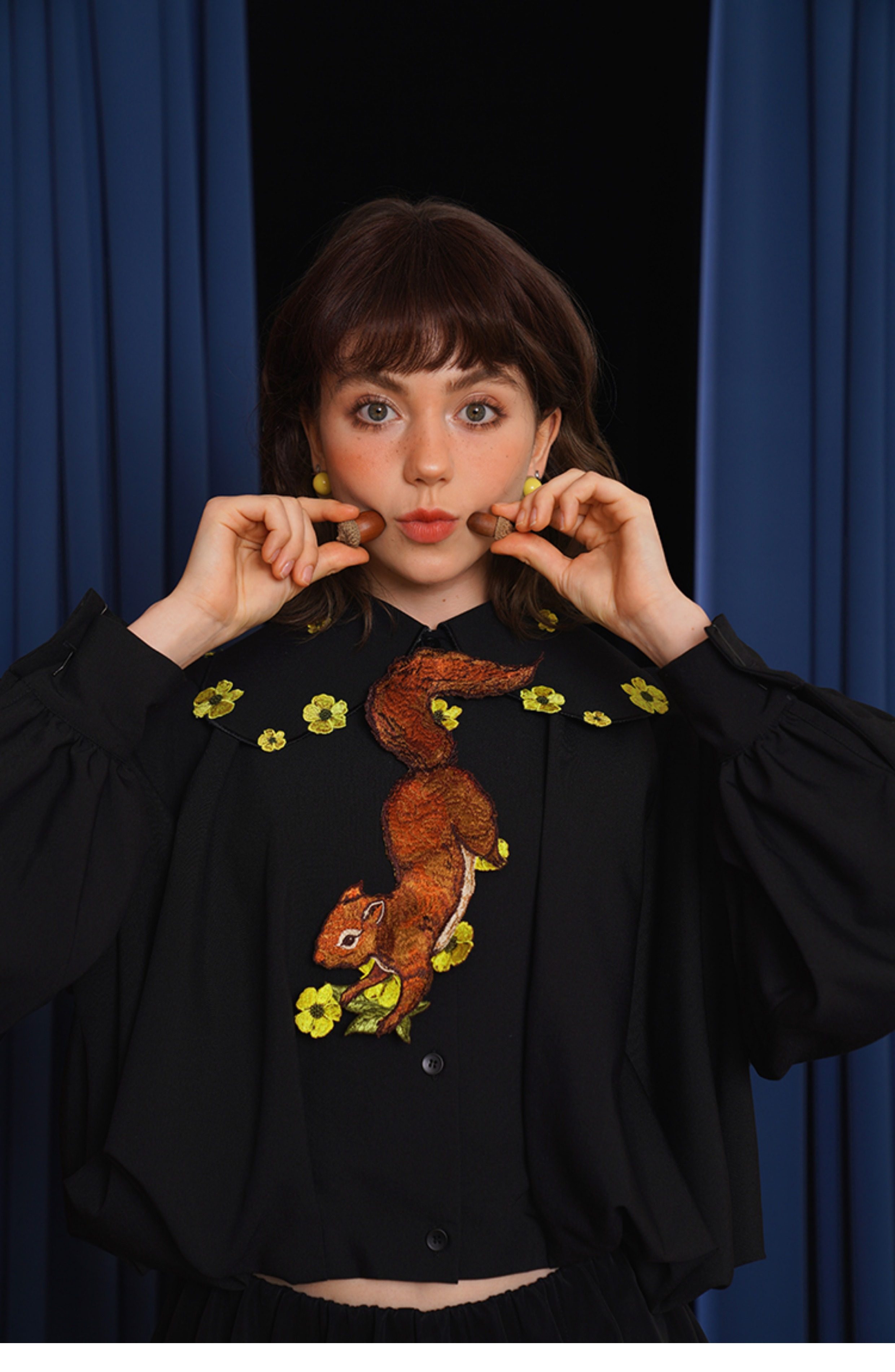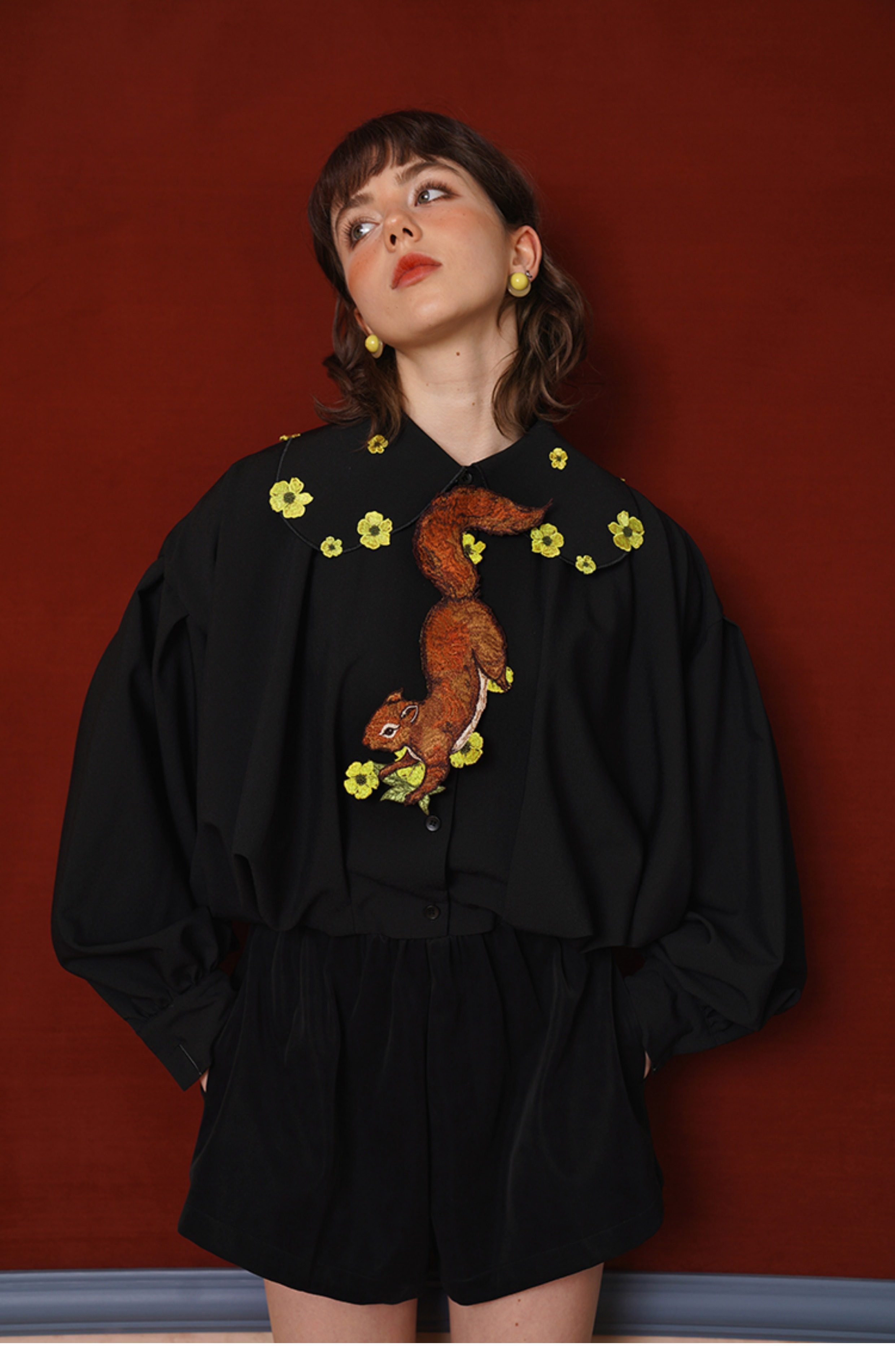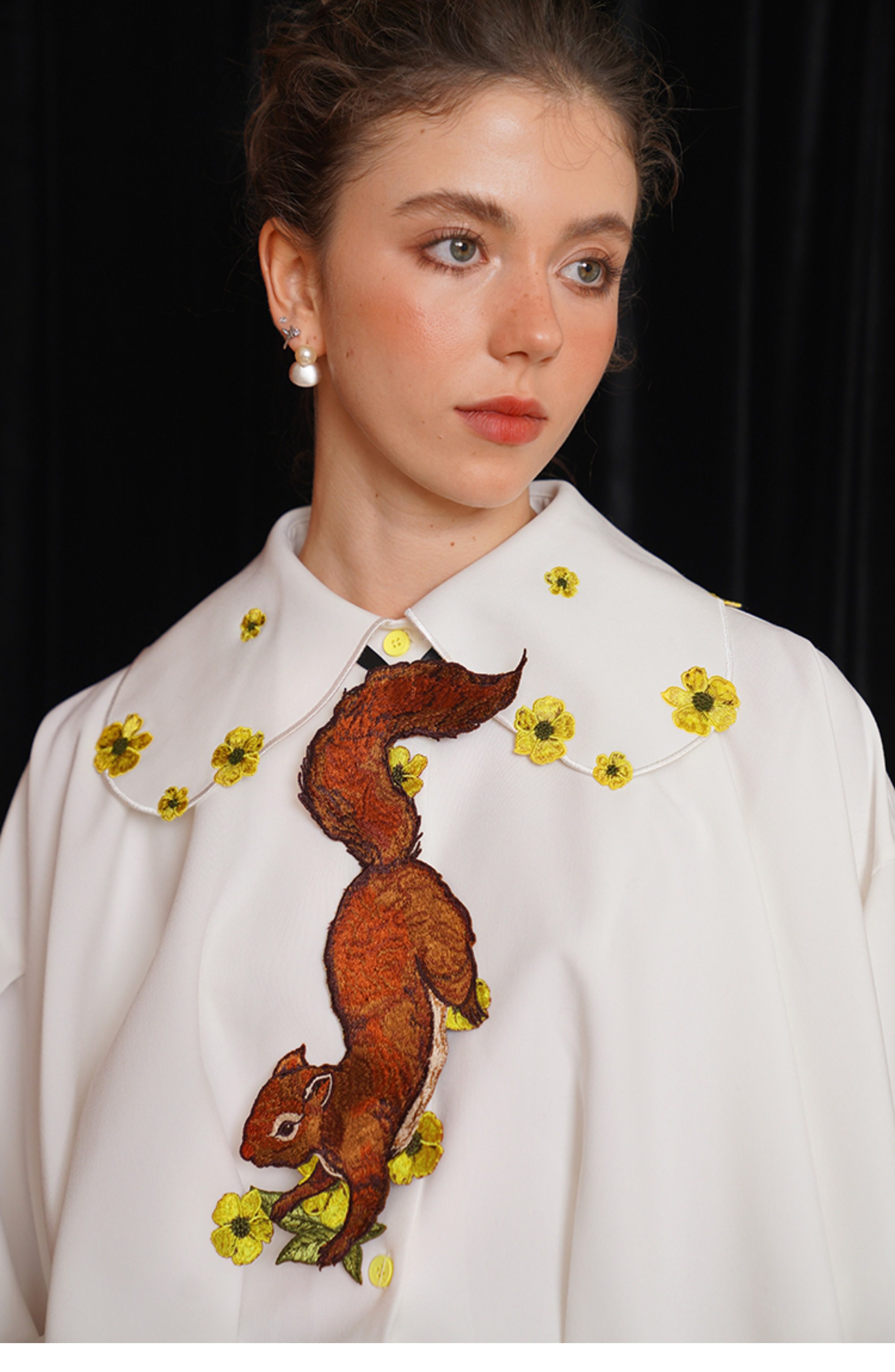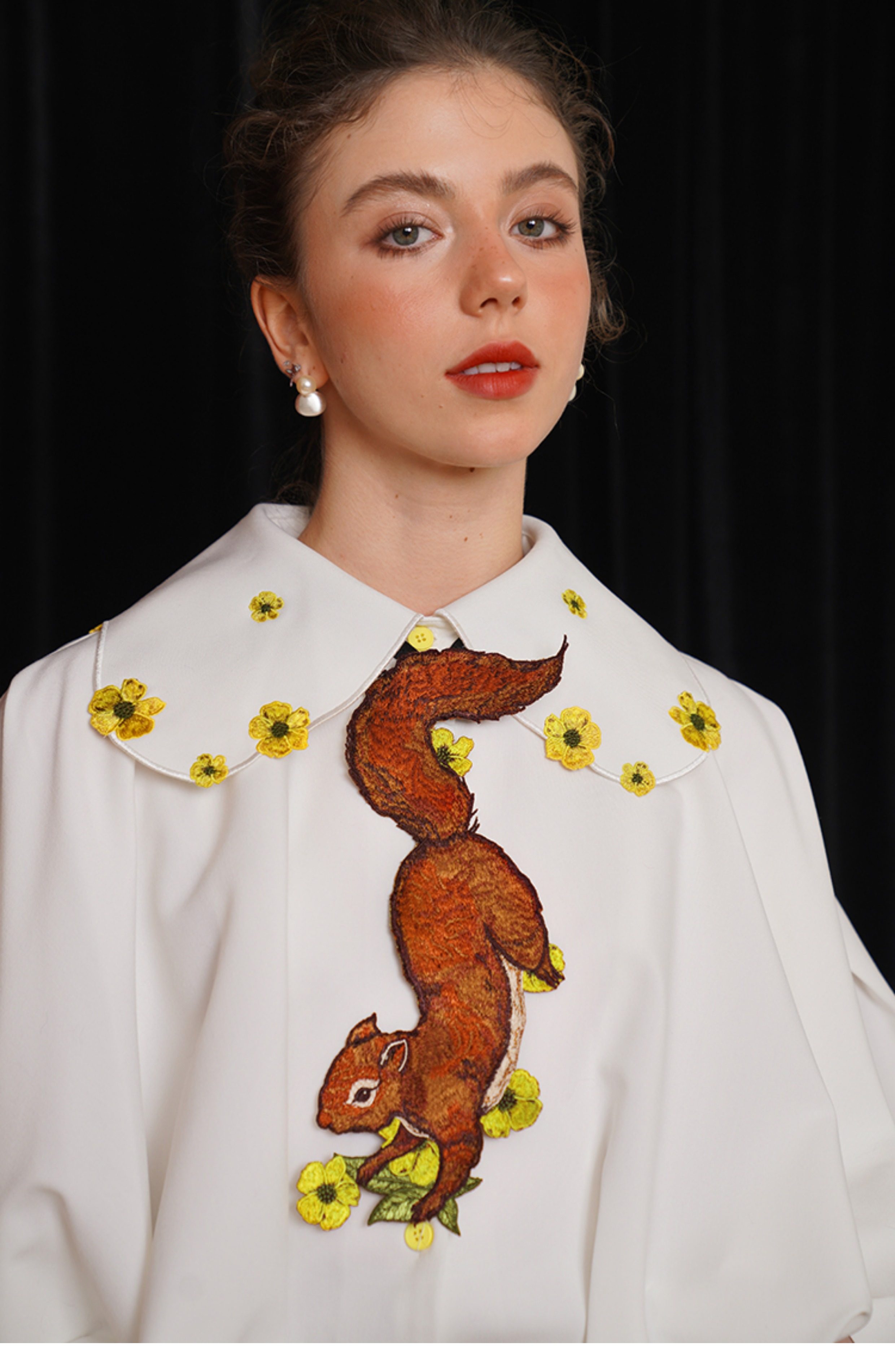 Kamo Original Vintage Embroidered No-Knot Tie with Squirrel and Flower Accessories, Floral Fairy Niche Bow Tie Gift