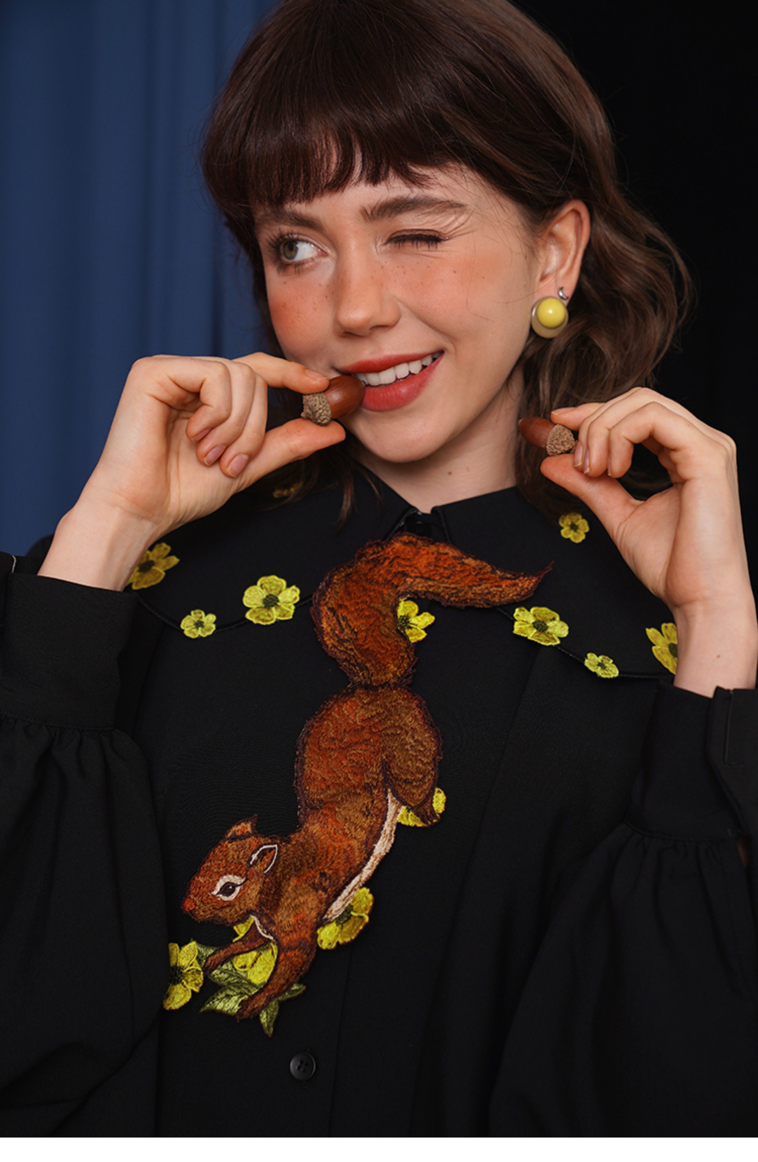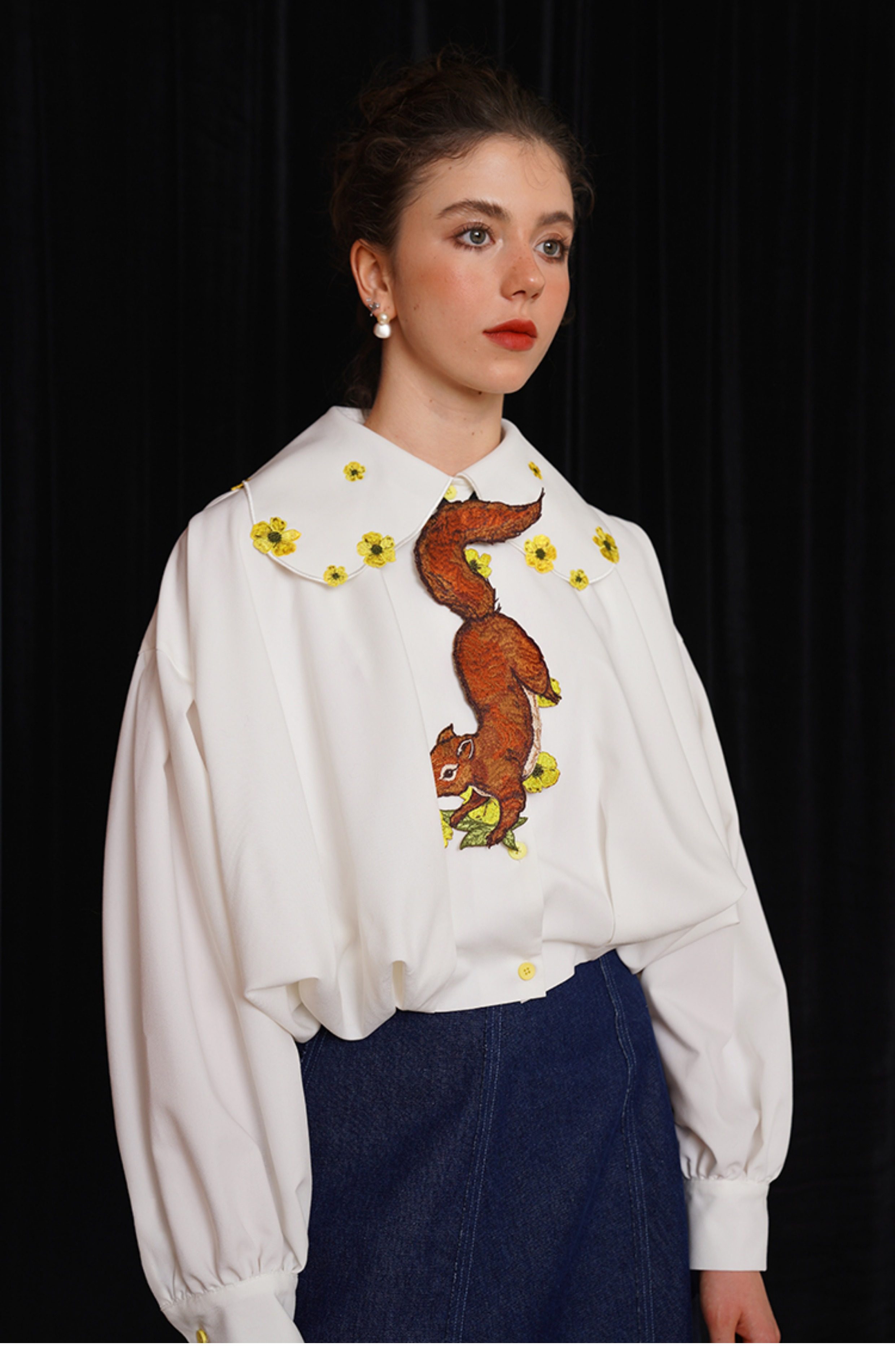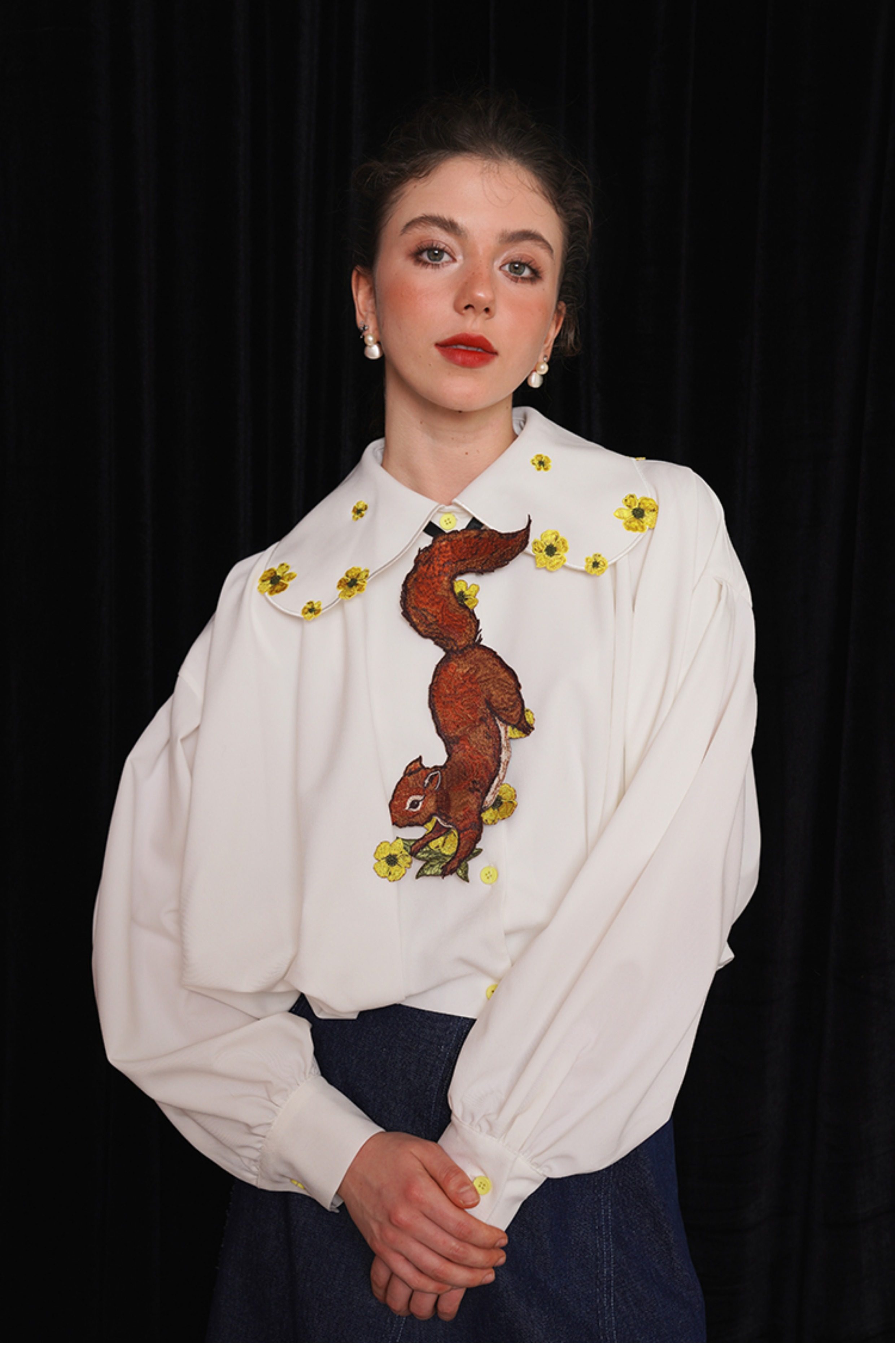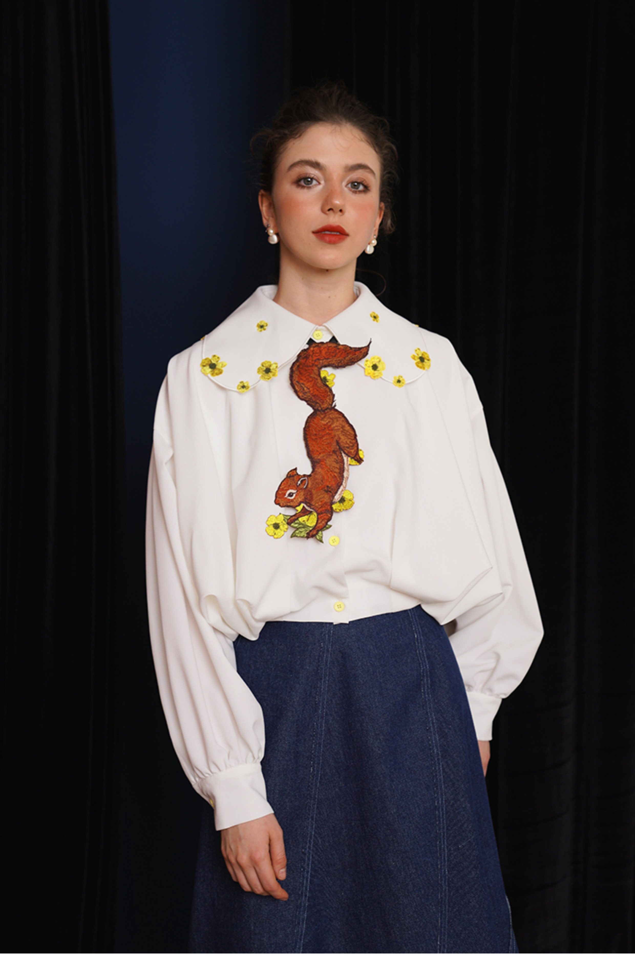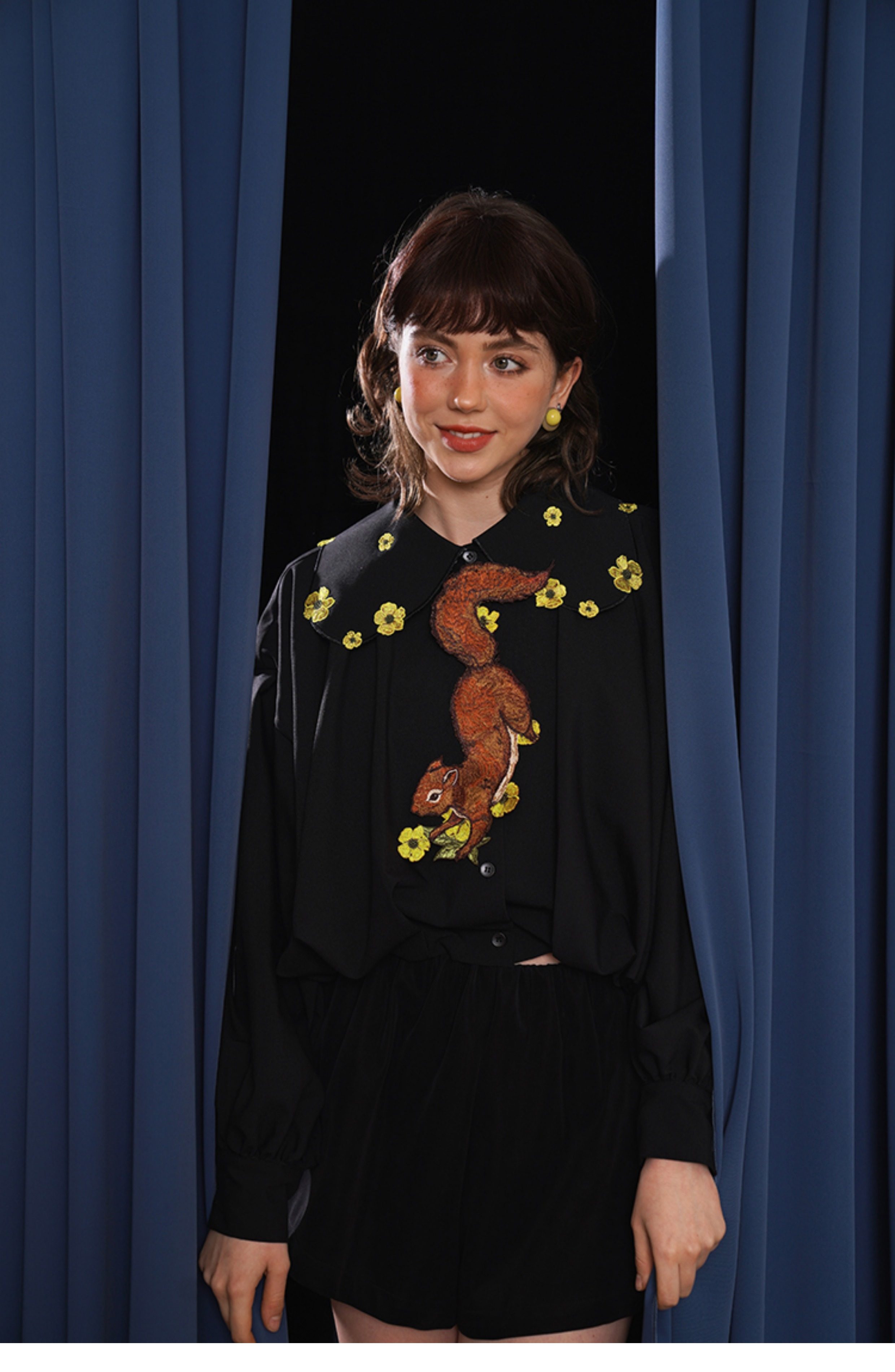 Kamo Original Vintage Embroidered No-Knot Tie with Squirrel and Flower Accessories, Floral Fairy Niche Bow Tie Gift