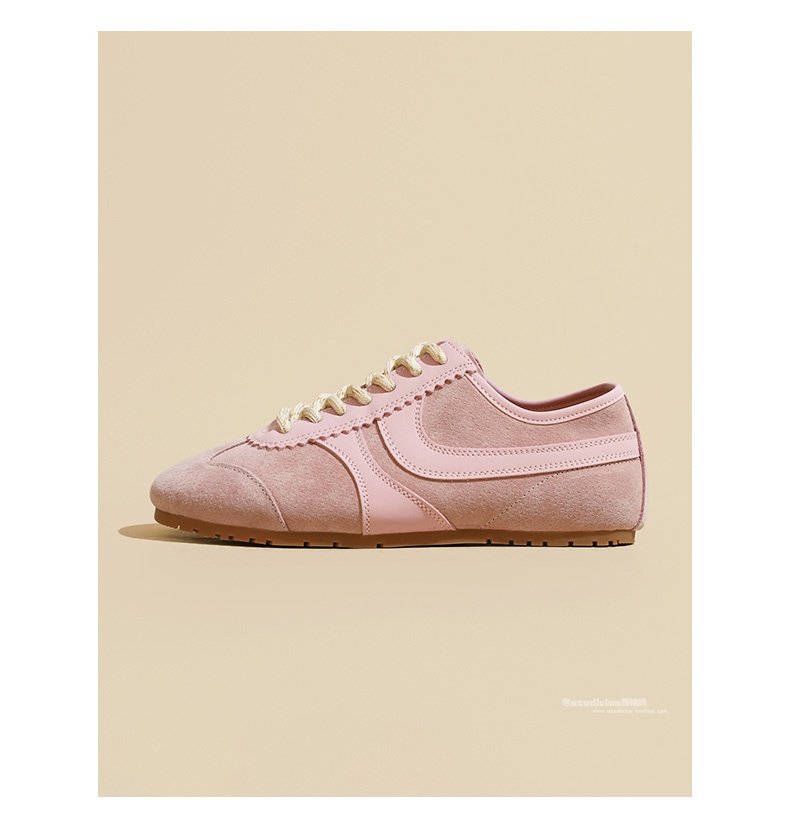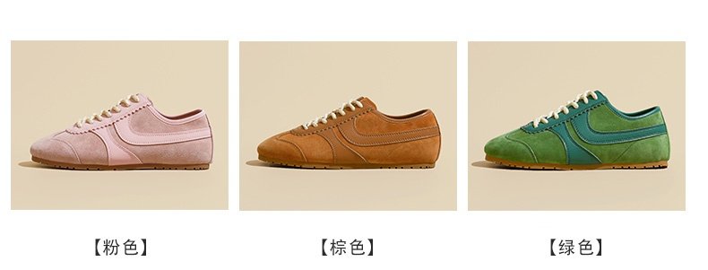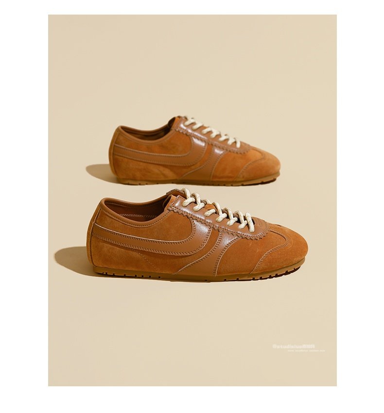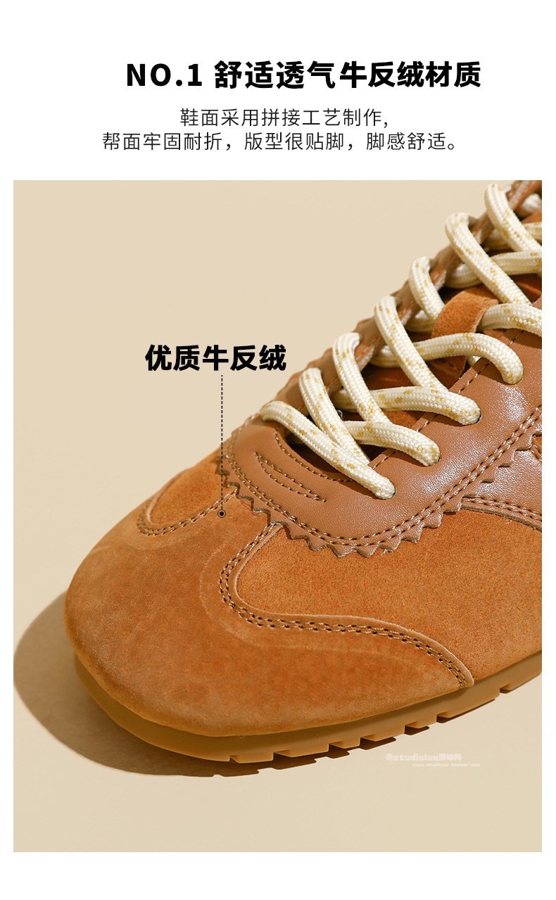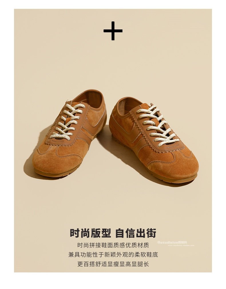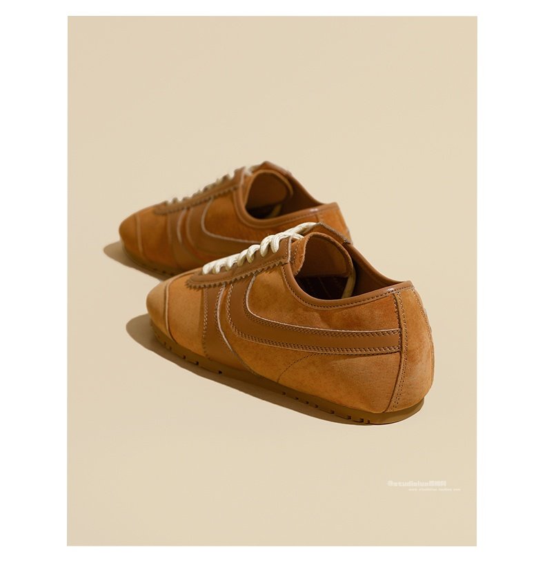 Hong Kong Flat Versatile Training Shoes for Women 2025 Autumn New Sneakers Genuine Leather Suede Round Toe Casual Sports Shoes