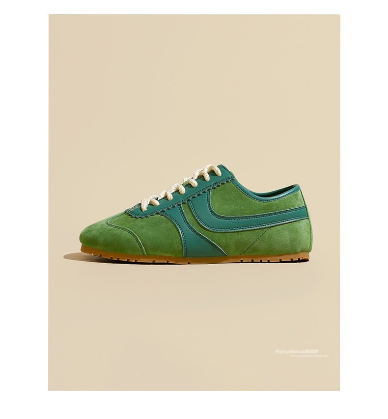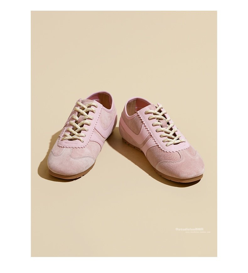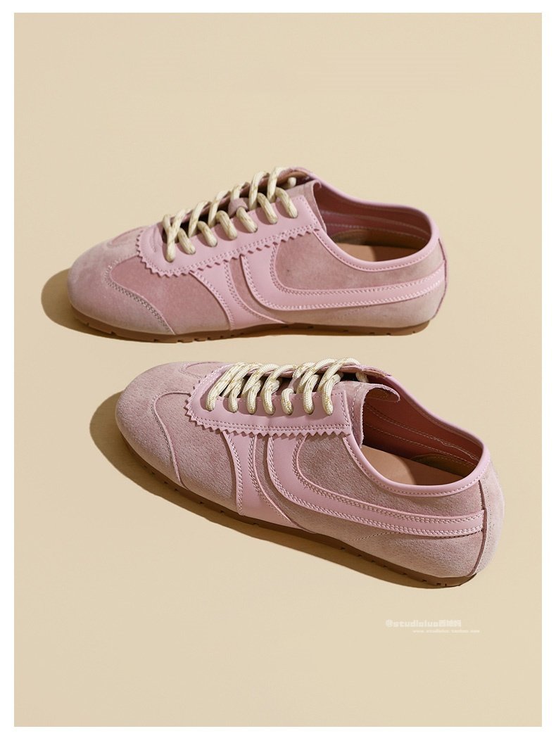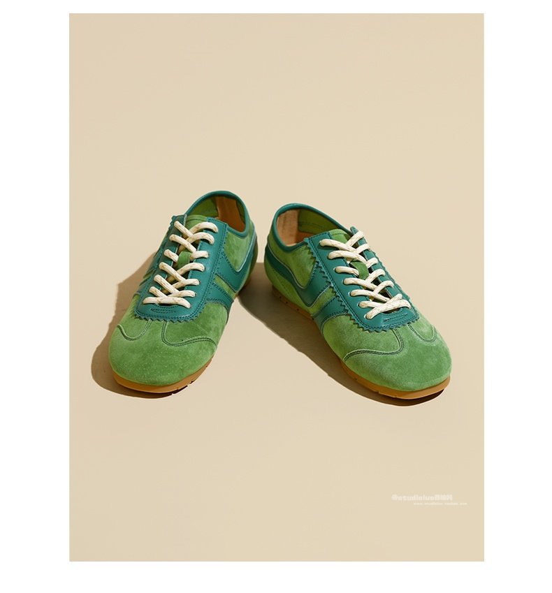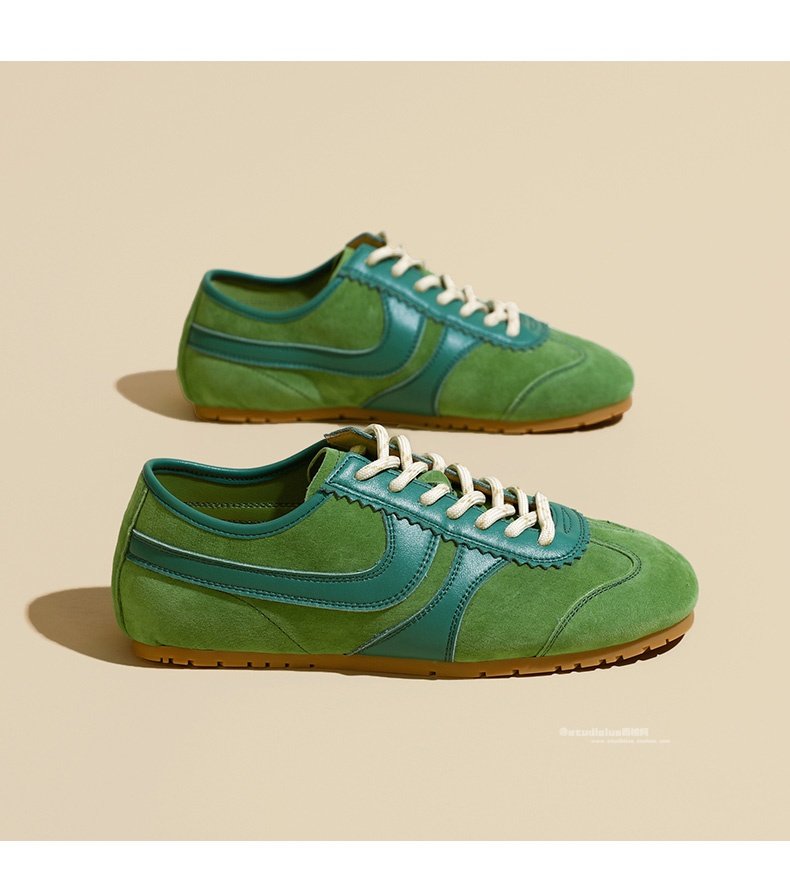 Hong Kong Flat Versatile Training Shoes for Women 2025 Autumn New Sneakers Genuine Leather Suede Round Toe Casual Sports Shoes