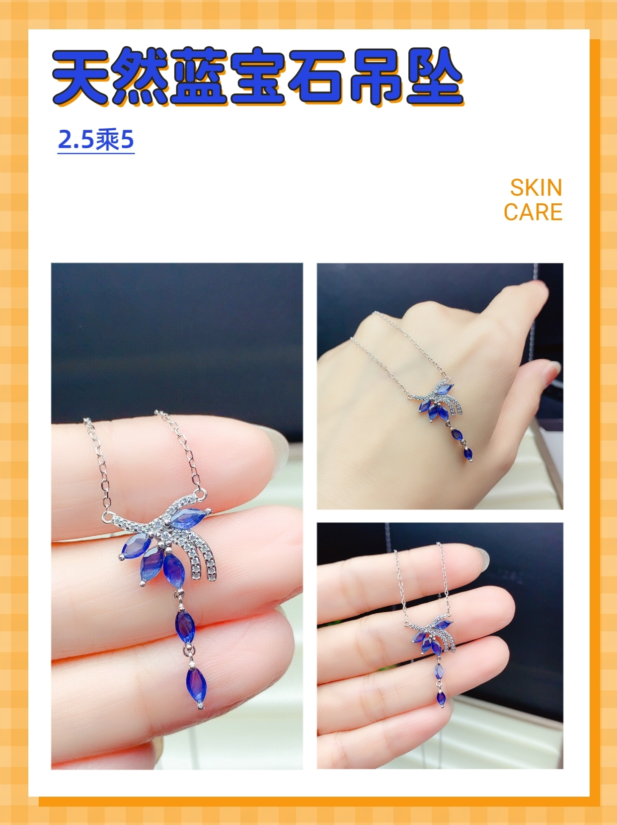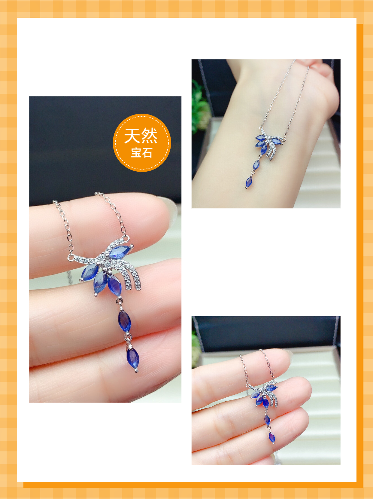 Natural Sapphire Pendant for Women, Sterling Silver Inlaid with Gemstones 2.5 X 5 Tassels, Personalized Versatile Silver Necklace