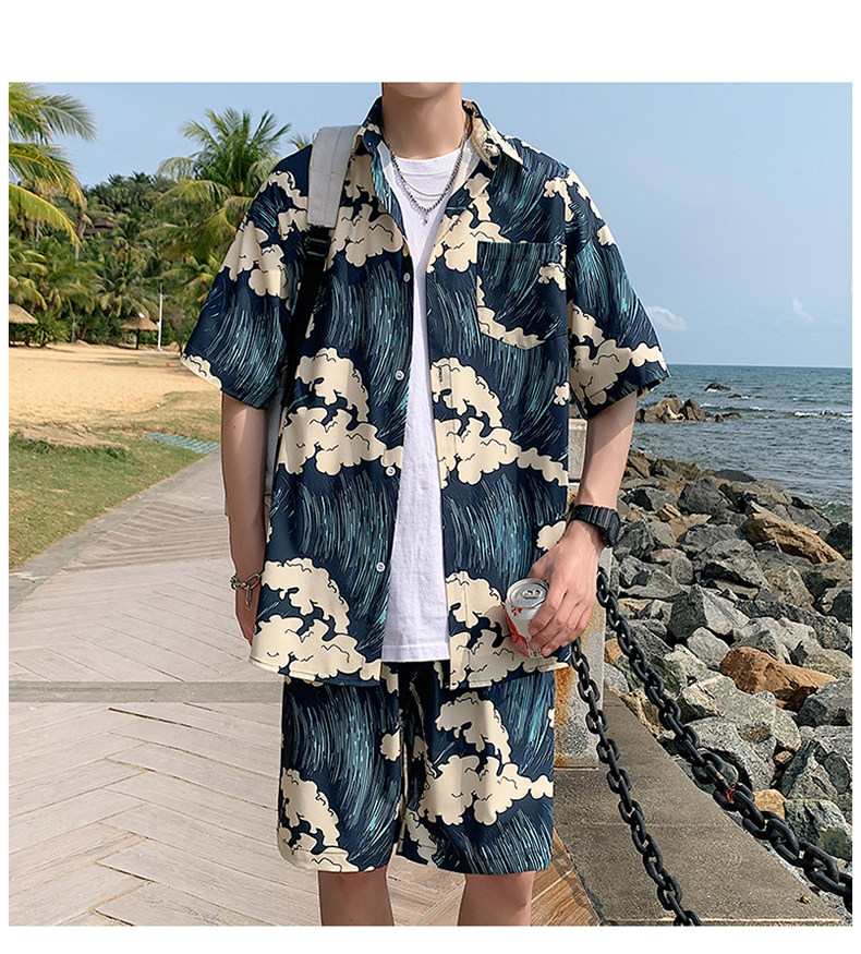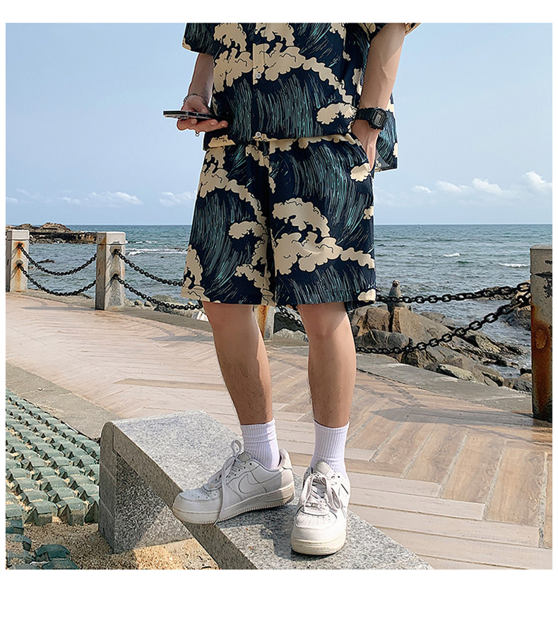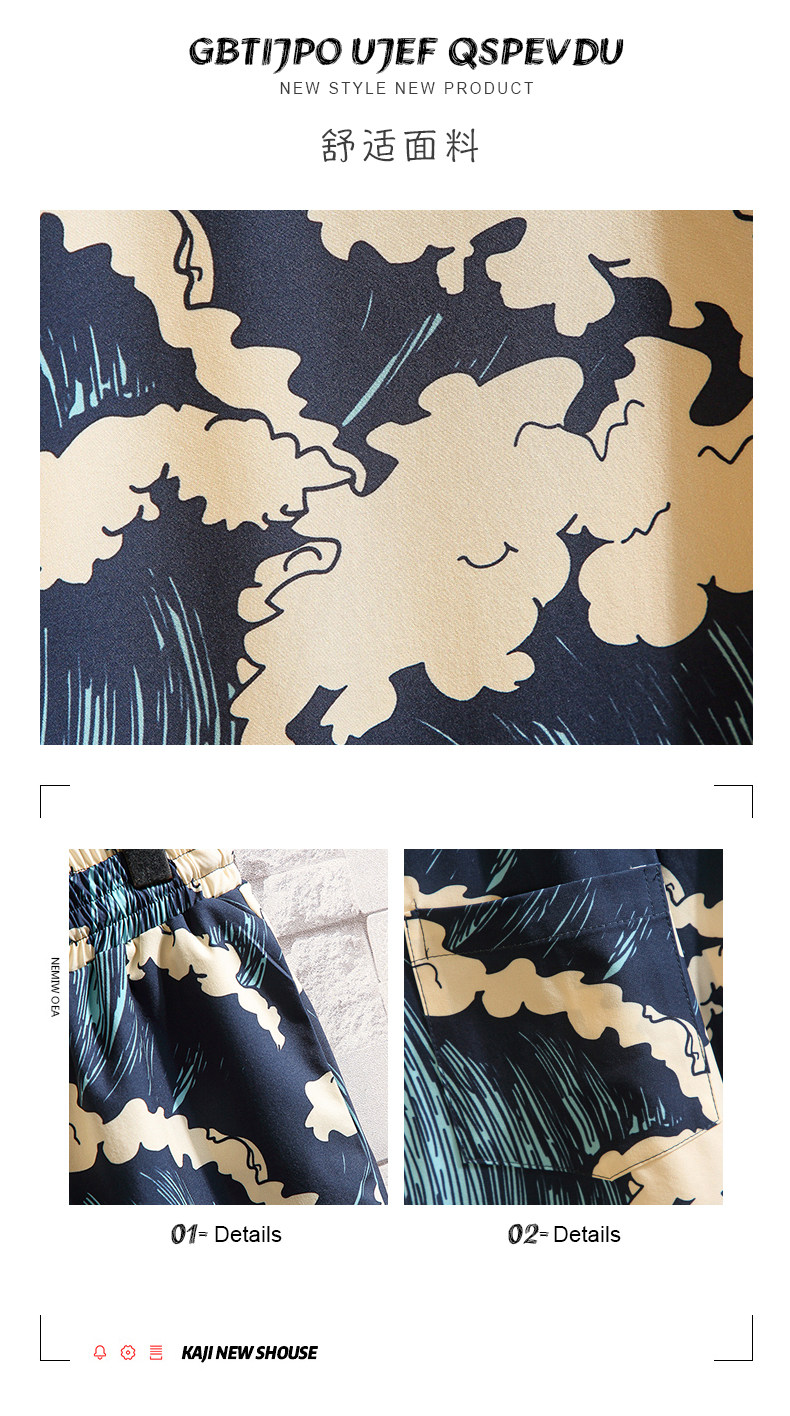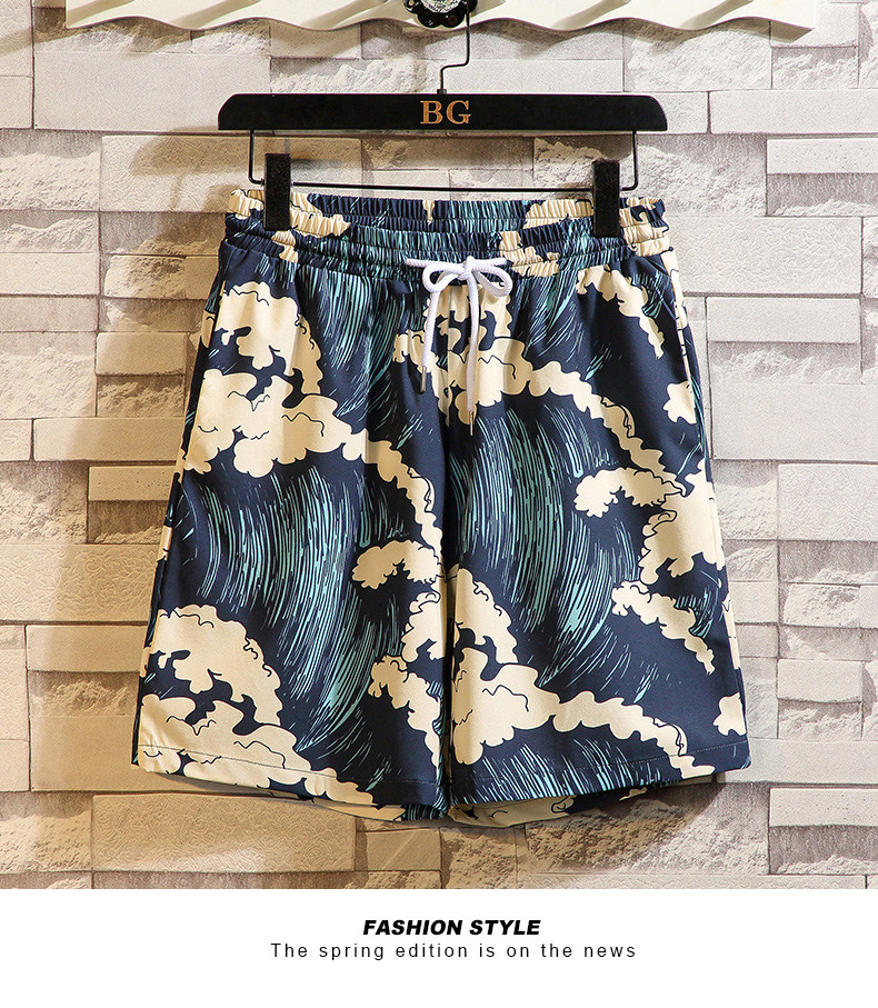 Beach Vacation Beach Shorts for Men, Sanya Travel Outfit Set, Ice Silk Quick-Drying, Suitable for Water, Men's Shorts, Swim Trunks
