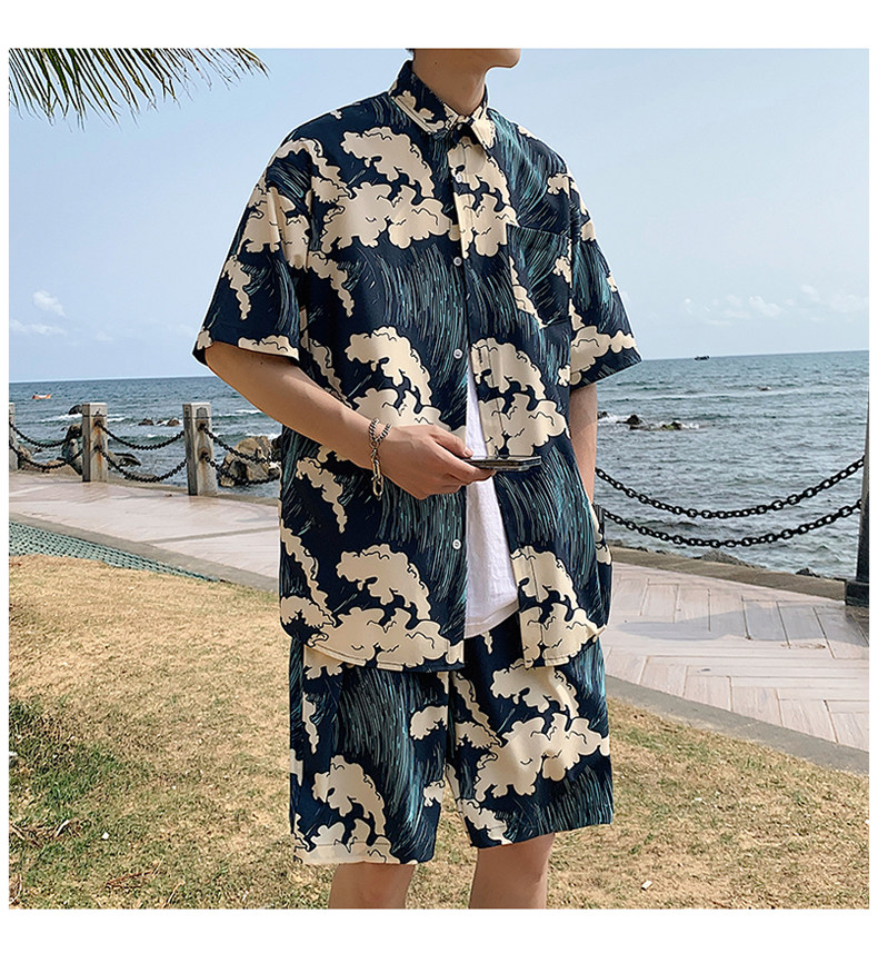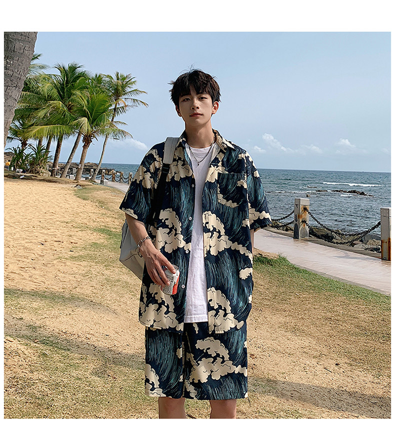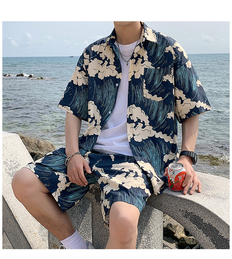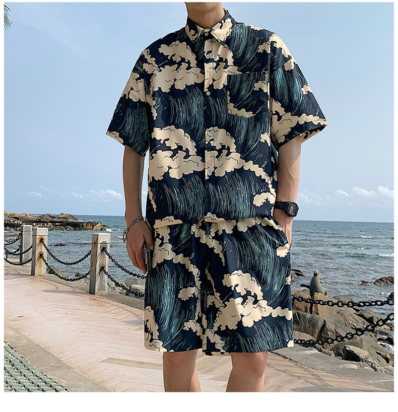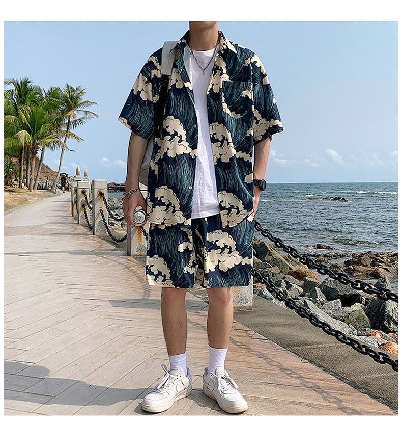 Beach Vacation Beach Shorts for Men, Sanya Travel Outfit Set, Ice Silk Quick-Drying, Suitable for Water, Men's Shorts, Swim Trunks
