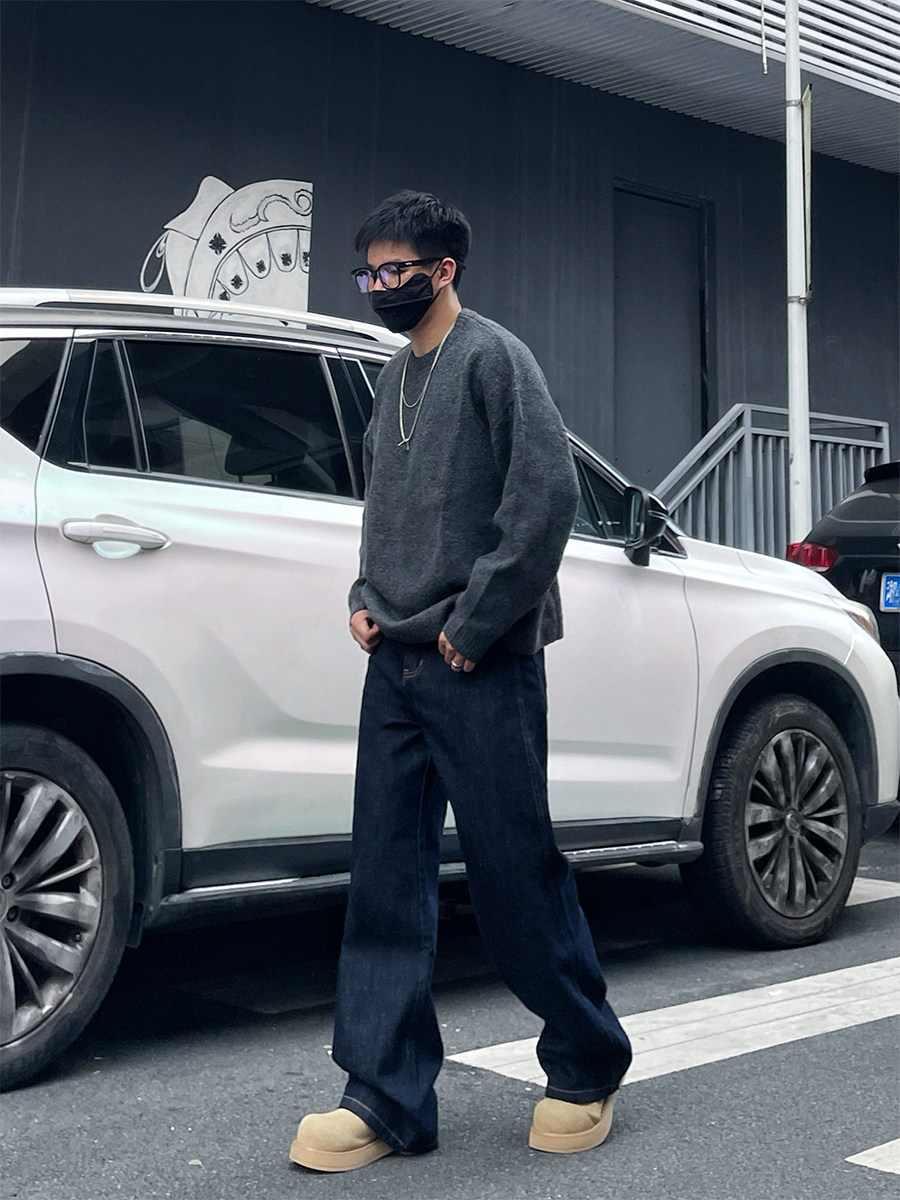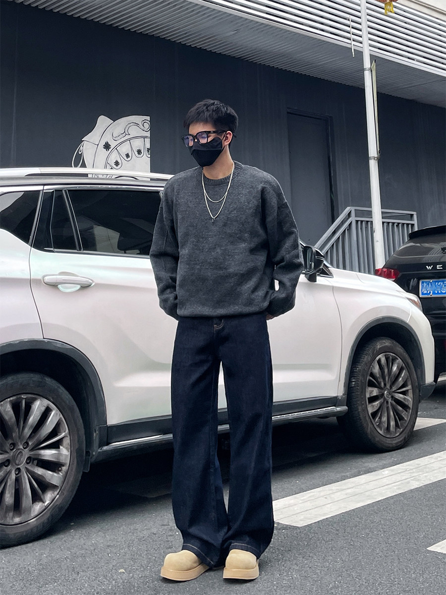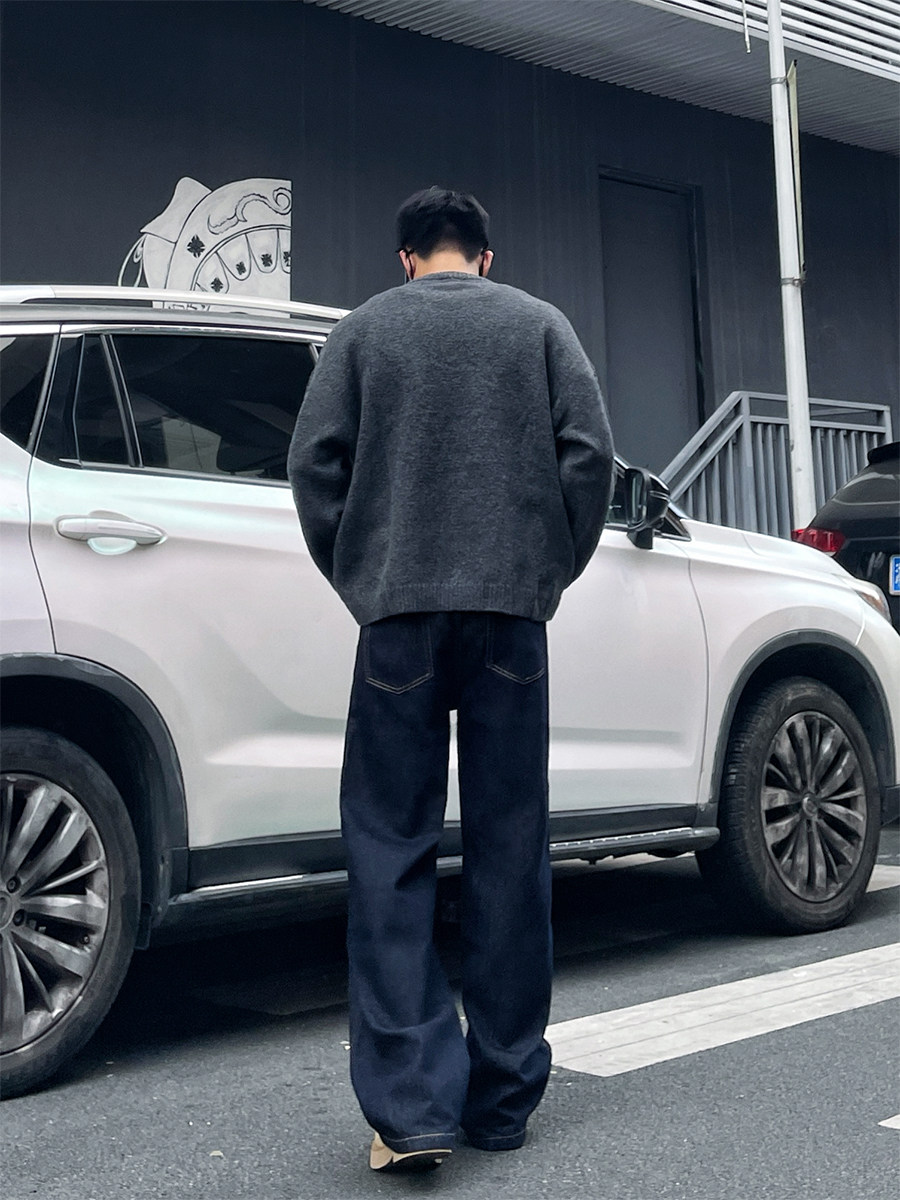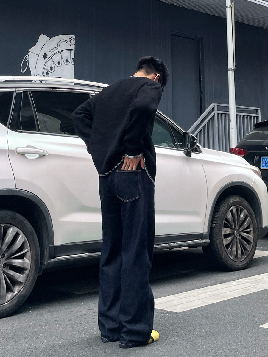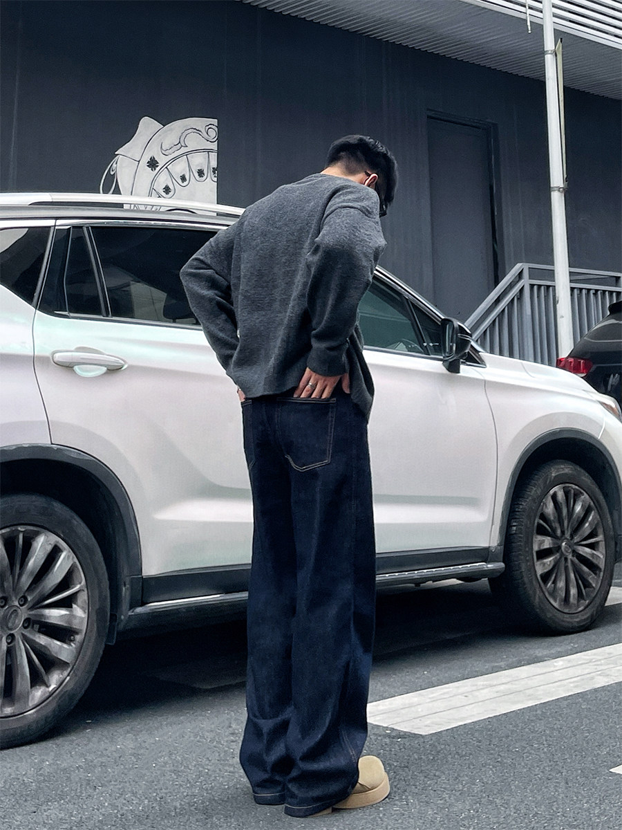 Dal Retro Denim Straight-Leg Jeans for Men 2025 Autumn and Winter Loose Wide-Leg Washed Dark Blue Original Color Long Pants