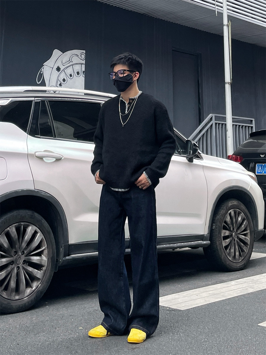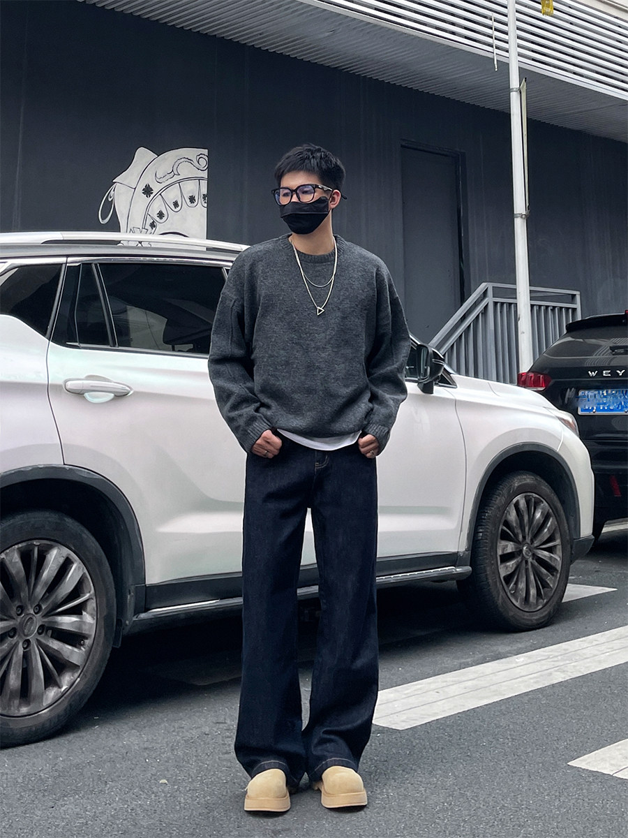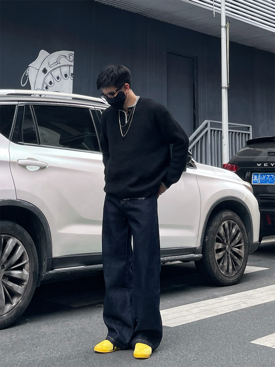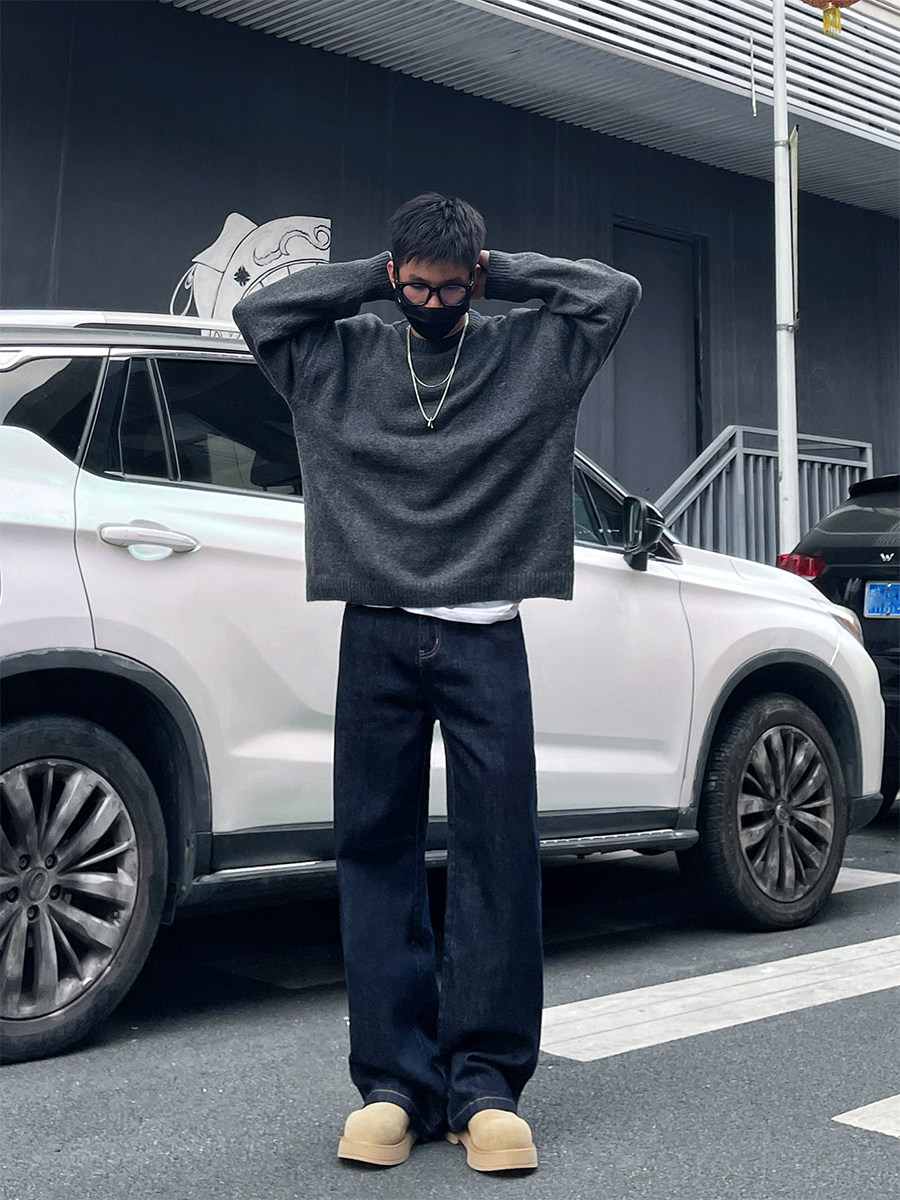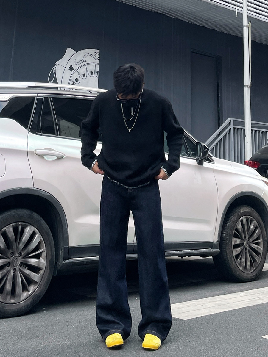 Dal Retro Denim Straight-Leg Jeans for Men 2025 Autumn and Winter Loose Wide-Leg Washed Dark Blue Original Color Long Pants