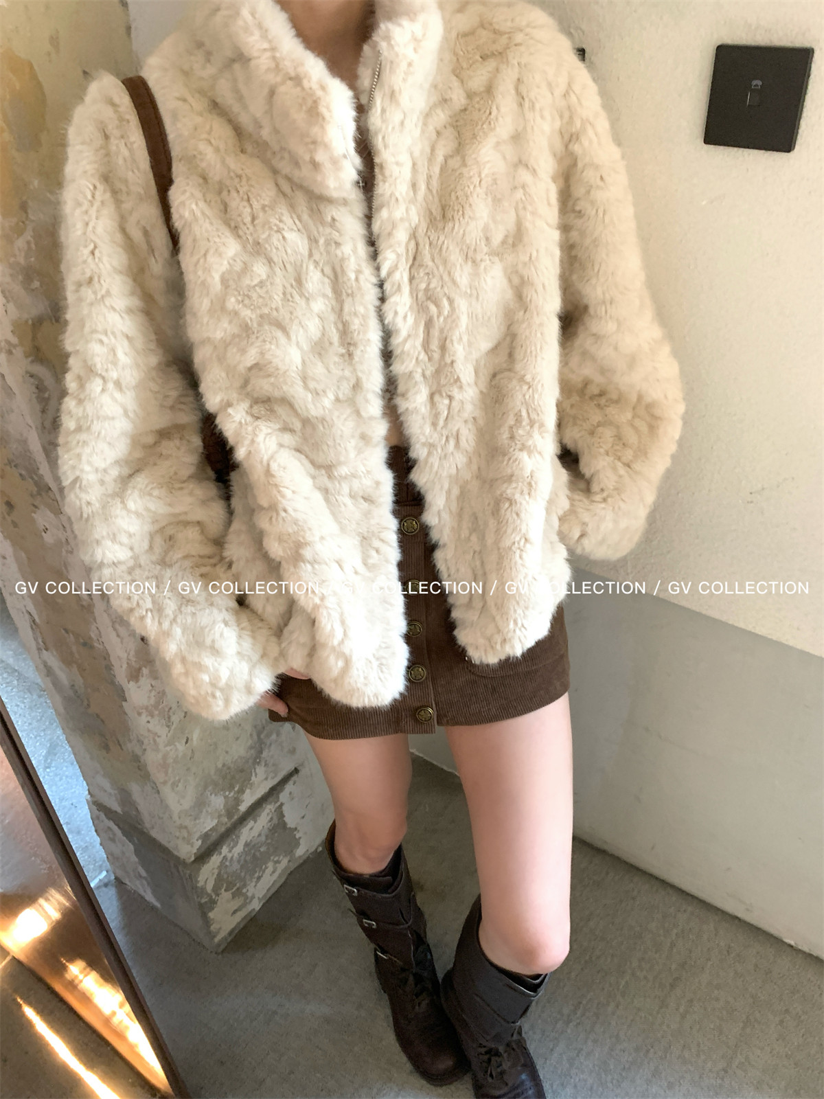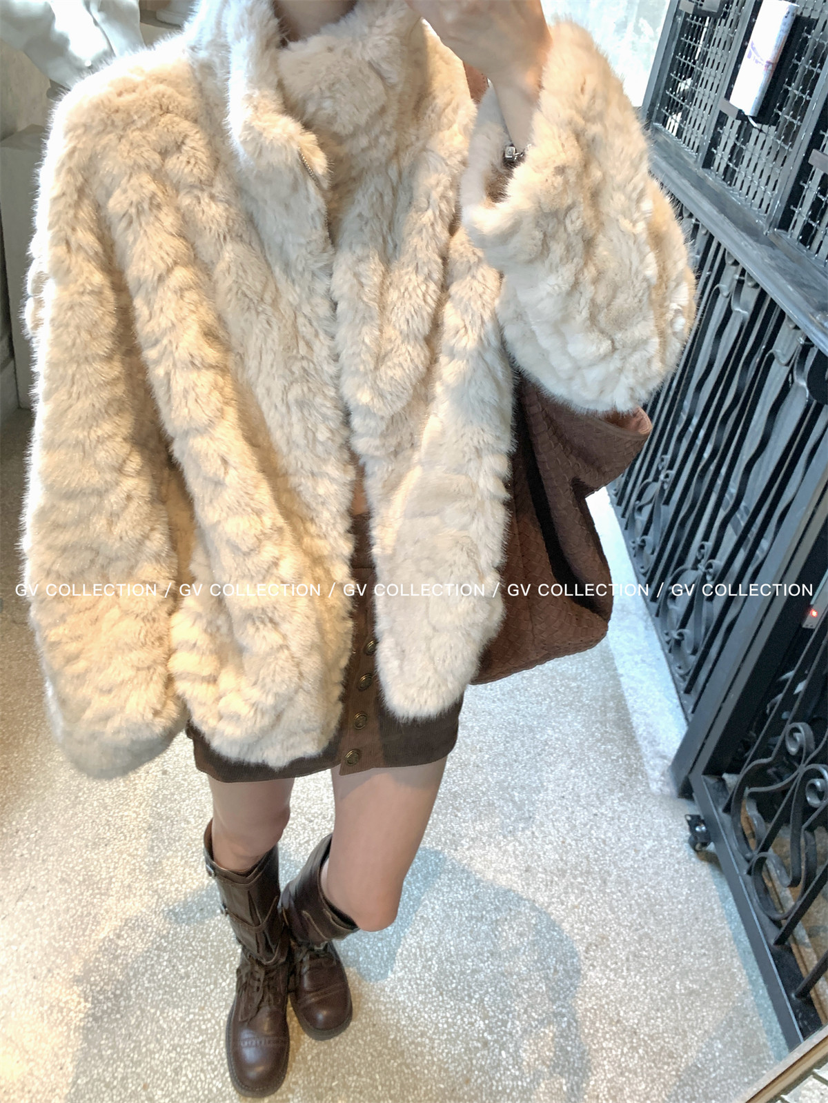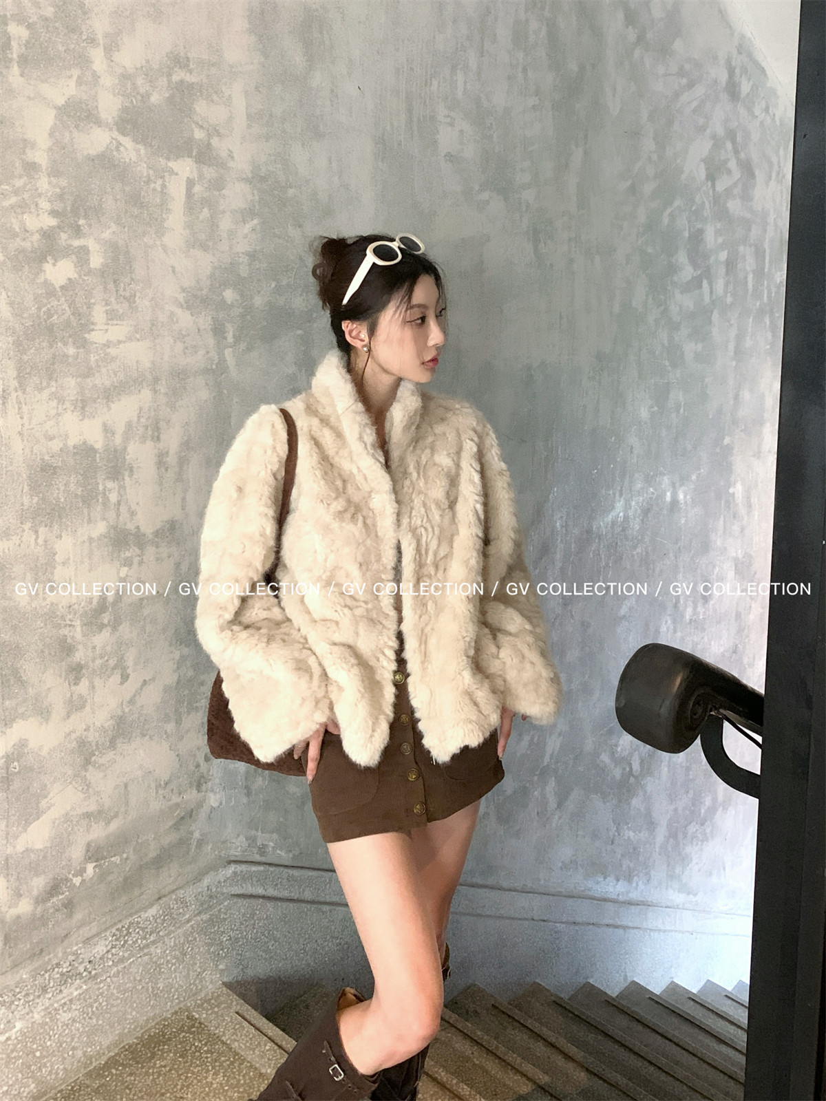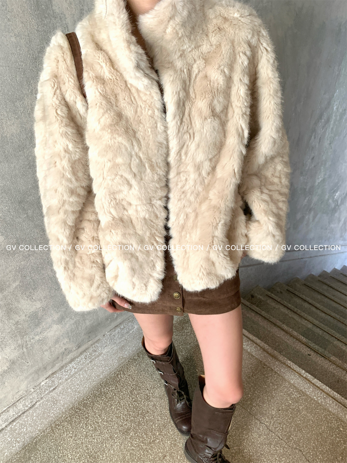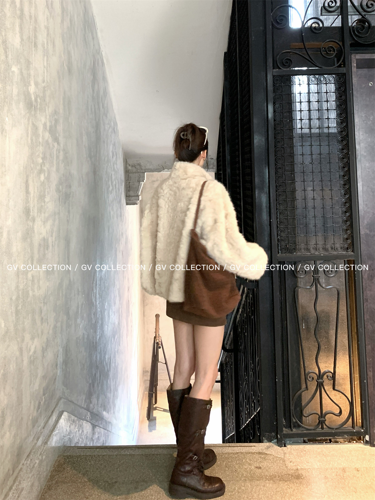Gv Big White Brother's Daughter's Wardrobe Textured Eco-Friendly Fur Stand Collar Jacket Autumn and Winter New Style Women's Top with Elegant Style