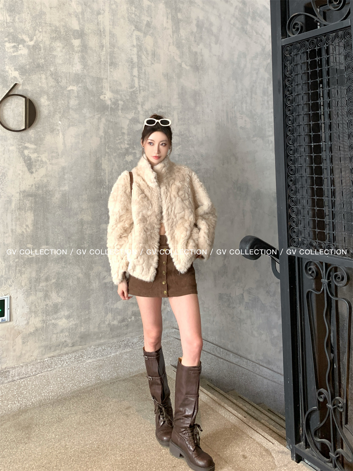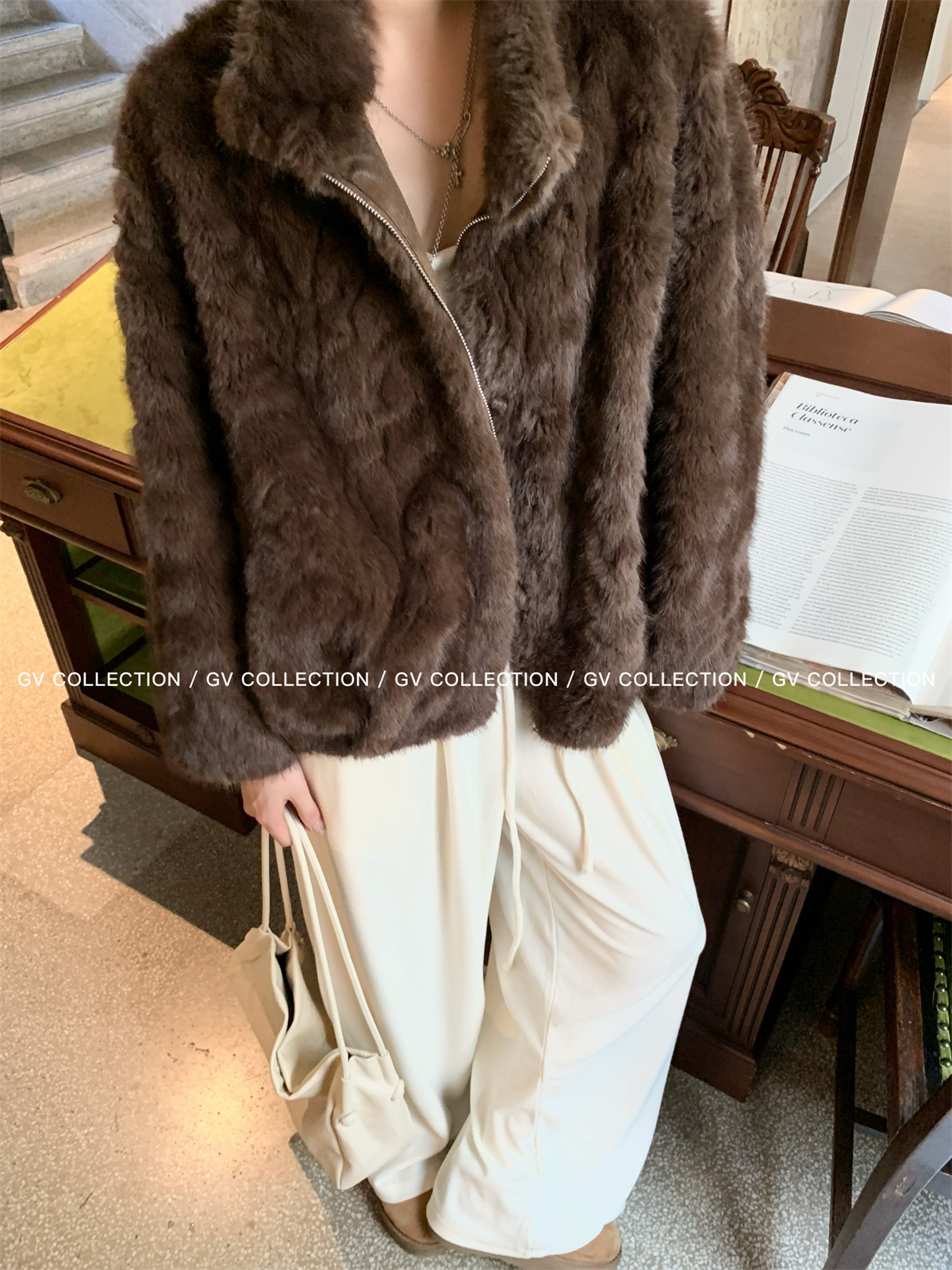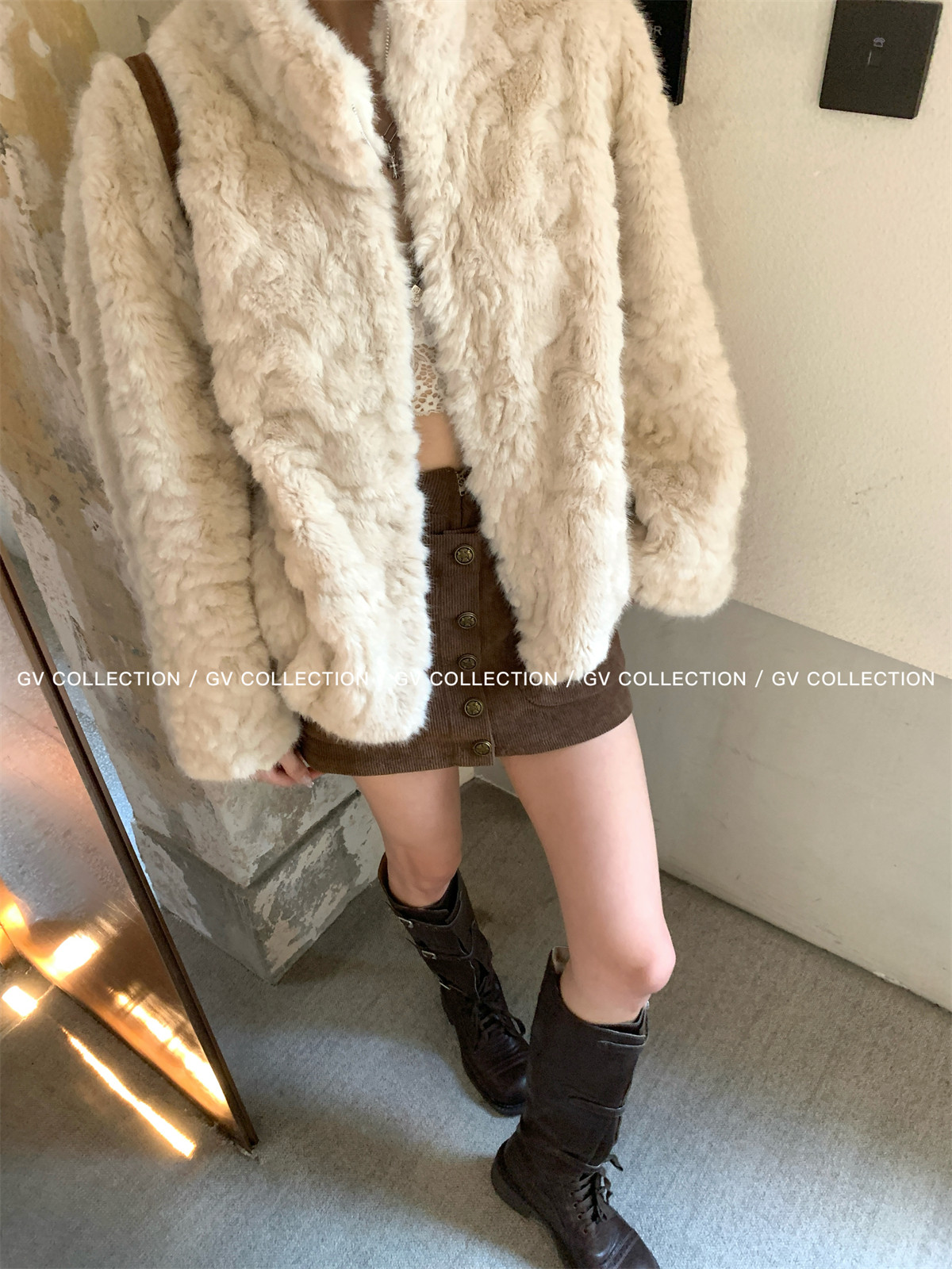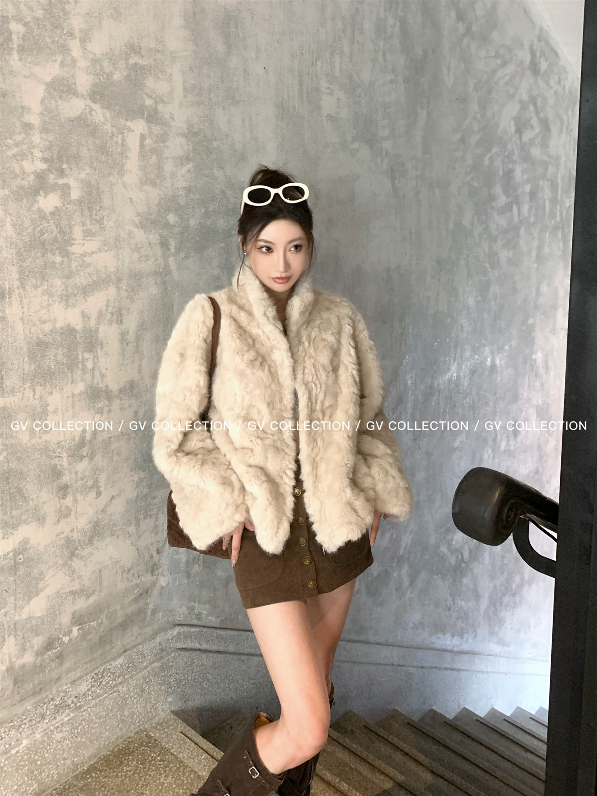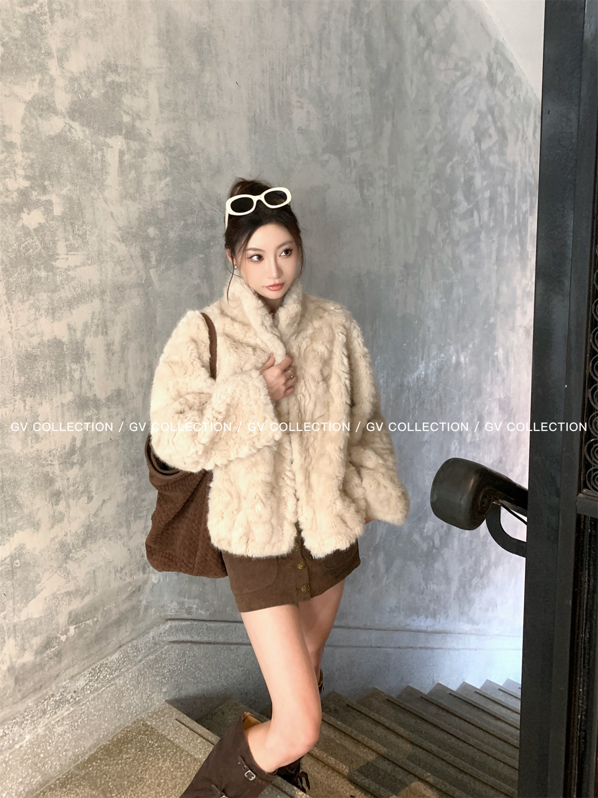 Gv Big White Brother's Daughter's Wardrobe Textured Eco-Friendly Fur Stand Collar Jacket Autumn and Winter New Style Women's Top with Elegant Style