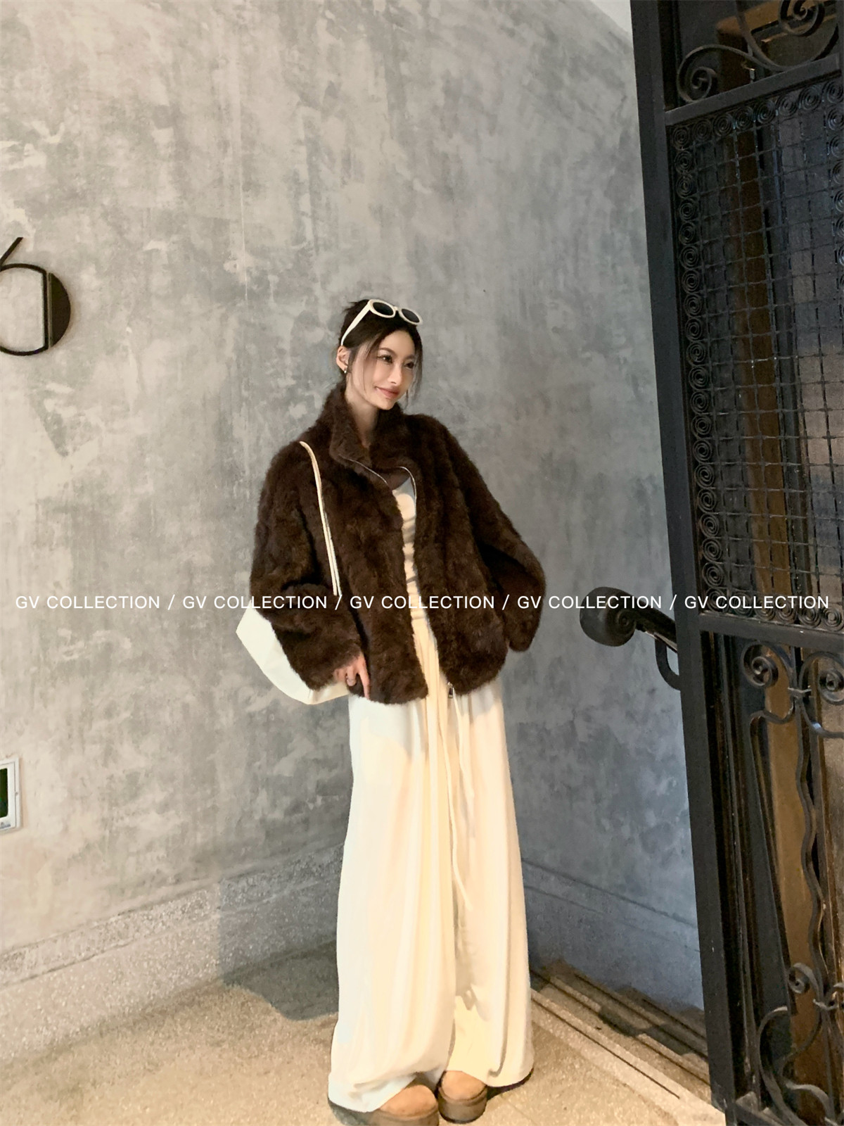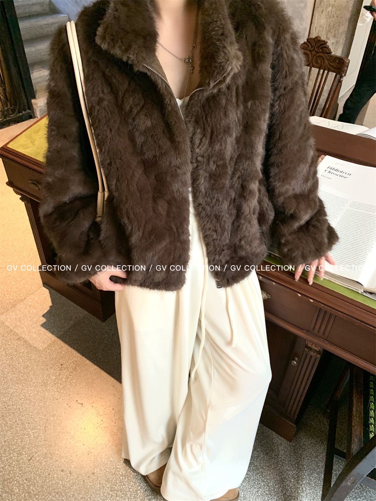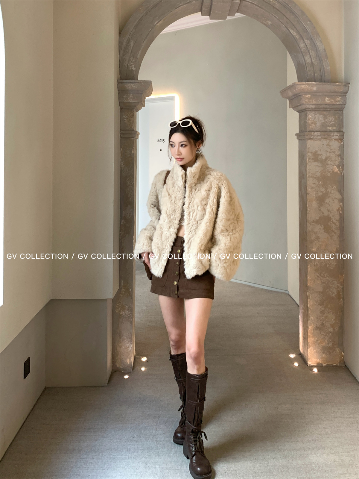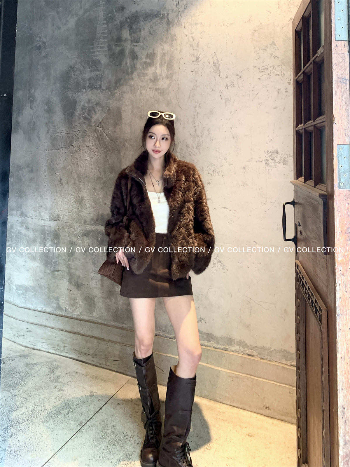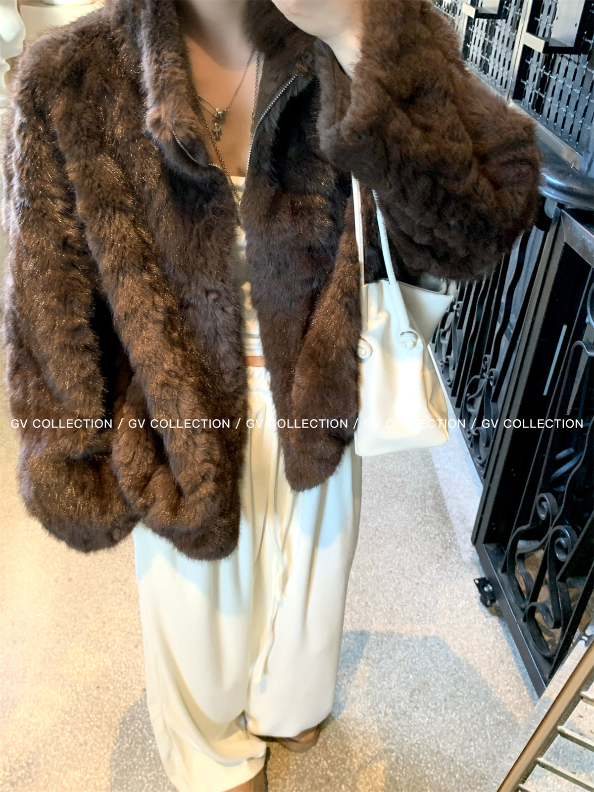 Gv Big White Brother's Daughter's Wardrobe Textured Eco-Friendly Fur Stand Collar Jacket Autumn and Winter New Style Women's Top with Elegant Style