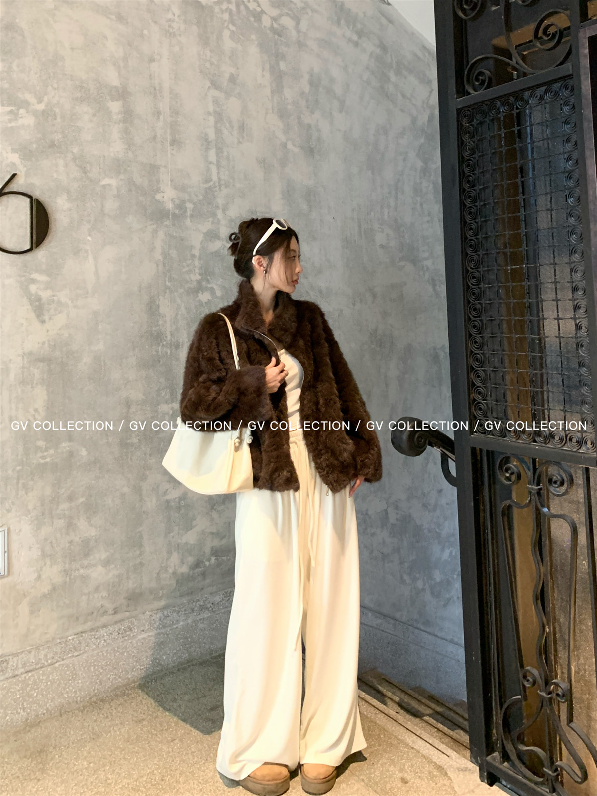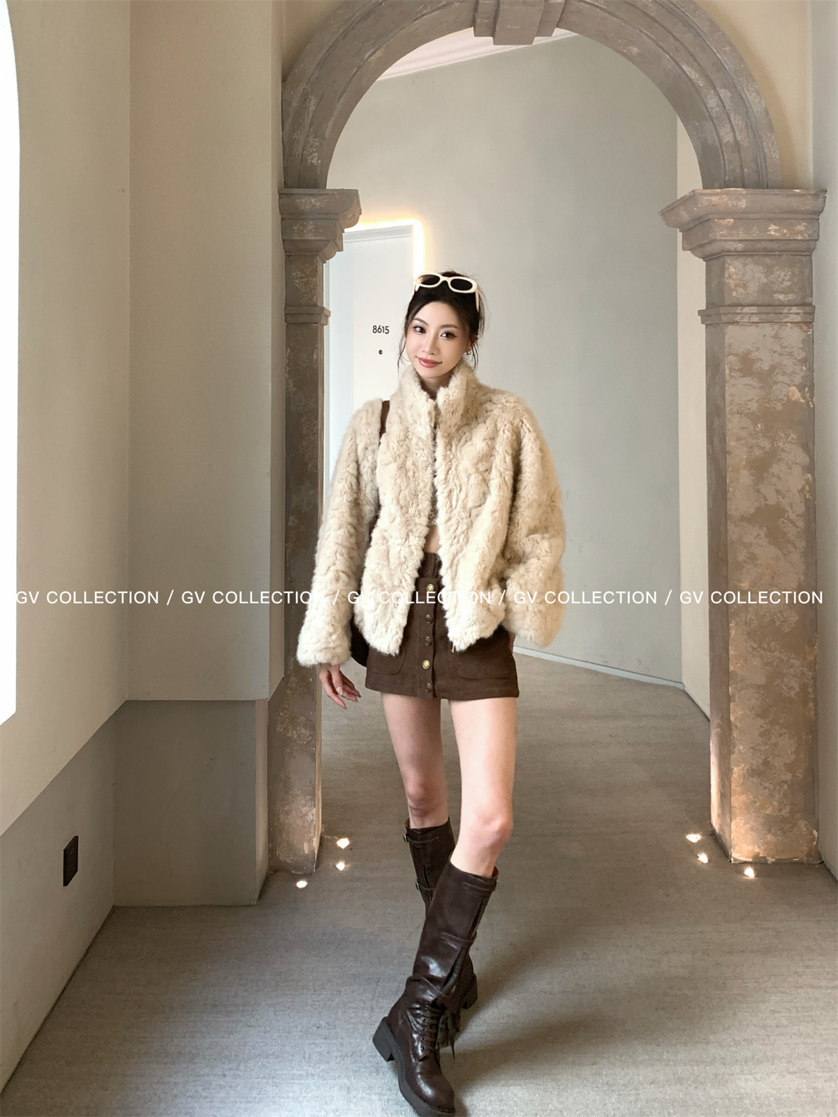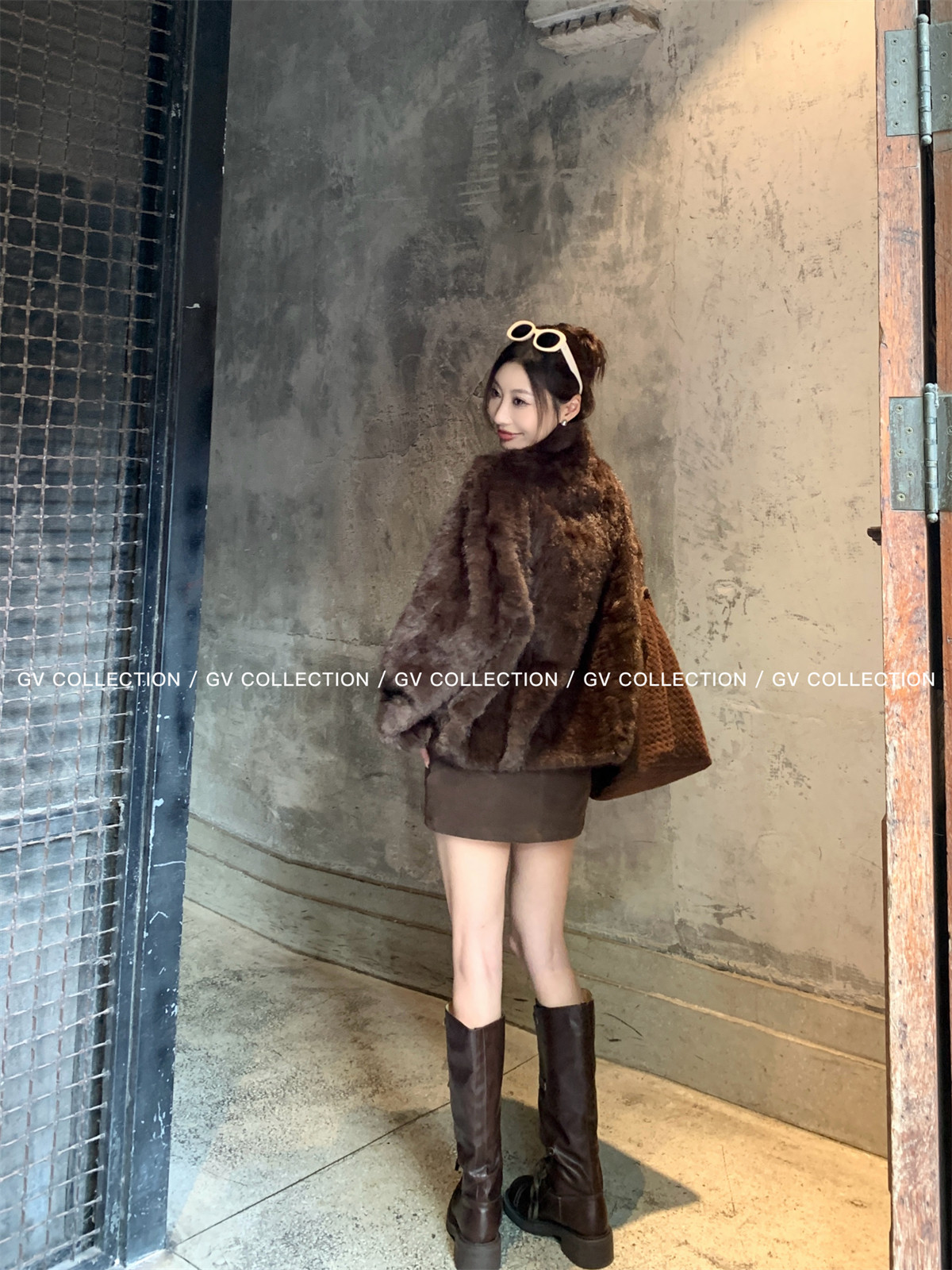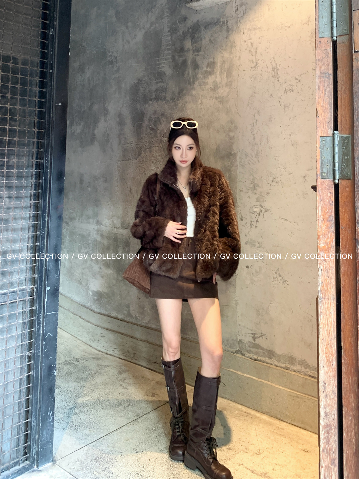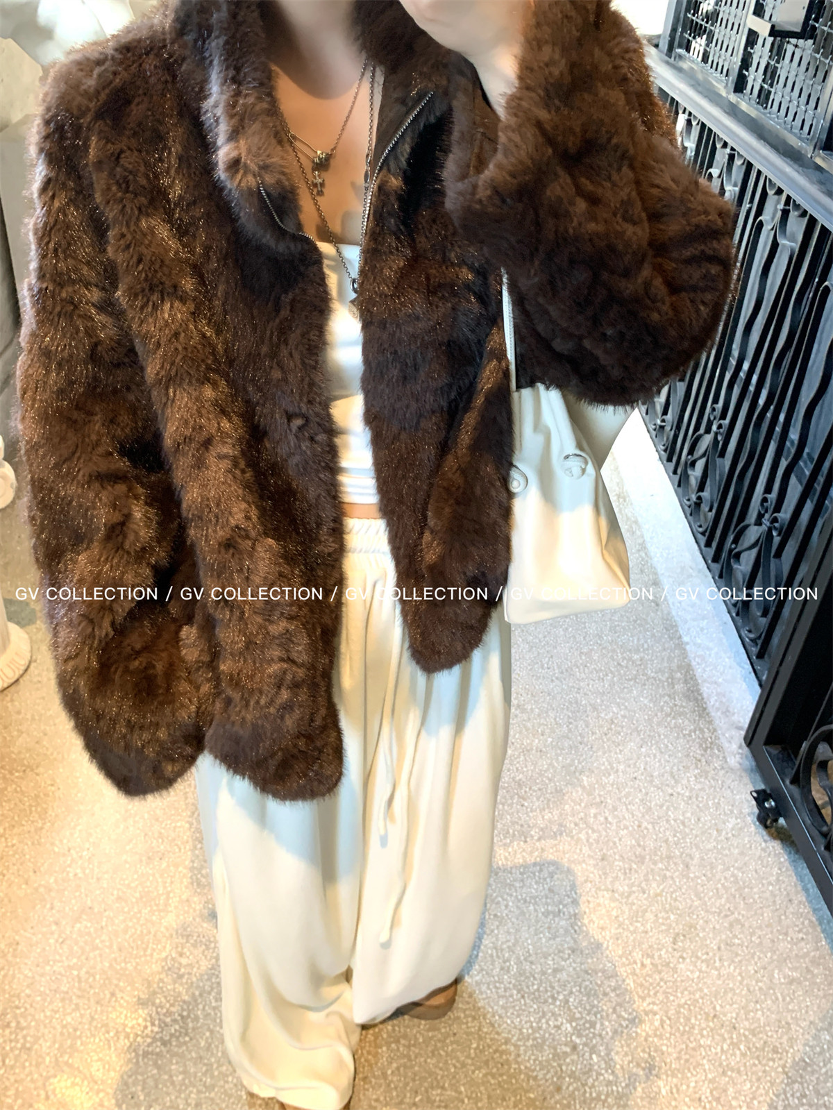 Gv Big White Brother's Daughter's Wardrobe Textured Eco-Friendly Fur Stand Collar Jacket Autumn and Winter New Style Women's Top with Elegant Style