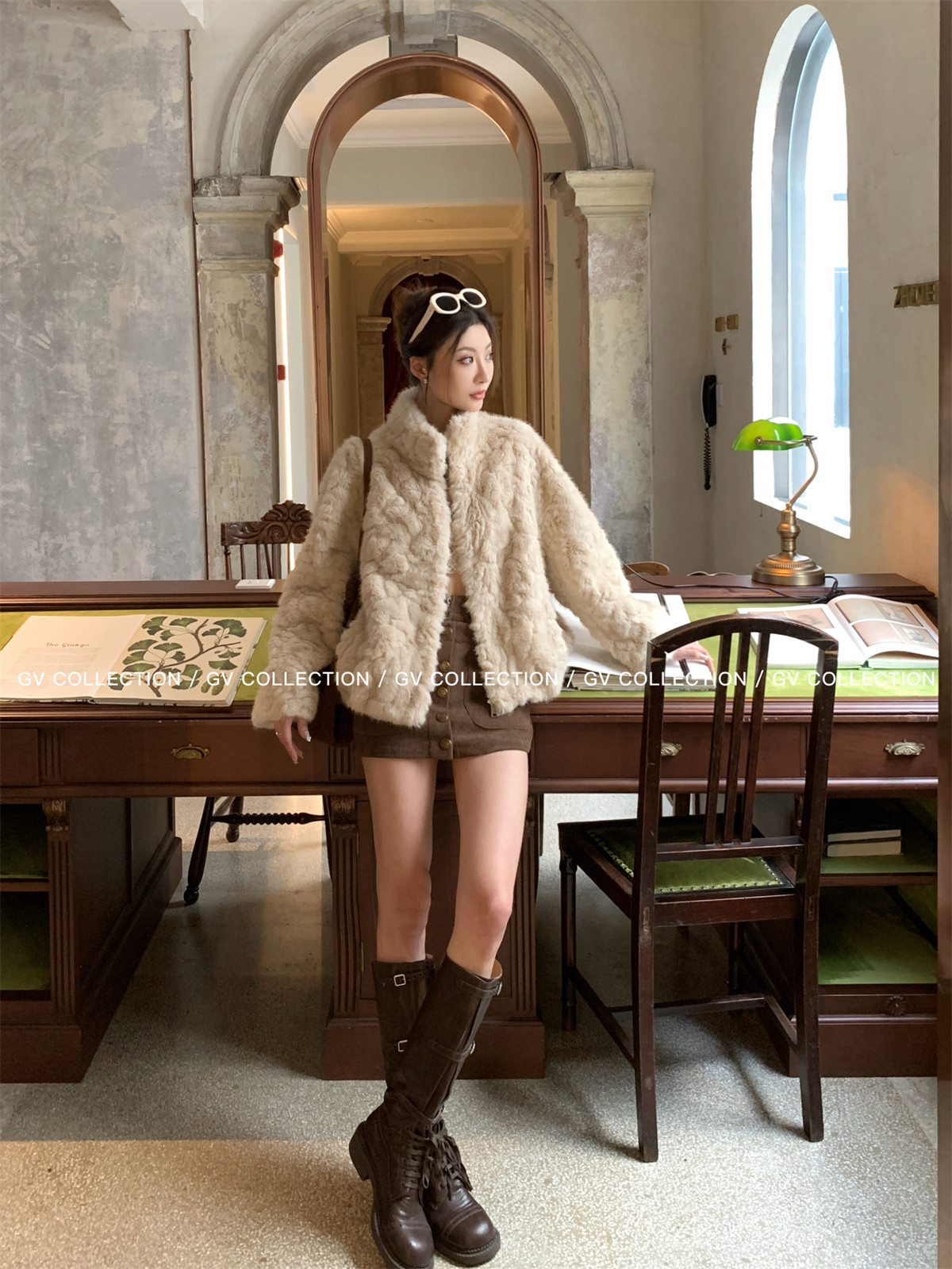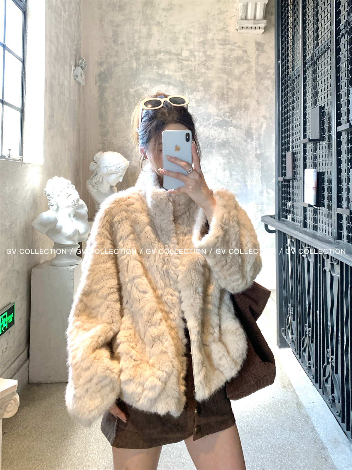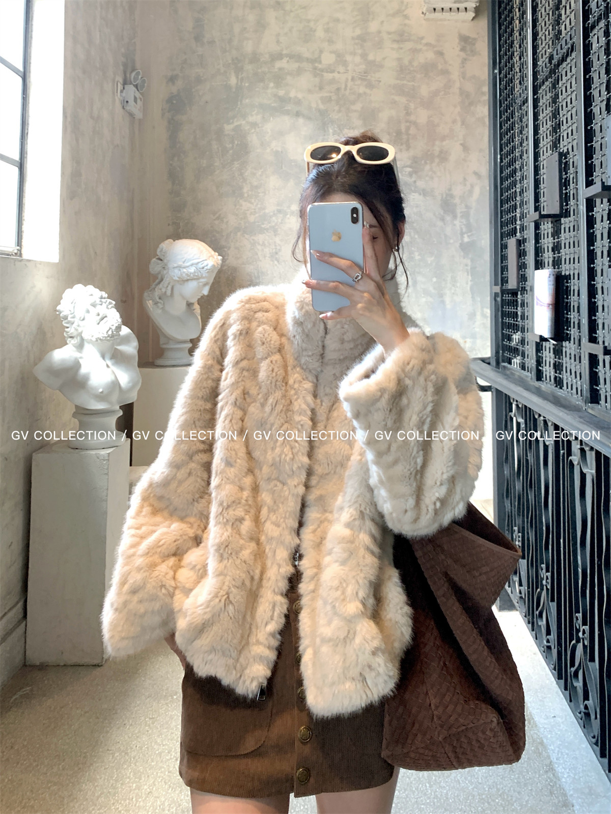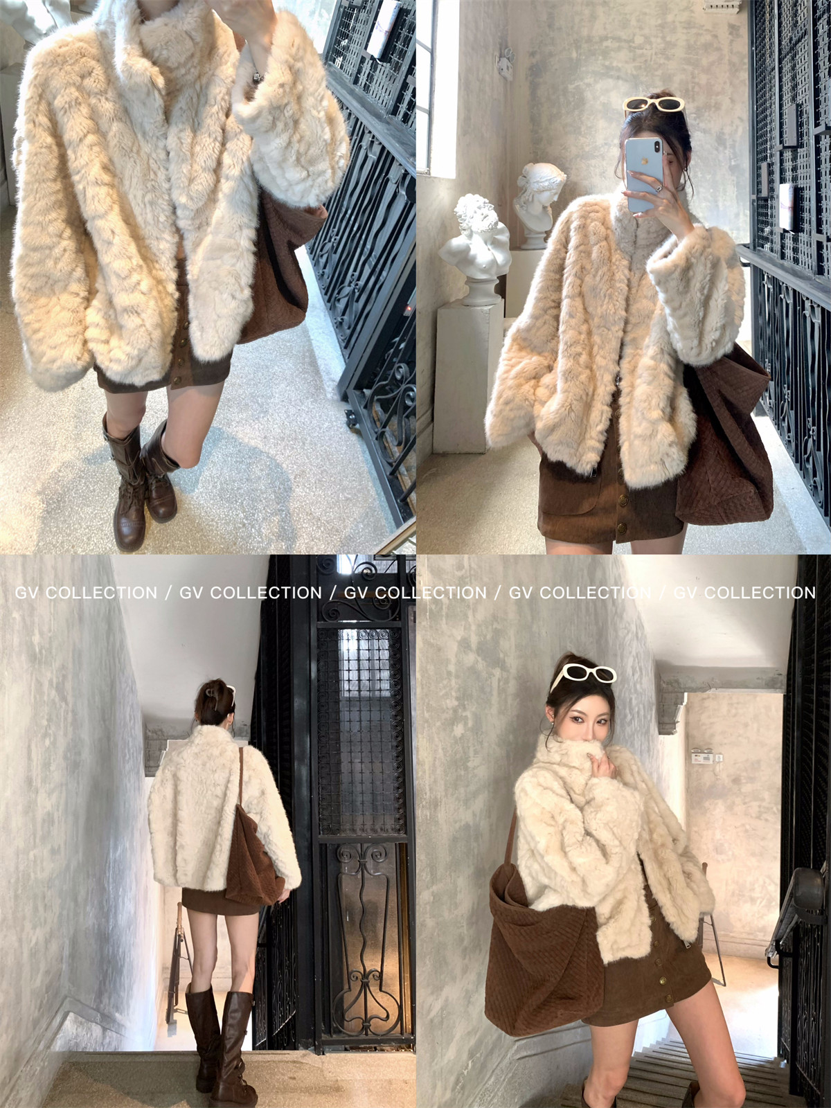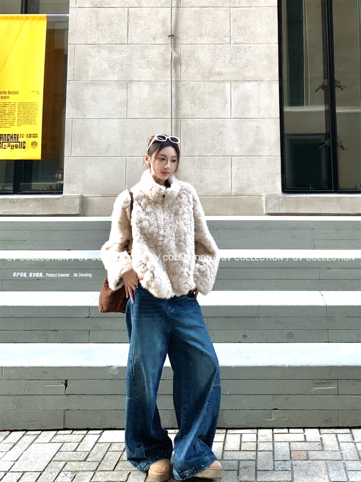 Gv Big White Brother's Daughter's Wardrobe Textured Eco-Friendly Fur Stand Collar Jacket Autumn and Winter New Style Women's Top with Elegant Style