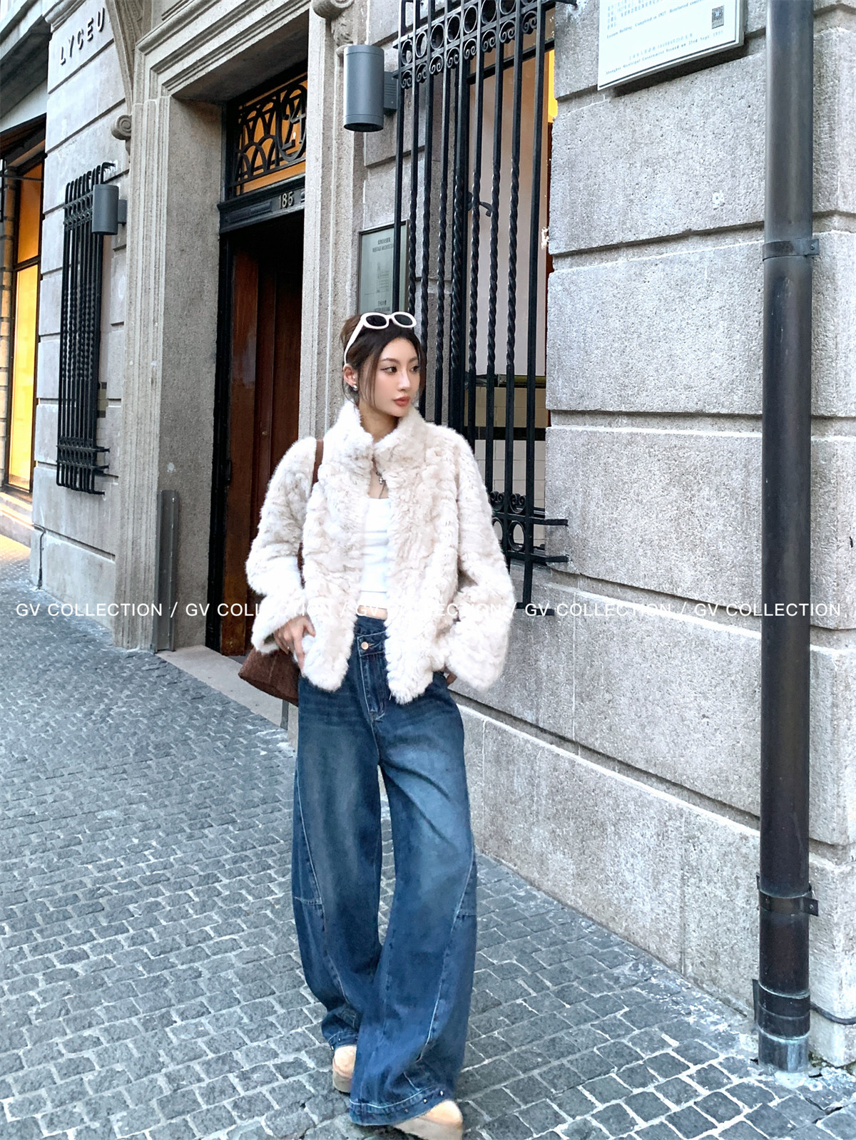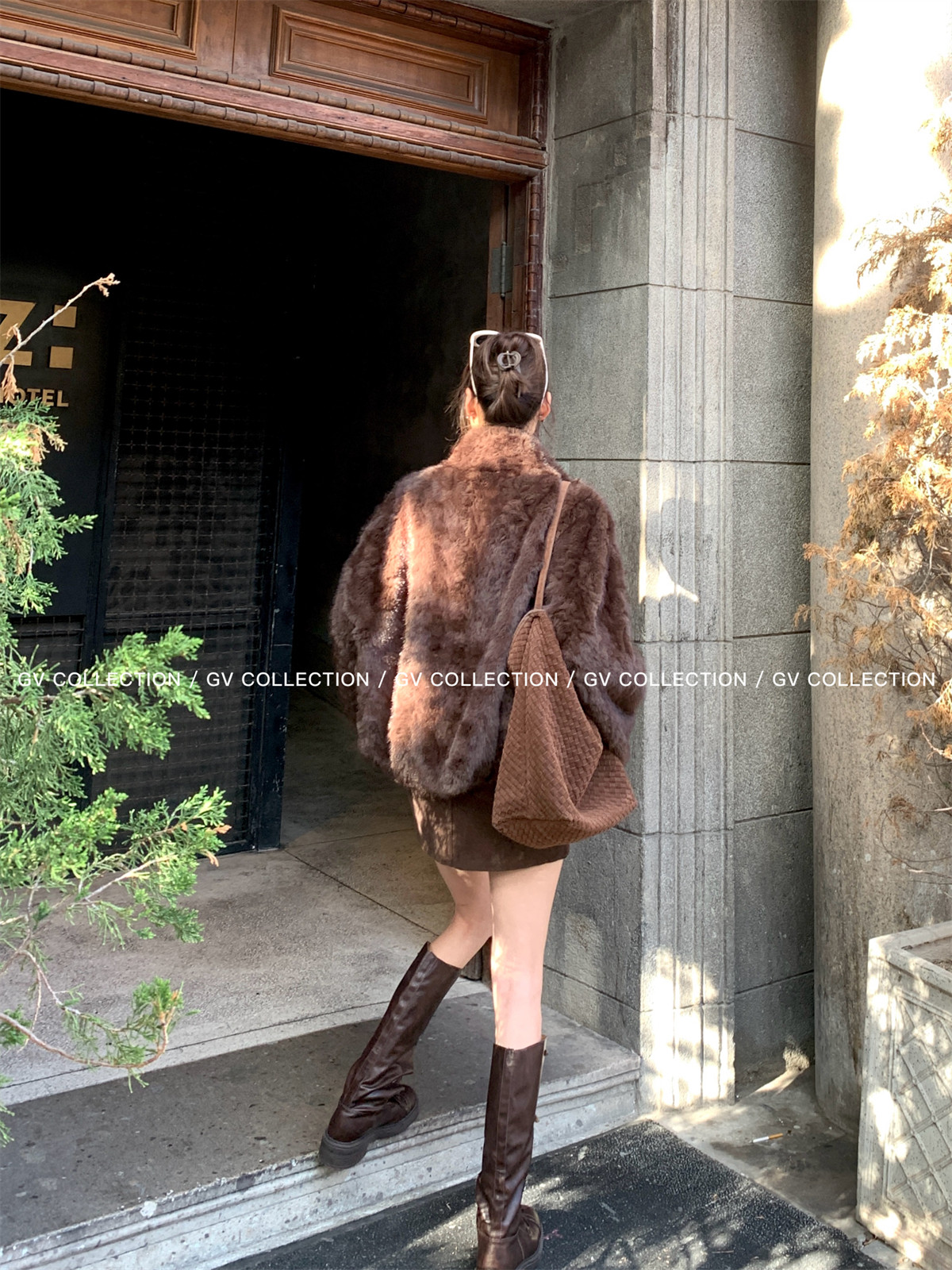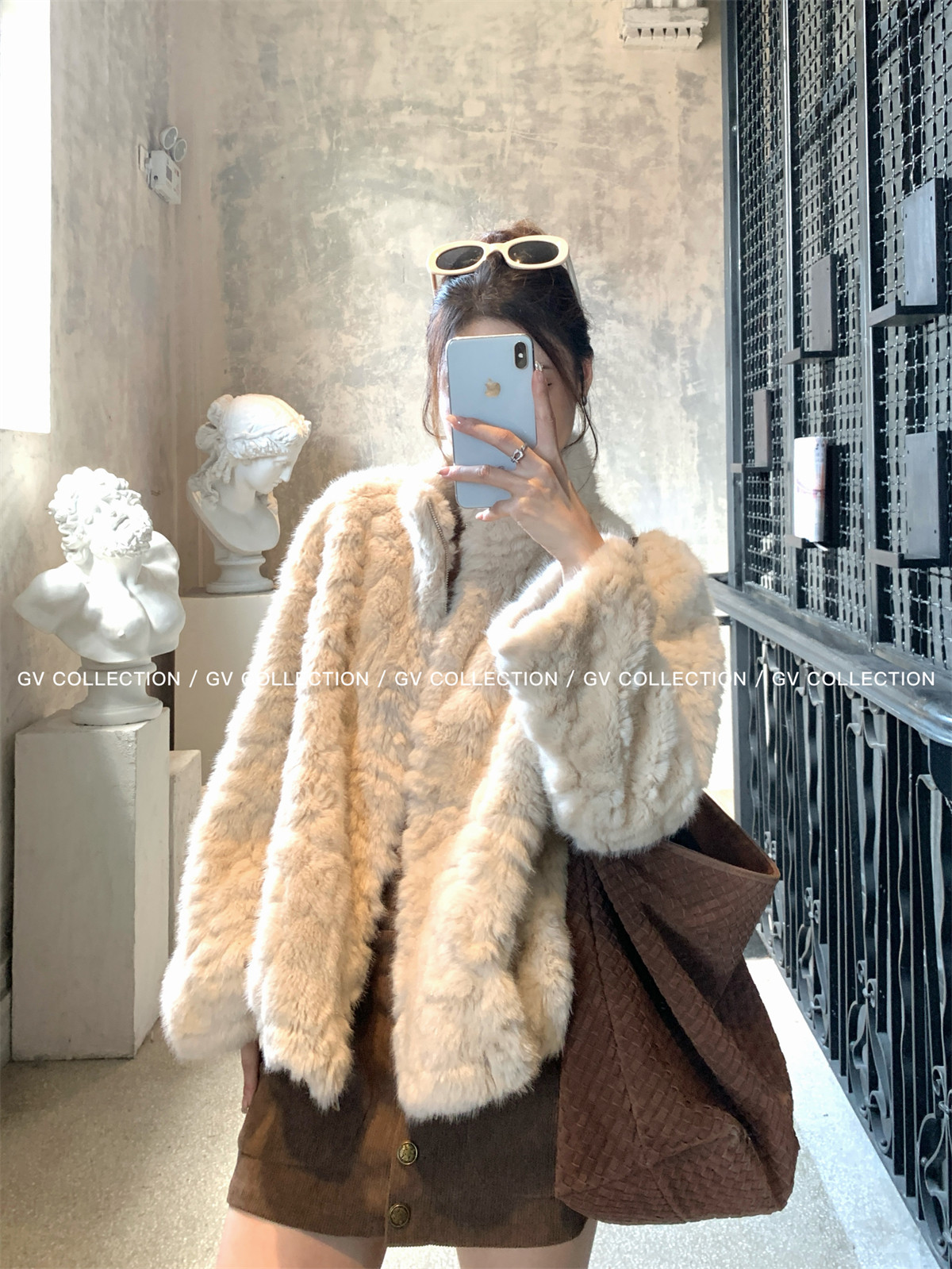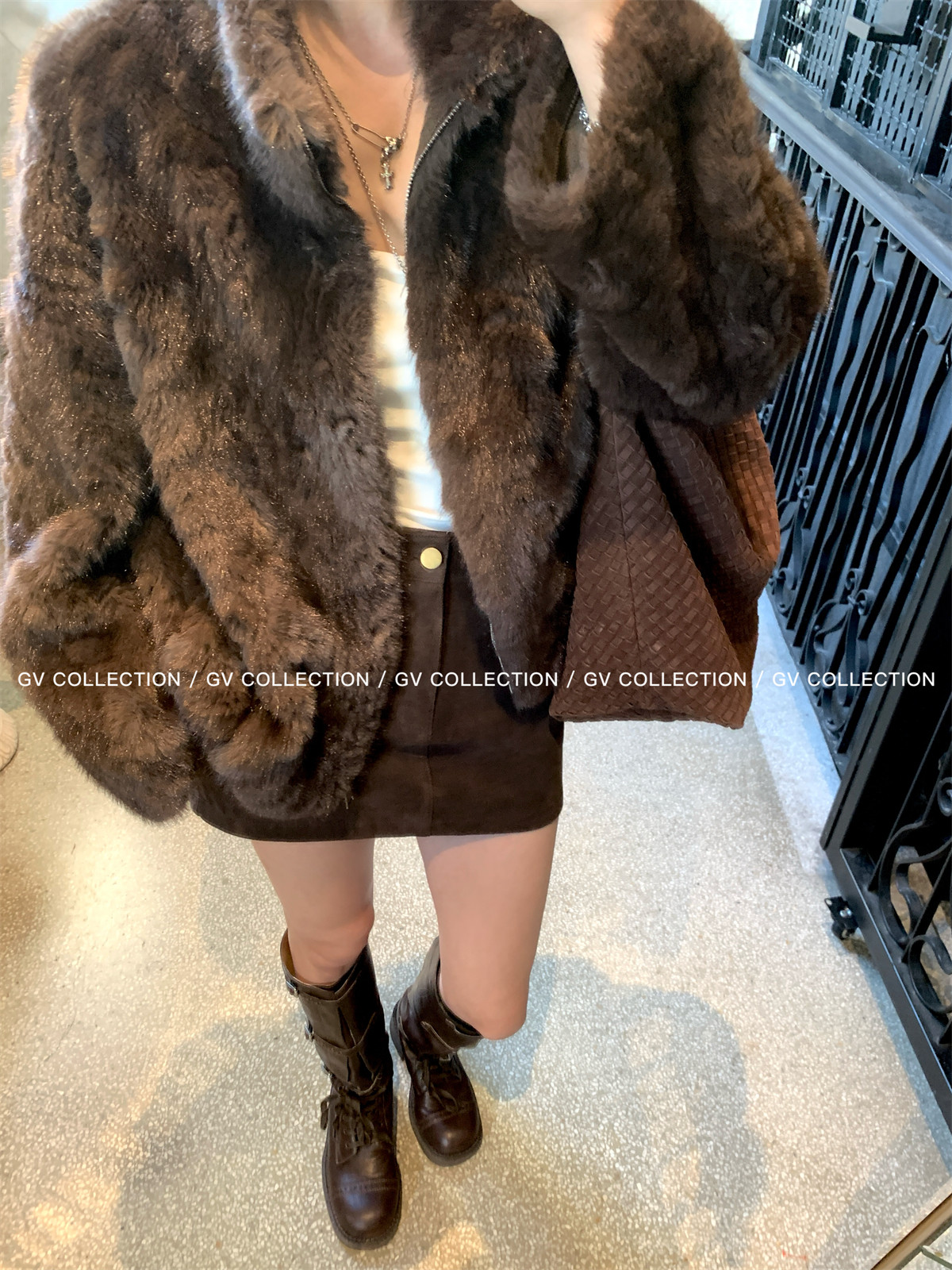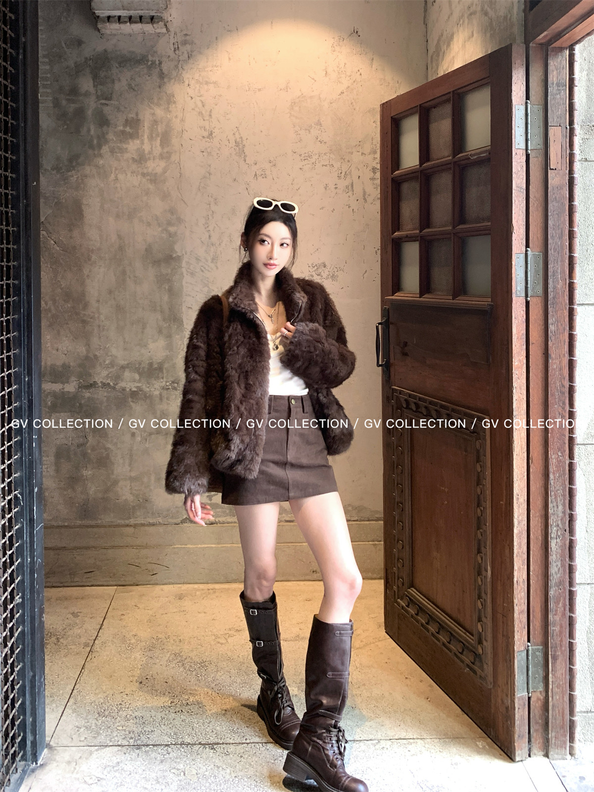 Gv Big White Brother's Daughter's Wardrobe Textured Eco-Friendly Fur Stand Collar Jacket Autumn and Winter New Style Women's Top with Elegant Style