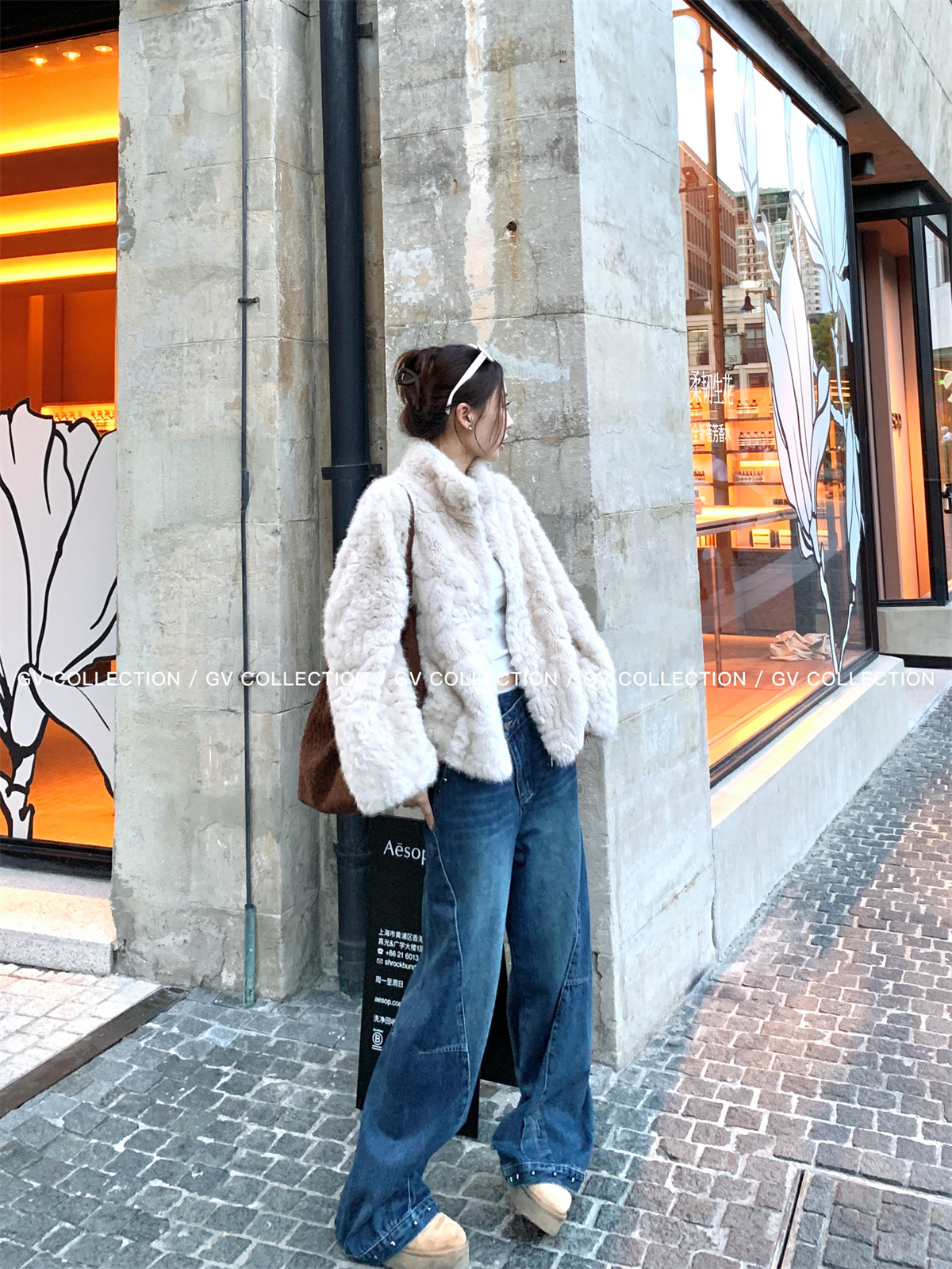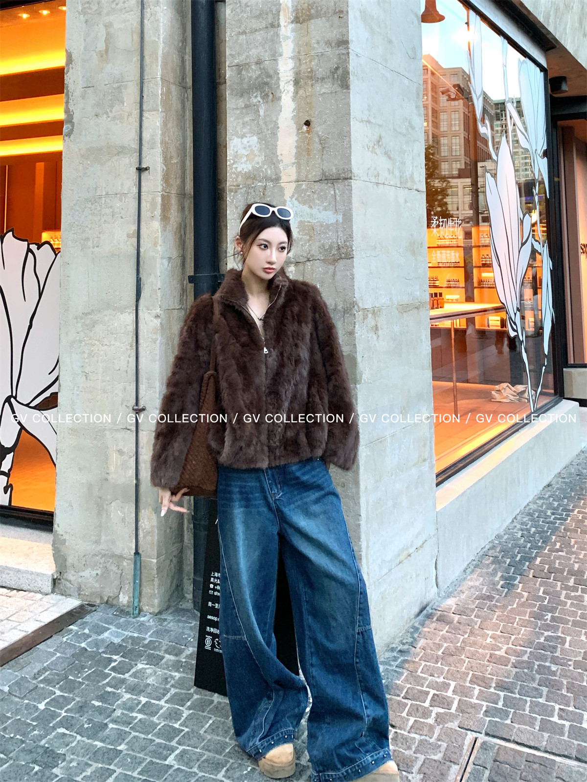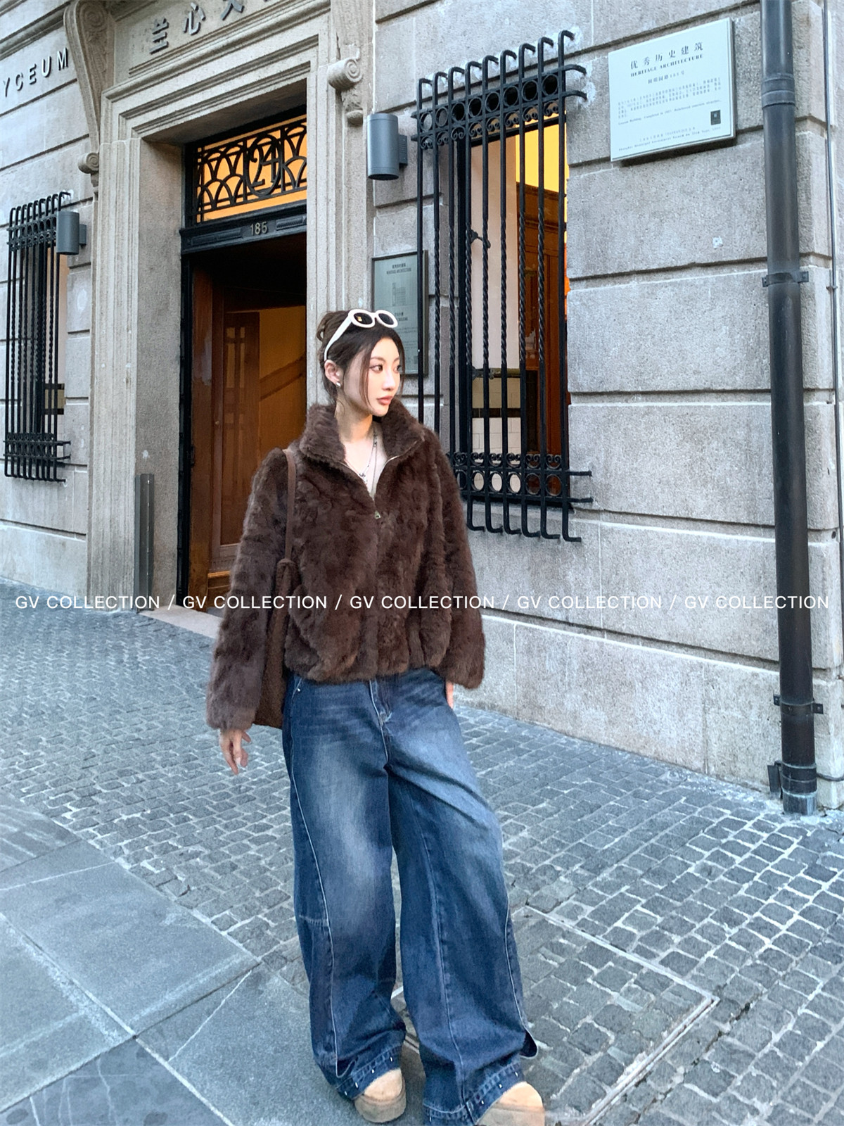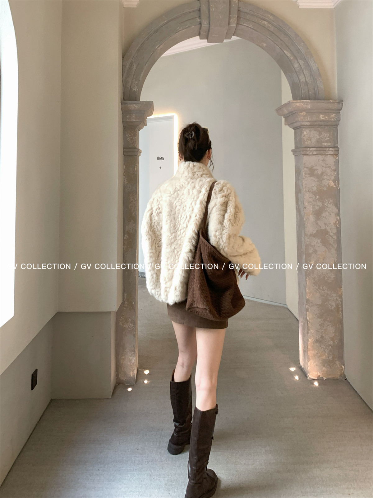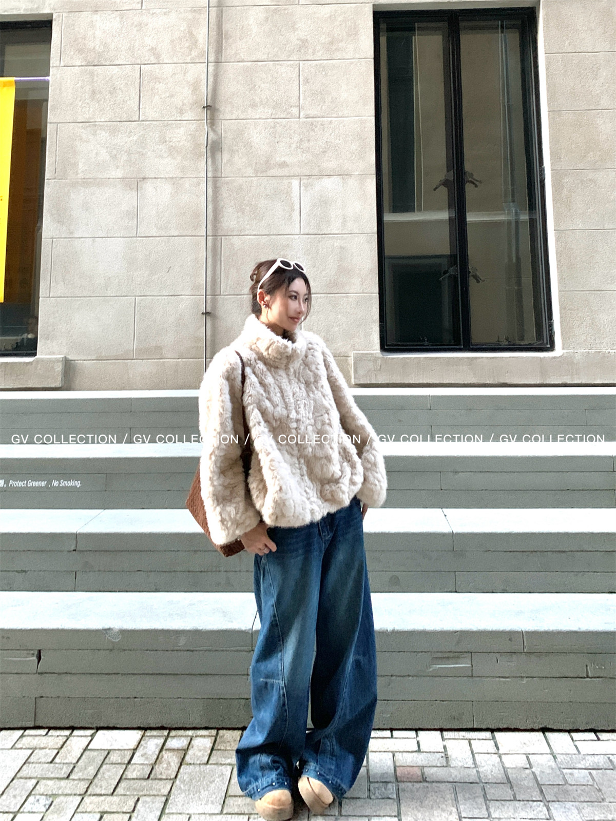Gv Big White Brother's Daughter's Wardrobe Textured Eco-Friendly Fur Stand Collar Jacket Autumn and Winter New Style Women's Top with Elegant Style