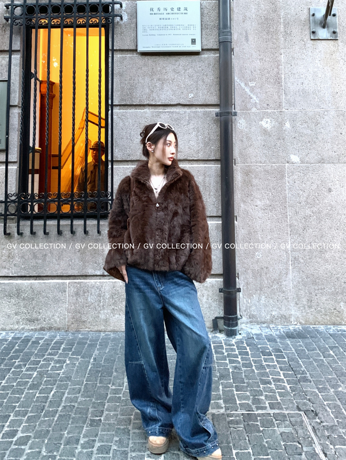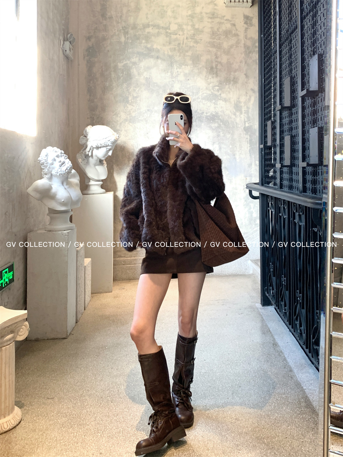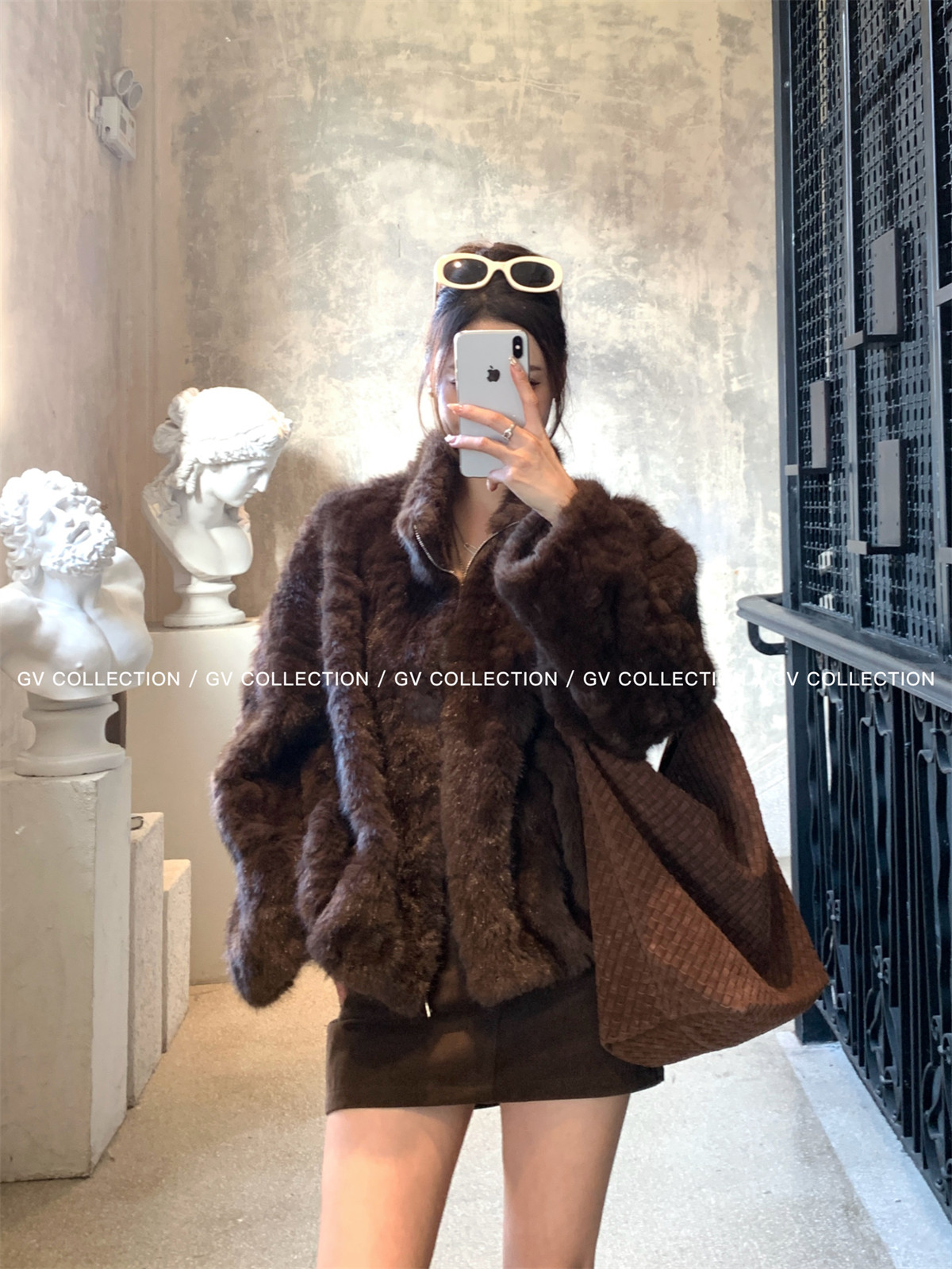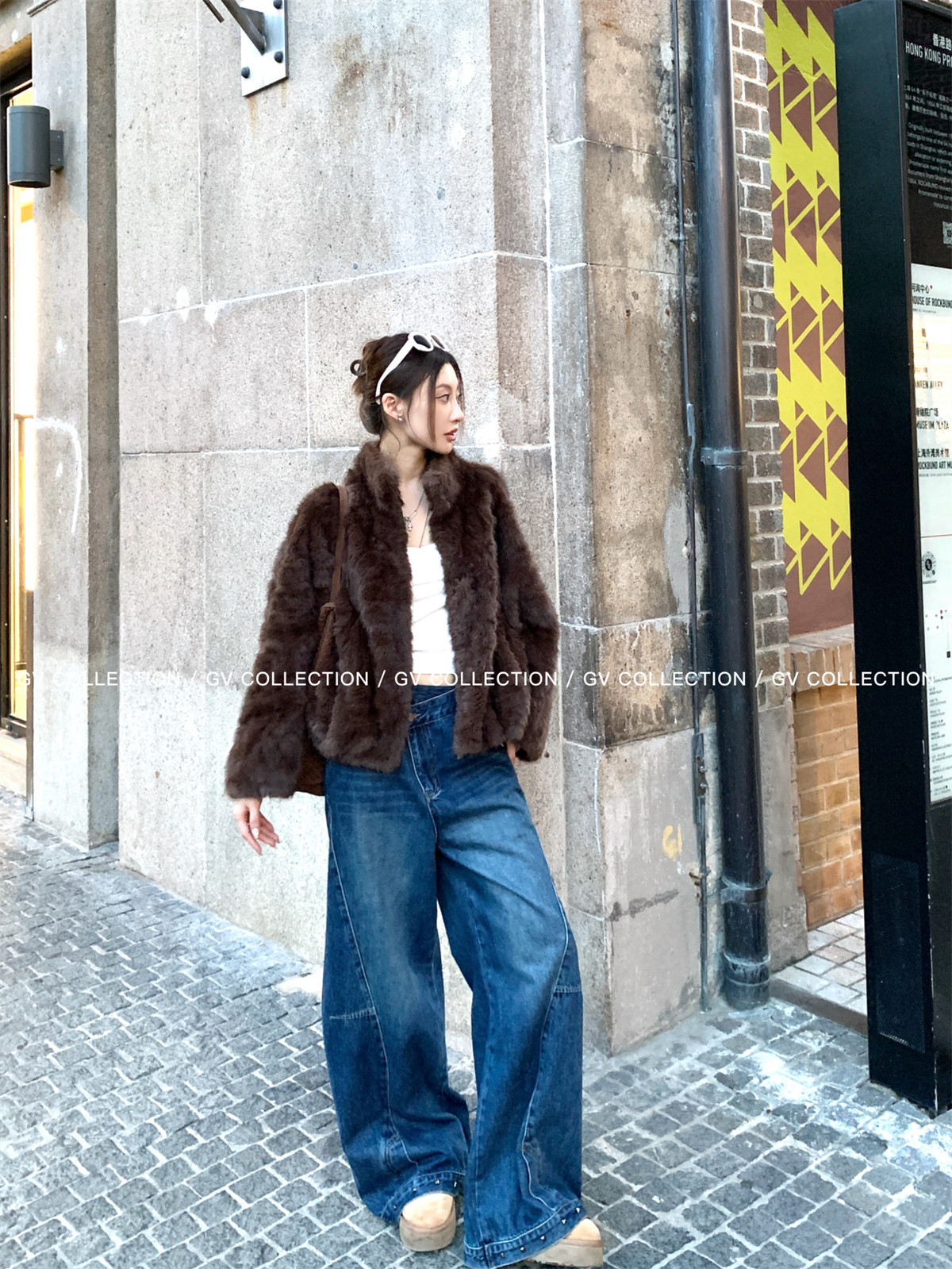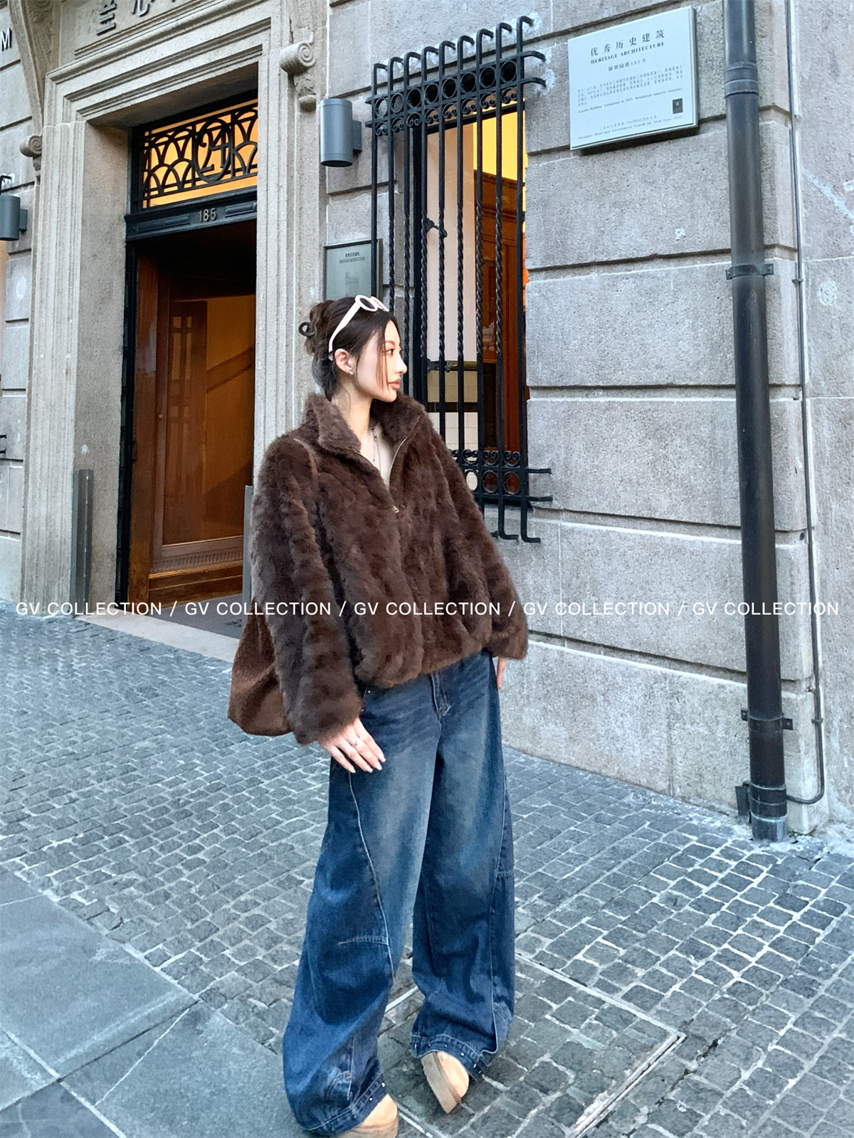 Gv Big White Brother's Daughter's Wardrobe Textured Eco-Friendly Fur Stand Collar Jacket Autumn and Winter New Style Women's Top with Elegant Style