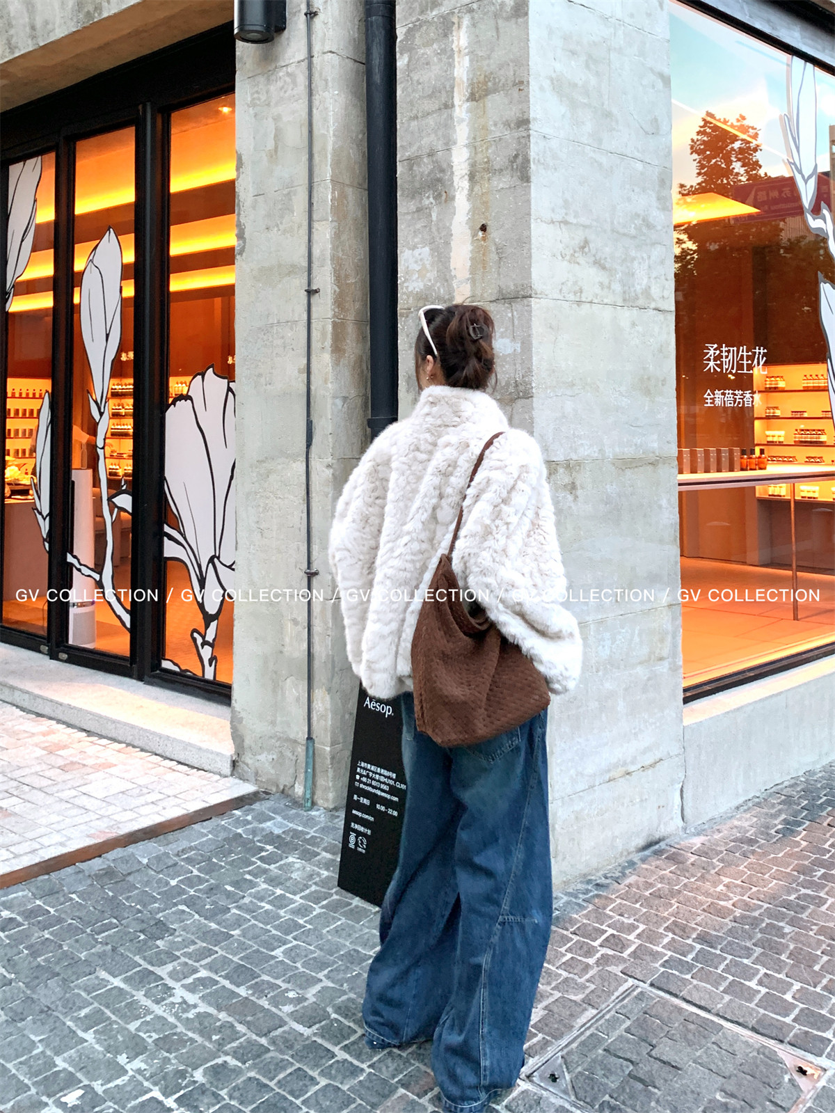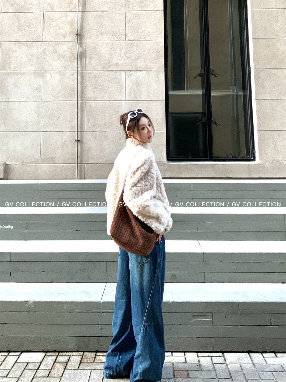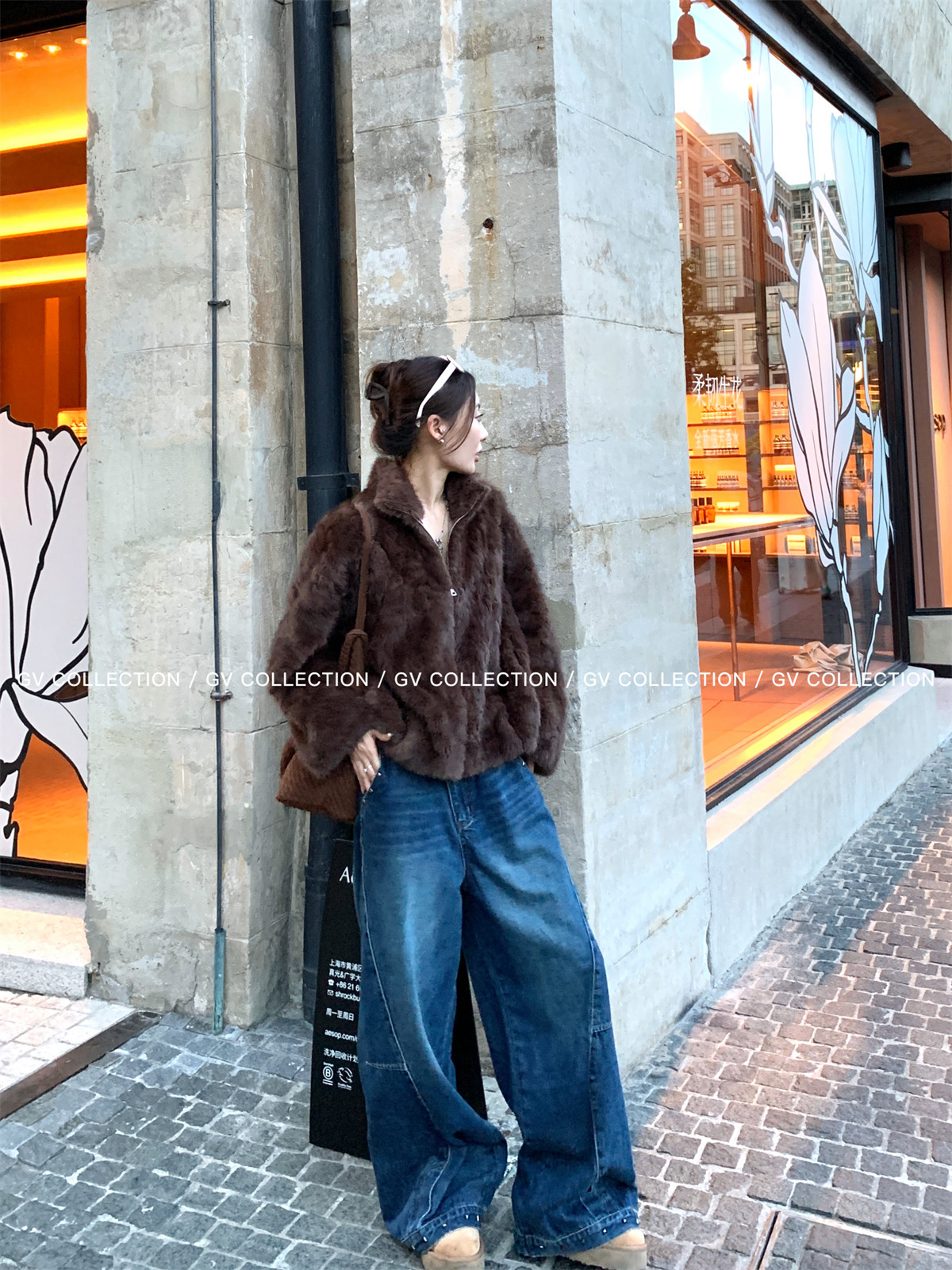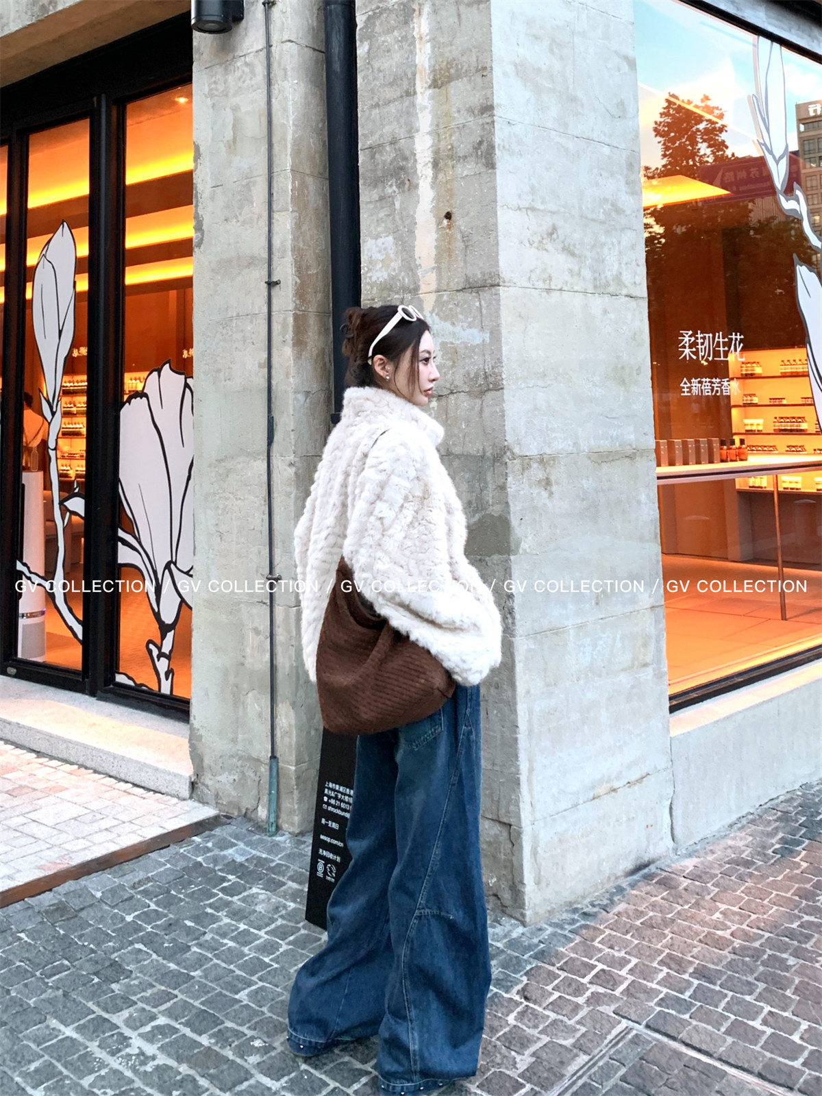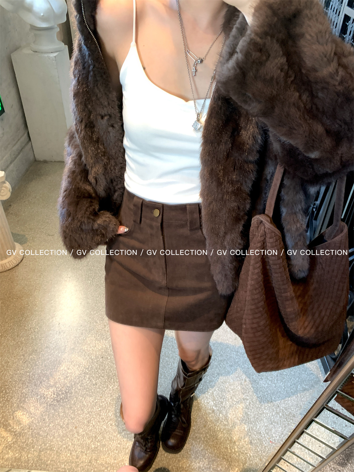 Gv Big White Brother's Daughter's Wardrobe Textured Eco-Friendly Fur Stand Collar Jacket Autumn and Winter New Style Women's Top with Elegant Style