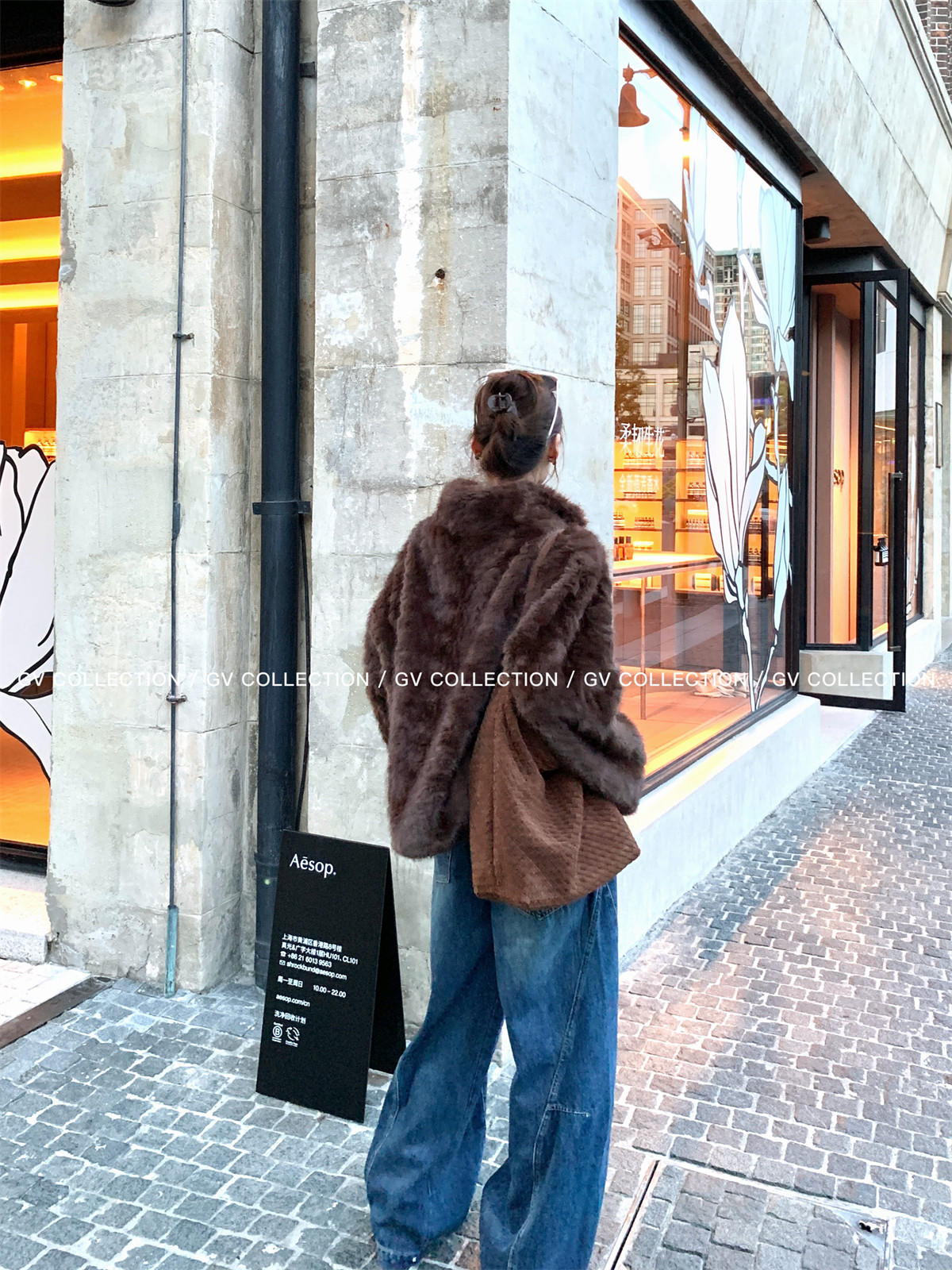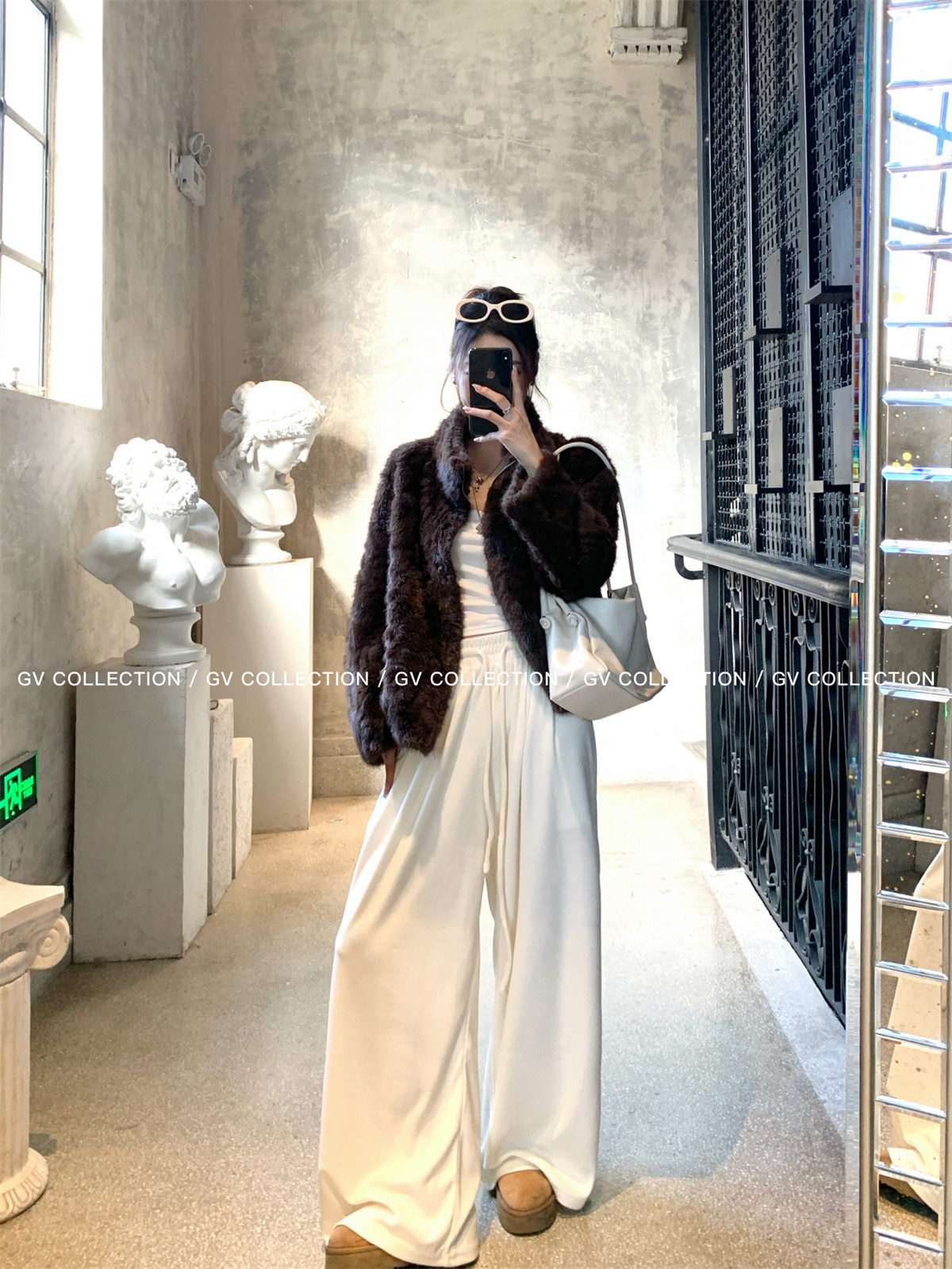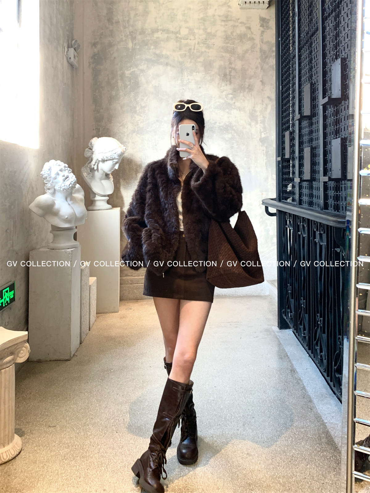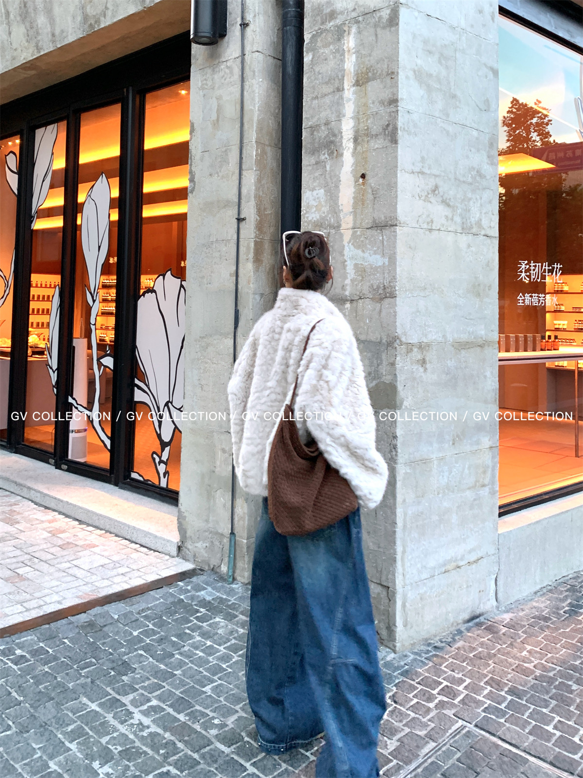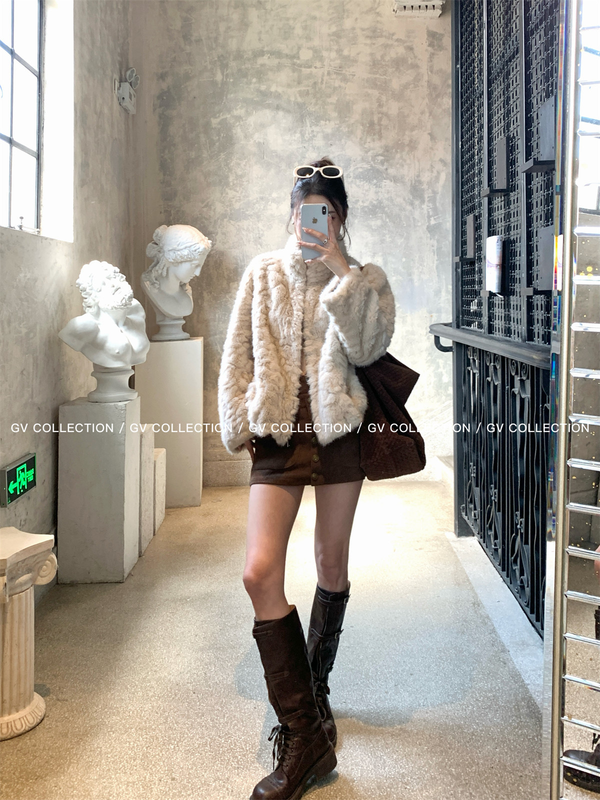 Gv Big White Brother's Daughter's Wardrobe Textured Eco-Friendly Fur Stand Collar Jacket Autumn and Winter New Style Women's Top with Elegant Style