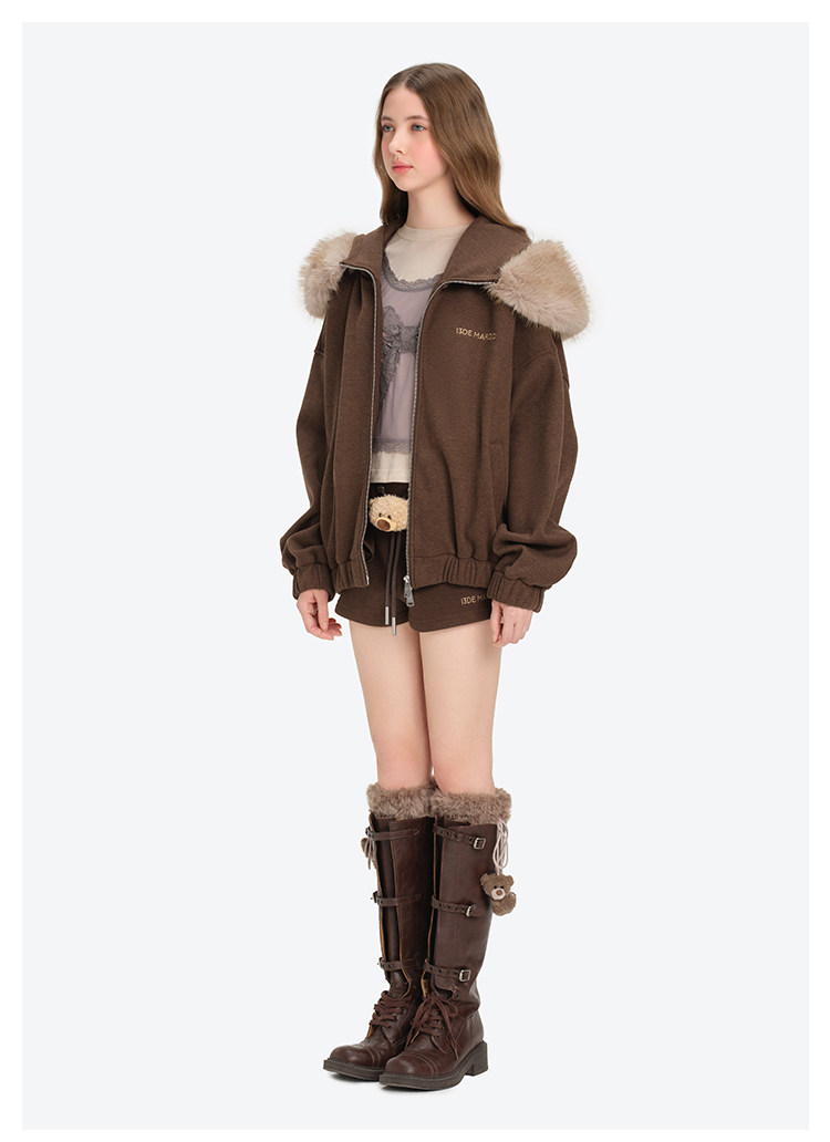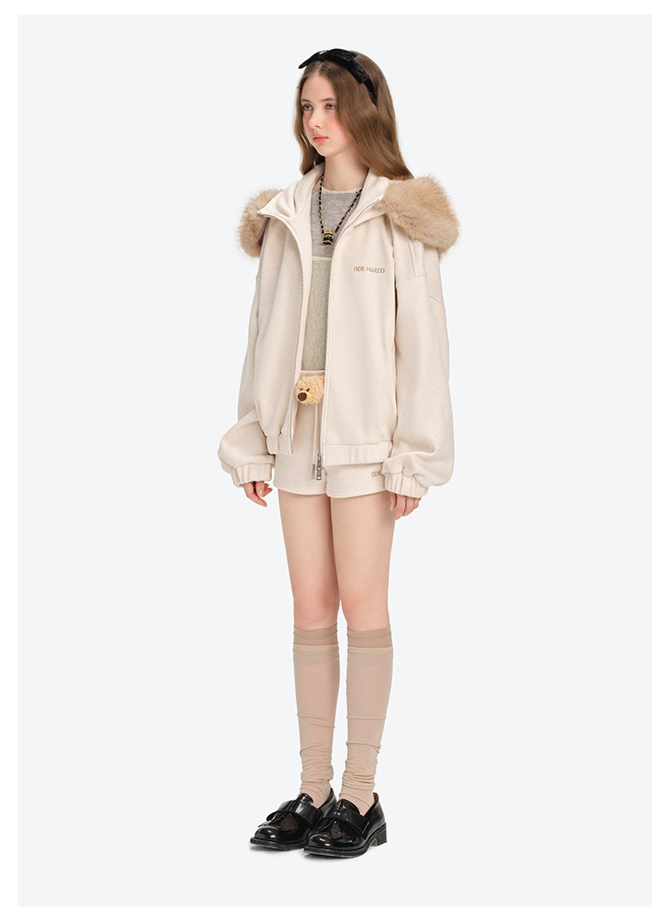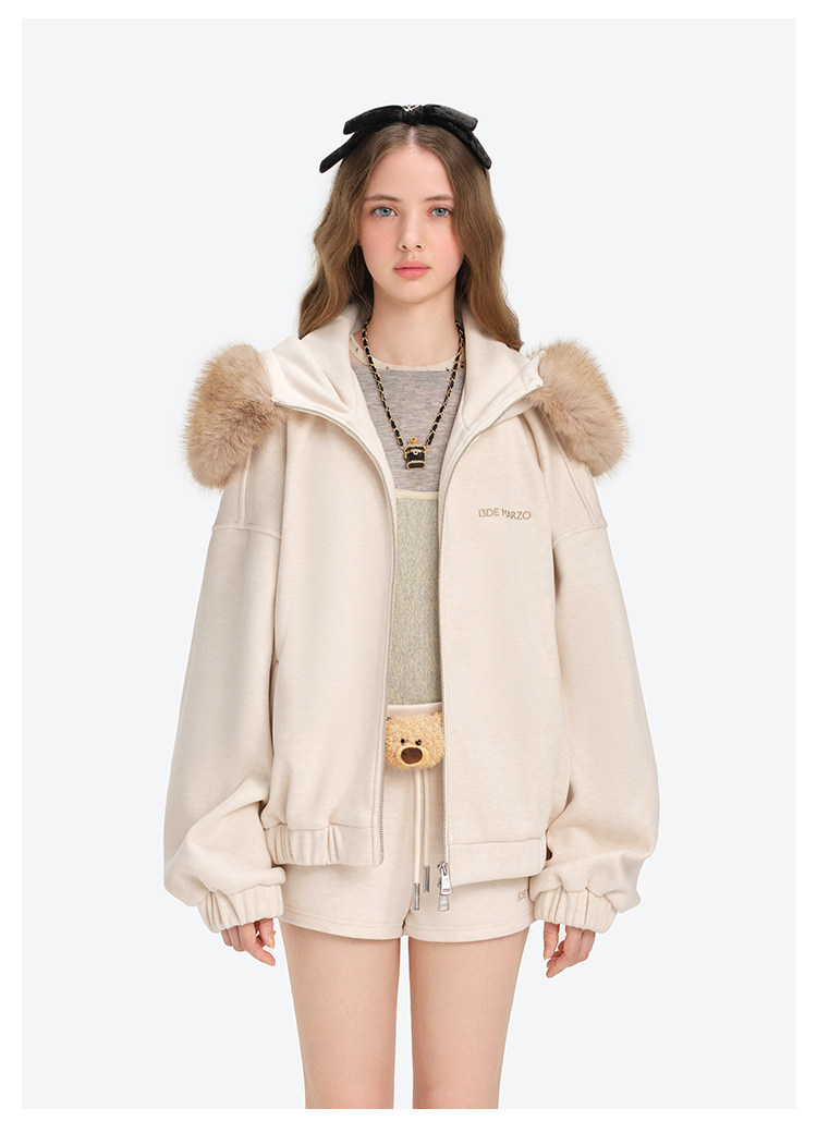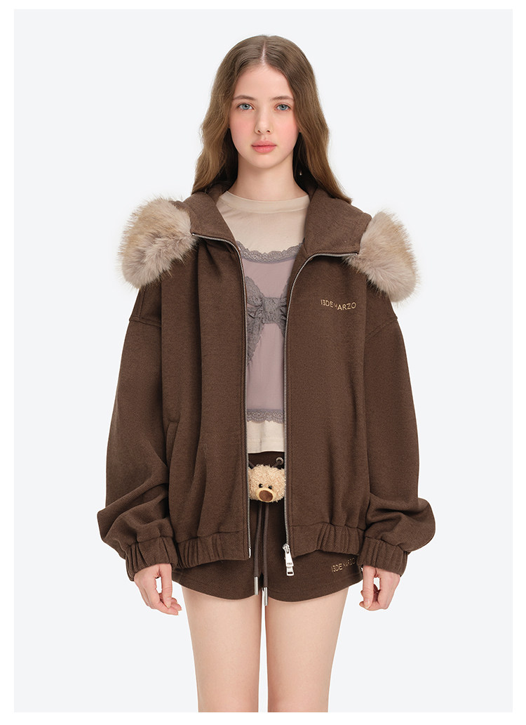 13De Marzo Unisex 2025 Autumn/Winter New Style Detachable Fur Collar Hooded Sweatshirt Jacket